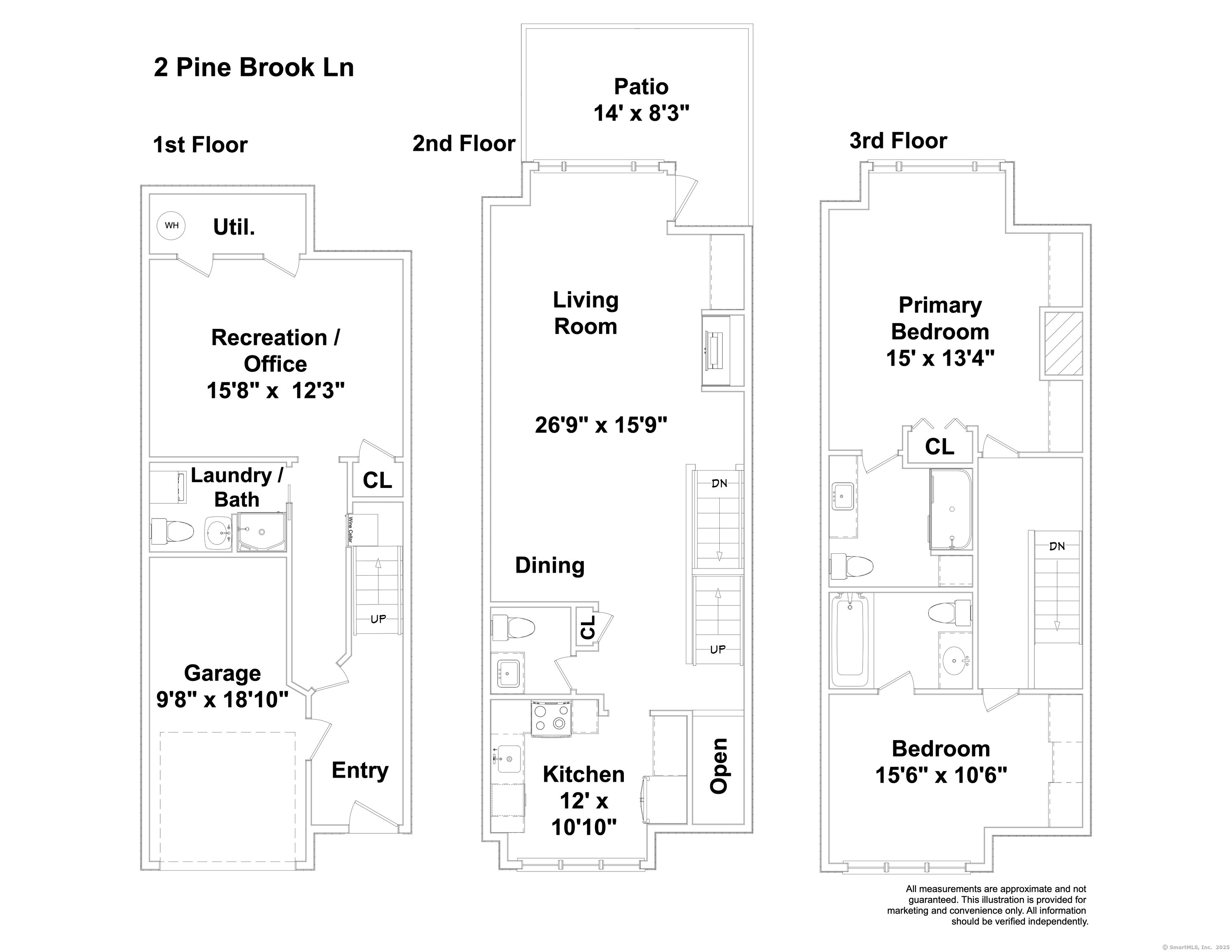 Don't miss this stunning, newly updated 2 bedroom, 3 full, 1 half bath townhouse in Darien's desirable Pine Brook complex.This well-maintained unit is ideally located within walking distance to Darien's train station, downtown shops and restaurants. As you enter the lower level, abundant light fills the 2 story foyer. A Rec room/office with new FULL bath and laundry provide versatile living possibilities to suit any needs. An oversized one car attached garage provides nice storage. Enjoy the first floor's open floor plan, high ceilings, powder room, hardwood floors and working fireplace. Generous crown moulding and hardwood floors throughout give a sophisticated look to this living space. Easy access to the private patio out the living room is perfect for afternoon sun or quiet meal. Morning sun fills the updated eat-in kitchen while new appliances, quartz counter tops and new cabinets make this kitchen a dream to cook in. Upstairs you'll find a generous primary suite with vaulted ceilings and a luxurious, updated bath.The second bedroom upstairs also features a vaulted ceiling and updated full bath with soaking tub/shower. New pull-down attic stairs make the large attic space easily accessible. Both bedrooms feature high quality built-in closets. 2 Pine Brook is a wonderful opportunity to own an affordable condo in impeccable condition with all updated baths and new kitchen located in a very convenient part of Darien.