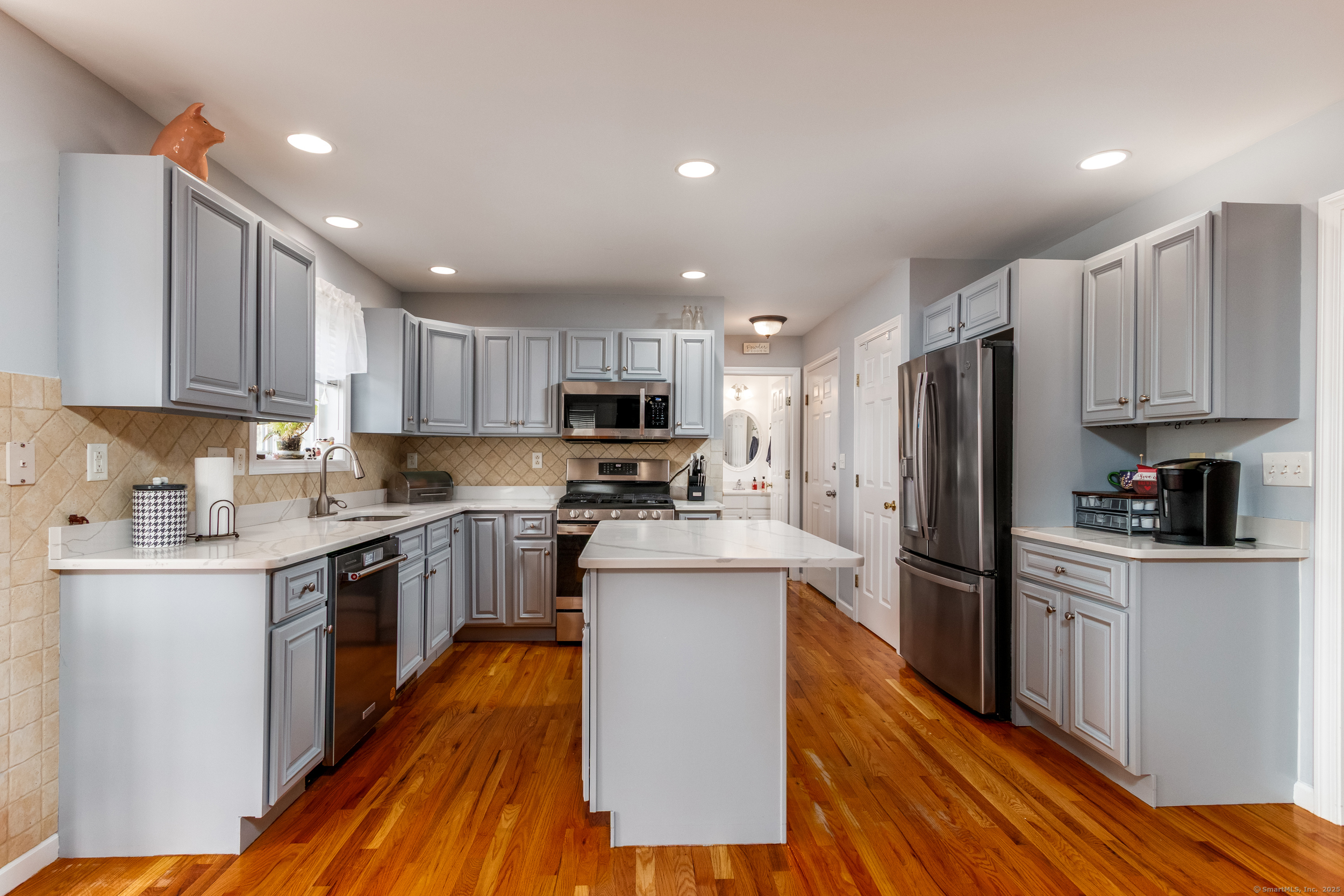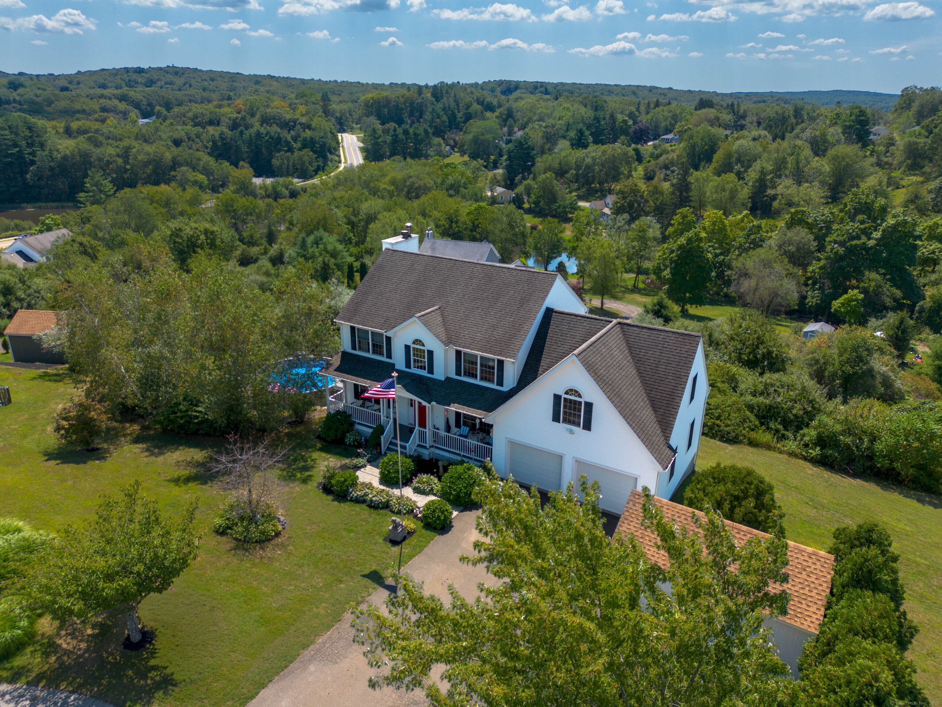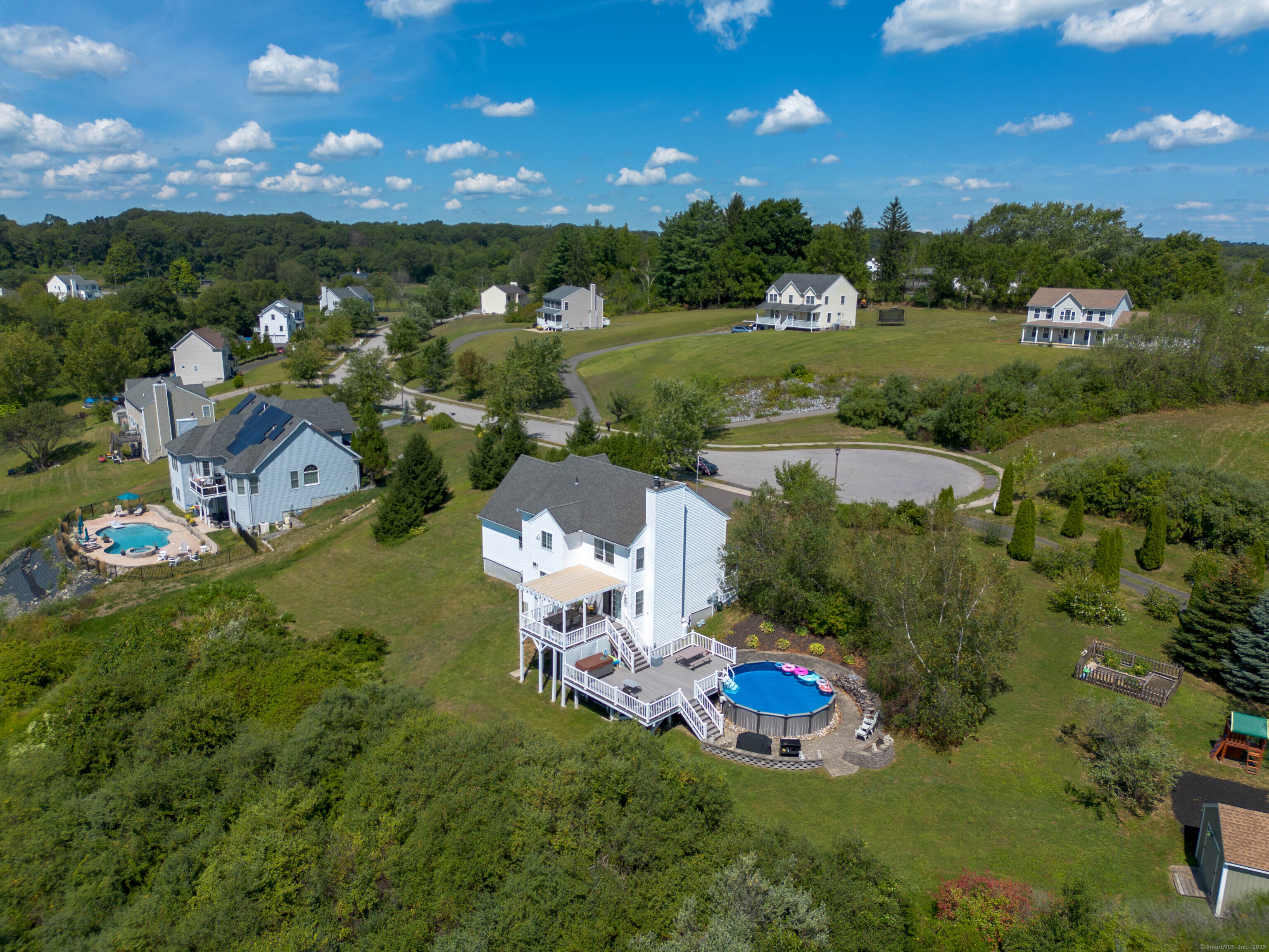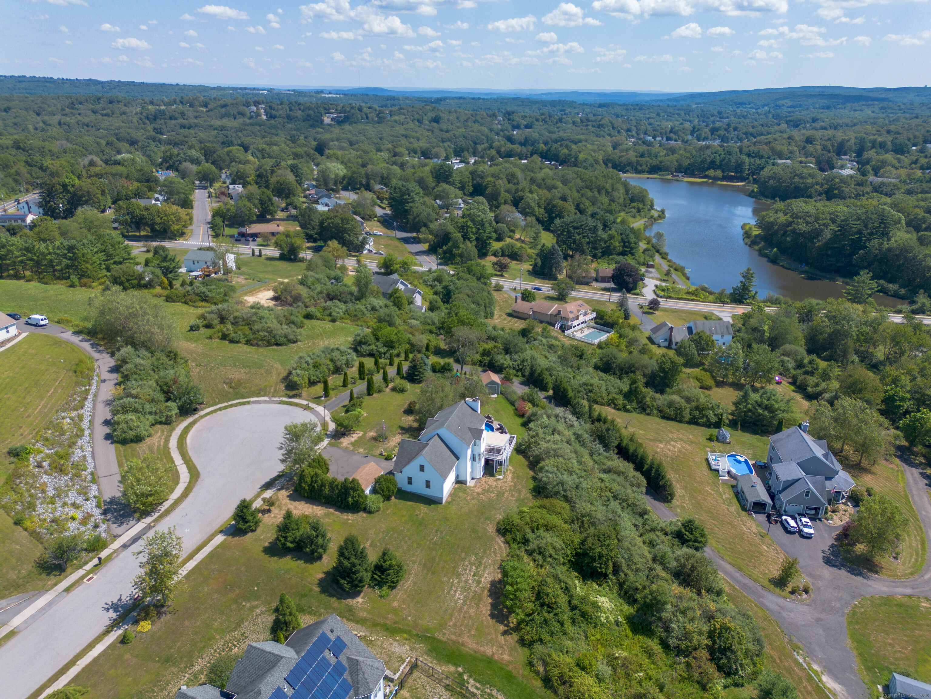Don't miss your chance to own this spacious 3/4 bedroom open floor plan colonial, set at the heart of a quiet cul-de-sac on Maggie Court in one of Terryville's most sought-after areas. With city water & sewer, this home offers the perfect blend of comfort, style & convenience. The welcoming entryway with its sweeping staircase sets the stage for a sun-filled, open-concept design made for entertaining & everyday living. The living room features a cozy propane fireplace, while the updated kitchen offers quartz countertops, stainless steel under-mount sink, & newer stainless-steel appliances (approx. 4 years old). The kitchen, living room & office have all been freshly painted, along with doors & trim. Relax on the freshly painted front porch or step onto the back deck to enjoy breathtaking views of Lake Winfield. Outdoor living shines with all-new Trex decking, composite railings, pergola, hot tub, new pool (2024), custom paver patio with fire pit, & two custom-built sheds-one in front & one in back-for storage or hobbies. Upstairs, the primary suite offers a walk-in closet, Jacuzzi tub, & walk-in shower, while the second-floor hallway bathroom includes the laundry area for added ease. The walkout basement includes a finished room (not included total sq. ft.) plus space to expand-ideal for a gym, media room, or possible in-law setup. With a two-car garage, ample storage, & its cul-de-sac setting, this home combines modern updates, resort-style amenities, & stunning lake views.