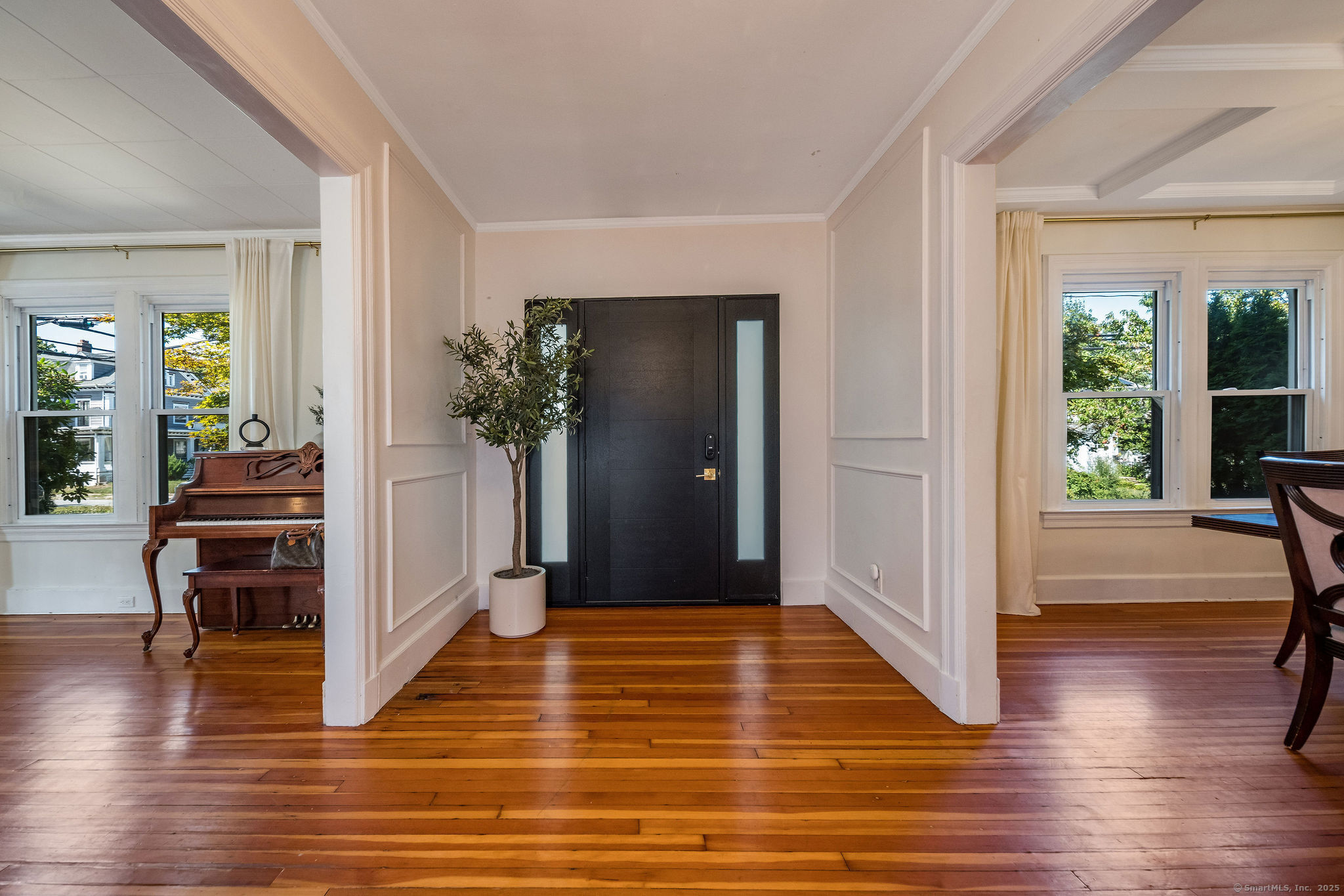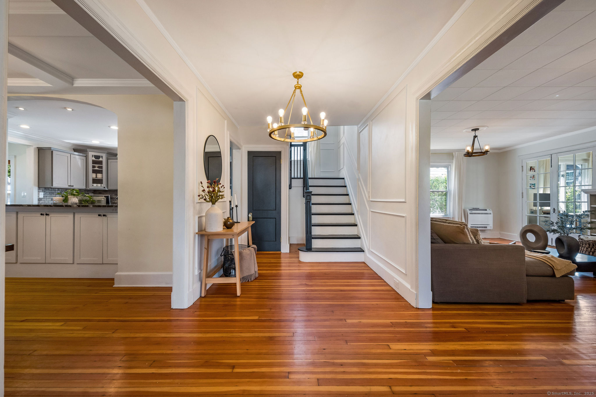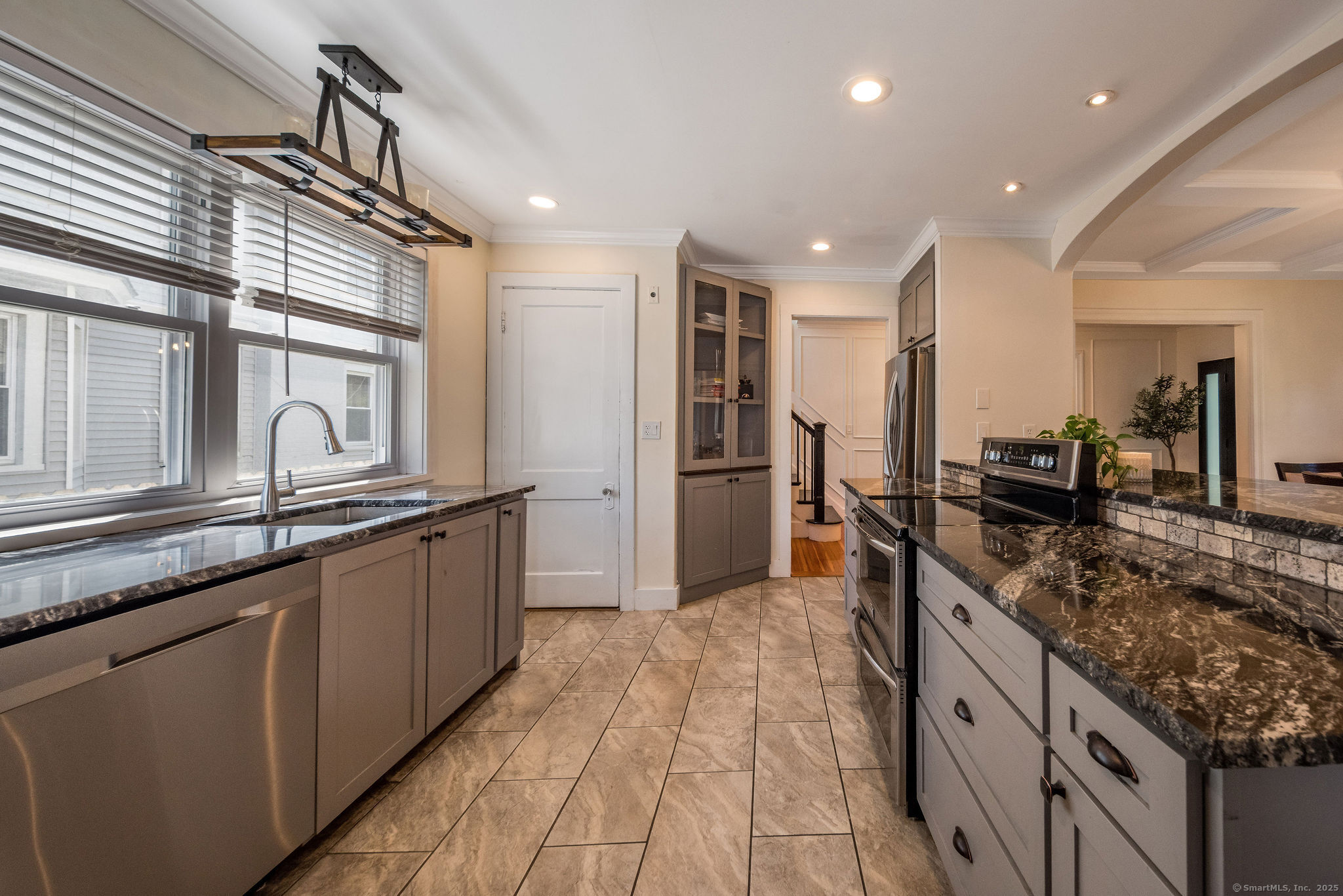 OH Cancelled as Property Under Contract! Experience the perfect blend of Colonial elegance and modern comfort at 546 Ocean Avenue. This home has been meticulously updated, preserving its historic character while providing every contemporary convenience. Step inside and be greeted by a foyer with classic wainscoting and original hardwoods. The seamless flow from the dining room with stunning coffered ceilings to the remodeled kitchen makes entertaining a breeze. The kitchen features granite and butcher block counters, stainless appliances, 2 large sinks, a large pantry, and a mudroom leading out the back door. The spacious living room includes a cozy wood stove and double French doors that lead you to a sunroom that offers a versatile space for a home office or creative pursuits. Upstairs, you'll find 3 generously sized bedrooms and 2 fully remodeled bathroom. The primary suite is highlighted by a brand new luxurious en-suite with a glass shower and 72-inch double sink vanity. The additional walk-in closet on the 2nd level can easily serve as a nursery or office, while the finished walk-up attic provides a private 4th bedroom and ample storage. The basement includes a new laundry room and workshop. The yard is a peaceful space with beautiful trees, a deck, and a detached one-car garage. You'll also benefit from solar, foam insulation, and a mini-split heat pump system for year-round comfort. P