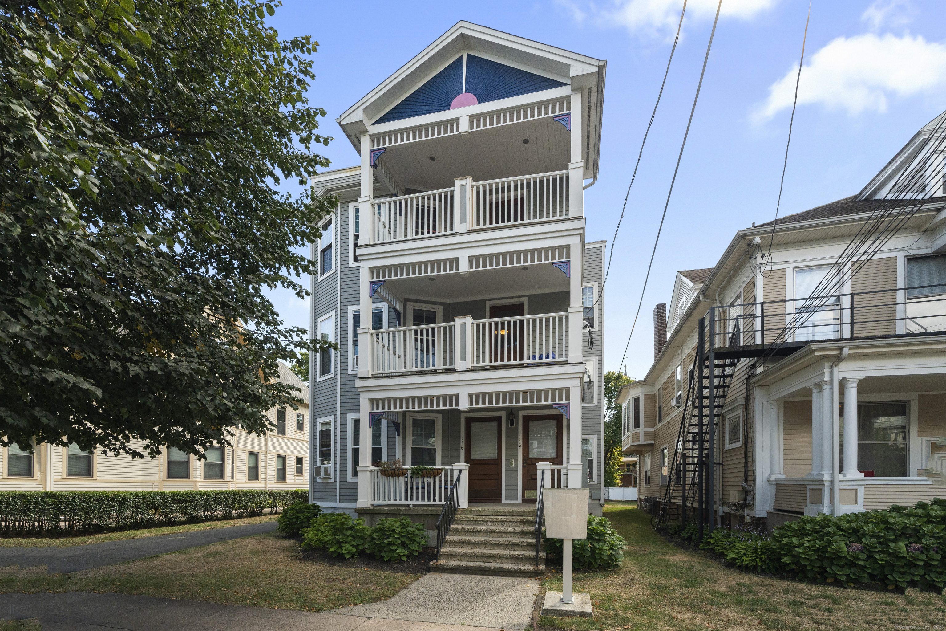 Attractive & renovated 6 unit apartment building in the heart of East Rock on a .21 acre lot with parking for 9 cars! This building consists of 3 spacious one bedroom apartments, and 3 two bedroom apartments. The units have been completely renovated and have refinished hardwood floors, large remodeled eat-in kitchens, spacious living rooms, recessed lighting, large bedrooms with good closet space and tastefully remodeled tile baths. The building has newer wood siding, rebuilt front porch, replacement windows, separate utilities (gas boilers & electrical) and a large basement with coin op laundry and storage room. Fantastic location steps from gourmet markets, restaurants & coffee shops, and a short walk to Downtown New Haven & Yale. This building can be sold with a neighboring 6 unit building located at 120 Bishop St (MLS #24124073). If buildings are purchased together the combined lot would be .42 acres and could have potential for additional development with approval from the City of New Haven. .