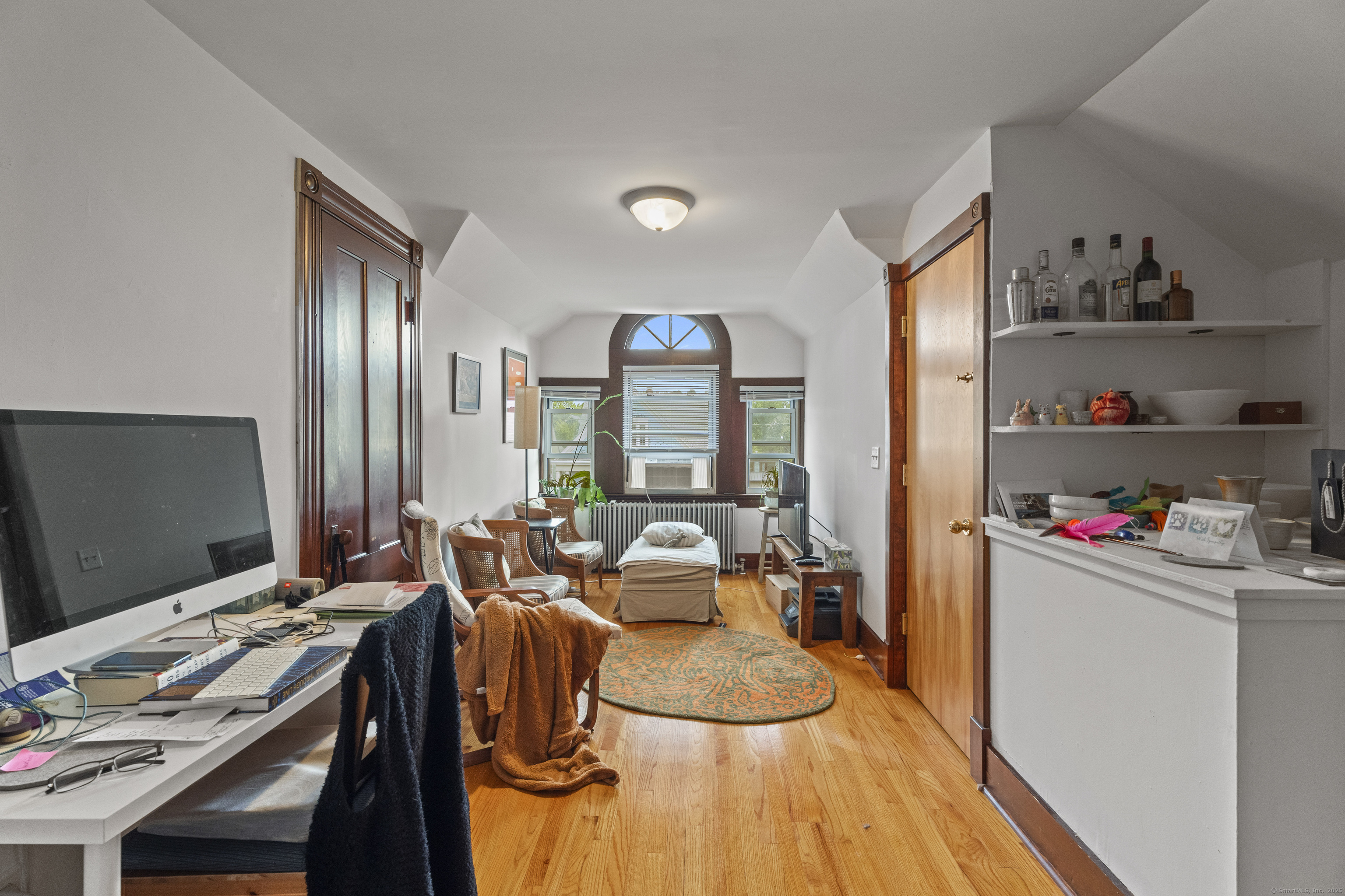 Charming 6 unit apartment building located in the heart of East Rock on level .21 acre lot with tons of character and charm. The building consist of three 1 bedroom units, two large two room studios and a spacious remodeled two bedroom apartment on the third floor. Each apartment has its own unique layout & style with high ceilings, natural woodwork and hardwood floors (4 out of 6 apartments). Half of the units feature renovated kitchens and updated baths. The building is fully occupied with wonderful tenant(s). All apartments have separate metered gas boilers and electricity, but common hot water paid by the landlord. Large basement with storage and coin op laundry. Huge .21 acre lot in rear of the building with potential for possible additional units with town approval or room for ample parking. Fantastic location steps from gourmet markets, restaurants & coffee shops, and a short walk to Downtown New Haven & Yale. Building can be sold with neighboring property located at 116-118 Bishop ST (MLS # 24124020).