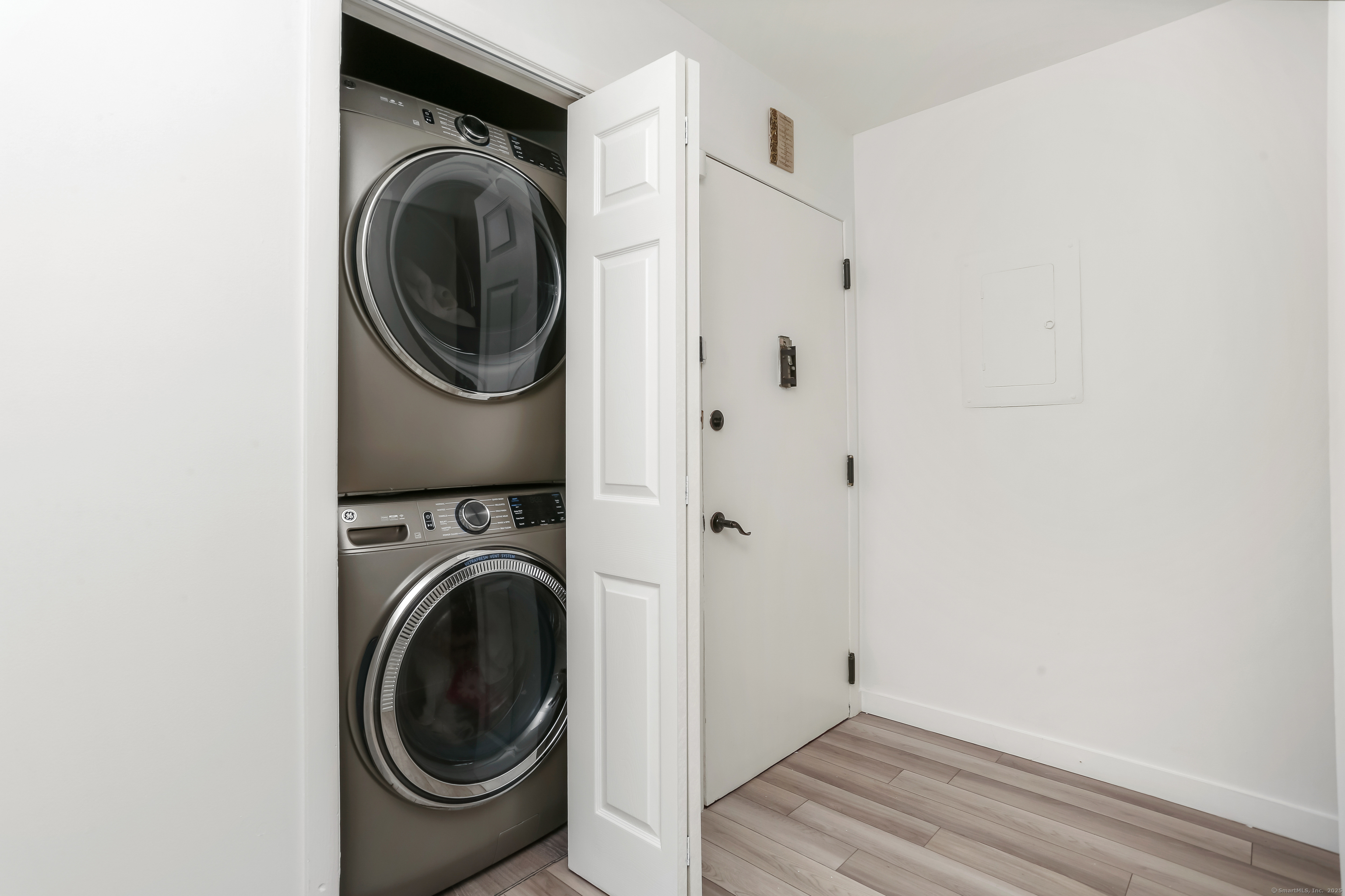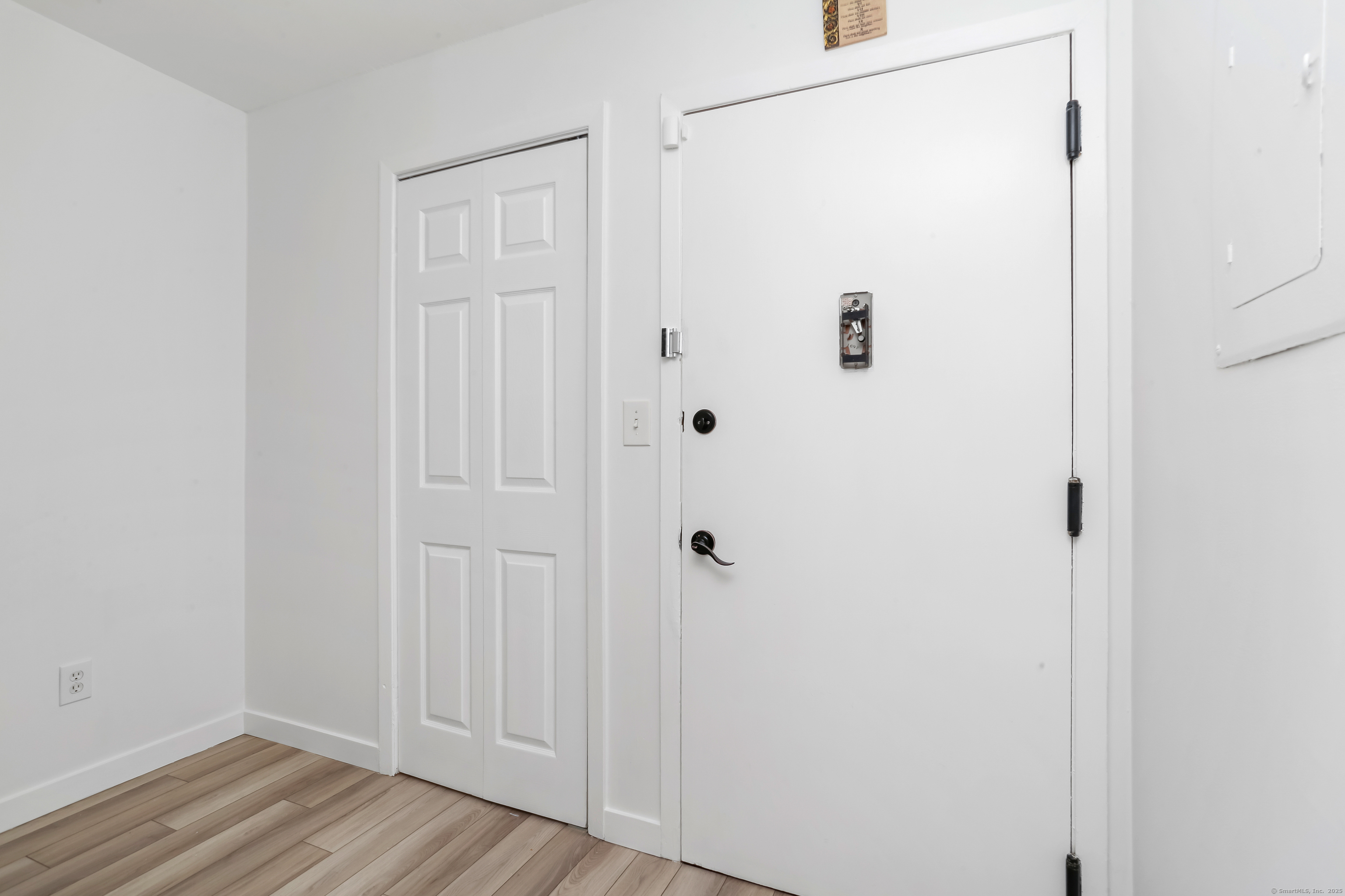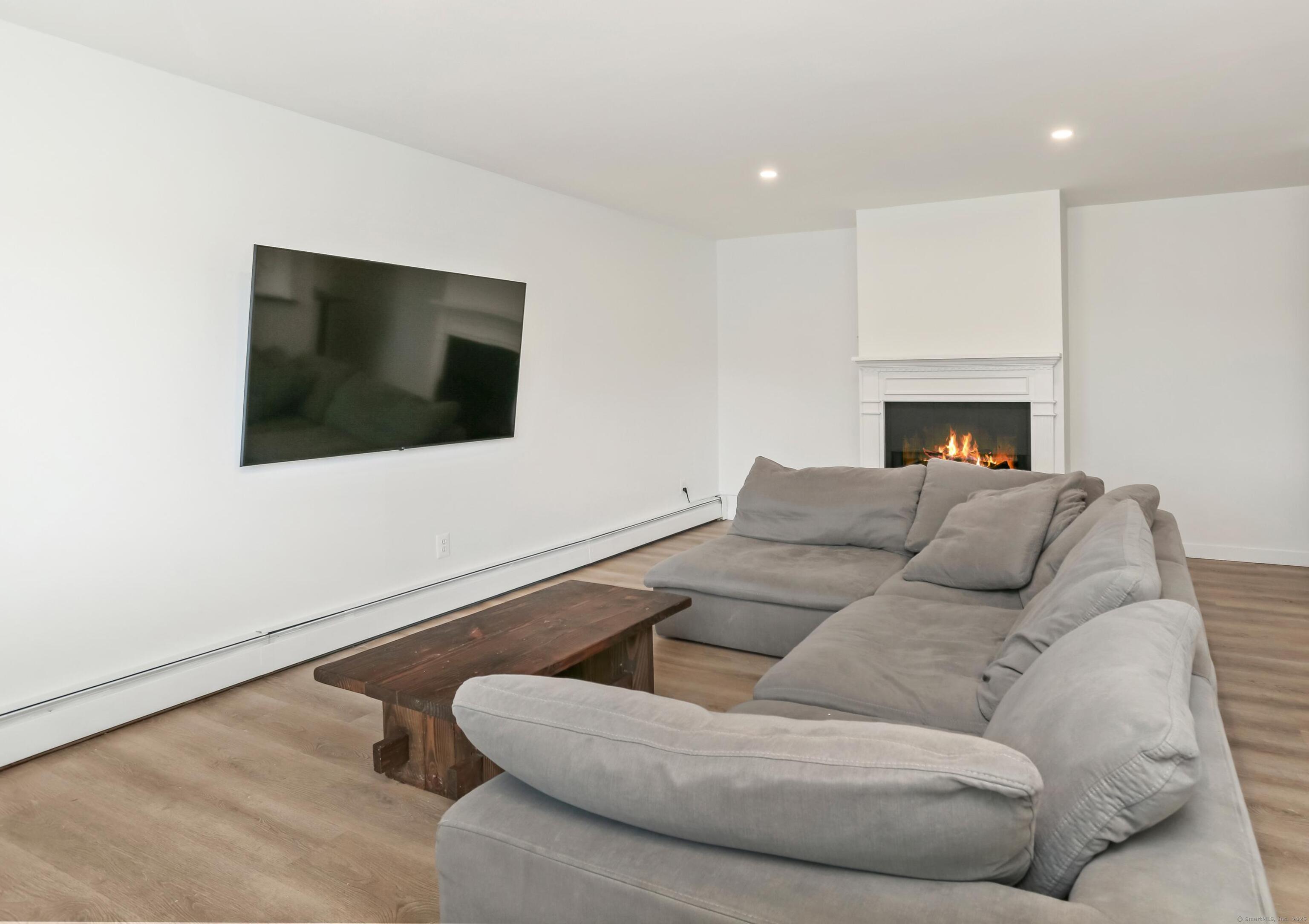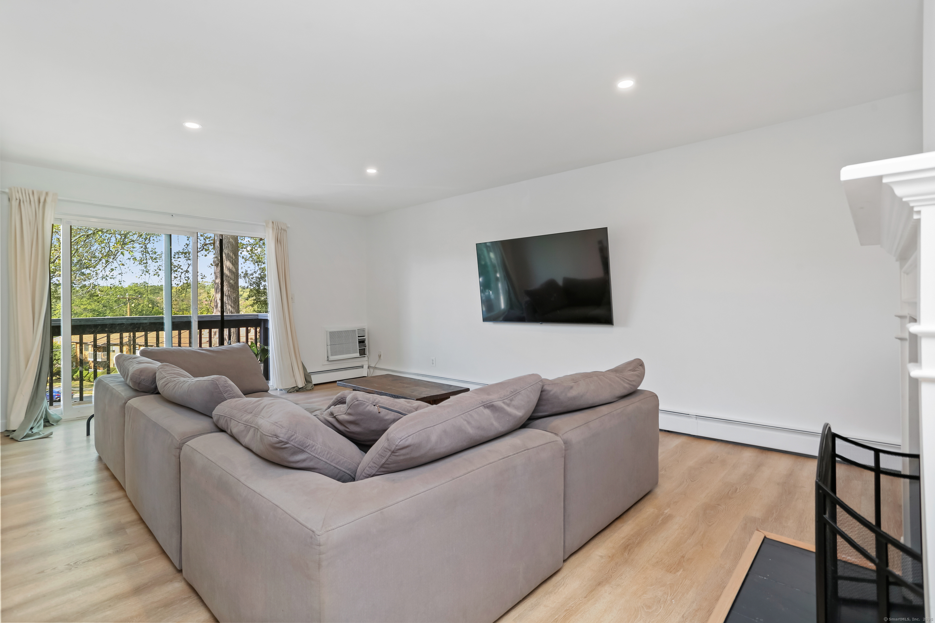 Welcome to this beautifully updated 2-bedroom, 2-bath condo located in Bridgeport's desirable North End. Step inside to find a modern kitchen featuring quartz countertops, white cabinetry, and stainless steel appliances, opening to a dining area with a convenient breakfast bar. The spacious family room offers a cozy wood-burning fireplace and sliders leading to your private porch, perfect for relaxing or entertaining. Both full bathrooms have been tastefully updated, and the unit boasts newer vinyl plank flooring throughout. Additional highlights include in-unit laundry and ample natural light. A move-in ready home in a prime location, close to shopping, dining, and major highways. Owner occupied buyers only.
