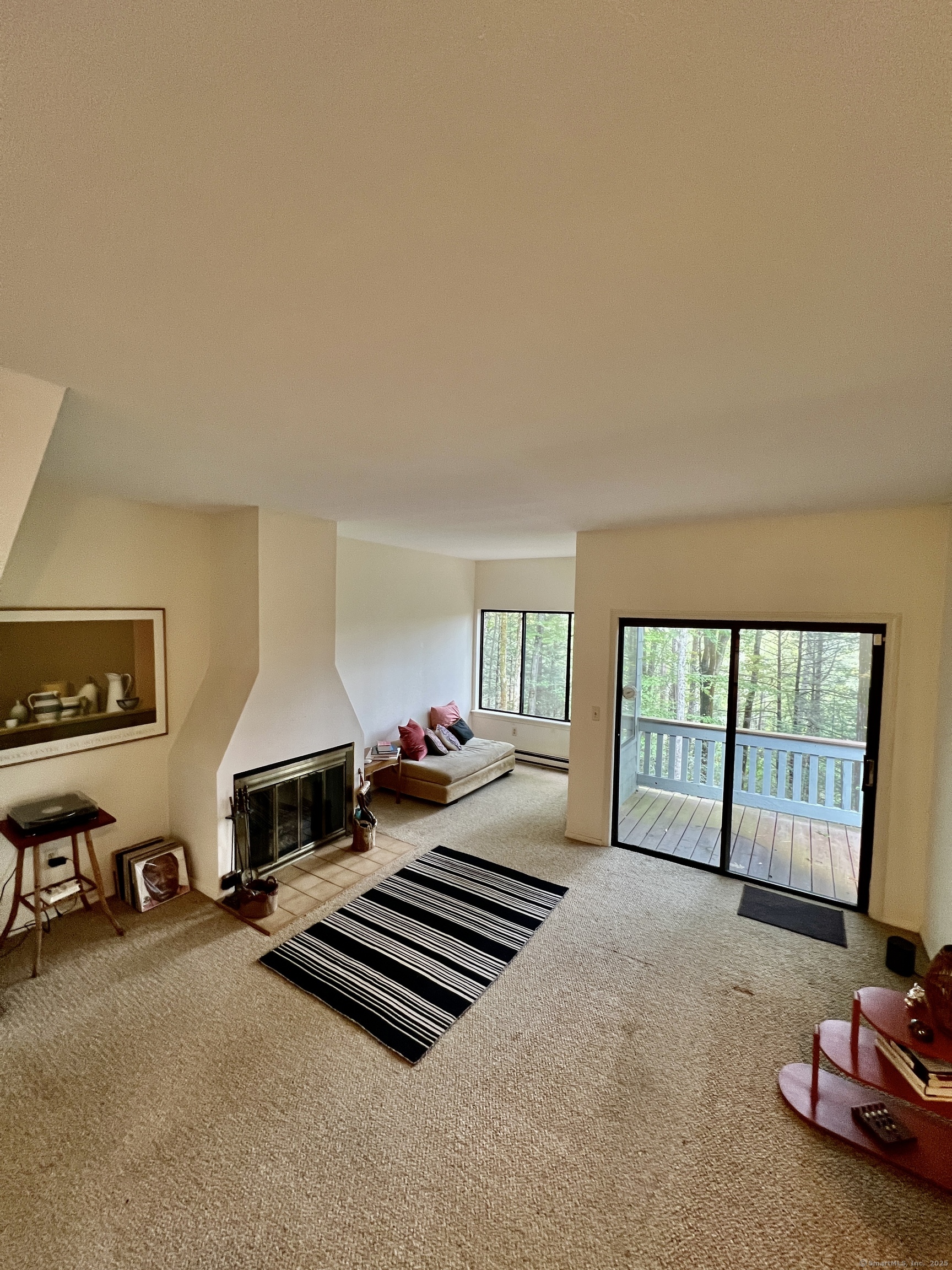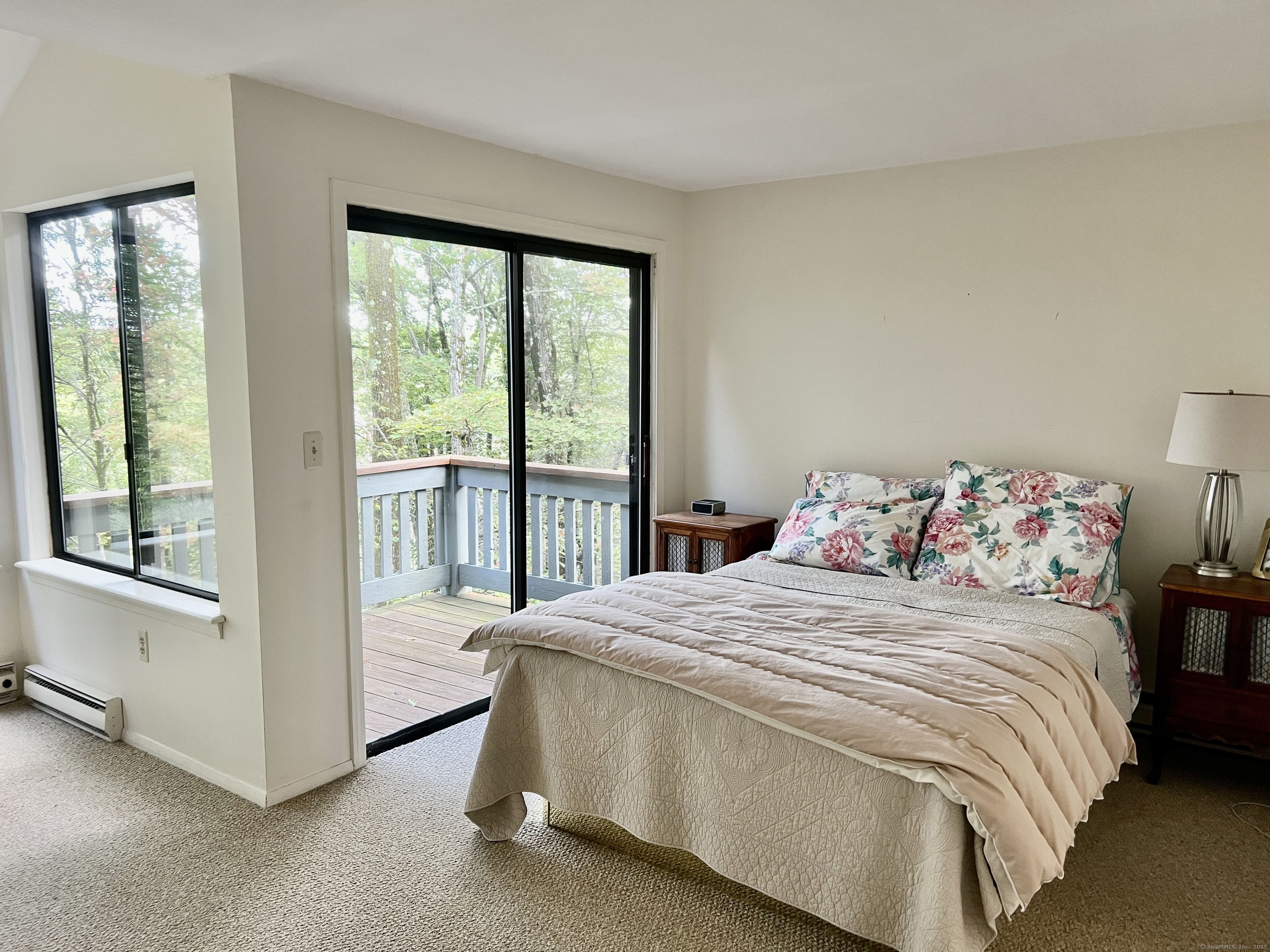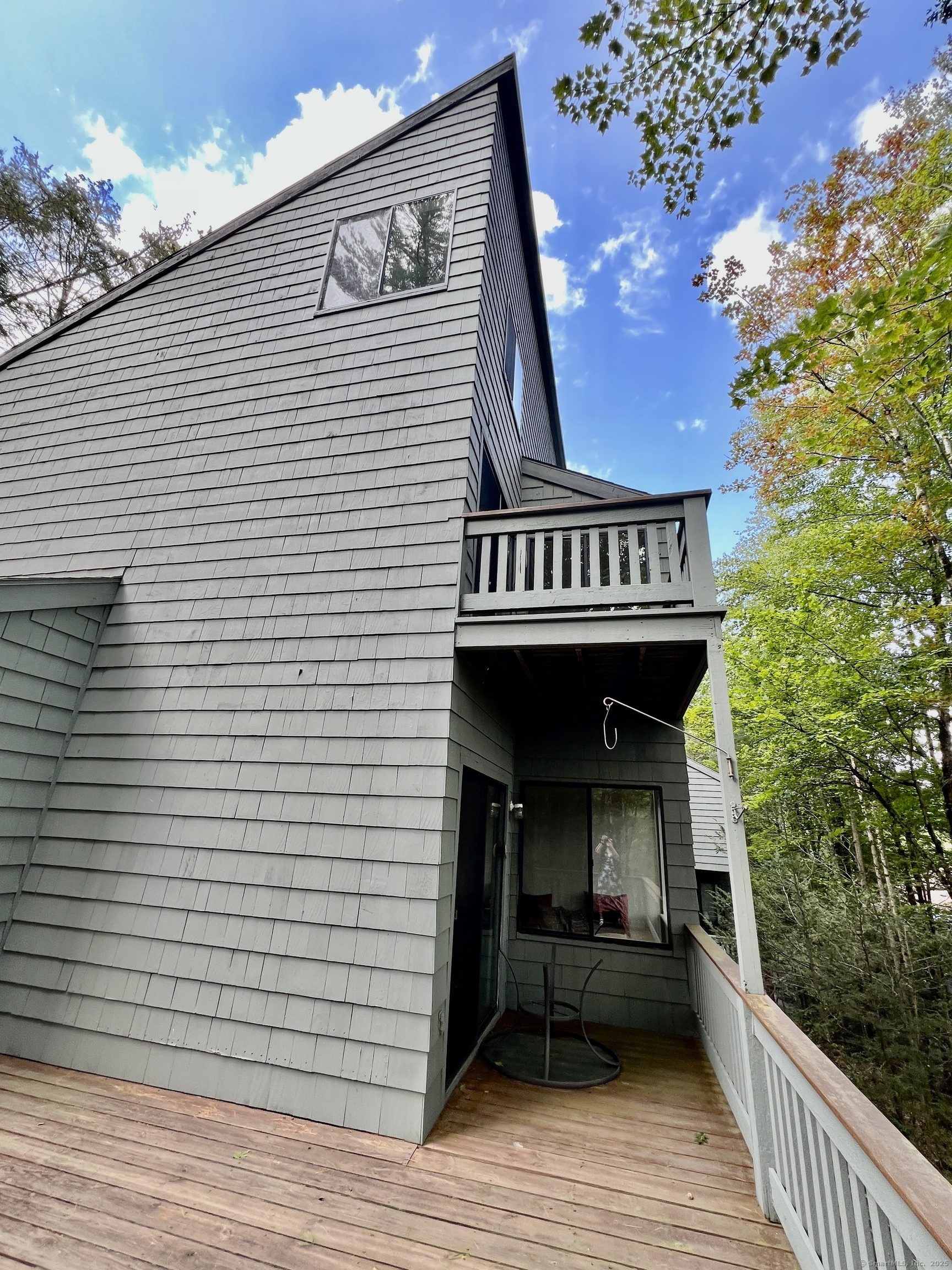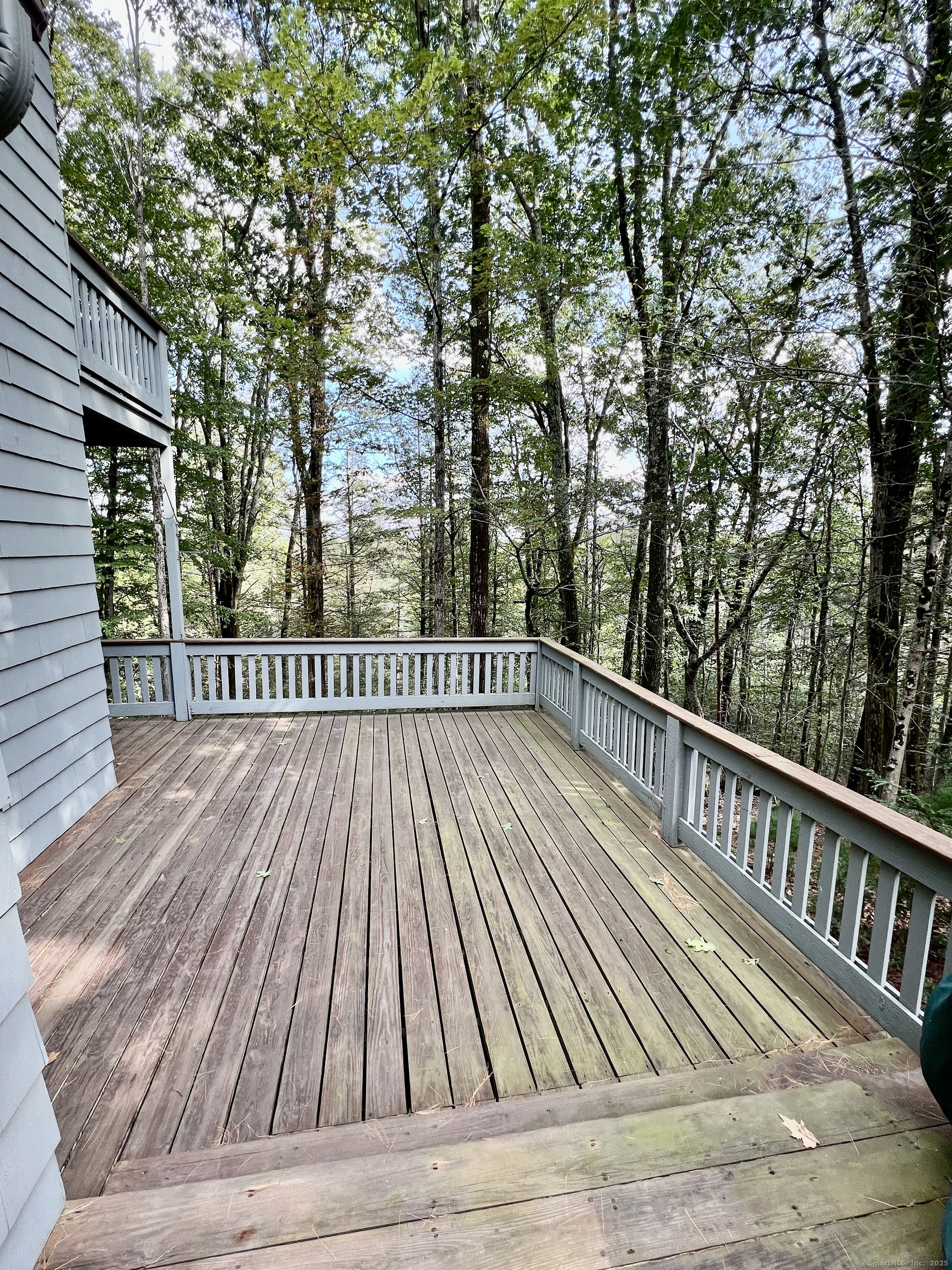 With seasonal views of Burr Pond from the primary bedroom and loft, this home is the perfect place to watch the seasons change. The sunken living room has sliders to a large expanded deck with perfect privacy. The primary has its own deck and a cosy nook for watching nature. The upper loft can be used as a third bedroom, an office or studio for your crafts. With some updating, this could be the perfect full time or weekend lifestyle. The wood burning fireplace will have a propane insert prior to close.