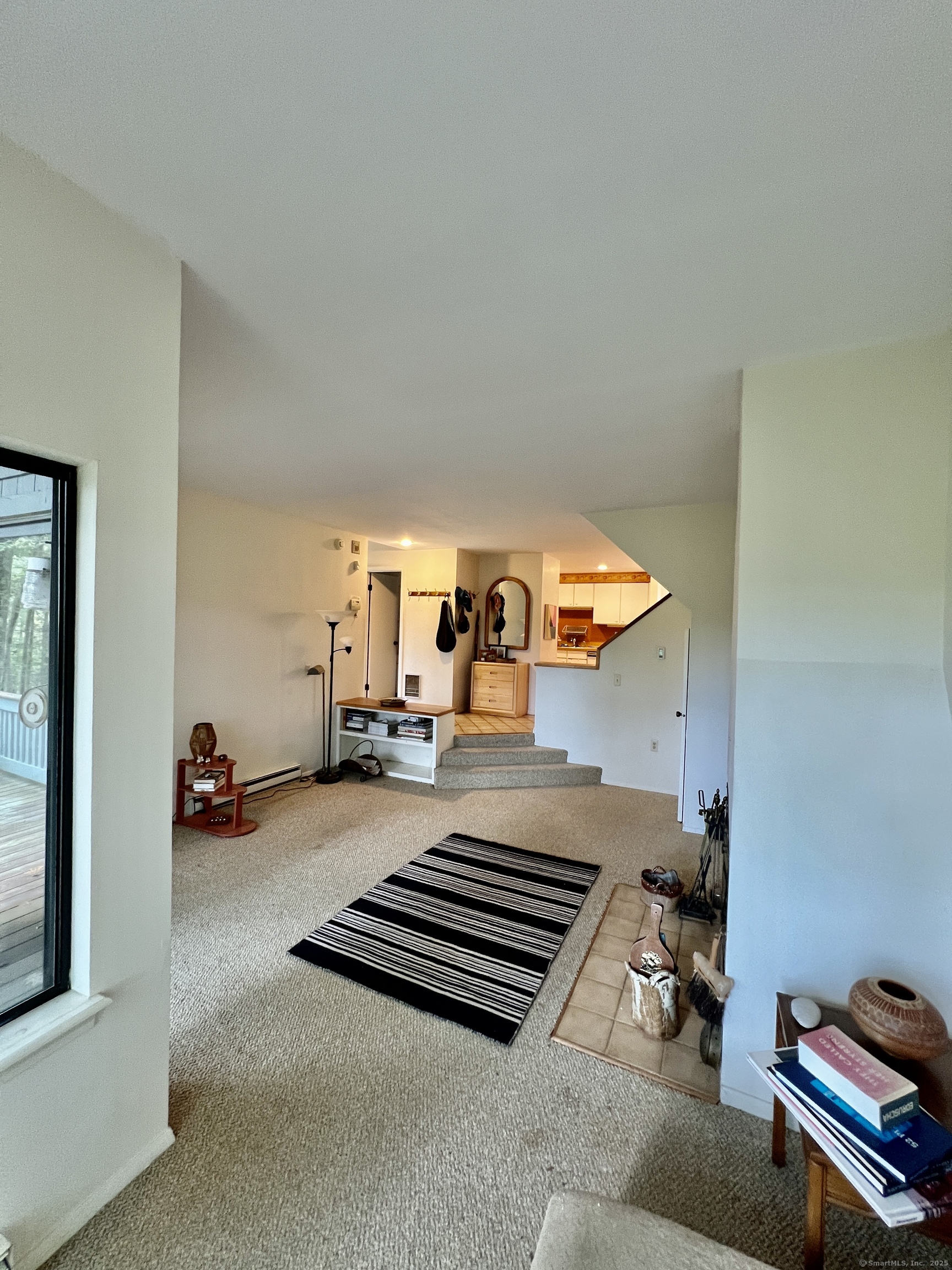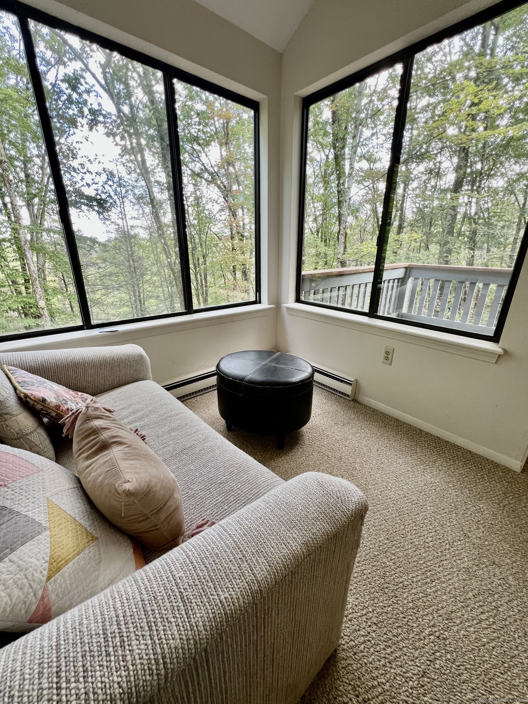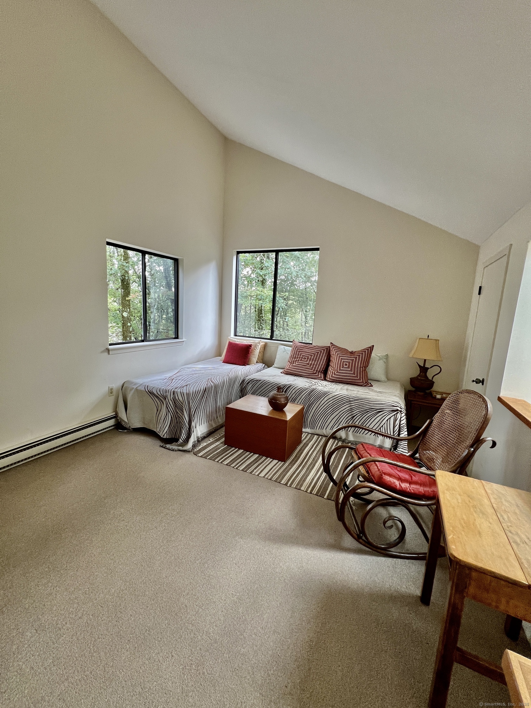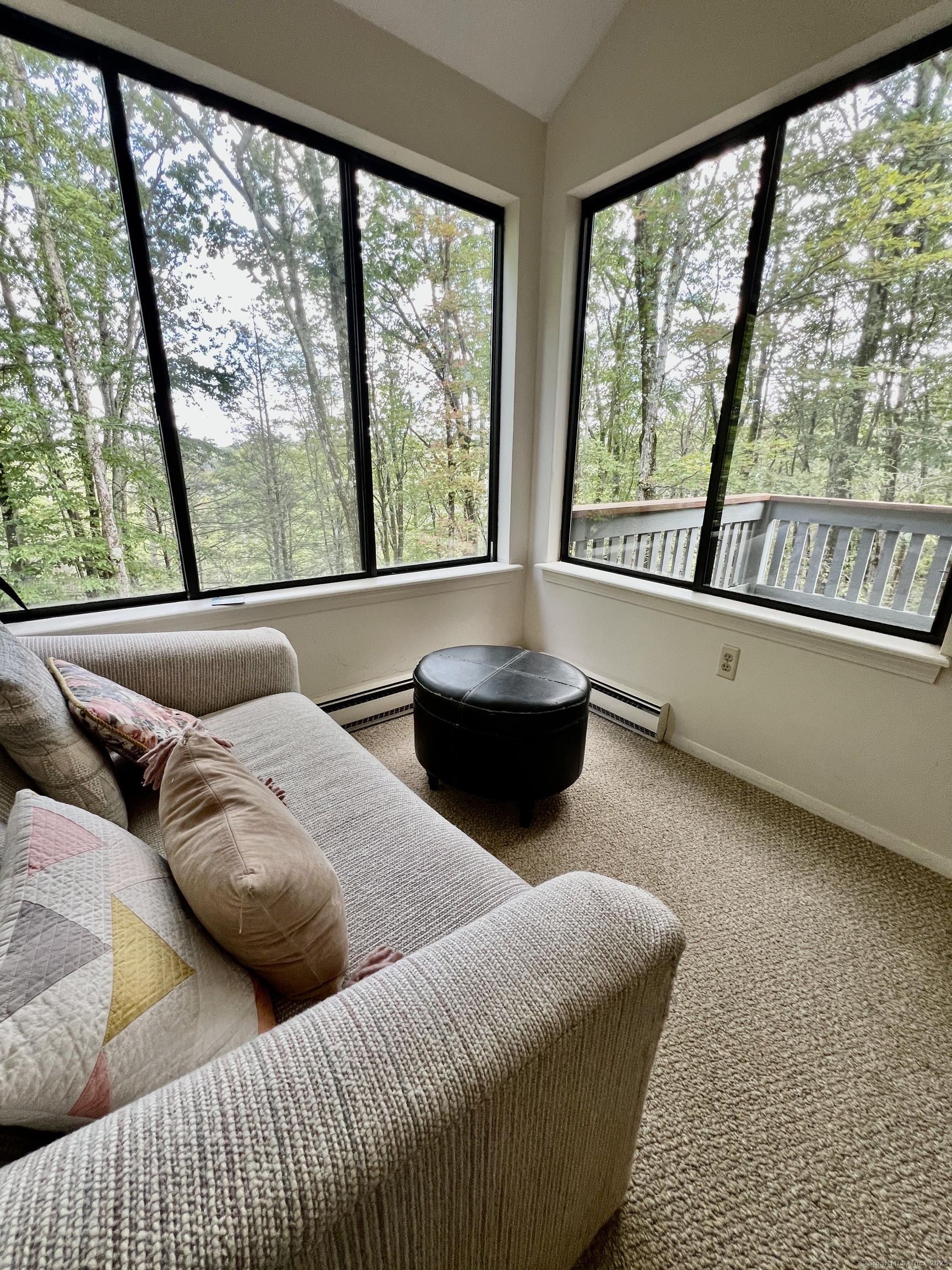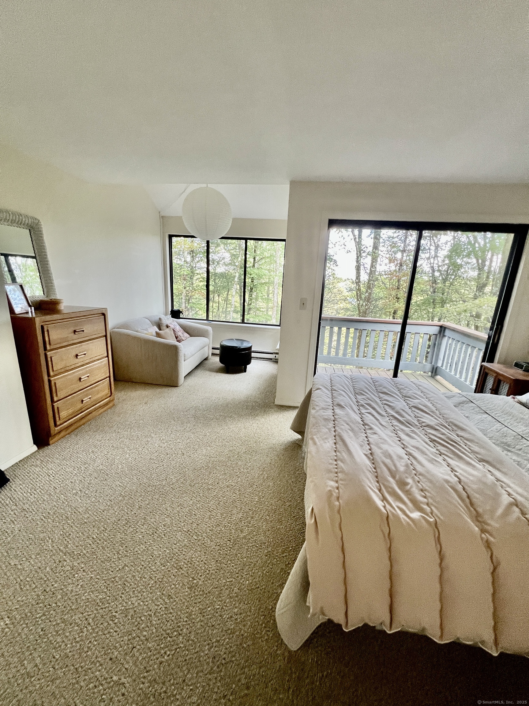 With seasonal views of Burr Pond from the primary bedroom and loft, this home is the perfect place to watch the seasons change. The sunken living room has sliders to a large expanded deck with perfect privacy. The primary has its own deck and a cosy nook for watching nature. The upper loft can be used as a third bedroom, an office or studio for your crafts. With some updating, this could be the perfect full time or weekend lifestyle. The wood burning fireplace will have a propane insert prior to close.