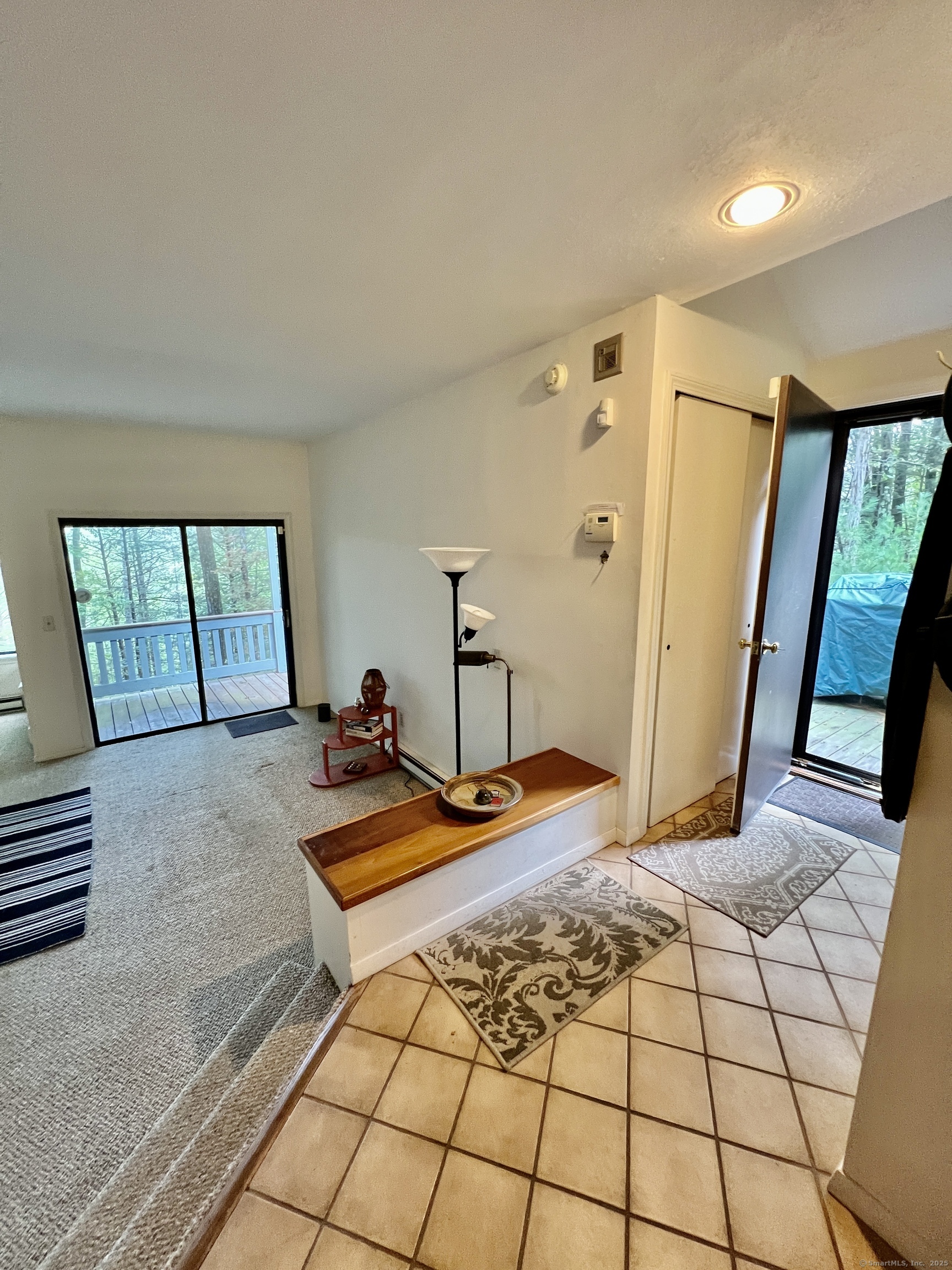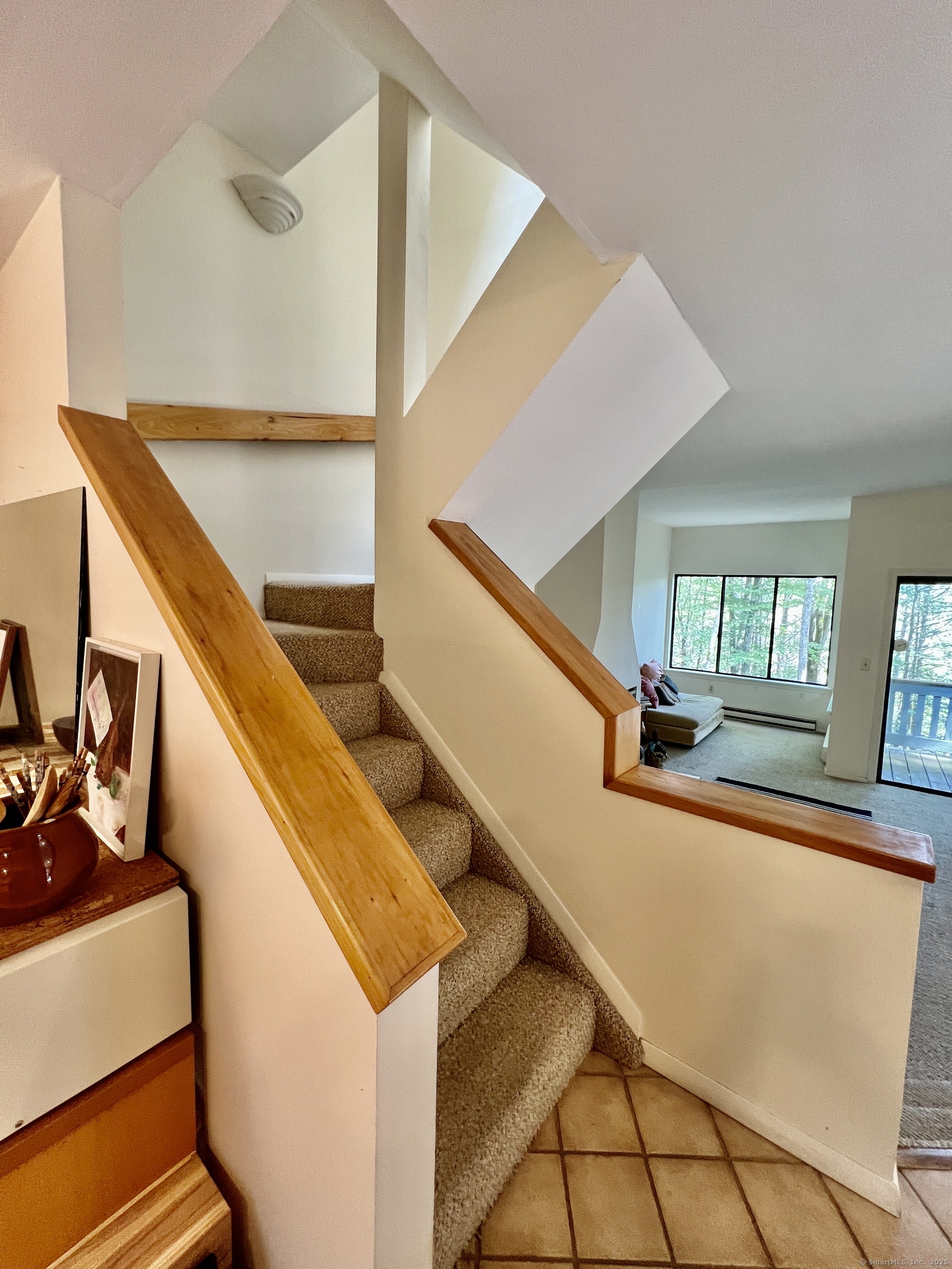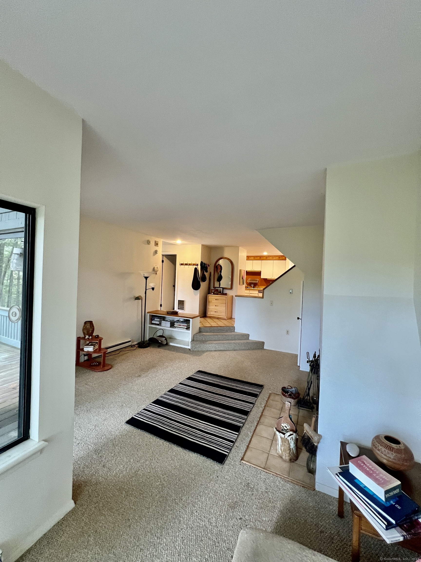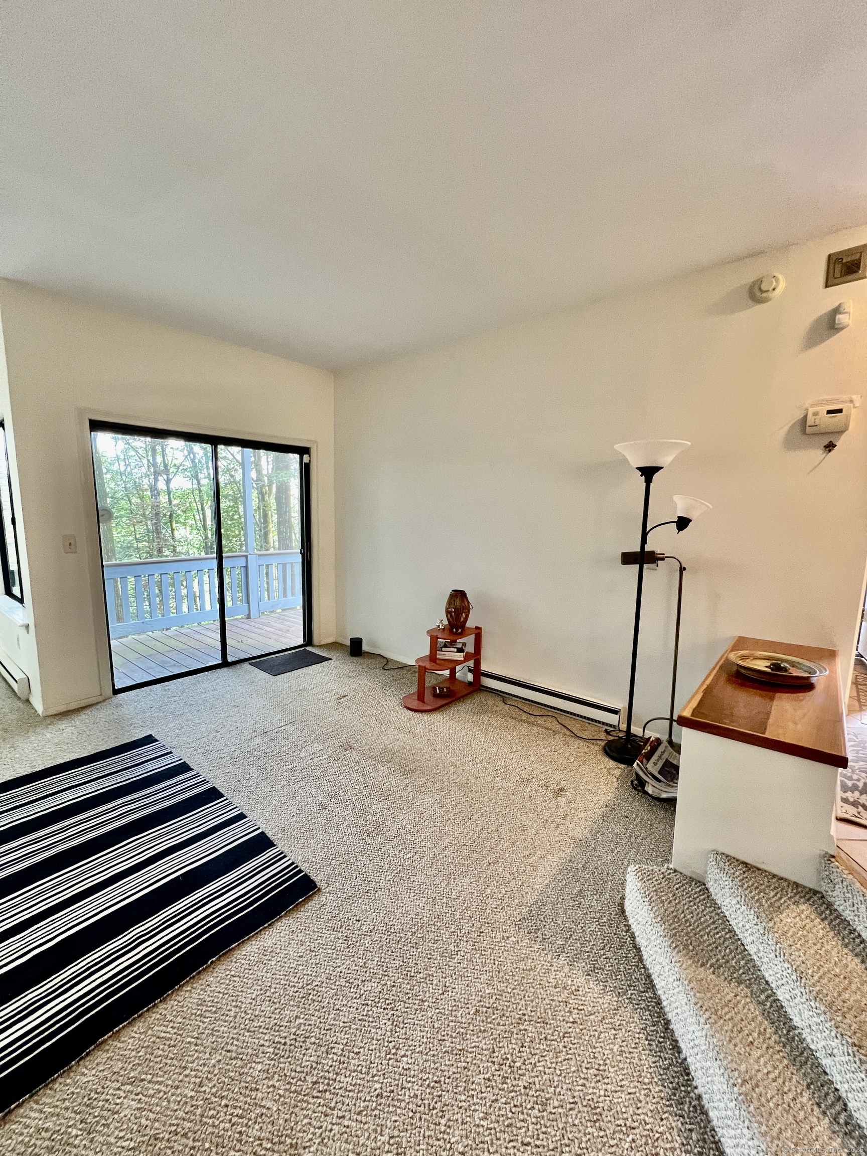 With seasonal views of Burr Pond from the primary bedroom and loft, this home is the perfect place to watch the seasons change. The sunken living room has sliders to a large expanded deck with perfect privacy. The primary has its own deck and a cosy nook for watching nature. The upper loft can be used as a third bedroom, an office or studio for your crafts. With some updating, this could be the perfect full time or weekend lifestyle. The wood burning fireplace will have a propane insert prior to close.