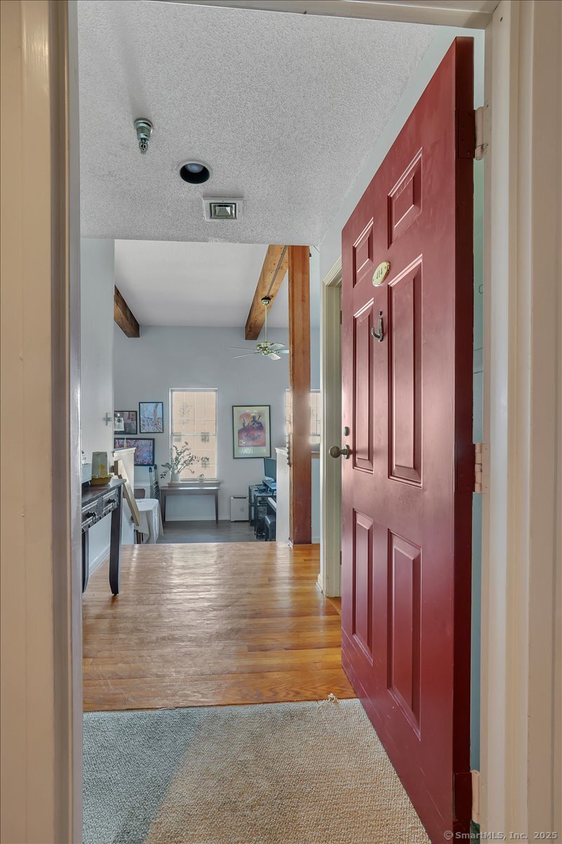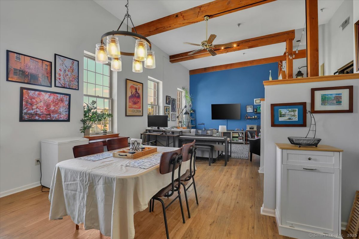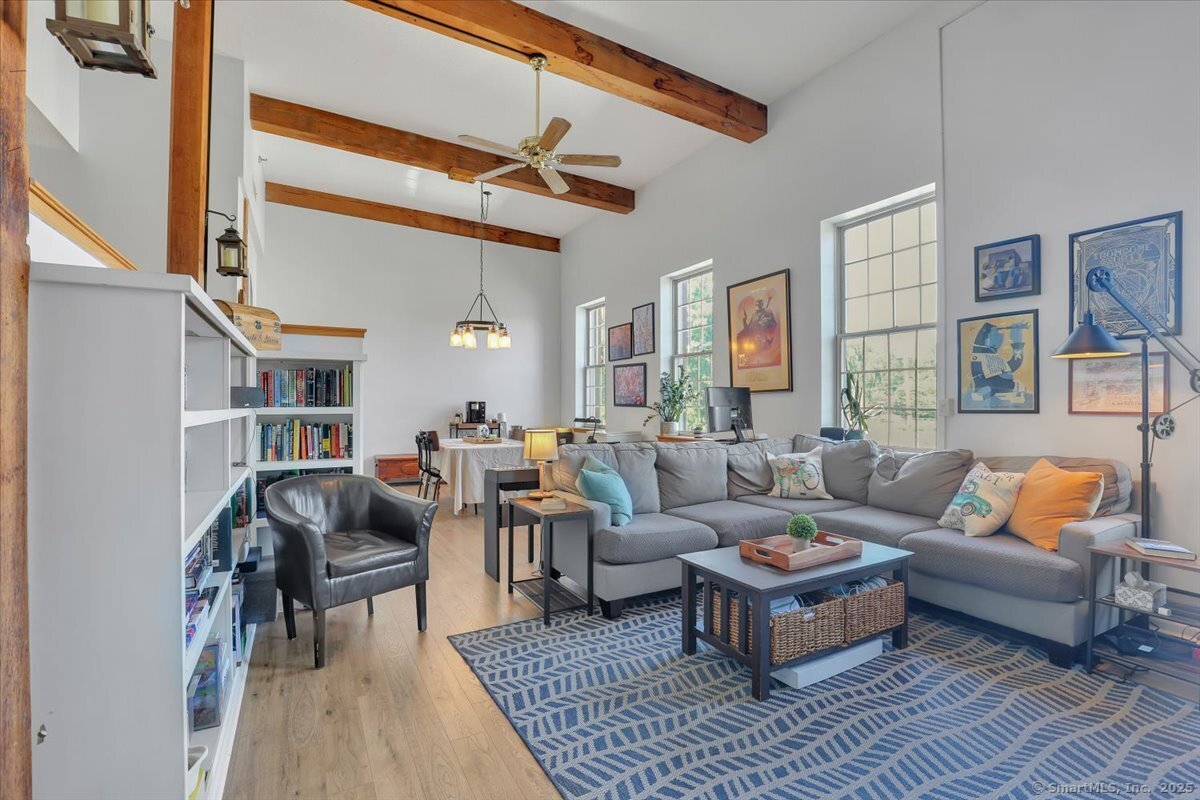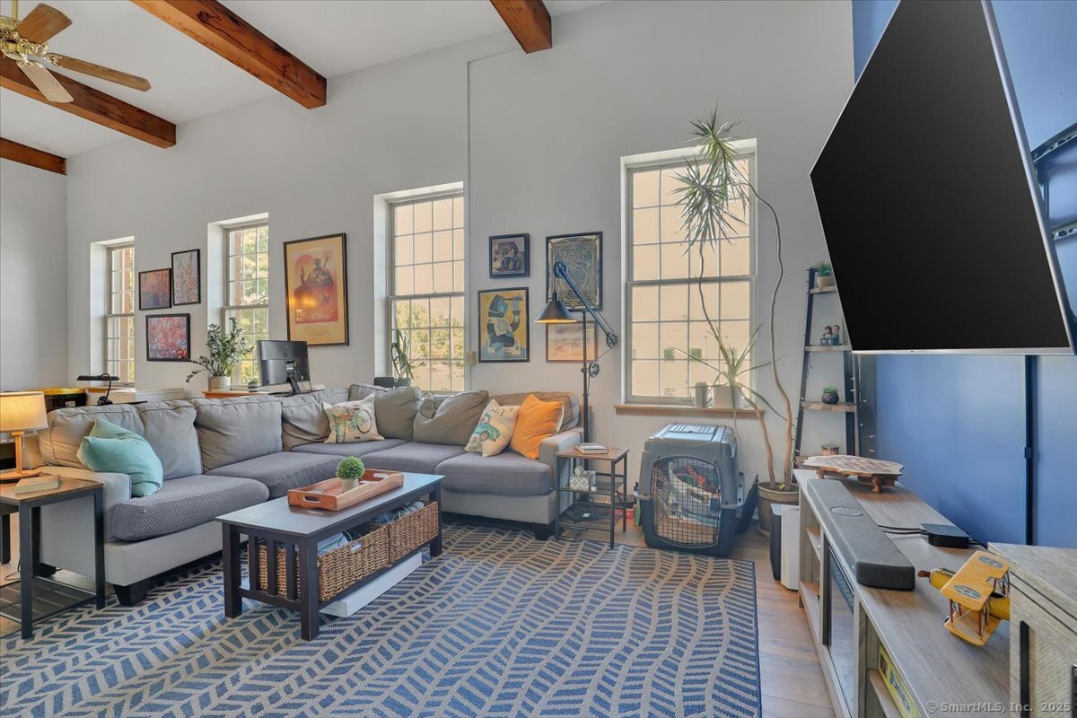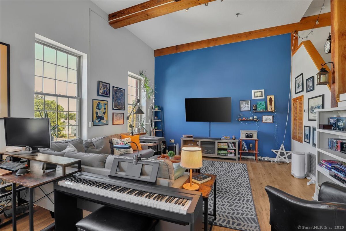 With ceilings that soar, wood beams and wood floors; this property will make a lover of charm feel immediately at home. This amazing brick building is aptly on the National Register of Historic Places, blending a vintage feel and modern conveniences. A quick 10 minute walk will get you to Wesleyan University or downtown to a multitude of restaurants and activities. If you're more of a homebody, you can stay right at home and enjoy wonderful views of Middletown from either of your two new decks located off both of the bedrooms through brand new sliding glass doors. Additional new items are the furnace and the roof. Garage parking is another bonus of this particular unit, as it's not available to every unit in the building. You'll also have access to a bike room, a composting program and an EV charging station. There is a wonderful sense of community with the association hosting summer and holiday parties throughout the year. This is a chance for some spectacular living. **Seller is offering a credit towards the special assessment**