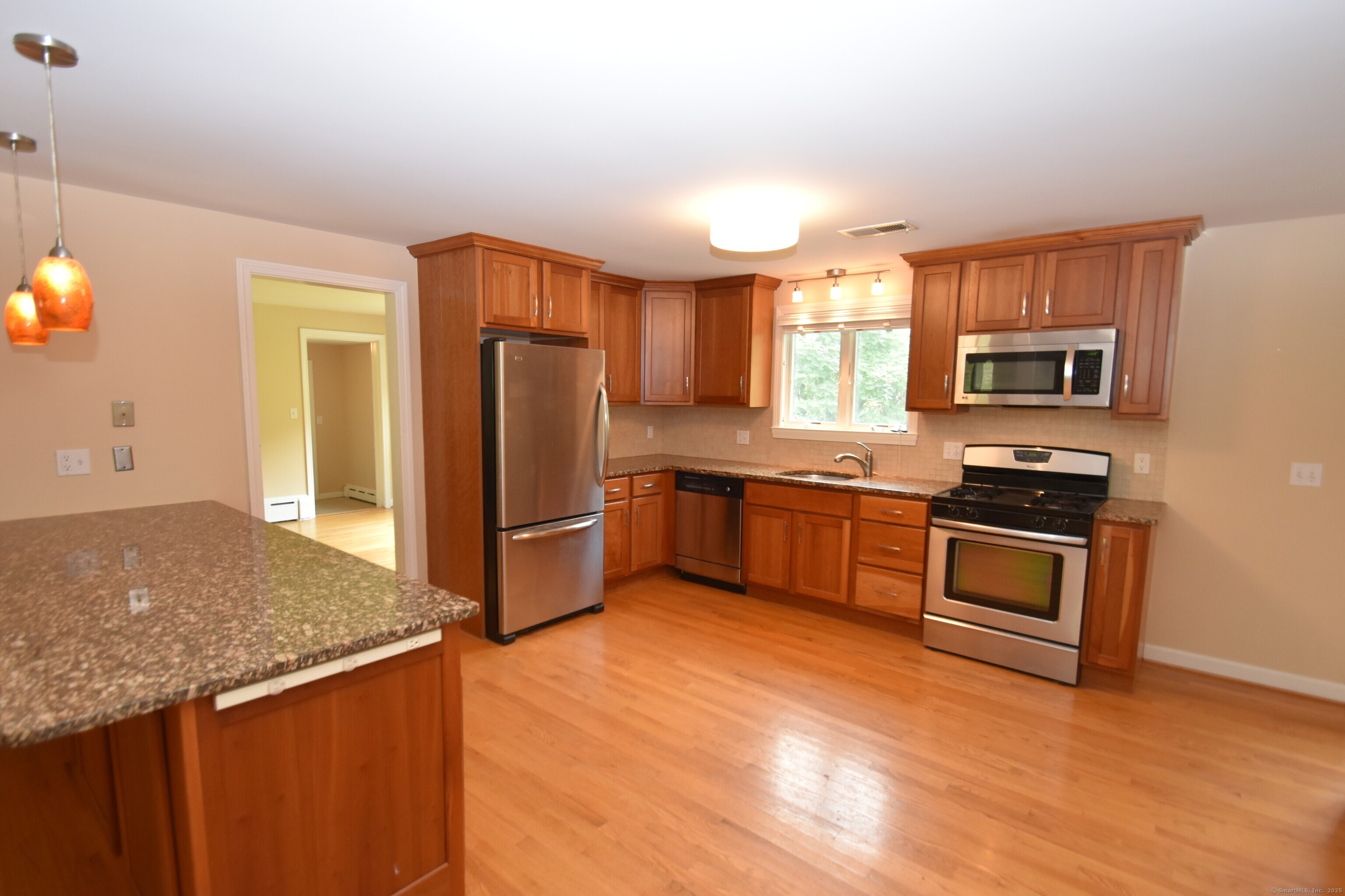 Location, Location, remodeled Cape Cod property. This home features a first-floor primary bedroom suite and an open kitchen/dining room layout, complete with a breakfast island, granite countertops, and stainless steel appliances. The spacious living room extends from front to back and includes a wood-burning fireplace. On the second floor, you'll find two bedrooms and a full bathroom. The lower level offers a large entertainment area with another wood fireplace and access to a garage. The property boasts a generous open yard and includes two garages-one located at the driveway and another on the lower level around back. Conveniently situated near the Village of South Glastonbury and the surrounding farming community, this location is also within a short distance of the Town Grange swimming pool and Cotton Hollow Preserve. A truly inviting home in a desirable area!