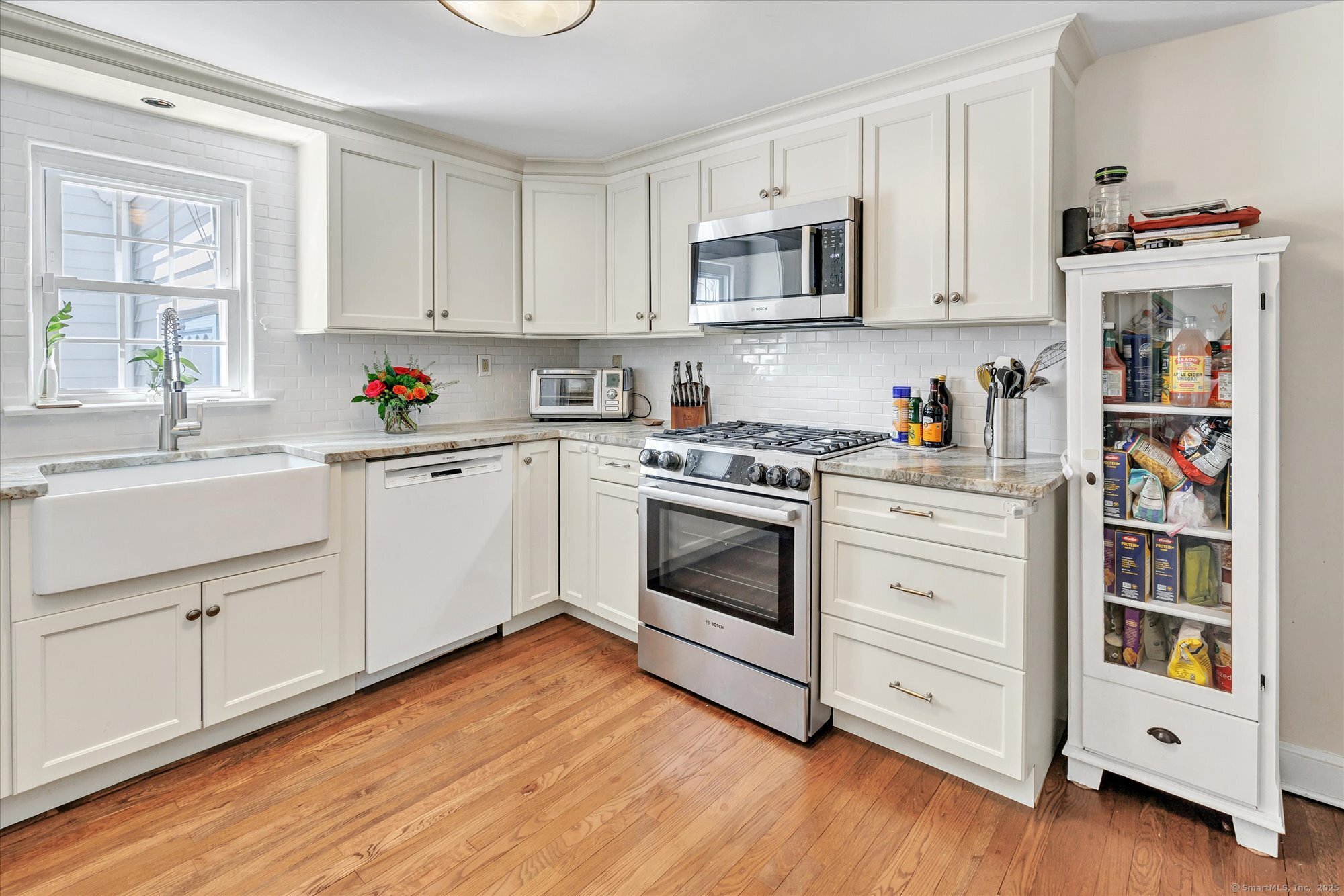 Welcome to 309 Freeman Avenue! This classic expanded Cape is set on a desirable corner lot in Stratford's sought-after Paradise Green neighborhood. A custom-built home, it features a unique open layout designed for both comfort and space. Step through the front door into a large front-to-back living room with a cozy fireplace. A seamless flow into the dining area and remodeled kitchen, complete with new cabinets, granite countertops, farmers sink, and newer stainless steel appliances. The first floor also offers a bedroom and a beautifully updated full bath. Upstairs, you'll find two additional bedrooms and another remodeled full bath. Outside, enjoy your private fenced-in backyard with a brick patio-perfect for relaxing or entertaining as the seasons change. Additional highlights include gas heat, central air, newer windows, and low-maintenance vinyl siding. All this within walking distance to shopping, dining, and the vibrant Paradise Green, with easy access to major highways. Don't miss the opportunity to make this move-in ready home yours-schedule a showing today!