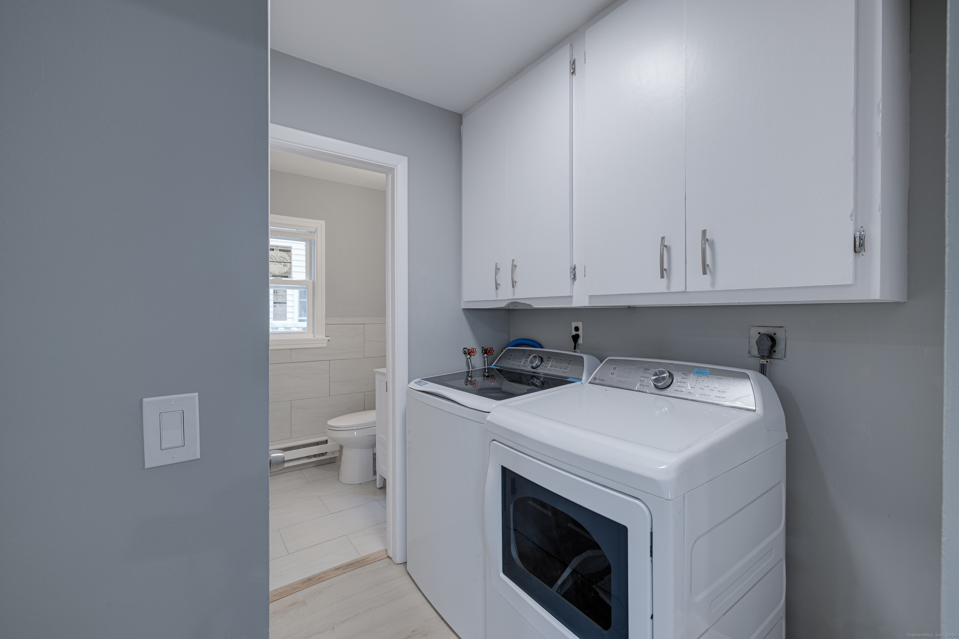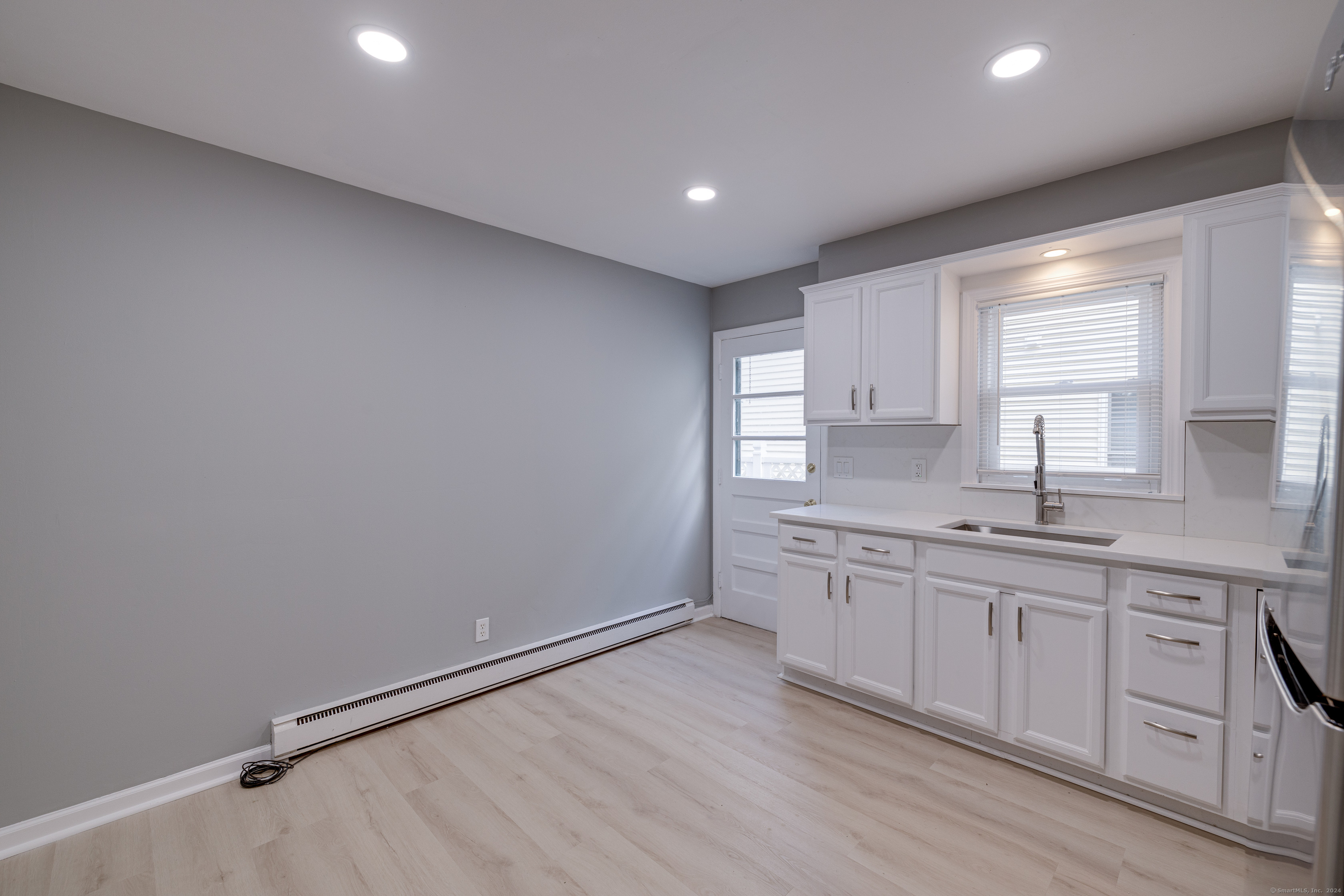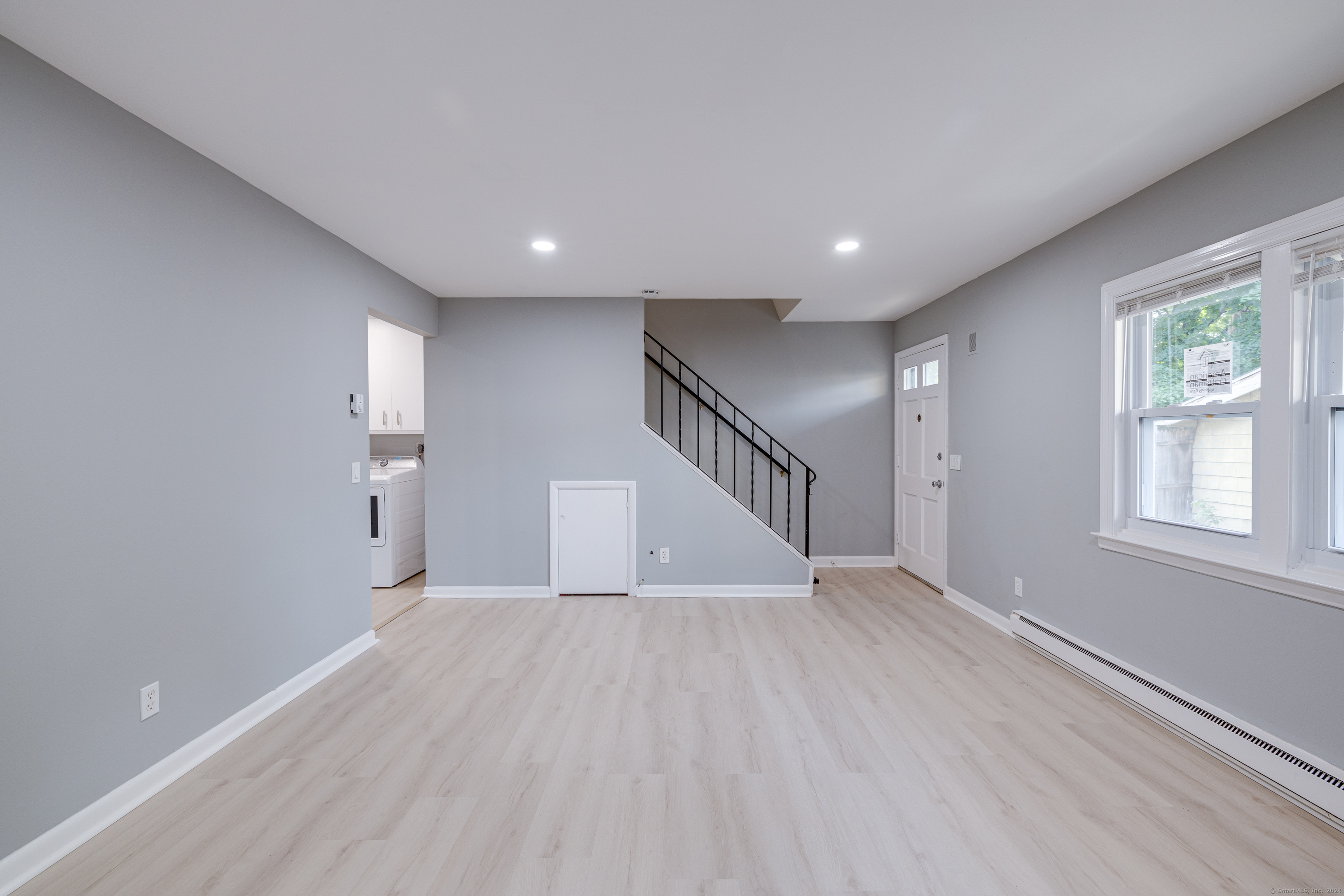 Looking for a charming and renovated place to live in the Cove neighborhood of Stamford? Look no further. This renovated 2 bedroom, 1.5 bath home features quartz kitchen countertops, stainless steel appliances, hardwood floors, and in-unit laundry. The main level of this features a spacious living room, eat-in-kitchen, half bathroom, and laundry area. On the upper level, you'll find two bedrooms and a full bathroom with double vanity. 2 off-street parking spaces included within a shared driveway. Landlord covers all exterior maintenance & trash. Good credit, income verification, background check, and rental application are required. Schedule a tour before it's gone. 2 months security. Tenant pays electric. Trash and water included.