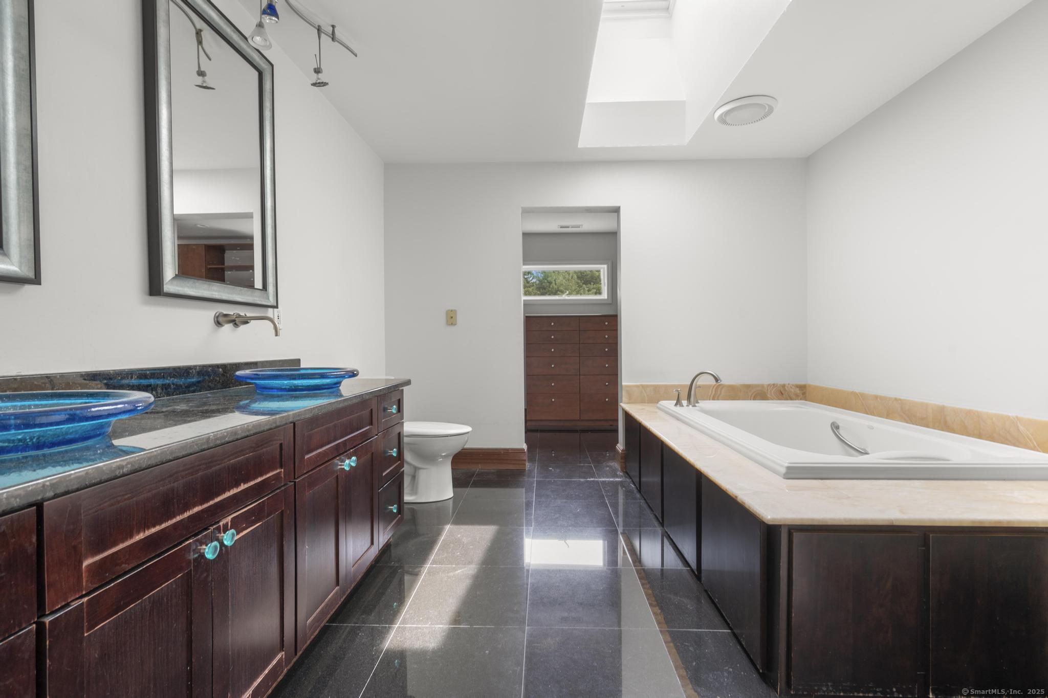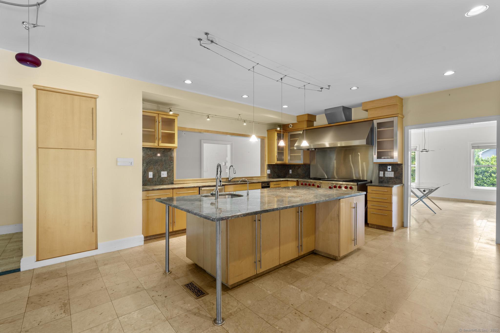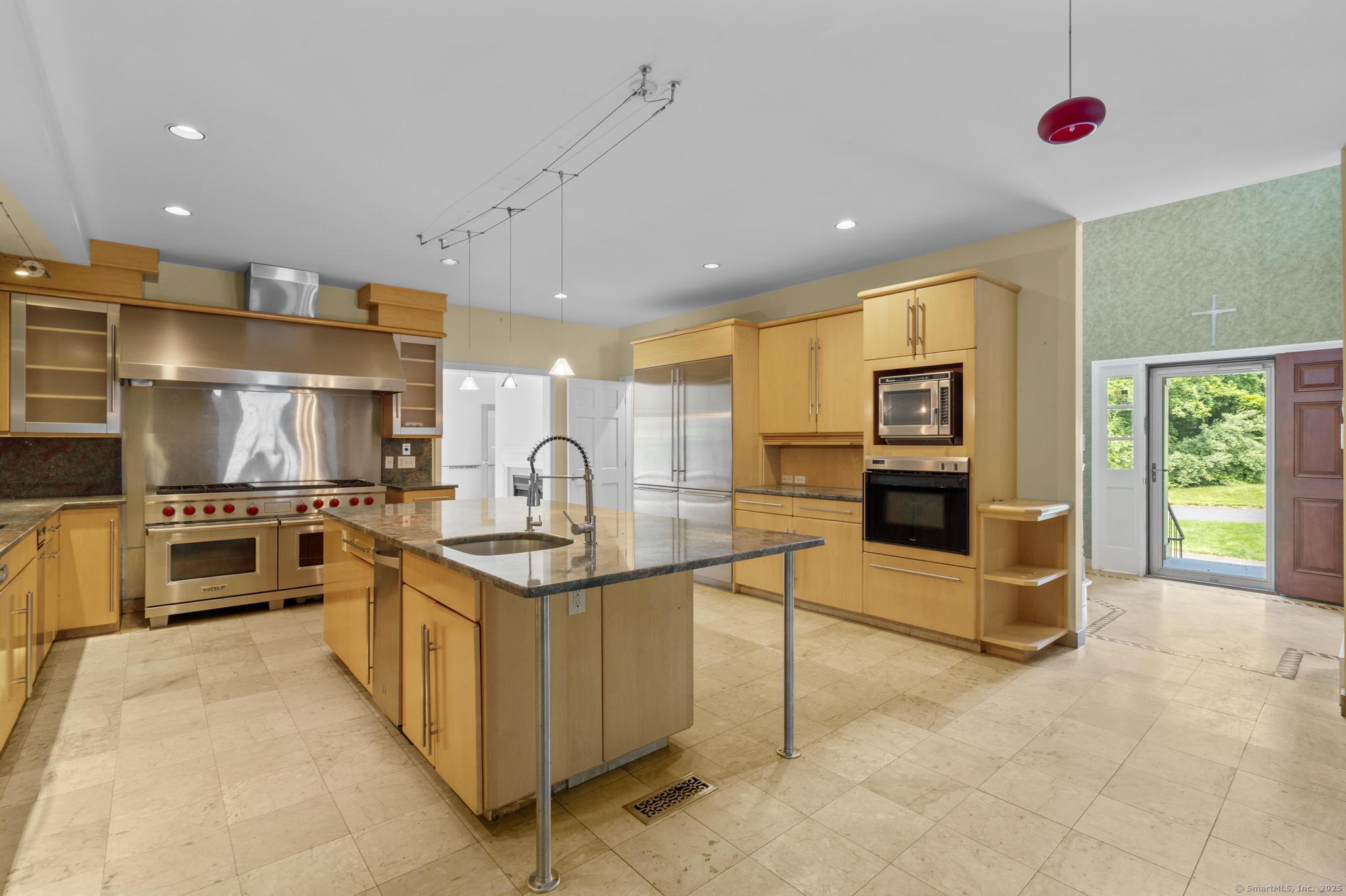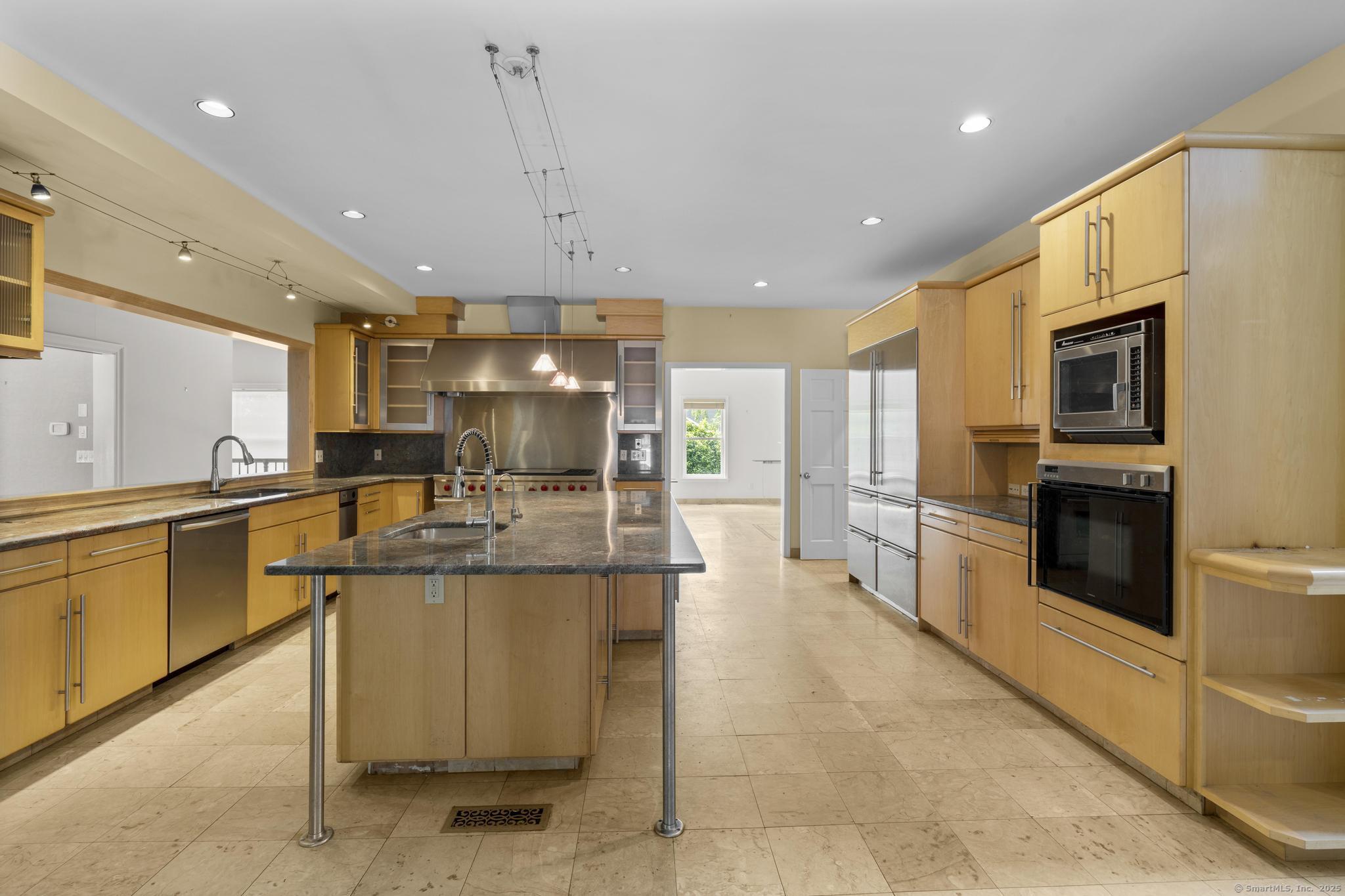 Unique opportunity in one of Orange's most coveted neighborhoods w/over 8,000 sq ft of living space! An entertainer's dream layout, set on a 1.15 acres, a half-circle driveway & stone-covered front porch. Step inside to a 2-story foyer which blends formal & casual spaces. There is a living room that flows into the formal dining room, ideal for family gatherings. The kitchen is a chef's dream, outfitted with high-end commercial appliances including a Wolf range, hood, Sub-Zero fridge, built-in microwave, central island, granite countertops & abundant cabinetry. Just beyond the kitchen, a great room with a cozy gas fireplace opens to a deck w/a hot tub. Entertain in style in the movie theater room, complete with a wood-paneled ceiling, projector & a rooftop deck above the garage. The main level also includes 2 half baths, an office & plenty of flexible space. Upstairs, you'll find a well-appointed laundry room, 2 bedrooms w/ a shared full bath, an additional bedroom w/an attached sitting room & en suite bath & the primary suite offering a bath w/a steam shower, whirlpool tub& dual sinks & 2 walk-in closets, a separate dressing room with sink, vaulted ceilings & private office. The fully finished lower level offers more versatility w/ 2 distinct sections: 1 side has a walk-out space ideal for a home office w/bar area & half bath, while the other side includes a wine cellar, rec room, extra bedroom, full bath, & direct access to the massive 6-car tandem garage.