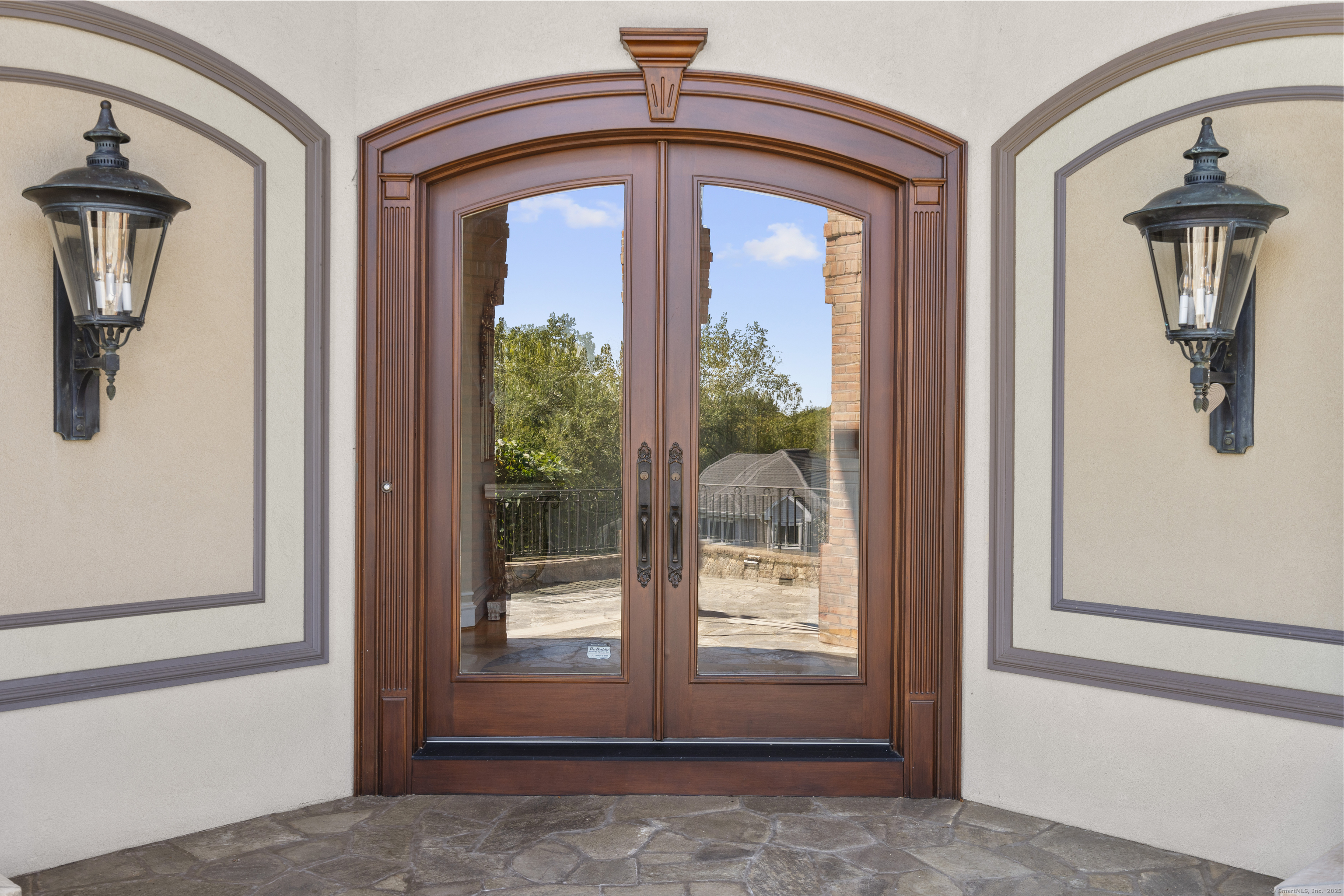 A true masterpiece of architecture and design, this one-of-a-kind estate commands attention from every angle. Perched in an exclusive enclave, the residence boasts breathtaking, unobstructed views of the Hartford skyline, offering a rare combination of elegance, privacy, and city vistas. The stately brick exterior, accented by soaring turrets and expansive walls of glass, exudes timeless grandeur. By day, the home is filled with natural light that pours through oversized windows, while by night, dramatic architectural lighting transforms the estate into a glowing landmark. Inside, craftsmanship meets modern luxury at every turn. The grand foyer makes a striking first impression with intricate inlaid flooring, sweeping staircase, and custom ironwork. Multiple living areas showcase floor-to-ceiling windows framing skyline views, while the gourmet kitchen is a chef's dream, outfitted with rich custom cabinetry, premium appliances, and granite counters. Designed for both intimate living and large-scale entertaining, the home features a lower-level entertainment suite complete with stone archways, a full bar, and game room. Luxurious bathrooms, elegant finishes, and curated design details elevate every space. Outdoor terraces and balconies extend the living experience, perfect for morning coffee with city views or evening gatherings under the stars. This estate is not simply a home-it's a statement. One of one.
