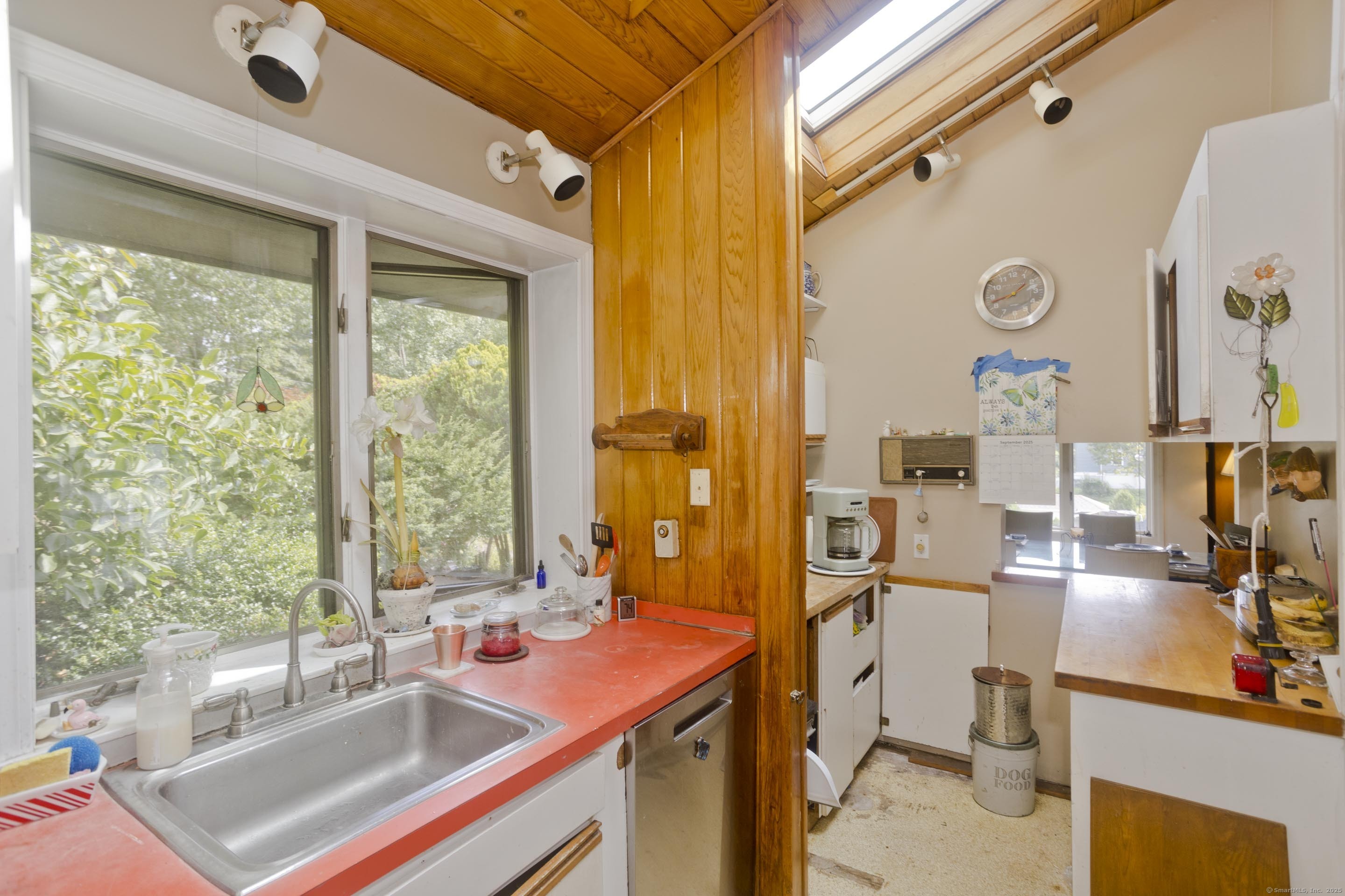 Modern contemporary sitting on 200ft of waterfront beauty on the South Pond leg of Congamond Lakes. Roll up your sleeves to build some sweat equity with loads of potential and space with just under 1 acre of land! Main house offers 2 master suites one on each level, soaring ceilings in the living room with wonderful natural light and fireplace. The lower level boasts a large rec room with wood stove, laundry room, full bath and in-law apartment with private deck. The property also offers a separate quaint guest house. Outside the home offers a well-built carriage barn used as a workshop with lean-to and large loft. Bring this beauty back to life and enjoy many years of vacation at home bliss.