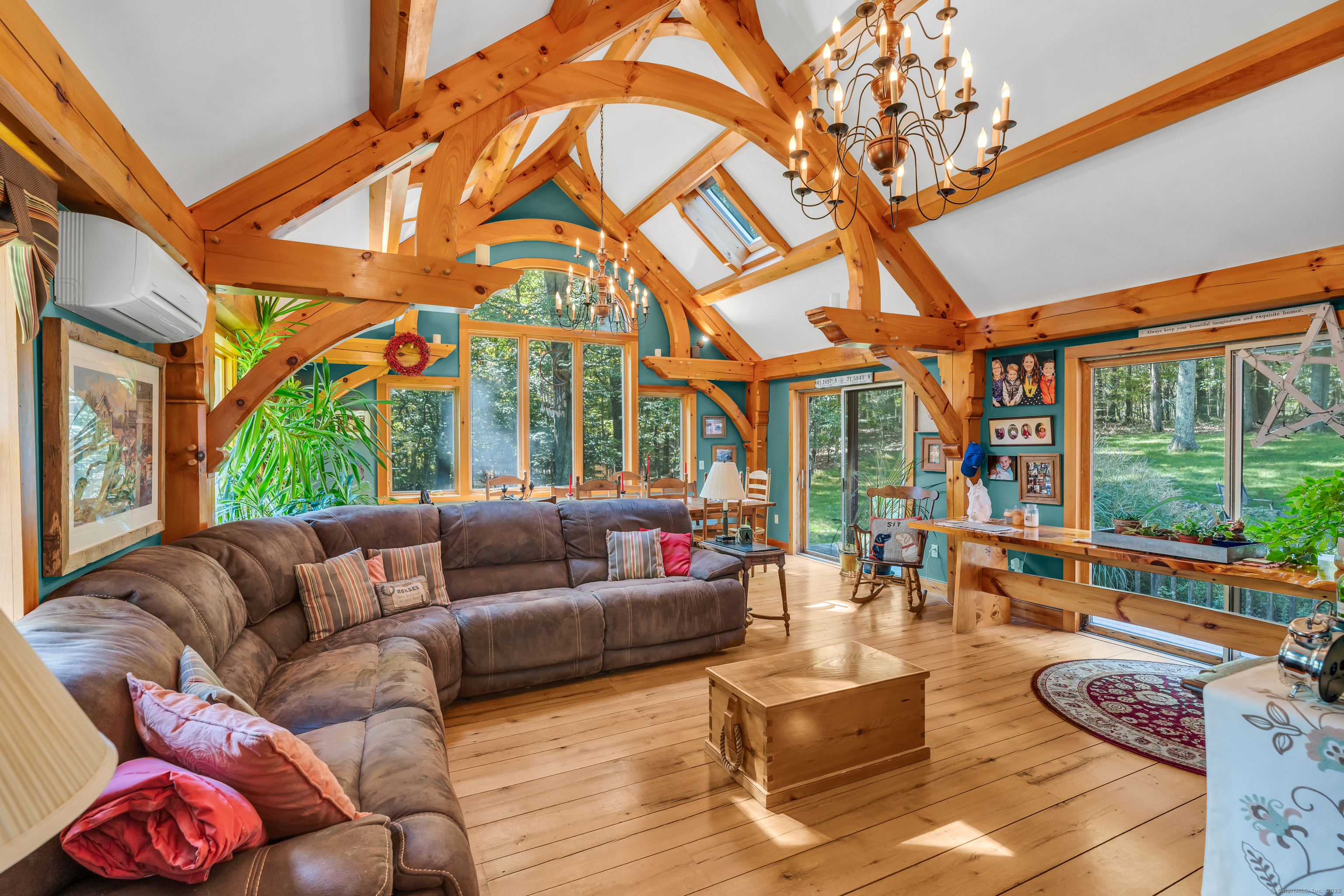 Enchanting Cape with Artisan Post & Beam Charm - Just Down the Road from Chester Village! Tucked away on 2 acres of picturesque land, this whimsical 3-bedroom, 2.5-bath Cape Cod home invites you to live among nature in style. Only a short distance from Cedar Lake and Chester Village, you'll have easy access to endless outdoor adventures and world-class restaurants and shopping just moments away. Inside, the home is a masterpiece of artisan post and beam craftsmanship, with a spacious great room featuring soaring ceilings, skylights that bathe the space in natural light, and exquisite woodwork that brings warmth and character to every corner. The thoughtful layout includes a generous primary suite with its own bath, two cozy additional bedrooms, a full bath, and a convenient powder room for guests. Outside, the property is equally enchanting. The oversized detached garage and expansive workshop, both with the artisan craftsmanship of the main house, provide plenty of room for your hobbies and projects, while the barn and stables are ready for your animals. Whether you dream of an equestrian escape or simply crave a peaceful haven to enjoy nature, this home offers it all. From the captivating craftsmanship to the stunning natural surroundings, this is more than just a home, it's a retreat, a sanctuary, and a lifestyle.