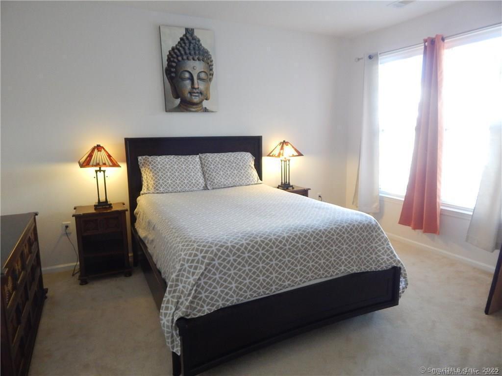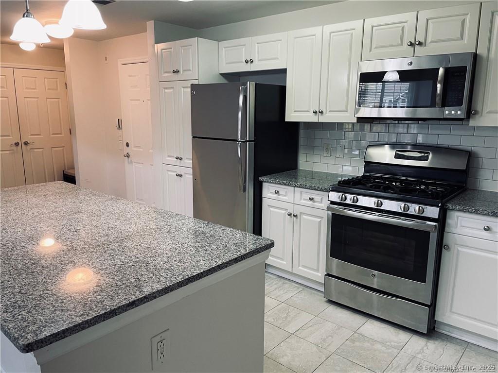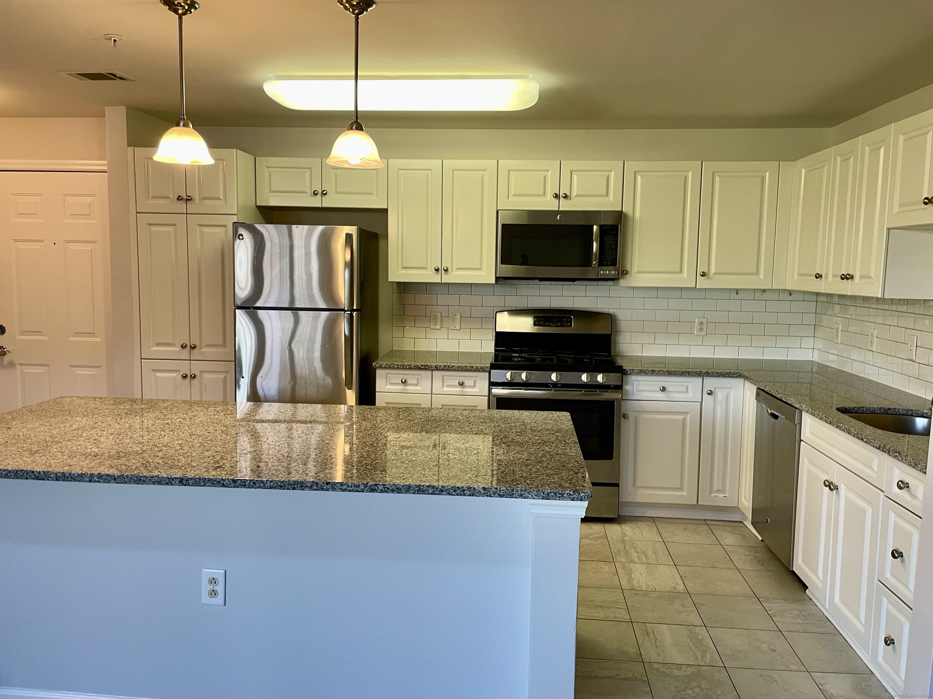 Freshly painted unit with all new carpeting, lovely sunny 4th floor unit (top floor) overlooks the courtyard. Enjoy the change of seasons from your private balcony,there is a cute bistro set that will stay.No grills allowed on balcony. Largest unit in the complex with a loft and office/storage room. This area is perfect for a home office or cozy den. The family room has soaring ceilings and access to the balcony. The primary bedroom has a full bath, balcony and there is a flat screen TV attached to the wall that will stay. On the other side of the unit you will find two bedrooms and a full bath. There is an exercise room and club house room on site. This unit is next to the club house. Garage parking for one car, there are ample open spaces for guest parking. Located minutes to the heart of downtown where you can enjoy shopping, restaurants, Mill River Park is across the street. This complex is in a walkable neighborhood...Dunkin' Donuts is across the street, Target and the library are a block away, great places to eat and everything that you need is nearby. No pets and no smoking in the unit. Tenants pays all utilities ,cable, internet,including water, sewer usage fee. Subject to an excellent credit check,(score 750+)background check, income verification. Copy of driver's license.Tenant pays for renters insurance.Tenants to abide by condo rules. Furnished Photos are from when owner lived in the unit there.