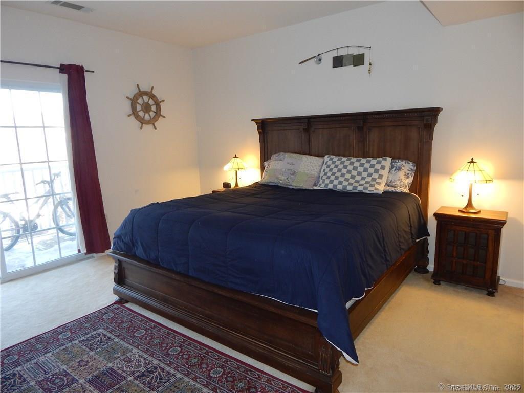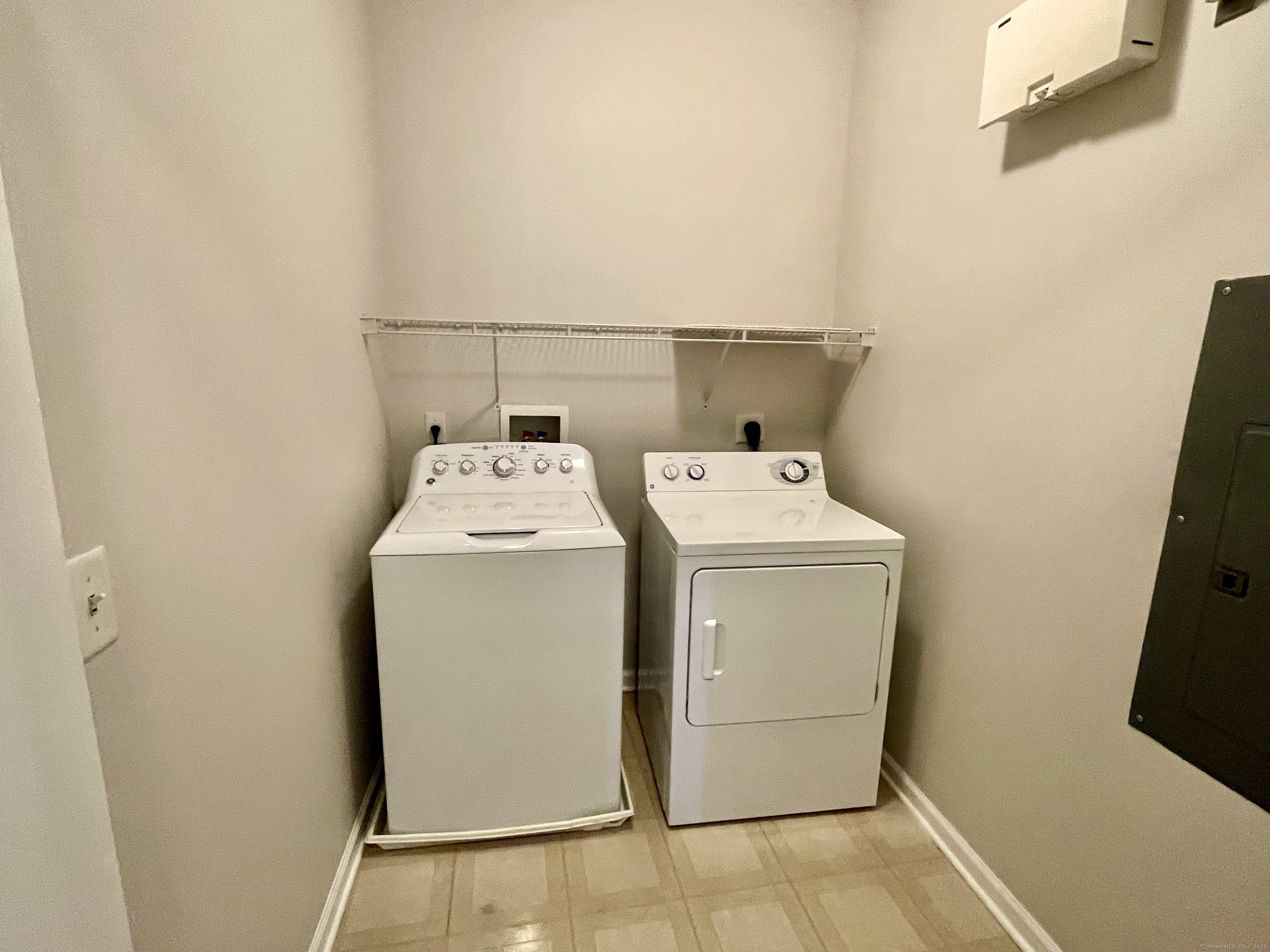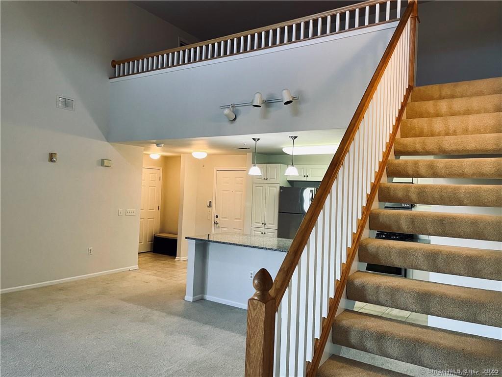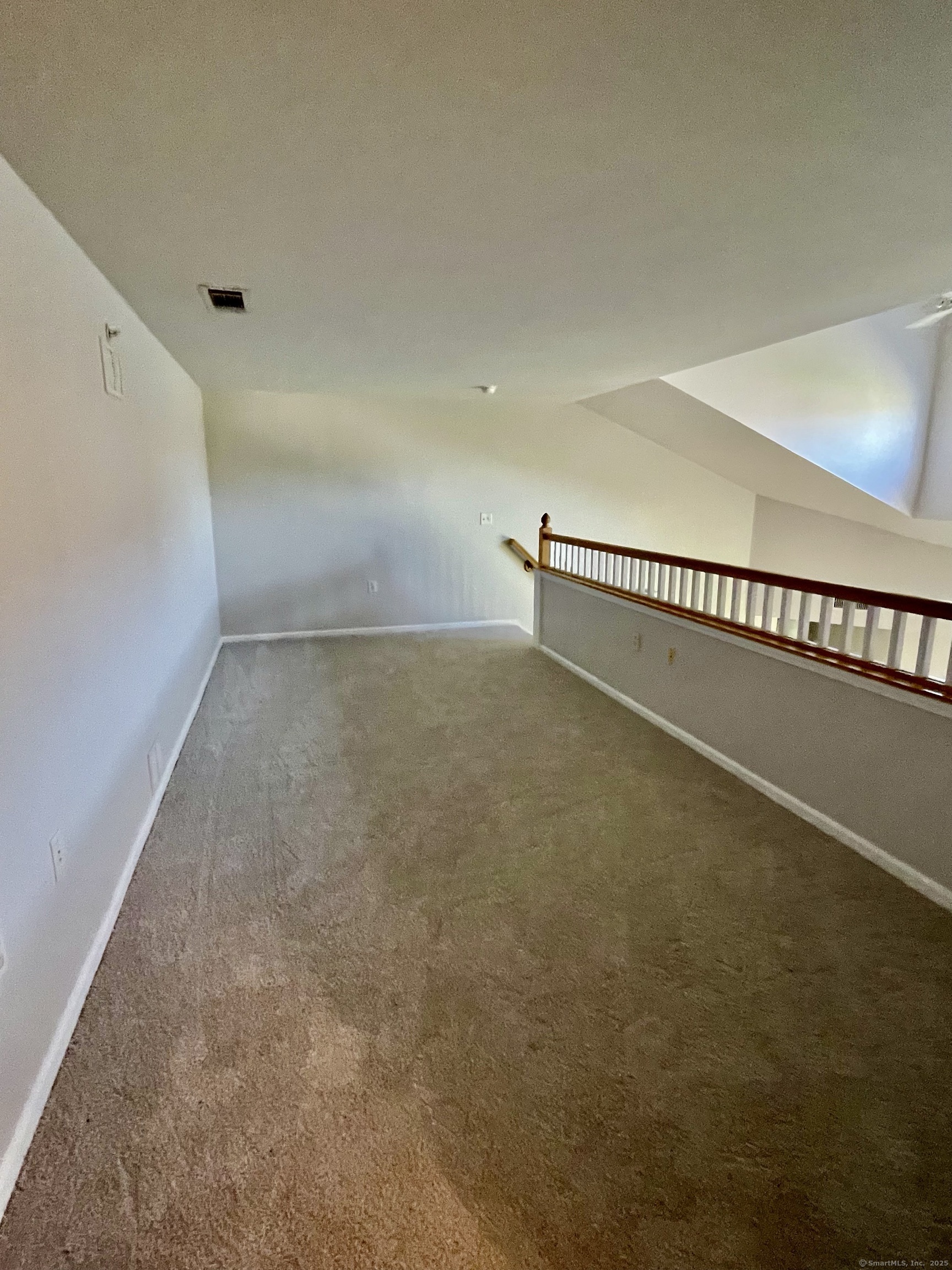 Freshly painted unit with all new carpeting, lovely sunny 4th floor unit (top floor) overlooks the courtyard. Enjoy the change of seasons from your private balcony,there is a cute bistro set that will stay.No grills allowed on balcony. Largest unit in the complex with a loft and office/storage room. This area is perfect for a home office or cozy den. The family room has soaring ceilings and access to the balcony. The primary bedroom has a full bath, balcony and there is a flat screen TV attached to the wall that will stay. On the other side of the unit you will find two bedrooms and a full bath. There is an exercise room and club house room on site. This unit is next to the club house. Garage parking for one car, there are ample open spaces for guest parking. Located minutes to the heart of downtown where you can enjoy shopping, restaurants, Mill River Park is across the street. This complex is in a walkable neighborhood...Dunkin' Donuts is across the street, Target and the library are a block away, great places to eat and everything that you need is nearby. No pets and no smoking in the unit. Tenants pays all utilities ,cable, internet,including water, sewer usage fee. Subject to an excellent credit check,(score 750+)background check, income verification. Copy of driver's license.Tenant pays for renters insurance.Tenants to abide by condo rules. Furnished Photos are from when owner lived in the unit there.