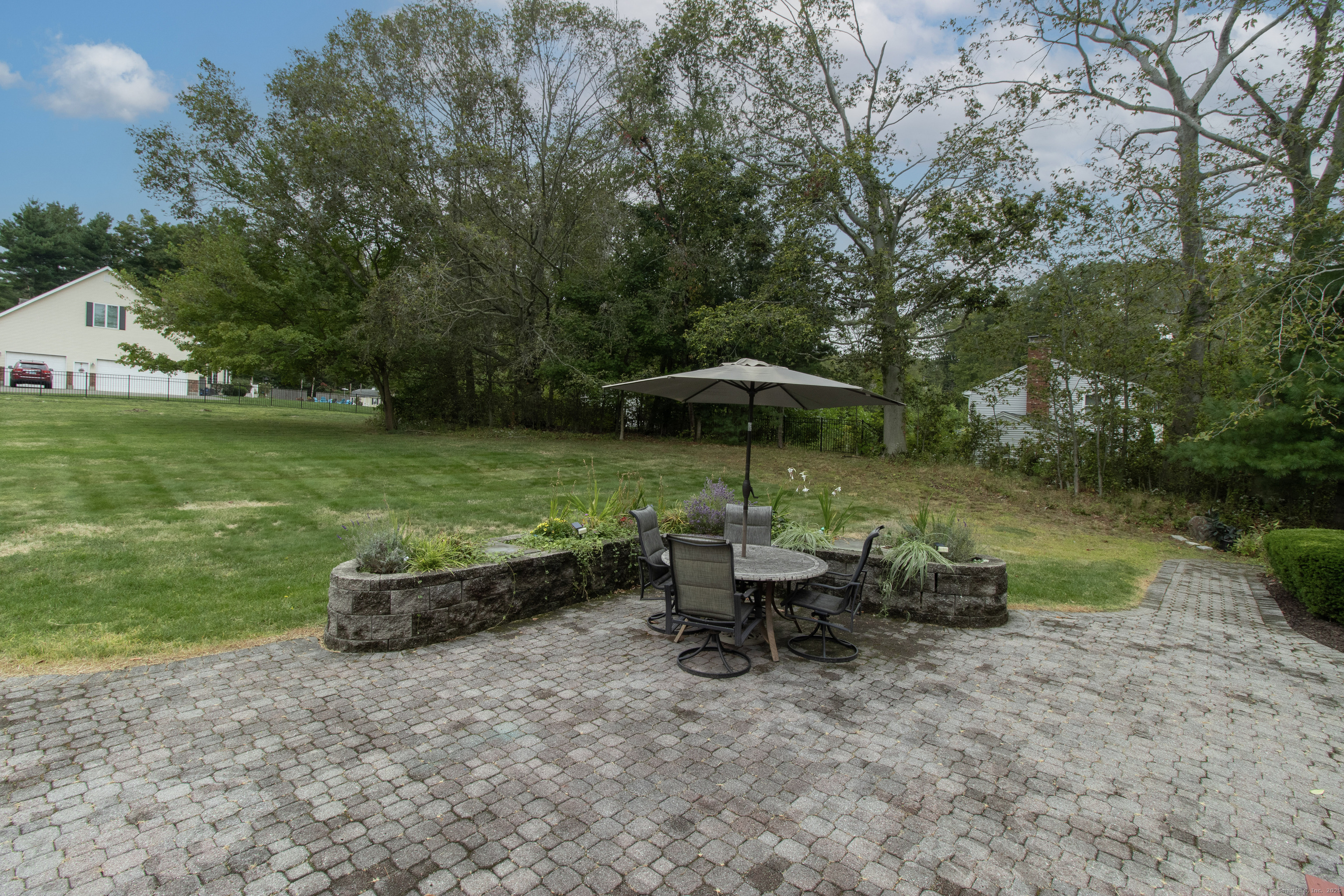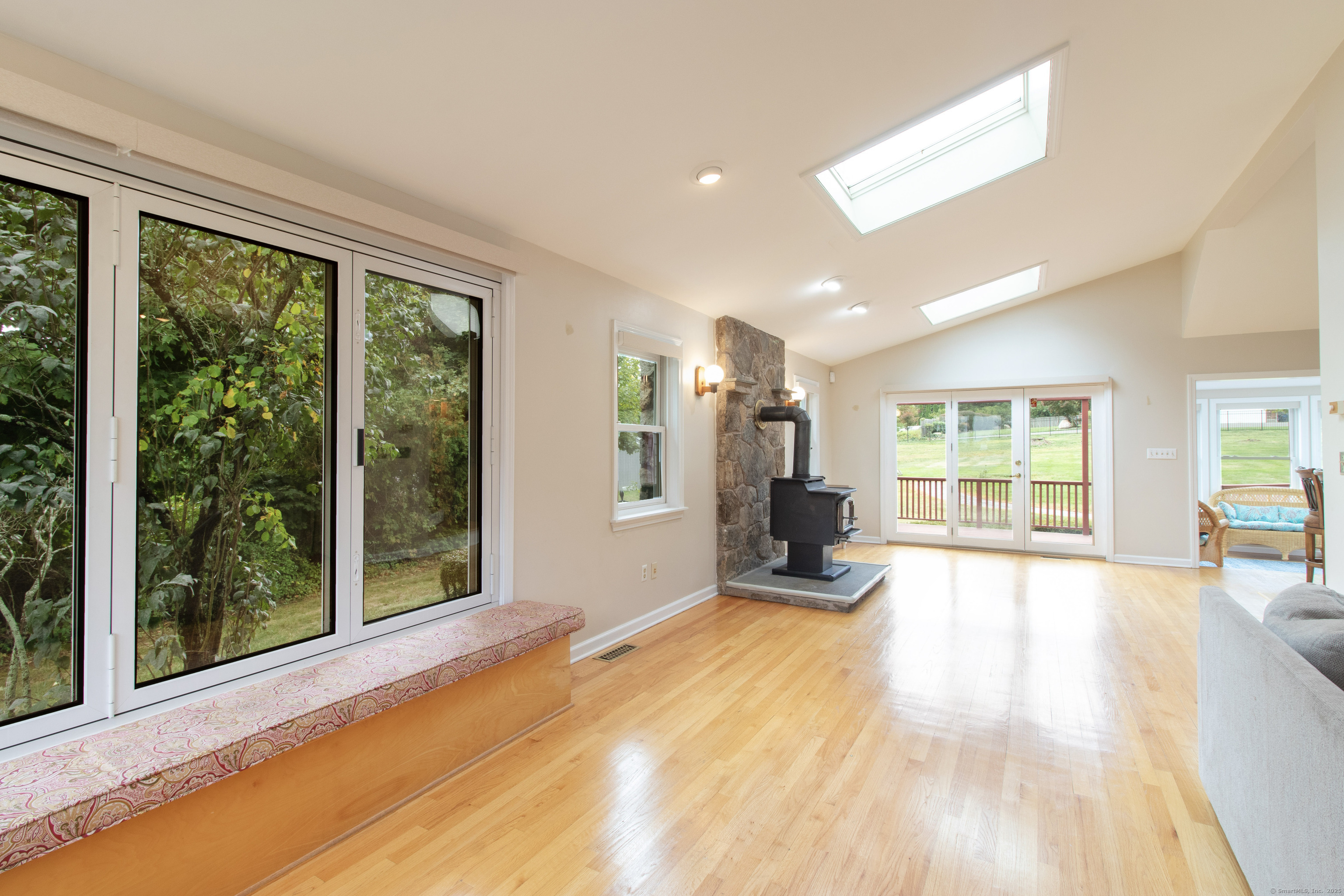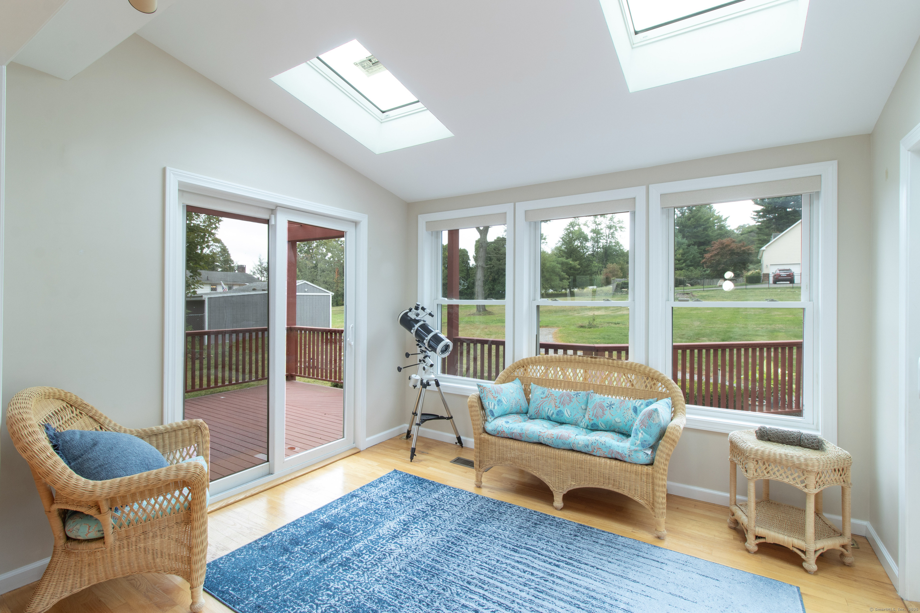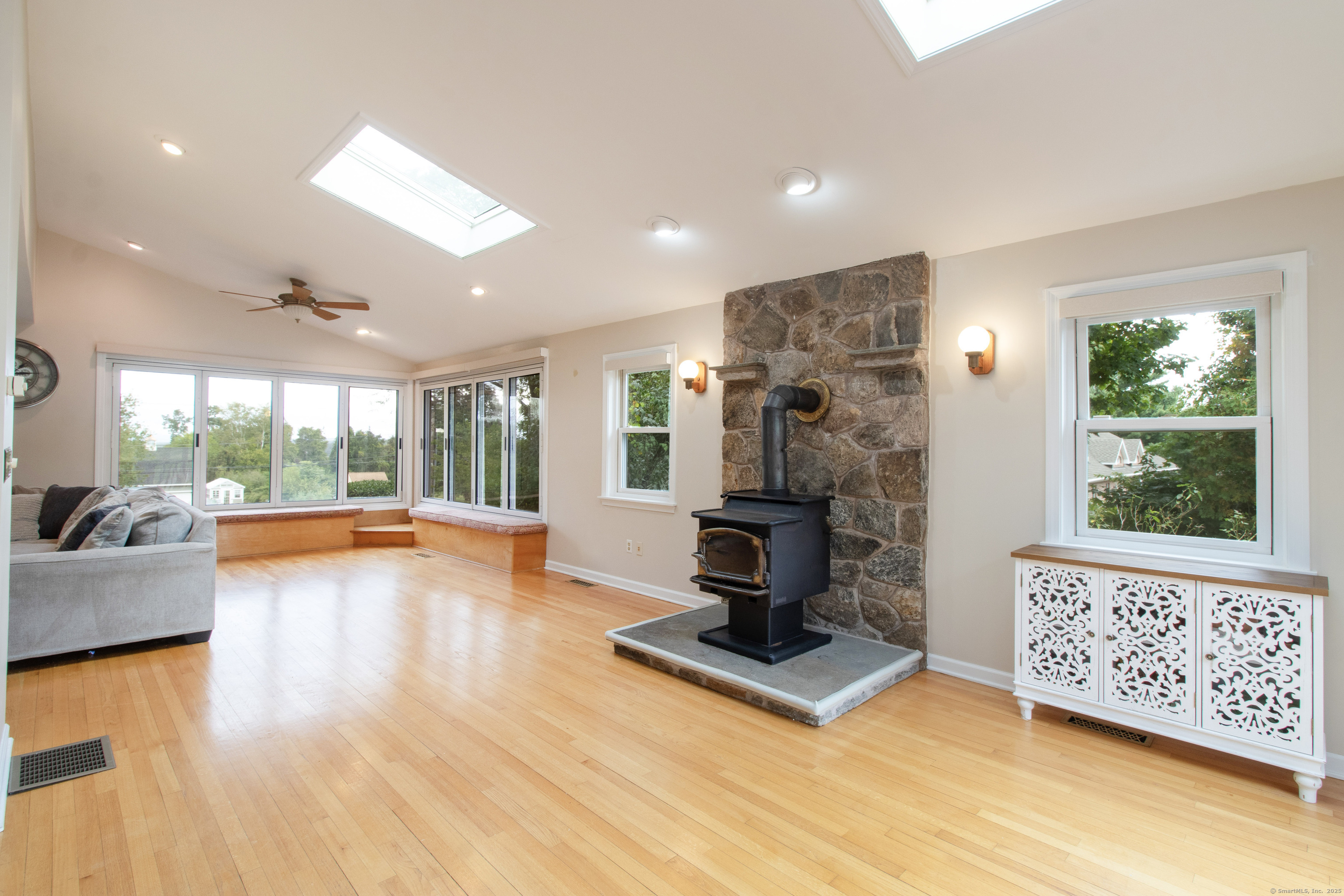 Welcome to this stunning home perched on a scenic cul-de-sac offering excellent price support & exceptional curb appeal. Set on a beautifully landscaped acre, the exterior features cedar-impressed siding, striking stone accents, & charming stone walls framed by lush plantings. Step inside to a bright, sun-filled open floor plan w/walls of windows that bring the outdoors into every room. The tile entry leads to an inviting eat-in kitchen w/maple cabinetry, granite counters, tiled backsplash, & a breakfast bar. Just off the kitchen, a cozy sunroom w/sliders access to the patio and pergola makes the perfect spot for morning coffee while overlooking the gorgeous backyard. The main level also includes a formal living room & dining room, seamlessly connected for entertaining, plus a spacious family room lined with windows for natural light. A full bath with tub/shower, a half bath, & a generously sized laundry room complete this level. Upstairs boasts a king-size primary bedroom with double closets, and two queen-size bedrooms - all serviced by a beautifully appointed full bath w/custom tile shower. The lower level offers endless options -whether you're dreaming of a home gym, recreation space, or hobby area & walks out to the front of the property. Peace of mind comes with recent updates, including a 7-year-old AC system, 10-year-old furnace, 5-year-old roof, & a transferable CT Basement System warranty & city water/sewer. This smart energy efficient home is not to be missed!