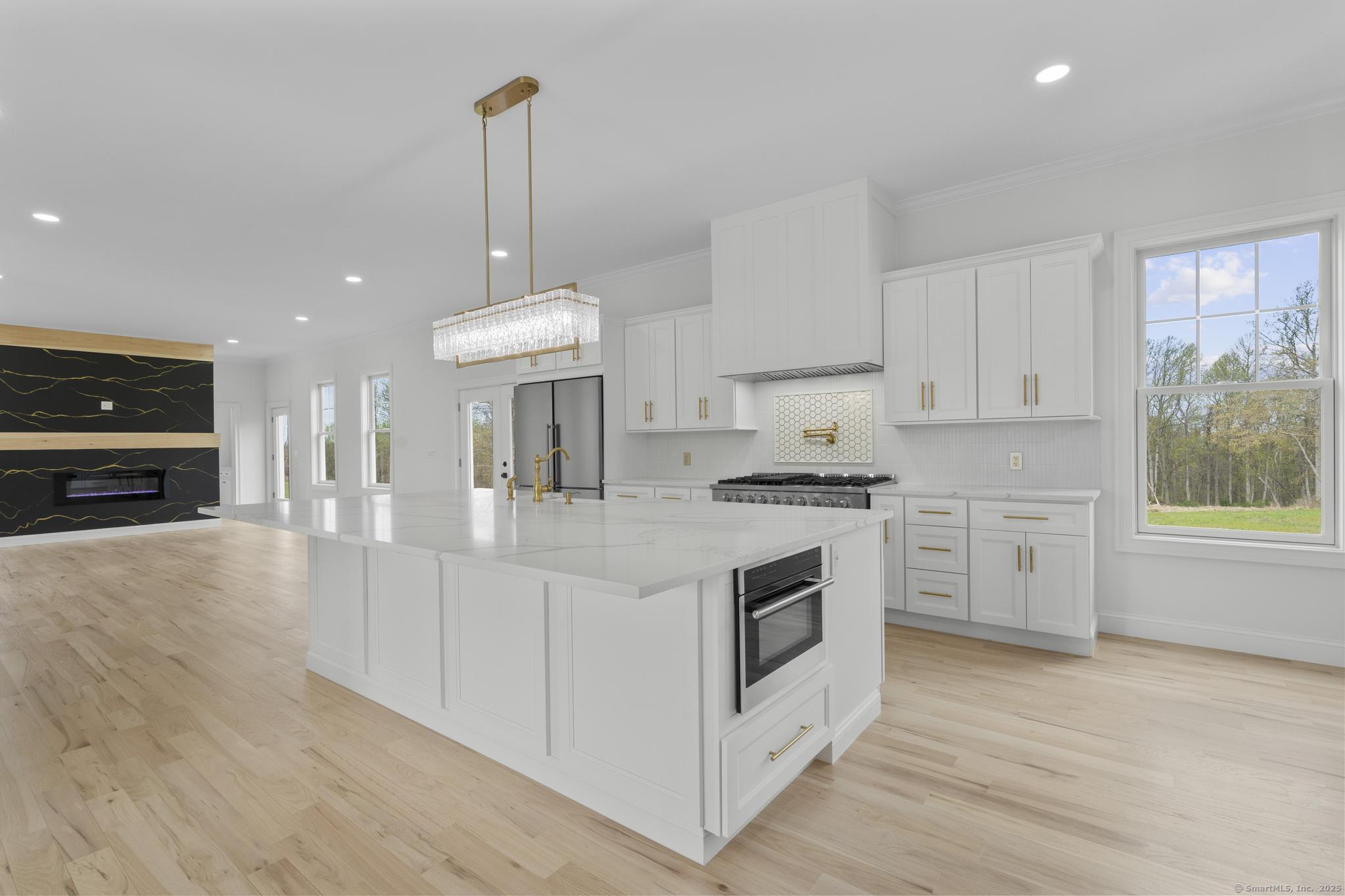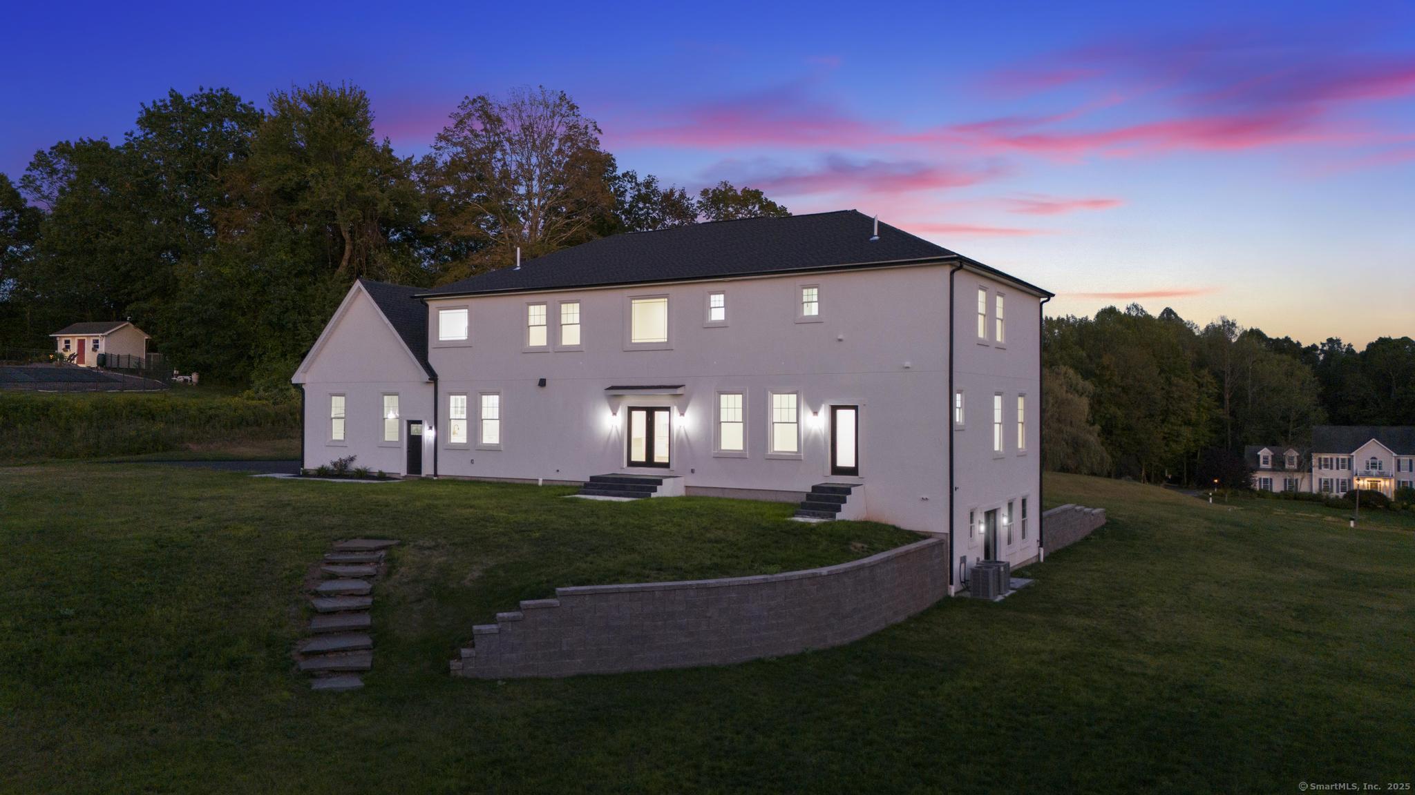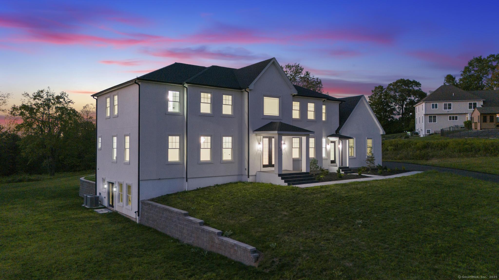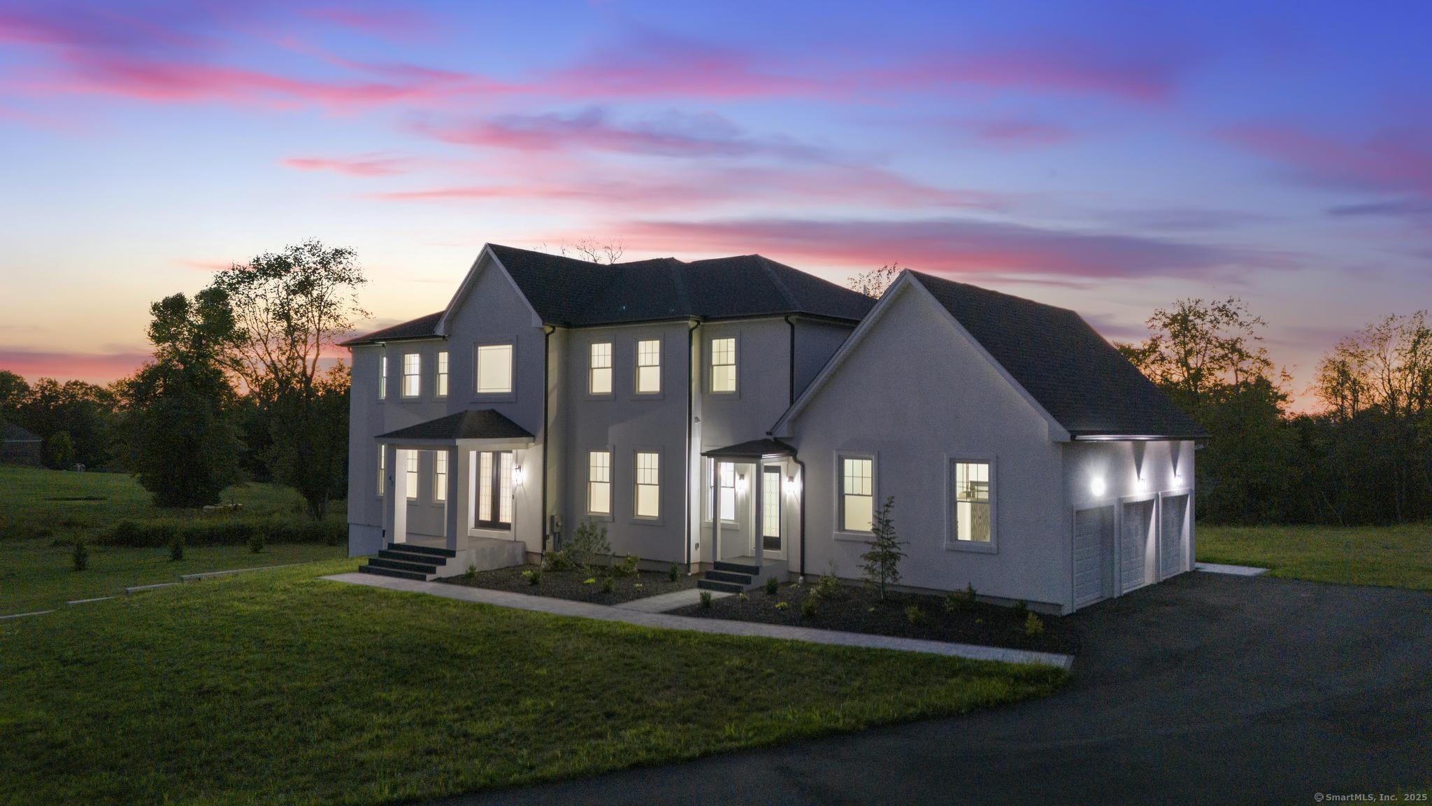 Straight out of a magazine - 42 Pine Ledge Trail, an exceptional new construction Colonial blending timeless elegance & modern luxury. Nestled on just under 4 private acres, this home is set back from the road on an elevated lot, offering seclusion. As you approach via the long, paved driveway, you'll notice a stunning stucco exterior, landscaped grounds, paver walkways, a grand covered entry with stately columns & double front doors & a 3-car garage. Step inside to a breathtaking 2-story foyer w/soaring 19-ft ceilings. The open-concept main level features 10-ft ceilings, creating an airy & welcoming space ideal for entertaining. The layout flows effortlessly - from the sun-drenched living room into the home office, or study. Continue into the stylish wet bar area, complete w/ seating & a wine chiller, which connects seamlessly to an eat-in space highlighted by a dramatic accent wall & floating fireplace - a true statement piece. The heart of the home is the gourmet chef's kitchen, boasting a 10x6 center island, quartz counters, top-of-the-line appliances, dual sinks & a walk-in pantry. A formal dining room & 2 beautifully appointed half baths complete this level. Upstairs, you'll find a flexible second living area/sitting room, along w/ 4 generously sized bedrooms. One features its own private en-suite, while another full bath serves the remaining bedrooms. The primary suite offers a spacious walk-in closet & a spa-like bath w/quartz counters, jacuzzi tub & a walk-in shower.