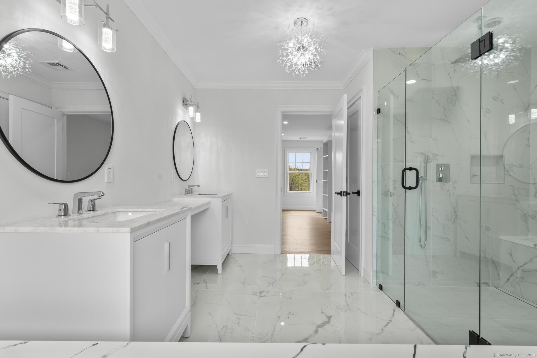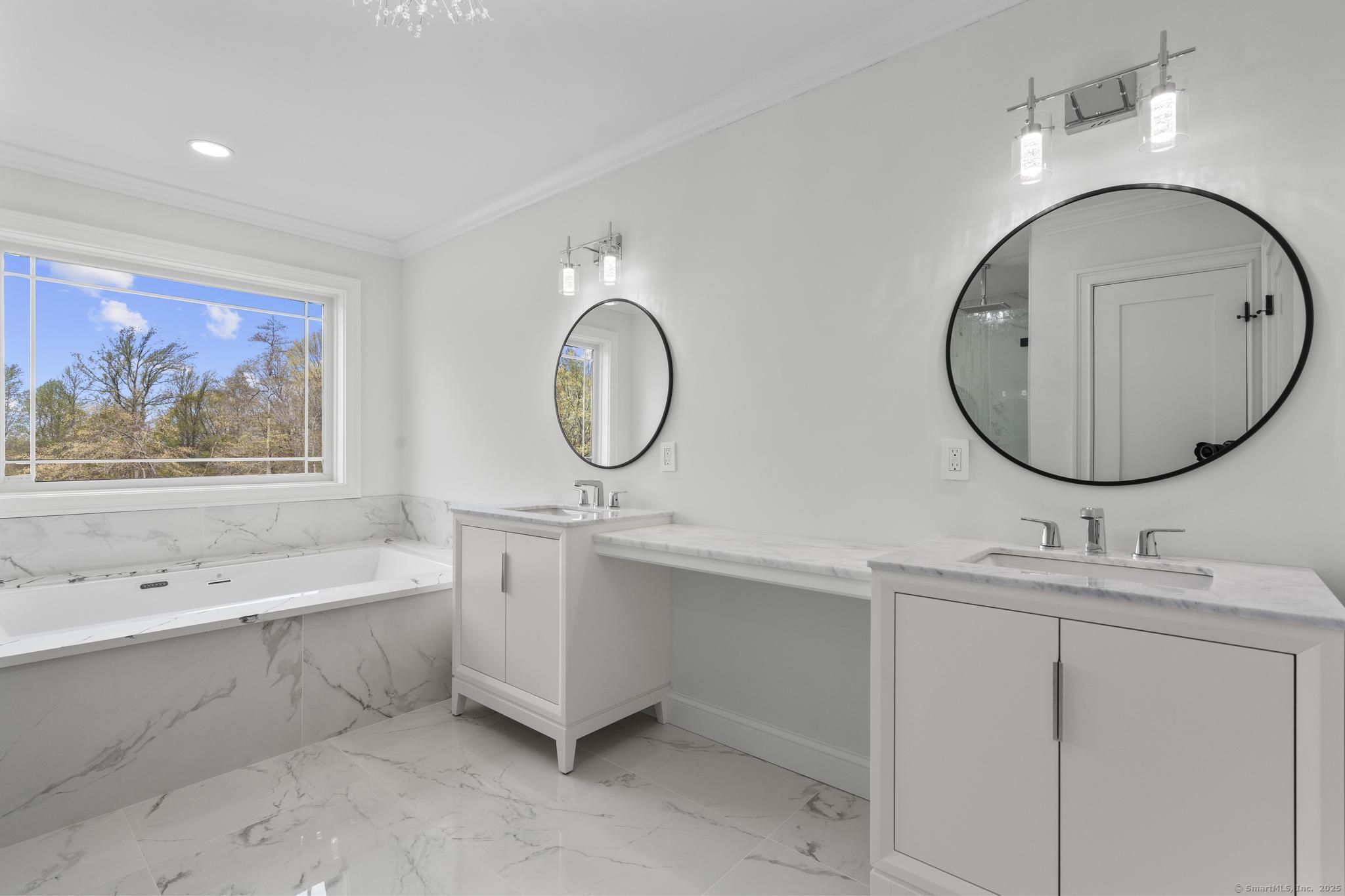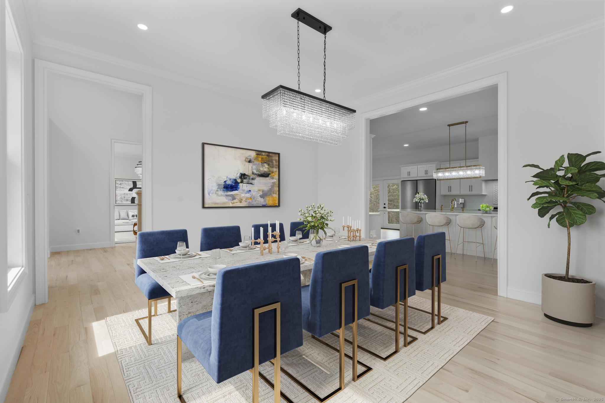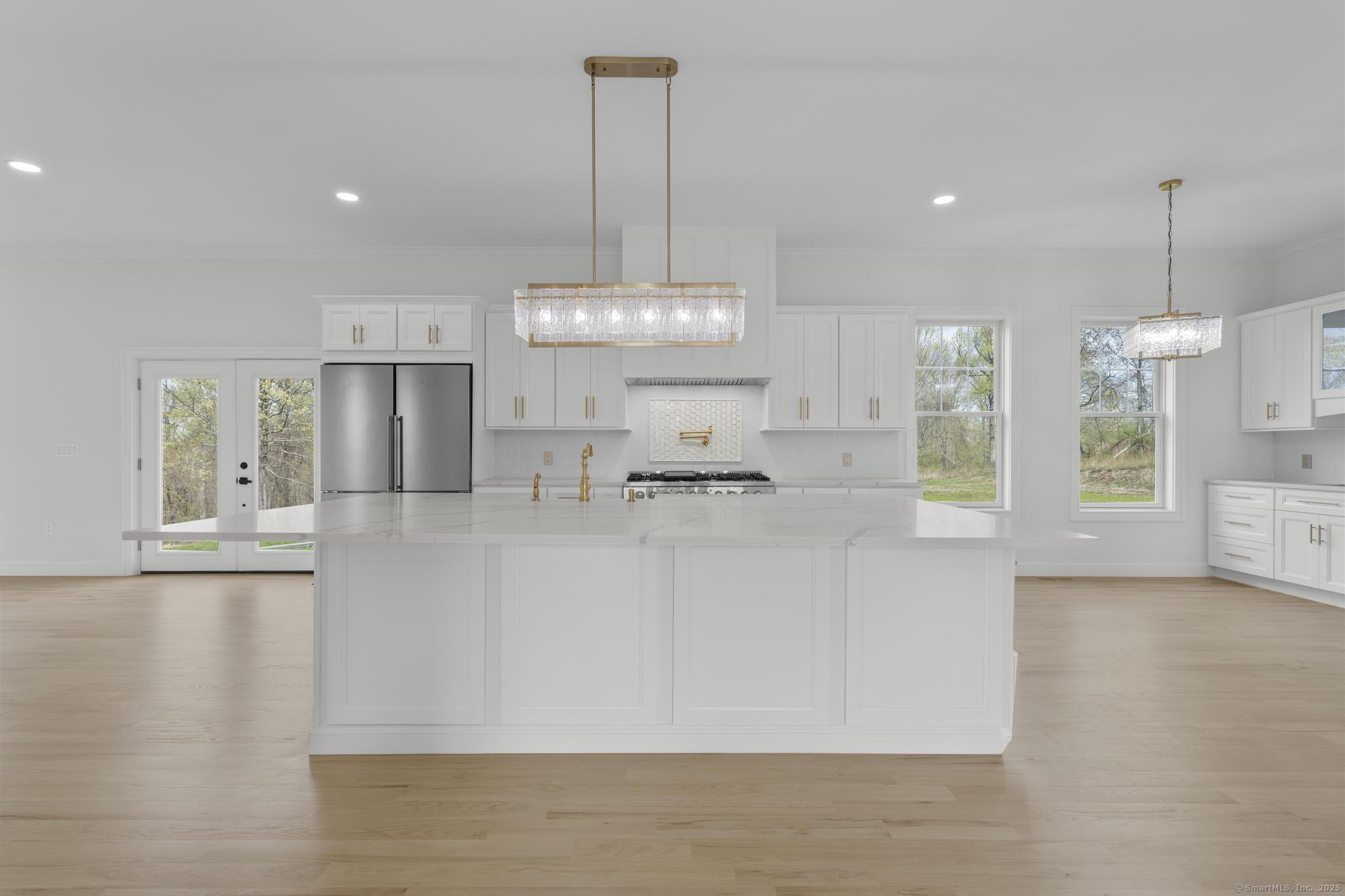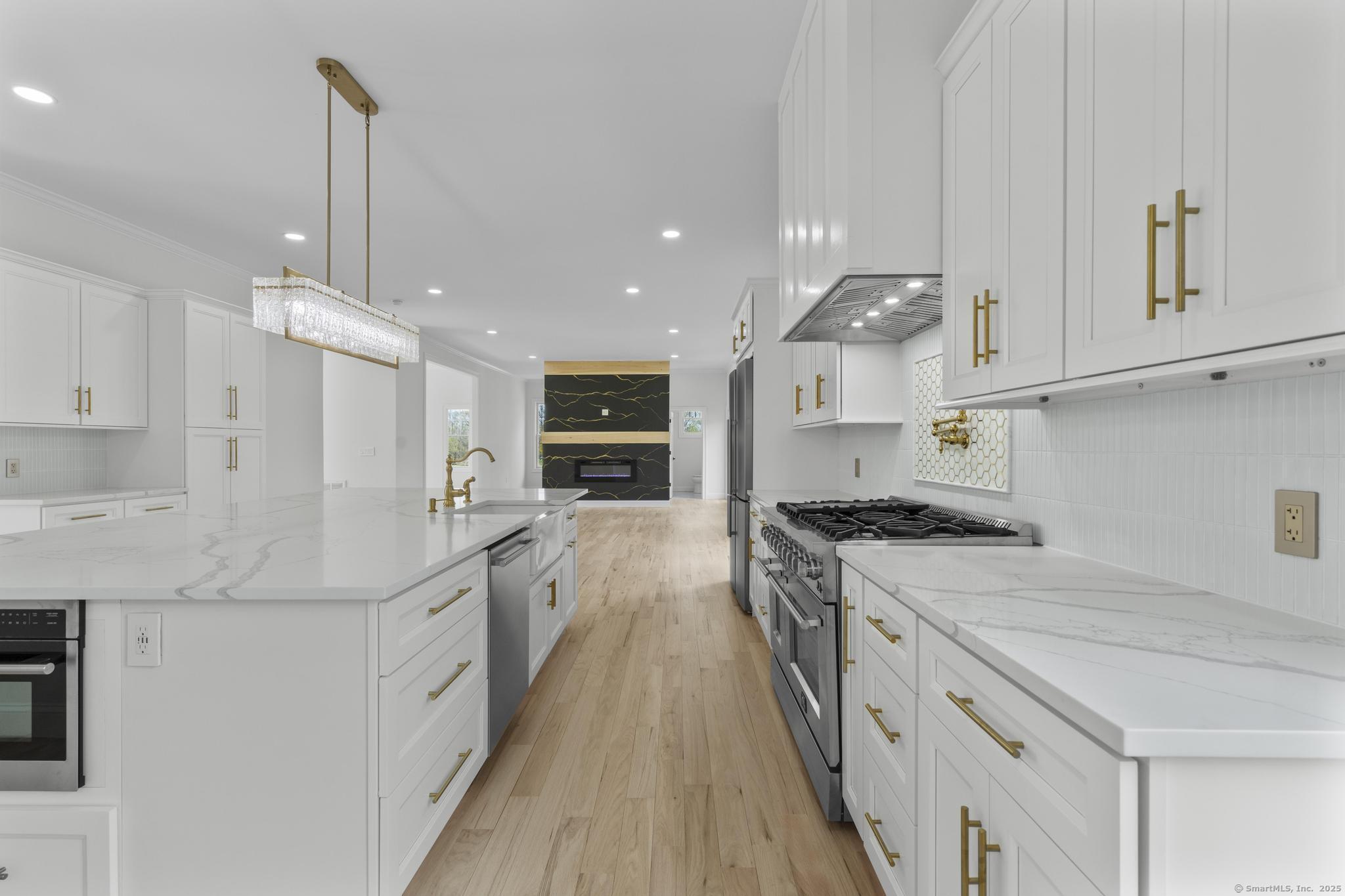 Straight out of a magazine - 42 Pine Ledge Trail, an exceptional new construction Colonial blending timeless elegance & modern luxury. Nestled on just under 4 private acres, this home is set back from the road on an elevated lot, offering seclusion. As you approach via the long, paved driveway, you'll notice a stunning stucco exterior, landscaped grounds, paver walkways, a grand covered entry with stately columns & double front doors & a 3-car garage. Step inside to a breathtaking 2-story foyer w/soaring 19-ft ceilings. The open-concept main level features 10-ft ceilings, creating an airy & welcoming space ideal for entertaining. The layout flows effortlessly - from the sun-drenched living room into the home office, or study. Continue into the stylish wet bar area, complete w/ seating & a wine chiller, which connects seamlessly to an eat-in space highlighted by a dramatic accent wall & floating fireplace - a true statement piece. The heart of the home is the gourmet chef's kitchen, boasting a 10x6 center island, quartz counters, top-of-the-line appliances, dual sinks & a walk-in pantry. A formal dining room & 2 beautifully appointed half baths complete this level. Upstairs, you'll find a flexible second living area/sitting room, along w/ 4 generously sized bedrooms. One features its own private en-suite, while another full bath serves the remaining bedrooms. The primary suite offers a spacious walk-in closet & a spa-like bath w/quartz counters, jacuzzi tub & a walk-in shower.