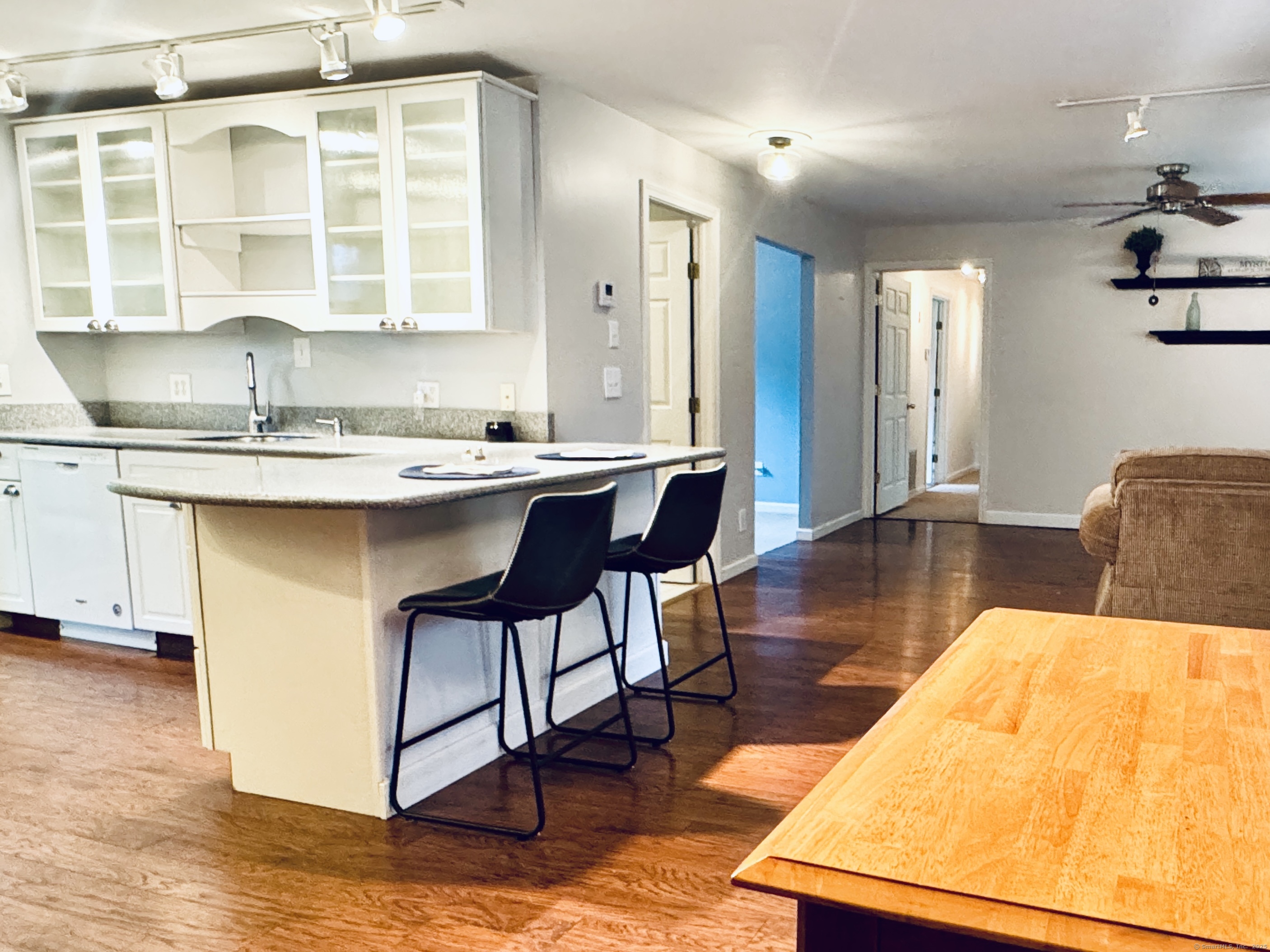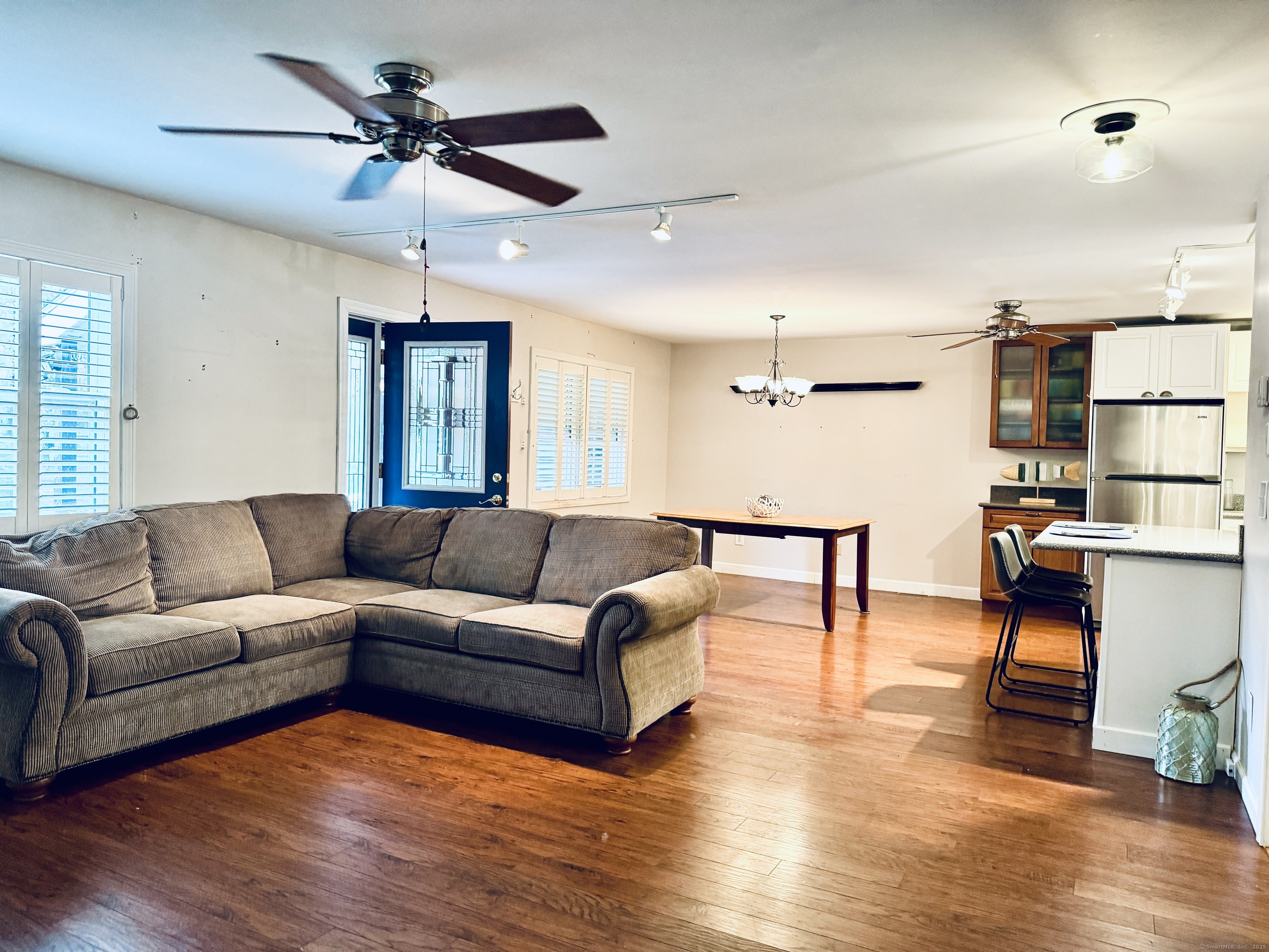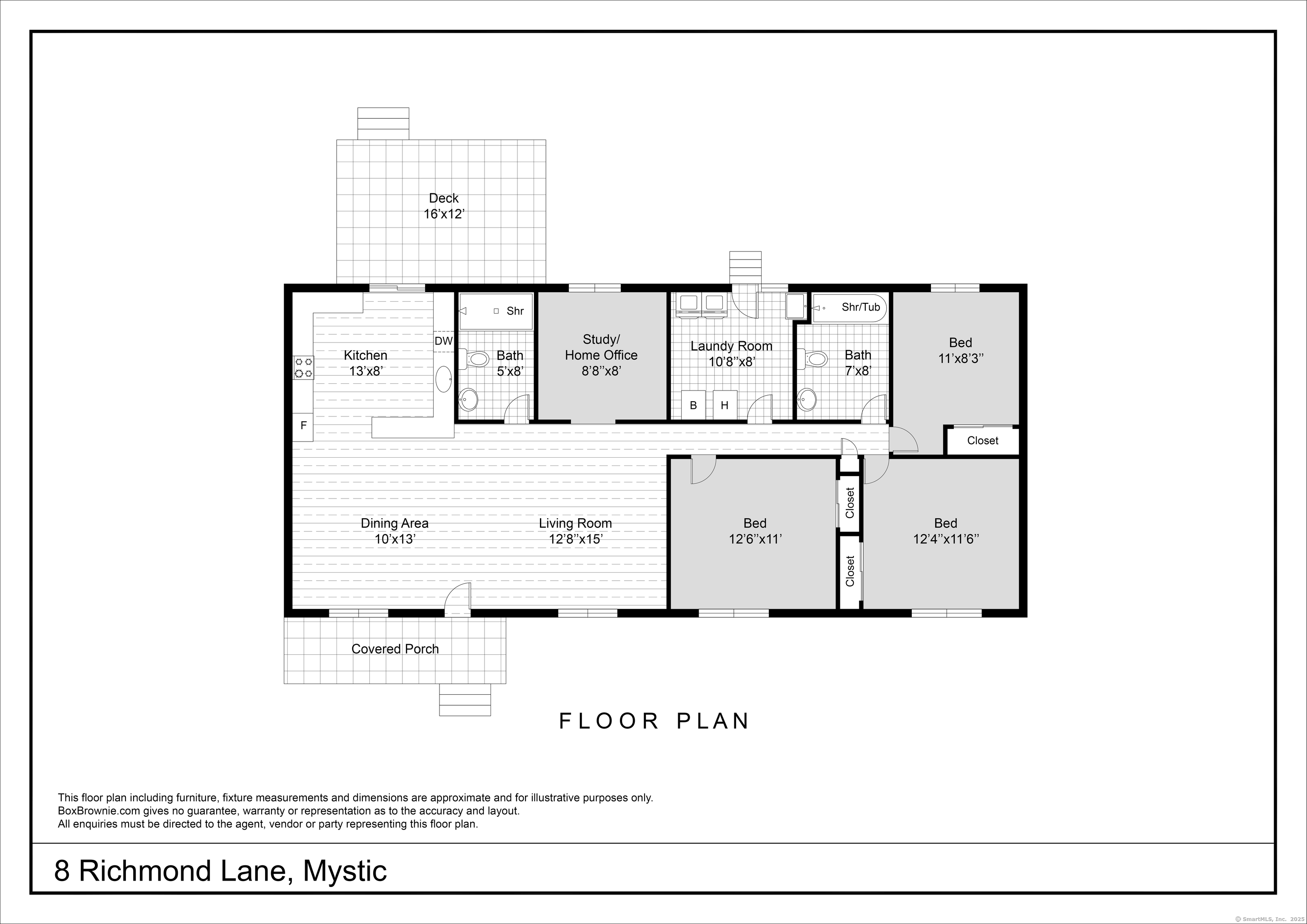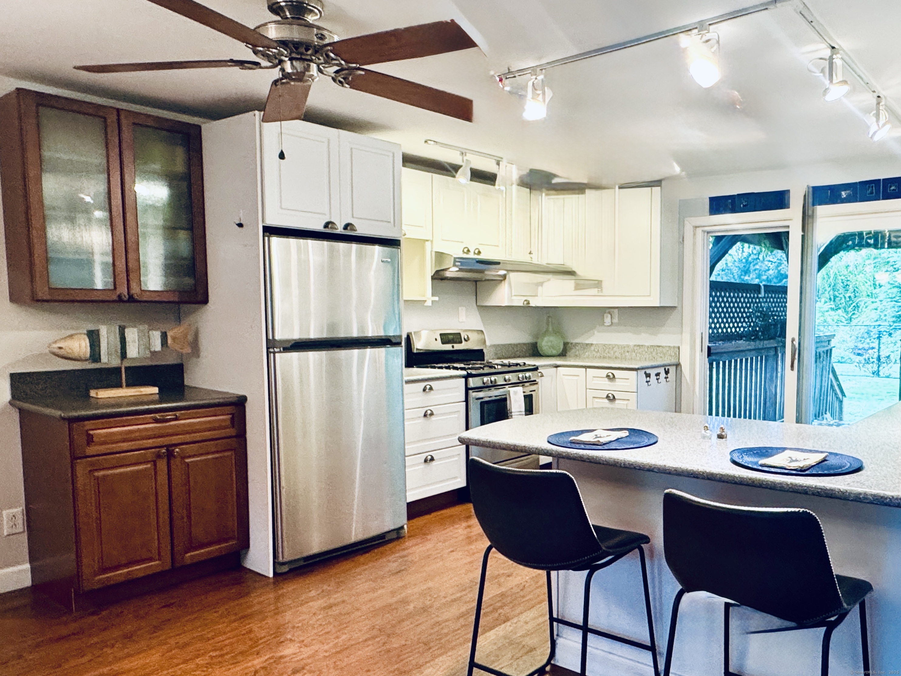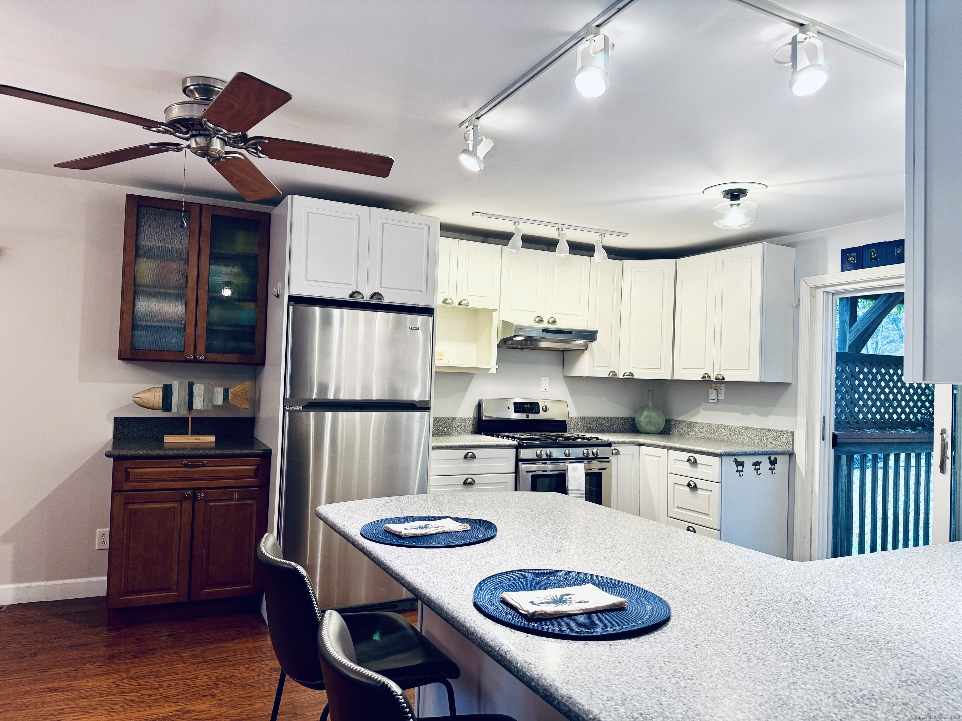 Looking for easy, one-level living in Mystic? This well-loved home on a quiet dead-end road offers the perfect blend of privacy and convenience on a beautiful half-acre lot. The updates and improvements have been plentiful since the owner purchased the property in 2010. Inside, the open and inviting floor plan includes a comfortable living area, a full bath with shower, and a study - ideal for a home office. The updated kitchen features newer cabinets, a gas range, Corian countertops, and a breakfast bar. From here, step out to a spacious deck shaded by a pergola wrapped in Trumpet Vine and Climbing Hydrangea. It's the perfect spot for relaxing, entertaining, or enjoying the fenced yard below - great for pets or play. Three bedrooms, each with ceiling fans, are set apart on the opposite end of the home, along with a second full bath. A convenient laundry room with a utility sink, backyard access, and brand-new furnace and boiler (installed in 2023) adds extra ease and efficiency. Here's the best part: with owned solar panels, you'll enjoy little to no electric bill - even during the summer months when the central A/C is keeping you cool! Additional highlights include public sewer and water connections plus a private well for outdoor watering. The landscaped yard is filled with colorful perennials, making this home just as inviting outside as it is inside. Schedule your showing today - this one won't last! Offer deadline is Sunday, Oct. 5th, by 5pm.