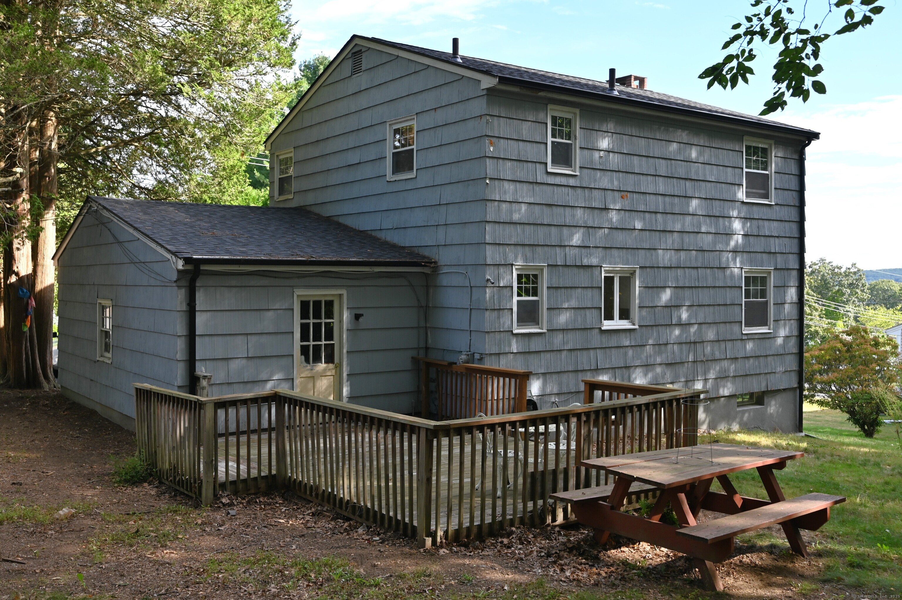 More Pictures Soon. This Colonial Home with 3 bedrooms and 2 1/2 bathrooms has many upgrades, shows well and is close proximity to Mohegan Sun Casino in the Uncasville section of Montville. The first floor has a spacious living room with a fireplace and a large picture window bringing in ample light. The dining room has a ceiling fan and chair rail the adjoins a large remodeled eat-in kitchen There is also a first-floor powder room. The oversized deck is great for outside relaxing or entertaining. The second floor has 3 good-sized bedrooms, including the primary bedroom with a ceiling fan. There is also a full bath on the upper level. The living room, dining room and bedrooms all have beautiful, refinished hardwood floors. The finished walk-out lower-level family room with a separate entrance is approximately 400 additional square feet. It has a full bath with shower, kitchenette with sink, countertop and cabinets. It has the potential as an in-law or multi-generational living space. The 1,372 square feet listed on the tax card does not include the approximate 400 square feet of finished lower-level. There are many updates including new roof and gutters in 2024. This home has Thermopane windows and there is an attached 1-car garage. The home has city water & sewer. The tall arborvitae and massive rhododendron give the home privacy. Notes: The air conditioners are portable and vent out a window. Some shelves shown in pictures will be removed. Bedroom doors are in garage.