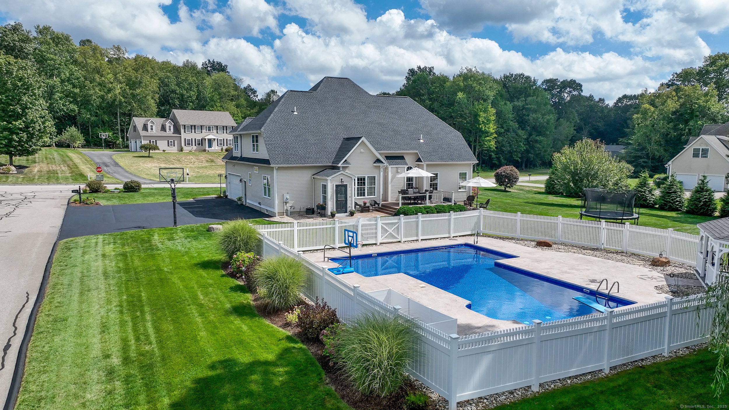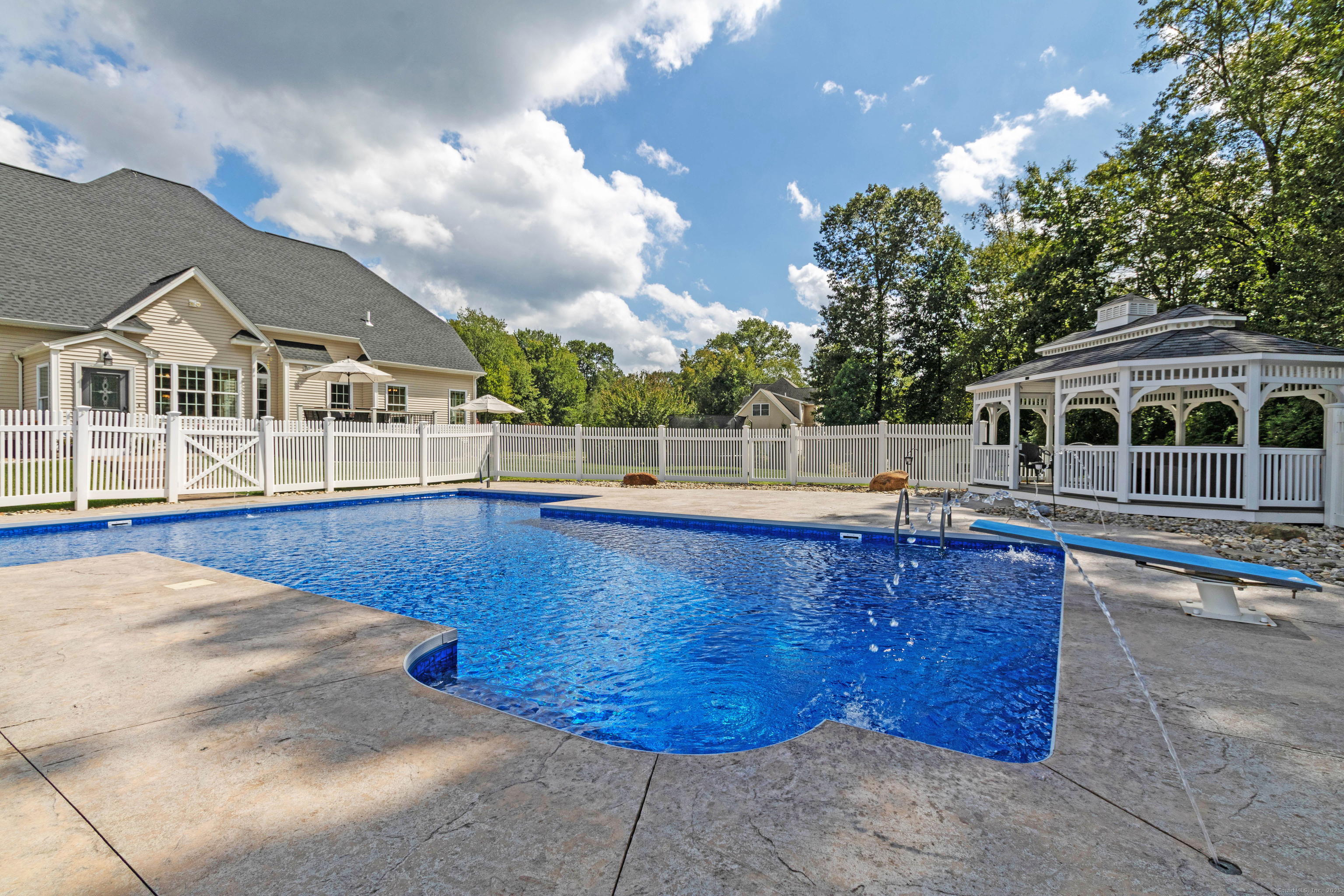 Wow! This is the one you've been dreaming of! A stunning 2009 Colonial in Whispering Woods with over 3,400 sq. ft. (and additional 1300 sq ft in the lower level) on nearly an acre, offering every feature you've been hoping to find in your next home. The first floor is built for entertaining with an open layout that brings together the kitchen, living room, eat-in area, and formal dining room as the central hub. To one side, the primary suite includes a separate bath/shower and walk-in closet. To the other, a dedicated office, cozy den, and full bath provide flexible spaces that fit today's lifestyle. The finished lower level adds a huge rec room with wet bar, second office, laundry room, and two more versatile rooms for a gym, media room, or hobbies - plus exterior stairs leading directly to the backyard and pool. Upstairs you'll find four spacious bedrooms, all with impressive closets, and an additional full bath. The backyard is a showstopper with a custom-designed 18'x40' pool featuring a shallow end, deep end with cuddle cove, diving board, and deck jets. Pair that with the carefree gazebo, rear deck and patio areas, fire pit, play area, and inviting yard, and you'll feel like you're vacationing at home all summer. This home offers so much more than we can capture here. It's one you must see in person. With so much to offer inside and out, this just might be the home where your next chapter begins!