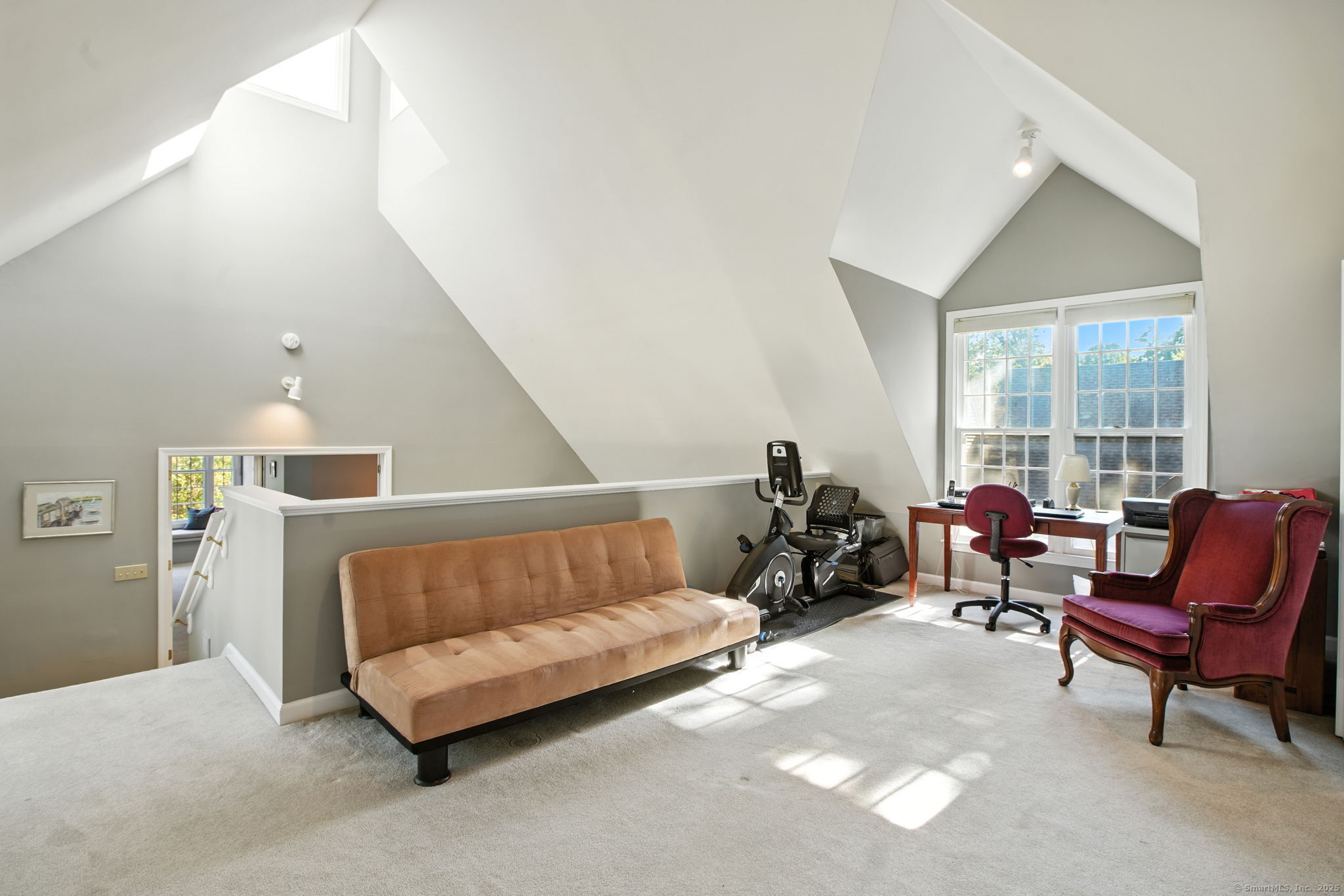 Immaculately maintained and move-in ready, this 2-bedroom condo is located in the highly desirable Long Hill Farm community. Perfectly positioned to overlook a lush, open field, the home offers a private and serene setting where you can enjoy the beauty of nature all year long. Inside, you'll find a bright and inviting open floor plan with stunning hardwood floors, a cozy gas fireplace, and a main-level den boasting some of the best views you'll find-beautiful in every season. The updated eat-in kitchen features stainless steel appliances, granite countertops, and overlooks a charming second patio, ideal for morning coffee or dining al fresco. The spacious primary suite offers vaulted ceilings, a walk-in closet, and a full bathroom. The second bedroom is thoughtfully tucked away with skylights, dual closets, and its own private full bathroom-perfect for guests or extended stays. Upstairs, a versatile loft provides endless options for a home office, gym, or additional living space. Additional highlights include central air, gas heat, and a rare two-car attached garage. This condo combines comfort, convenience, and natural beauty in one of the area's most sought-after communities-don't miss the opportunity to make it yours!