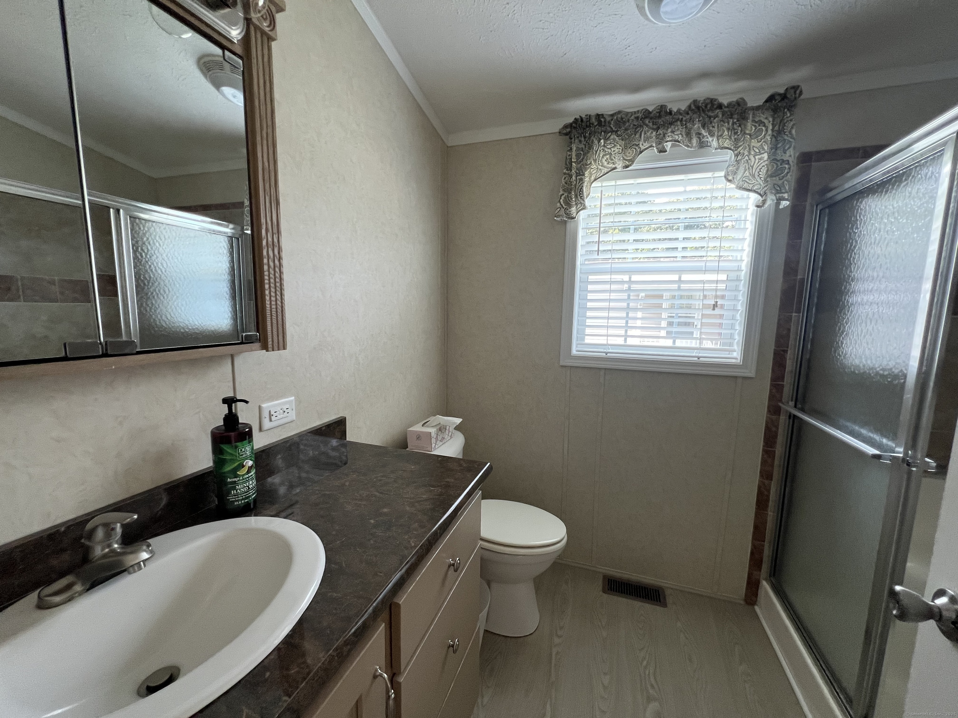 Exceptional home in a much sought after shoreline 55+ community. This home sits on one of the most desirable lots on the street, with mature plantings. This 2015 unit is in like new condition with a bright and open floor plan including cathedral ceilings and a beautiful covered porch for 3 season enjoyment. (some residents choose to enclose) There is also a Kloter Farm shed w/ electricity for extra storage. This 2 bedroom gem offers a new owner a lifestyle of convenience and access to all this beautiful shoreline has to offer. This is also a great and affordable alternative to condo living, especially if having a bit of privacy and outdoor space of your own is important. Come see for yourself if this could be the perfect fit for you! NOTHING TO DO BUT MOVE IN!