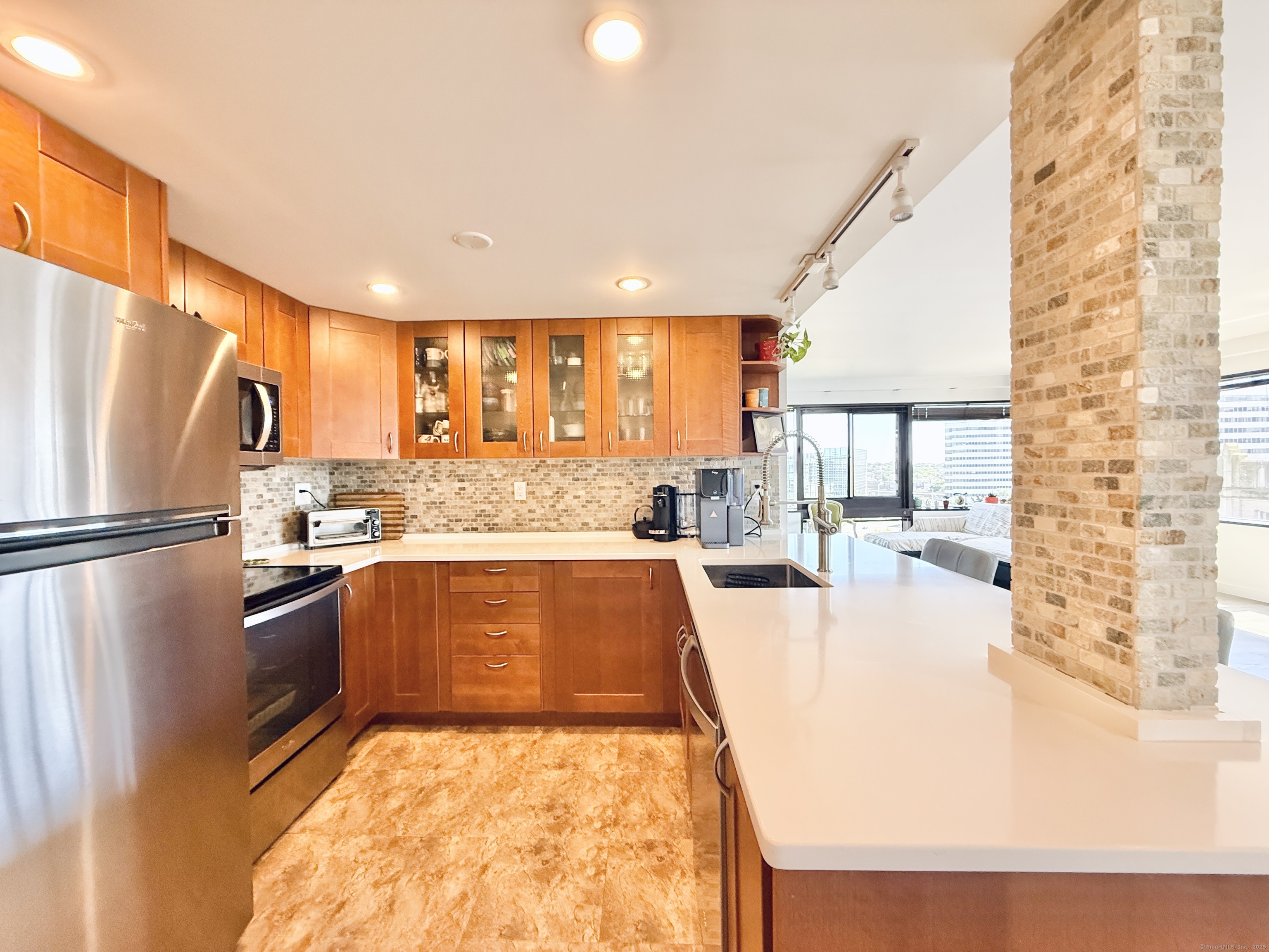 Welcome to your dream downtown gem at The Biltmore-a redesigned 2-BD, 2-BA condo with a 24-hour concierge service. High Floor - Sunlit South Exposure! Enjoy an open floor plan with gorgeous newer flooring and a contemporary kitchen featuring quartz countertops and SS appliances. The inviting bar connects seamlessly to the spacious living and dining area. Retreat to a beautifully primary suite with a custom Large walk-in shower, plus a 2nd BR. Experience breathtaking City views. Bonus 2 New HVAC 2023. Biltmore amenities include a Fitness center, Lounge, Access to Train Shuttle, Laundry Rm and courtyard. Rentals are Allowed (min. 60 days). Building Garage Parking RENT ~$118/Car. Buy Today!