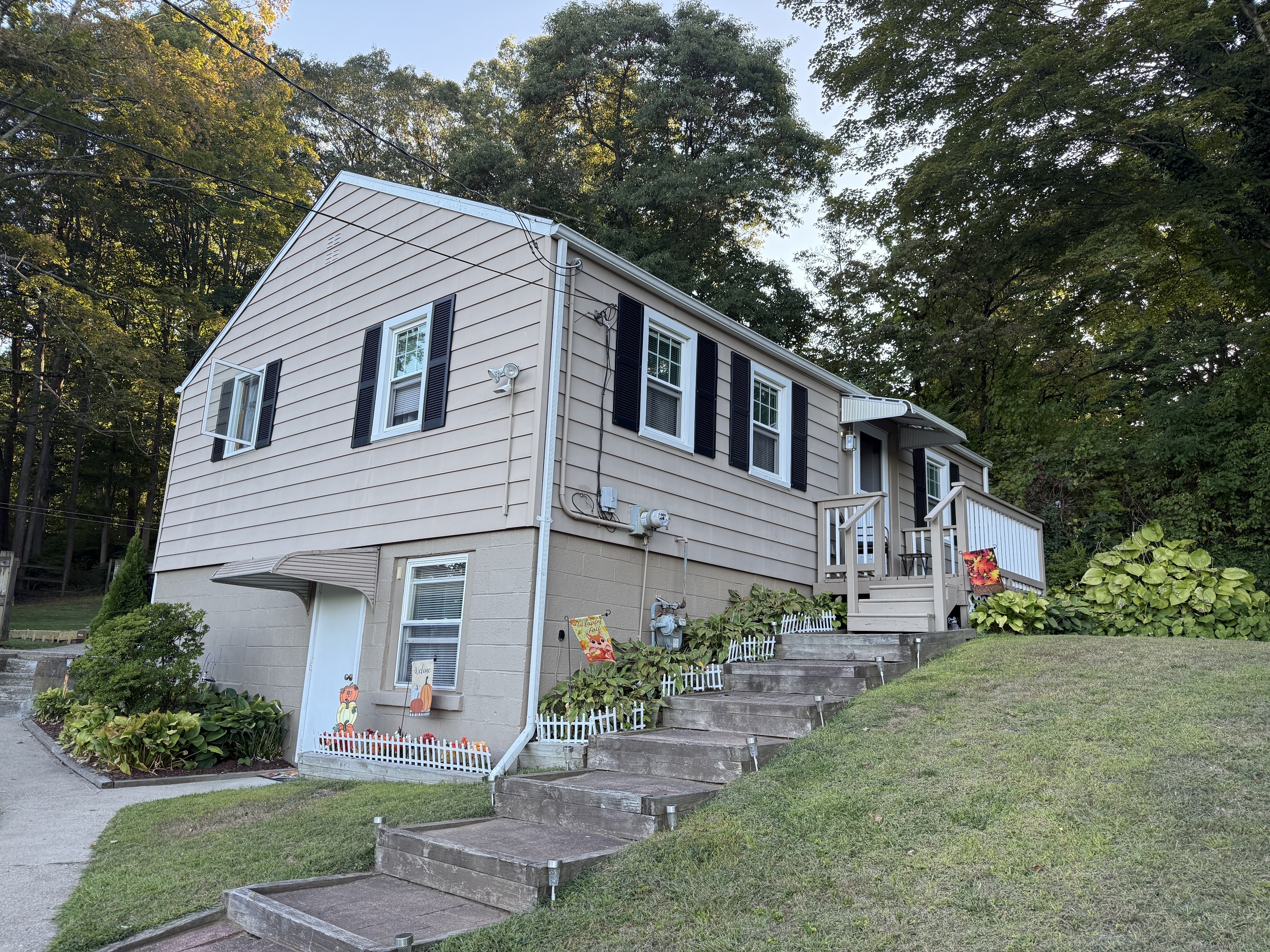 Nestled at the end is a cu-de-sac is a quaint 3bedroom two full bath ranch style home. The main floor has a living room eat in kitchen and two bedrooms and a full bath. The lower level is partially finished with a bedroom with its separate entrance and a full bathroom and a playroom. The property is nicely landscaped with on street parking.