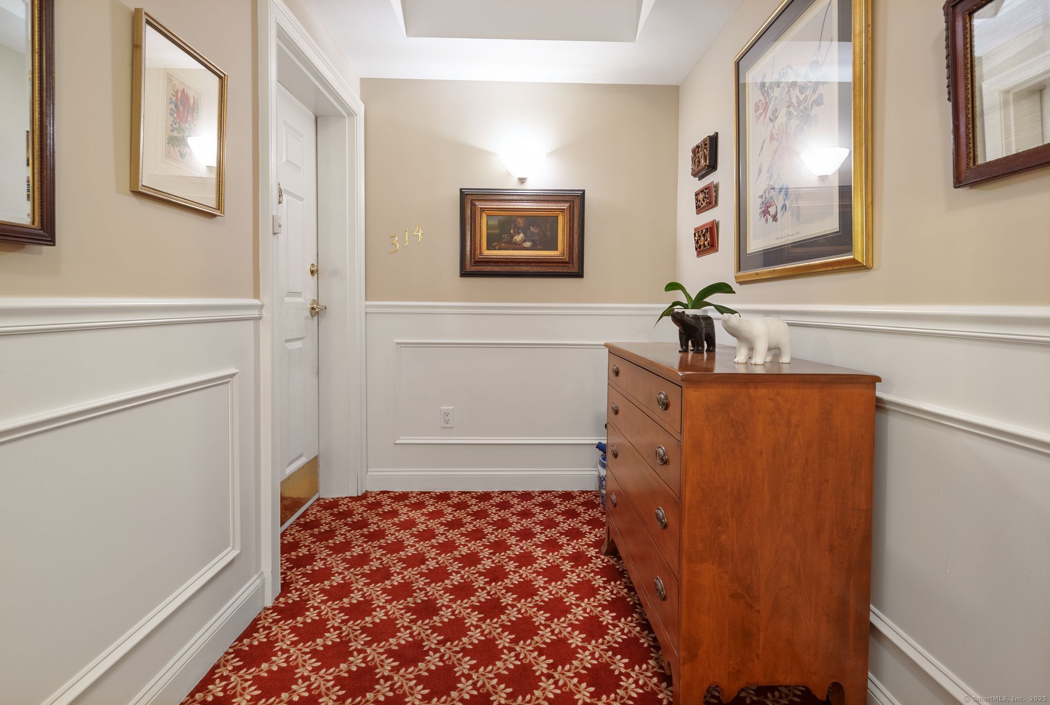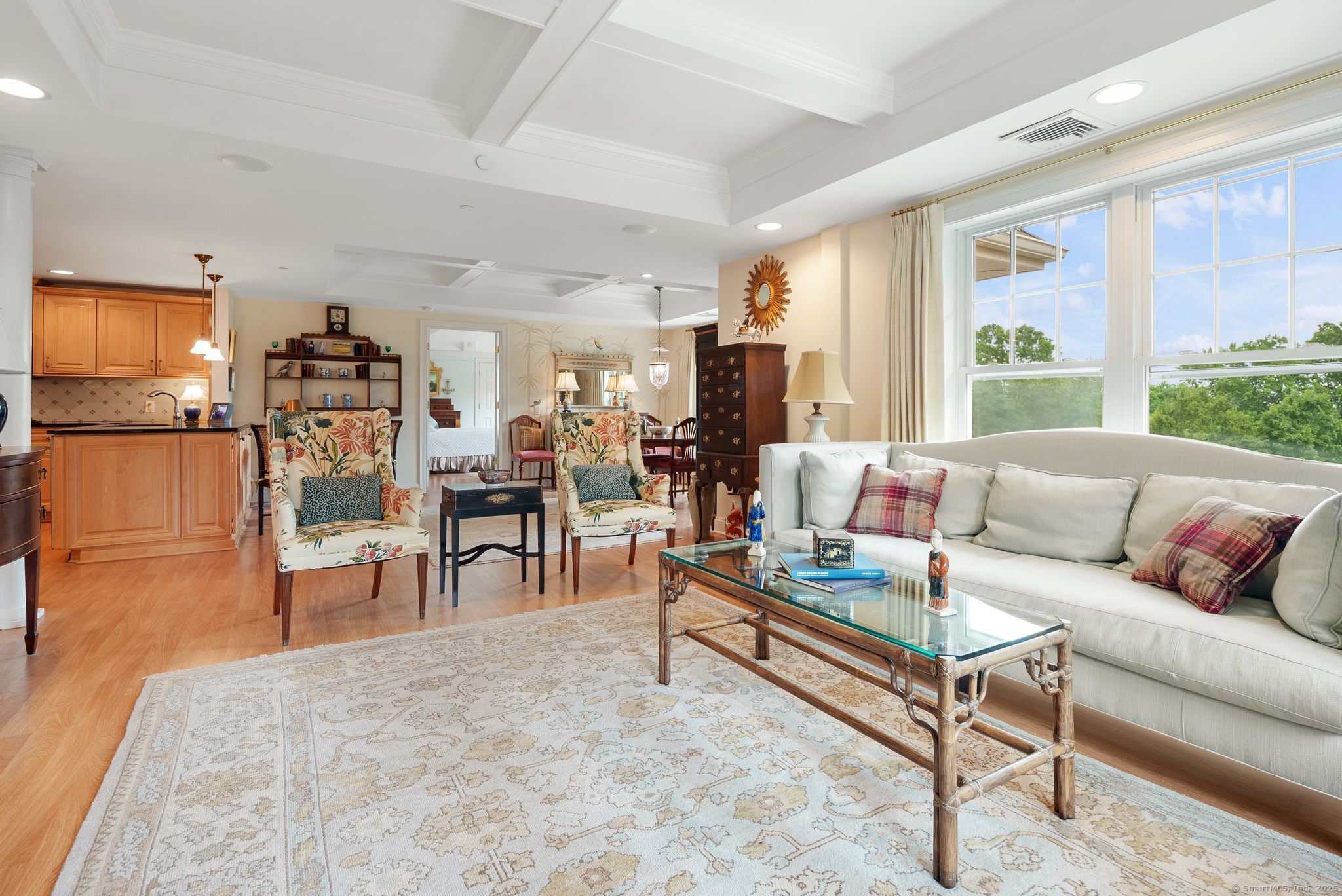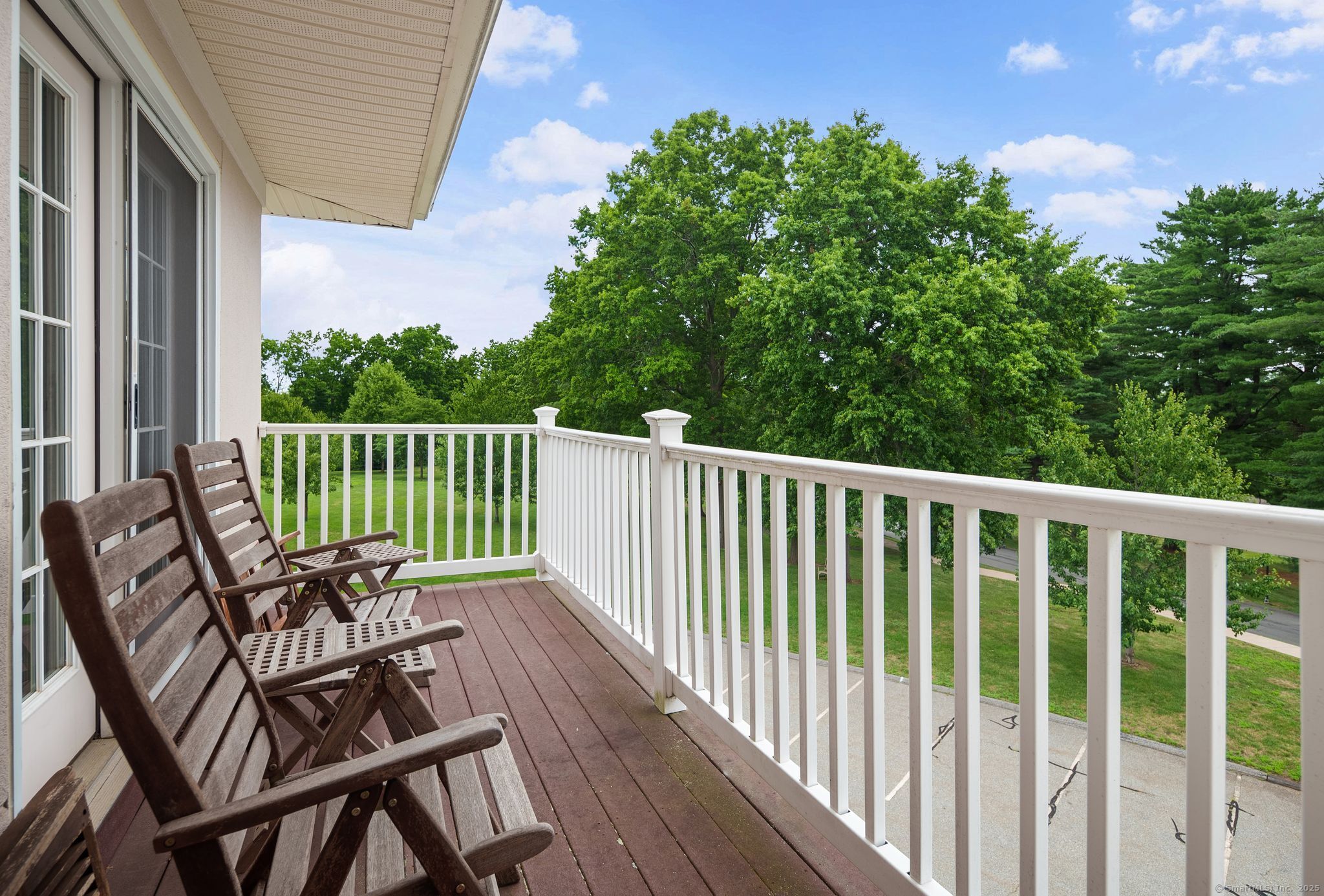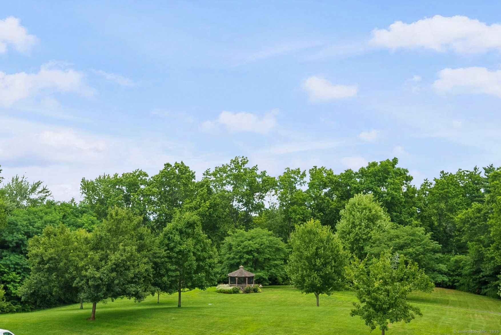 Rarely available at Fernwood Estates! This spacious and unique 3rd floor corner unit offers a sought-after layout with approx 1,600 square feet of thoughtfully designed living space. The 2 spacious bedrooms are smartly separated for maximum privacy. An open concept design features an expansive living and dining area seamlessly connected to a well-appointed kitchen - perfect for entertaining or relaxing. Natural light pours in from the many windows and doors, creating a bright and inviting atmosphere throughout. The kitchen is a standout with ample cabinetry and generous counter space, ideal for the culinary enthusiast. The primary suite boasts a private full bath and stunning views while the second bedroom is currently enjoyed as a library/den, complete with attractive built-ins an ideal spot for your favorite book collection, home office, or cozy retreat. Step outside onto your private balcony and enjoy fresh air along with picturesque views of the Heublein Tower and the complex's front gazebo-an amenity that sets this unit apart. Additional highlights include gas heat, central air, central vacuum, two assigned parking spaces conveniently located under the building and a dedicated storage unit. This is one of the most desirable layouts in the complex, offering comfort, space, and style in a well-maintained 55+ community. Additional features include a shared rear patio with BBQ area, a community room ideal for gatherings, a fitness room and a close proximity to Elizabeth Park