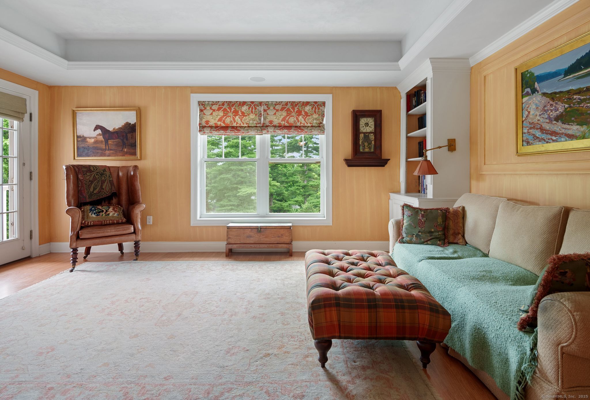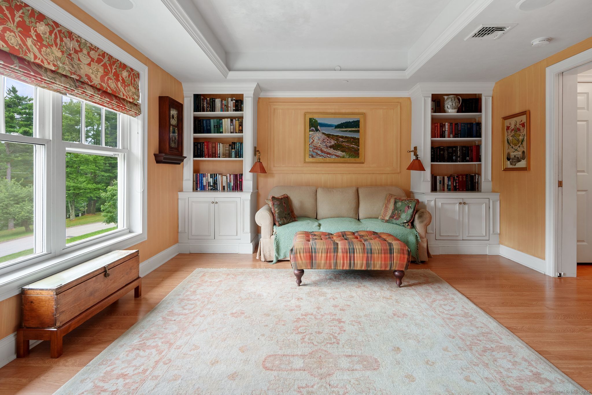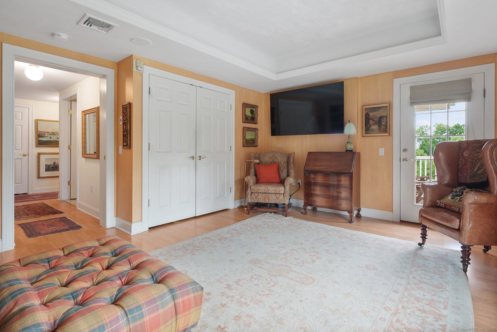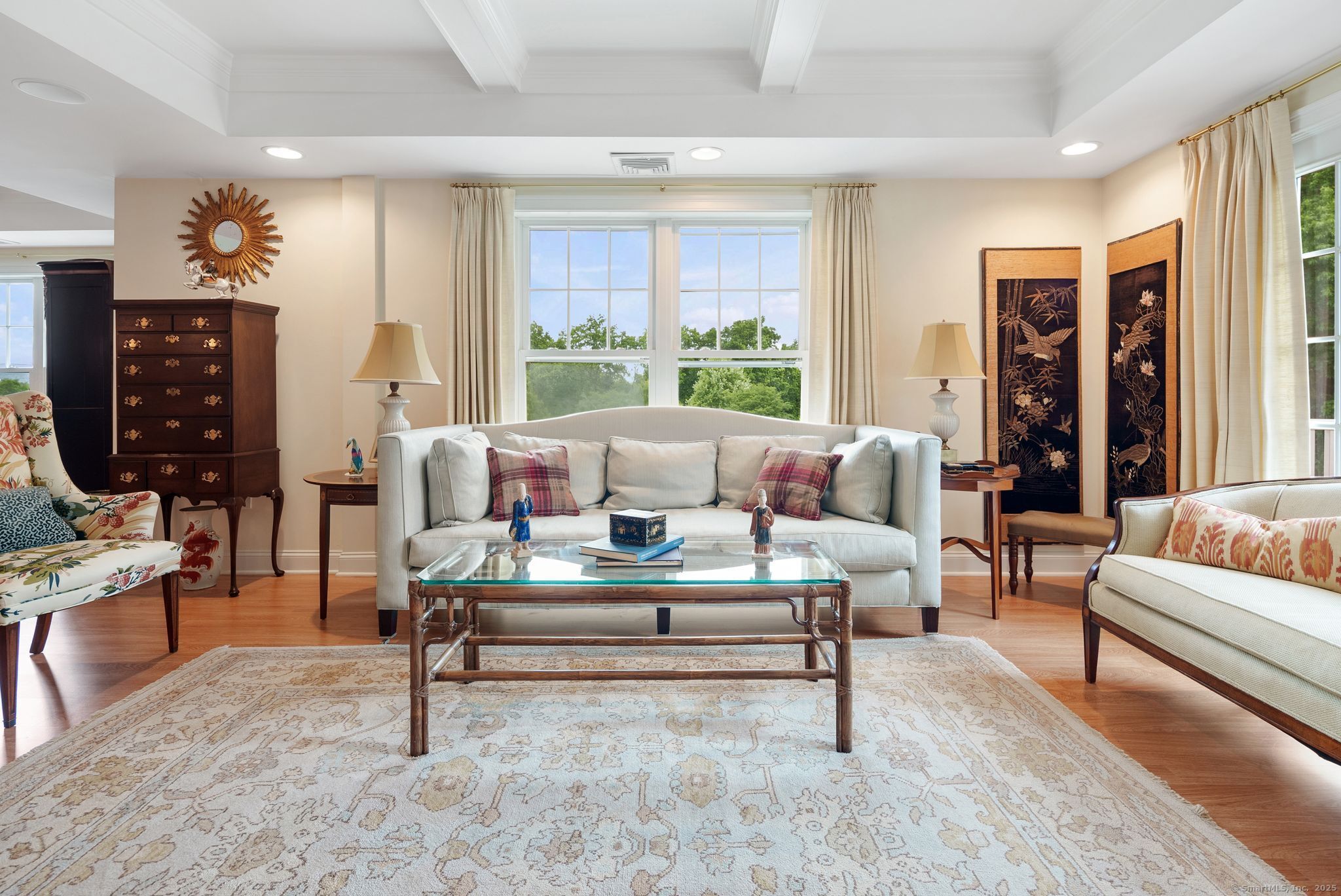 Rarely available at Fernwood Estates! This spacious and unique 3rd floor corner unit offers a sought-after layout with approx 1,600 square feet of thoughtfully designed living space. The 2 spacious bedrooms are smartly separated for maximum privacy. An open concept design features an expansive living and dining area seamlessly connected to a well-appointed kitchen - perfect for entertaining or relaxing. Natural light pours in from the many windows and doors, creating a bright and inviting atmosphere throughout. The kitchen is a standout with ample cabinetry and generous counter space, ideal for the culinary enthusiast. The primary suite boasts a private full bath and stunning views while the second bedroom is currently enjoyed as a library/den, complete with attractive built-ins an ideal spot for your favorite book collection, home office, or cozy retreat. Step outside onto your private balcony and enjoy fresh air along with picturesque views of the Heublein Tower and the complex's front gazebo-an amenity that sets this unit apart. Additional highlights include gas heat, central air, central vacuum, two assigned parking spaces conveniently located under the building and a dedicated storage unit. This is one of the most desirable layouts in the complex, offering comfort, space, and style in a well-maintained 55+ community. Additional features include a shared rear patio with BBQ area, a community room ideal for gatherings, a fitness room and a close proximity to Elizabeth Park
