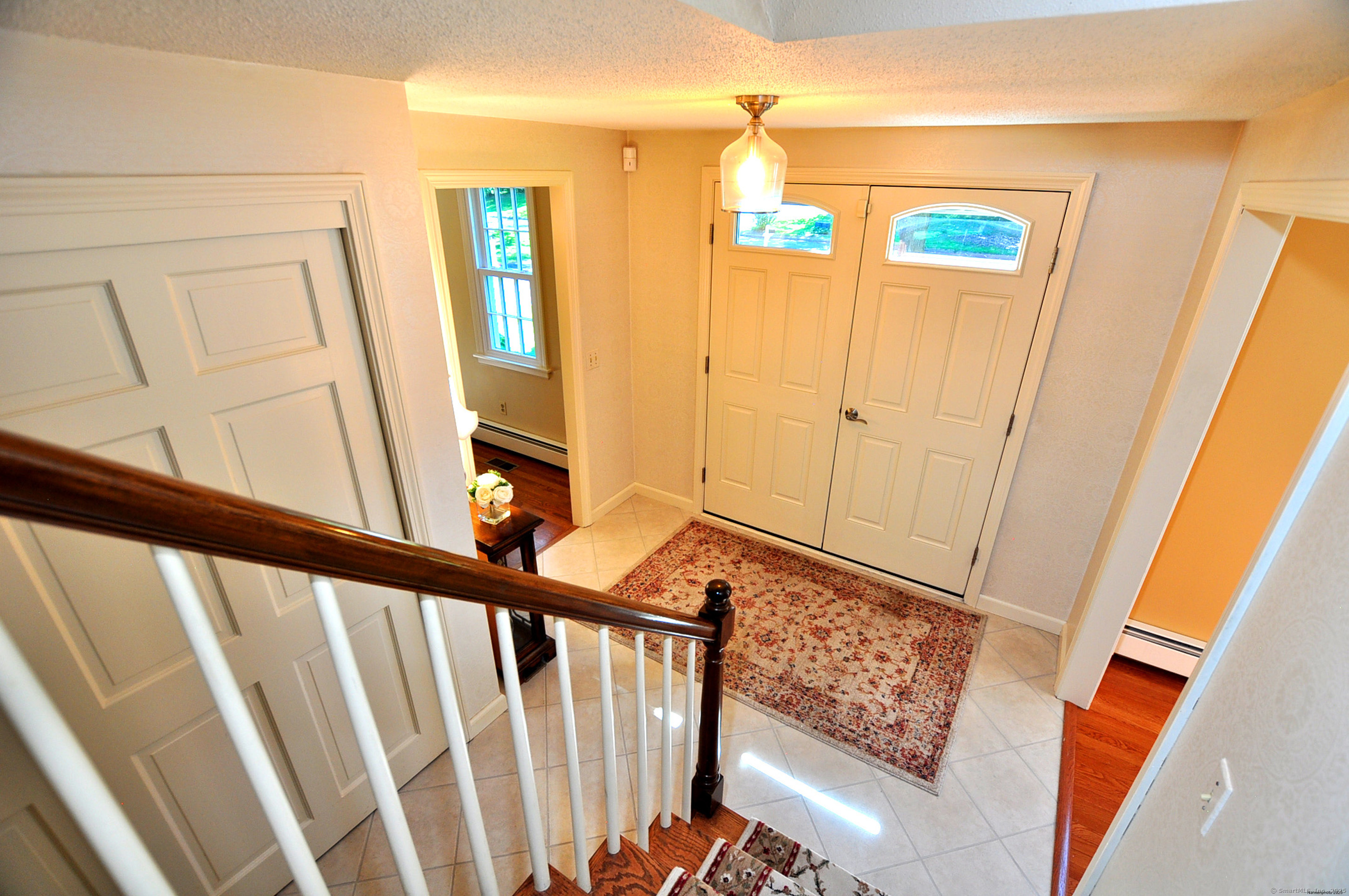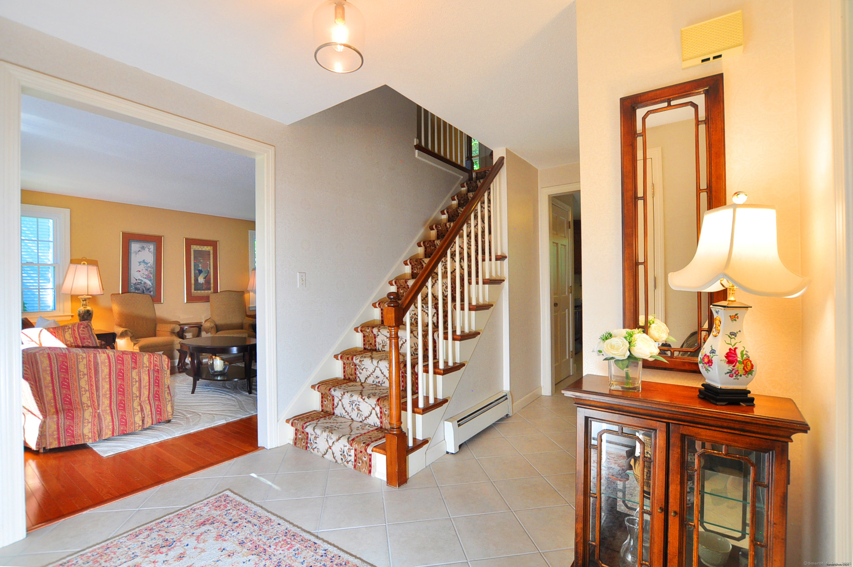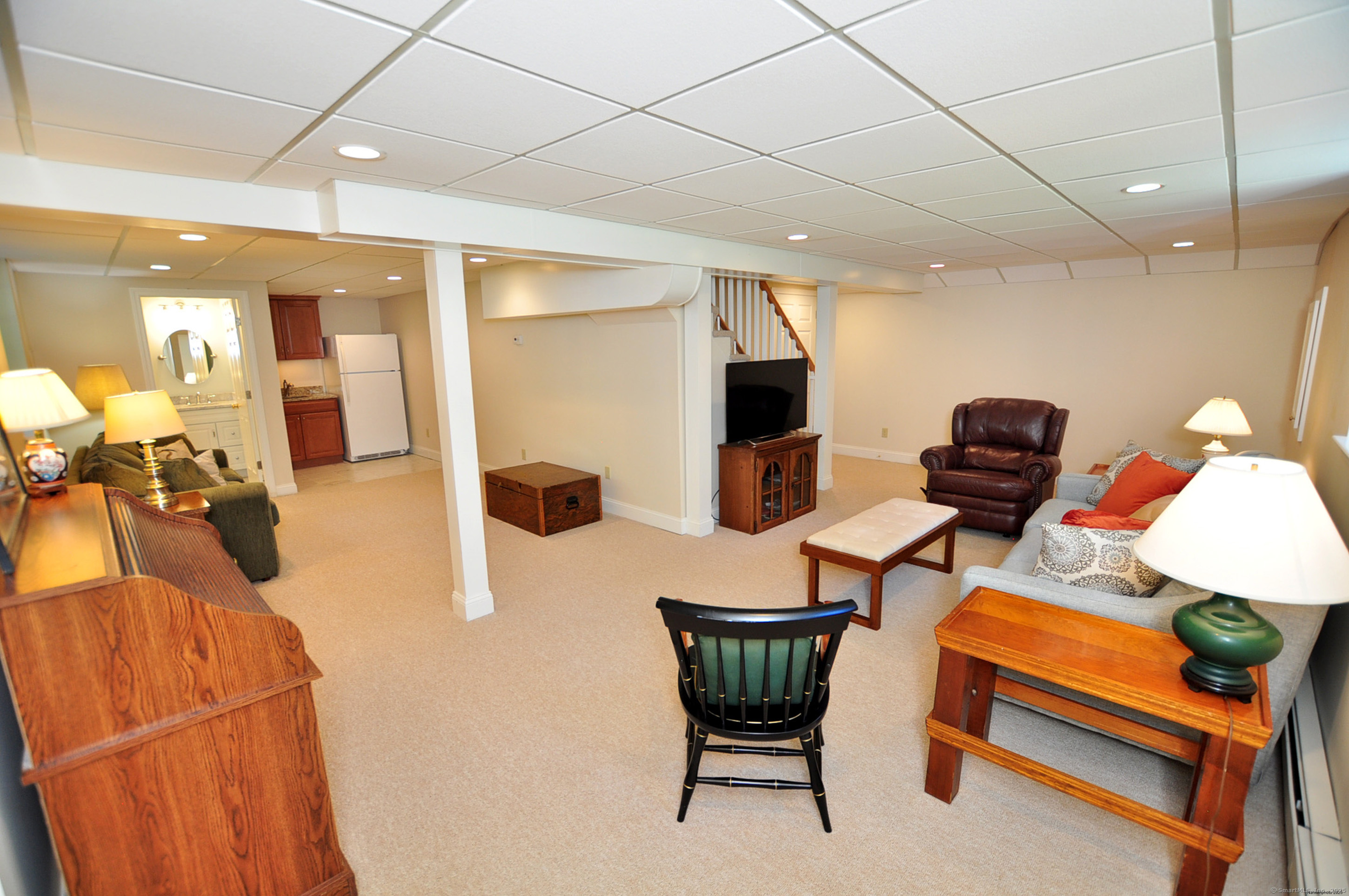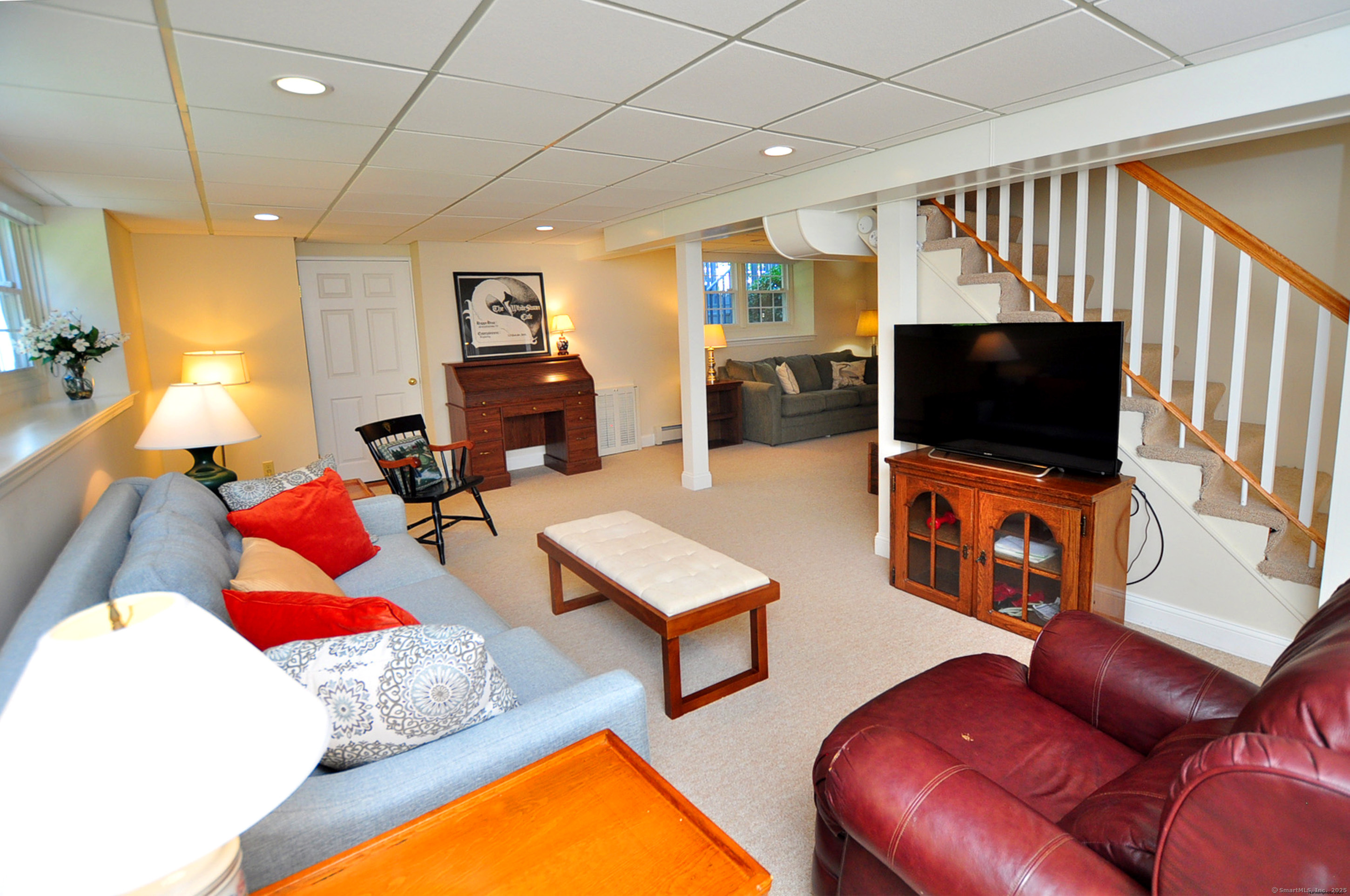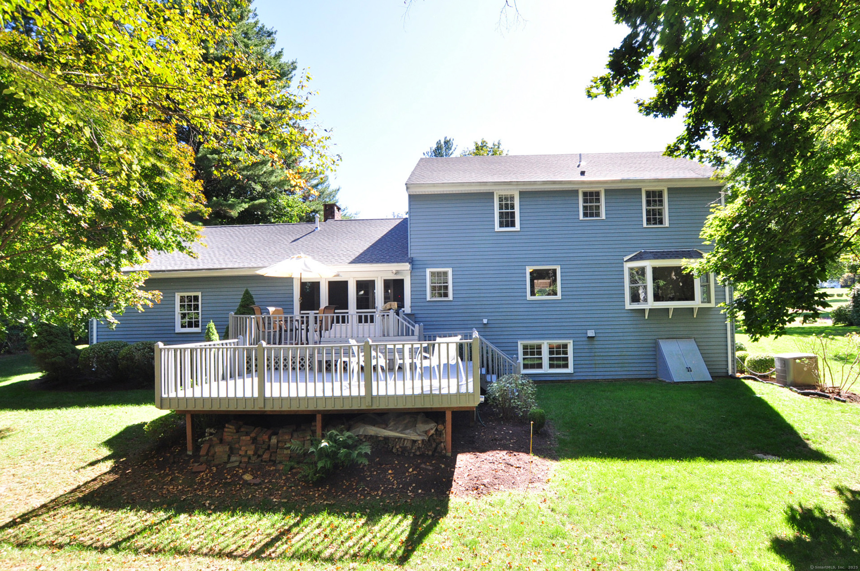 Nestled in a quiet yet convenient neighborhood of LaCava-built homes, this beautifully maintained 4 bedroom, 2 full & 2 half-bath Colonial blends timeless elegance with modern updates and recent big-ticket improvements. Enjoy peace of mind with a Generac whole-house generator, on-demand hot water, an irrigation system, a new roof (2024), windows (2023), air conditioning (2021), front door (2019), boiler (2022), and carpeting (2025). Step inside the main level to find beautiful hardwood floors, a large eat-in kitchen with SS appliances, a formal dining room perfect for entertaining, a spacious formal living room, and an updated half bath with laundry. The inviting family room boasts natural light, a cozy fireplace with custom built-ins, and is adjacent to a sunporch with access to a large two-tiered deck overlooking the spacious private back yard. Upstairs you'll find 4 generously sized bedrooms, including a master suite with two closets and a full bath. One of the four bedrooms features custom built-ins, ideal for an in-home office. A nicely updated full bath with tub/shower completes this level. The lower level adds 550+ SF of finished living space with full-size windows for natural light, a convenient kitchenette (with refrigerator, sink, counterspace, and cabinets), an updated half bath, and a large storage/workshop area. Additional features include a two-car garage with pull-down attic storage. This home has been meticulously cared for - just unpack and enjoy!