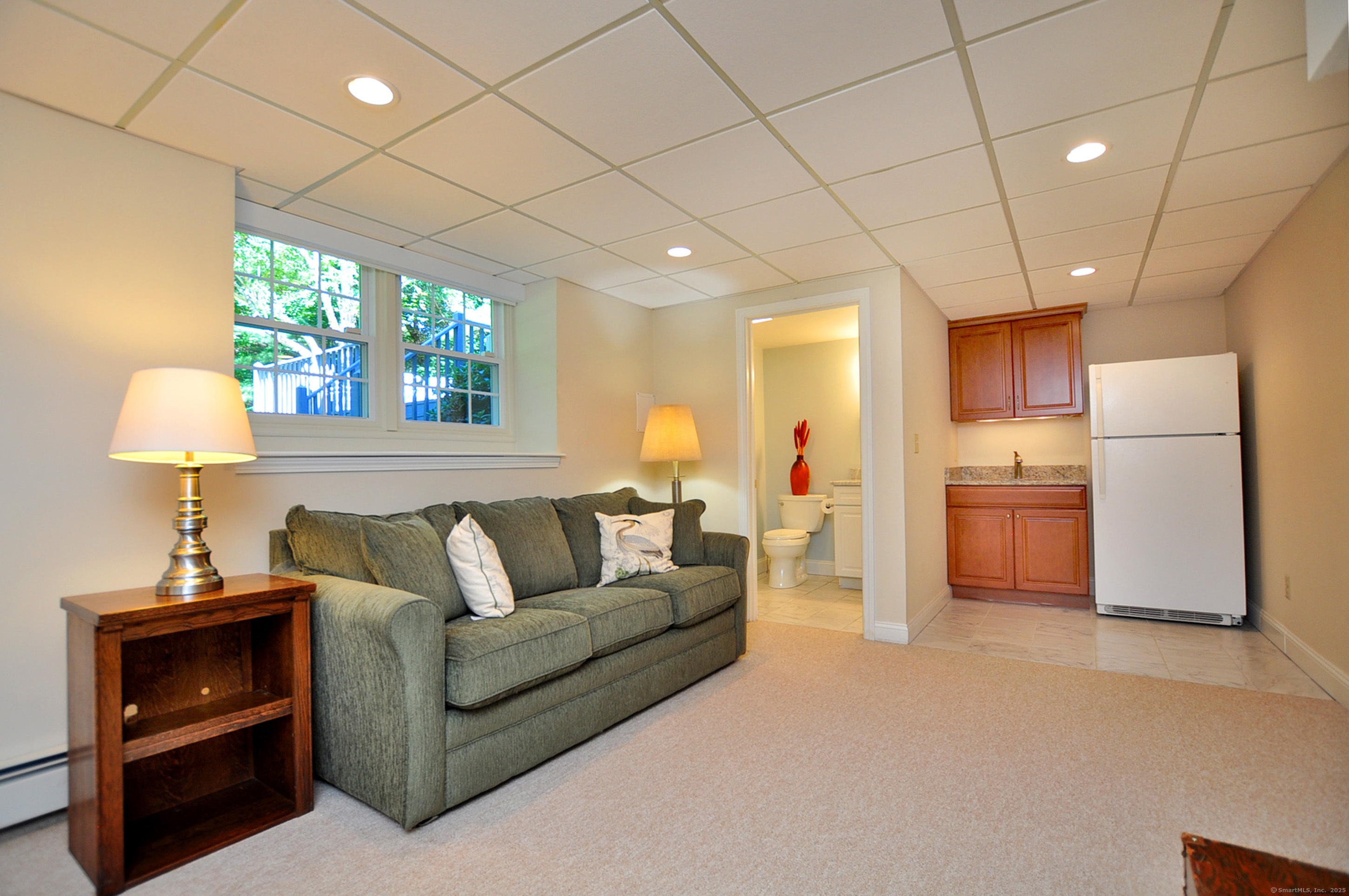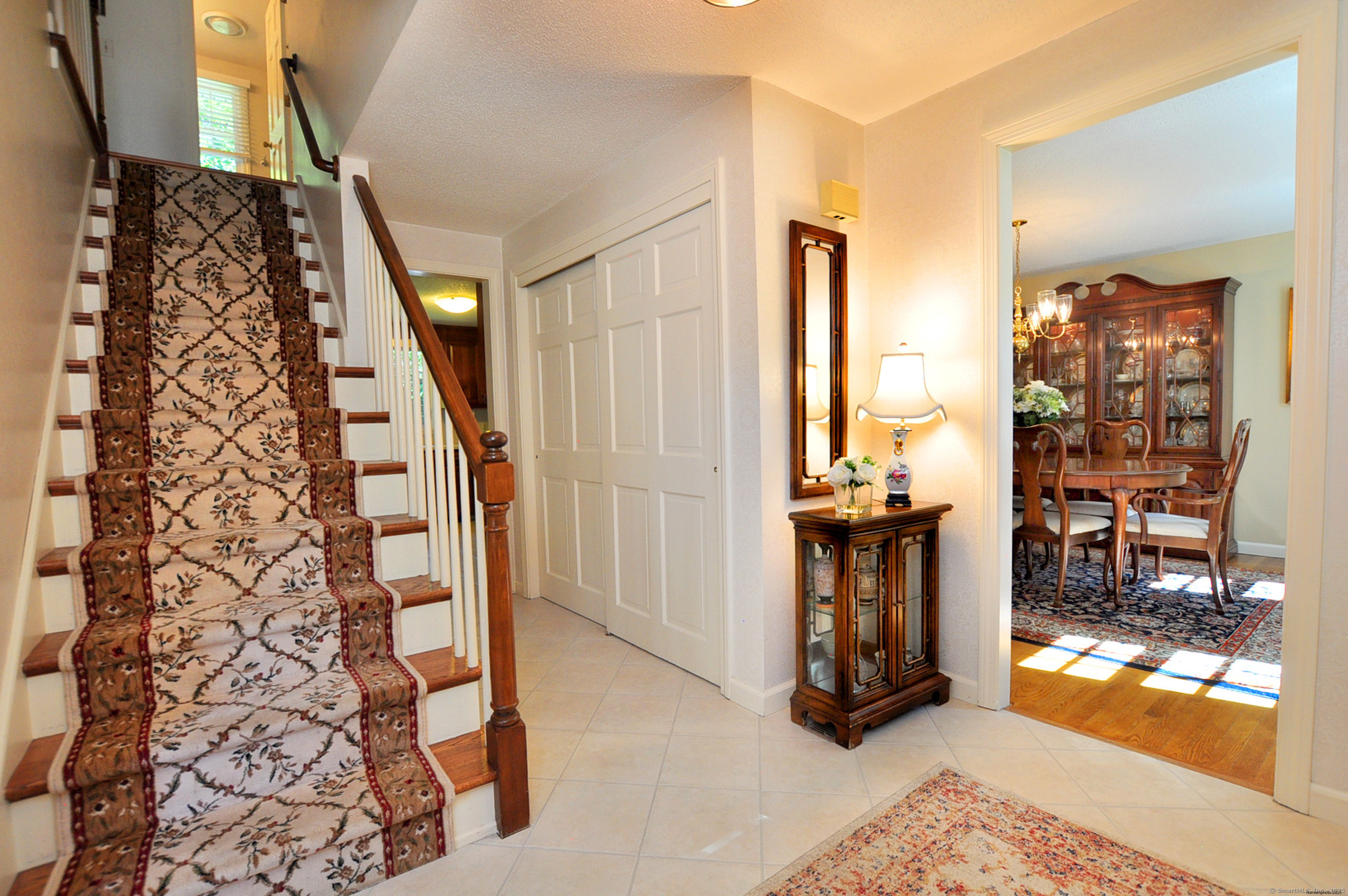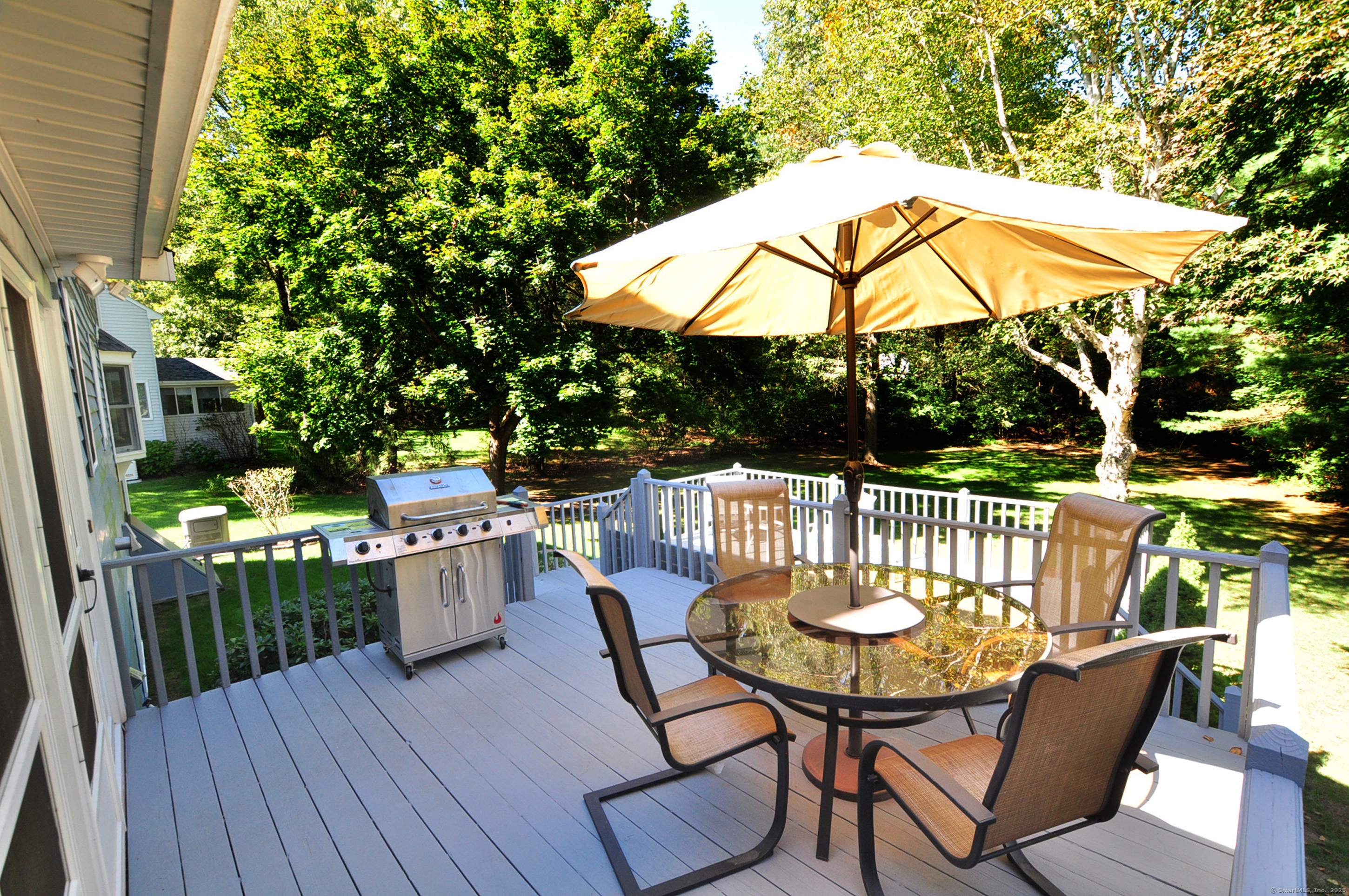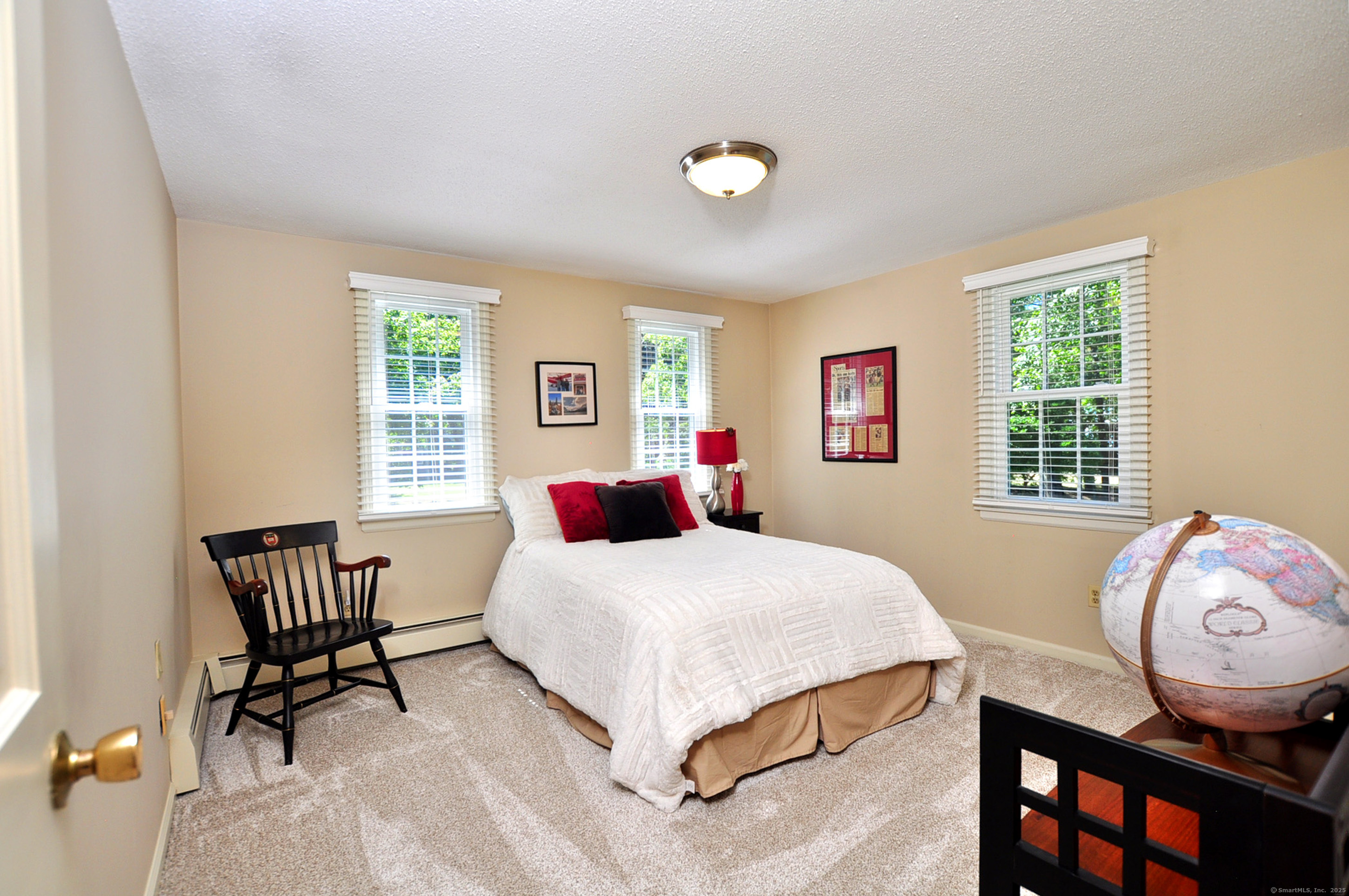 Nestled in a quiet yet convenient neighborhood of LaCava-built homes, this beautifully maintained 4 bedroom, 2 full & 2 half-bath Colonial blends timeless elegance with modern updates and recent big-ticket improvements. Enjoy peace of mind with a Generac whole-house generator, on-demand hot water, an irrigation system, a new roof (2024), windows (2023), air conditioning (2021), front door (2019), boiler (2022), and carpeting (2025). Step inside the main level to find beautiful hardwood floors, a large eat-in kitchen with SS appliances, a formal dining room perfect for entertaining, a spacious formal living room, and an updated half bath with laundry. The inviting family room boasts natural light, a cozy fireplace with custom built-ins, and is adjacent to a sunporch with access to a large two-tiered deck overlooking the spacious private back yard. Upstairs you'll find 4 generously sized bedrooms, including a master suite with two closets and a full bath. One of the four bedrooms features custom built-ins, ideal for an in-home office. A nicely updated full bath with tub/shower completes this level. The lower level adds 550+ SF of finished living space with full-size windows for natural light, a convenient kitchenette (with refrigerator, sink, counterspace, and cabinets), an updated half bath, and a large storage/workshop area. Additional features include a two-car garage with pull-down attic storage. This home has been meticulously cared for - just unpack and enjoy!