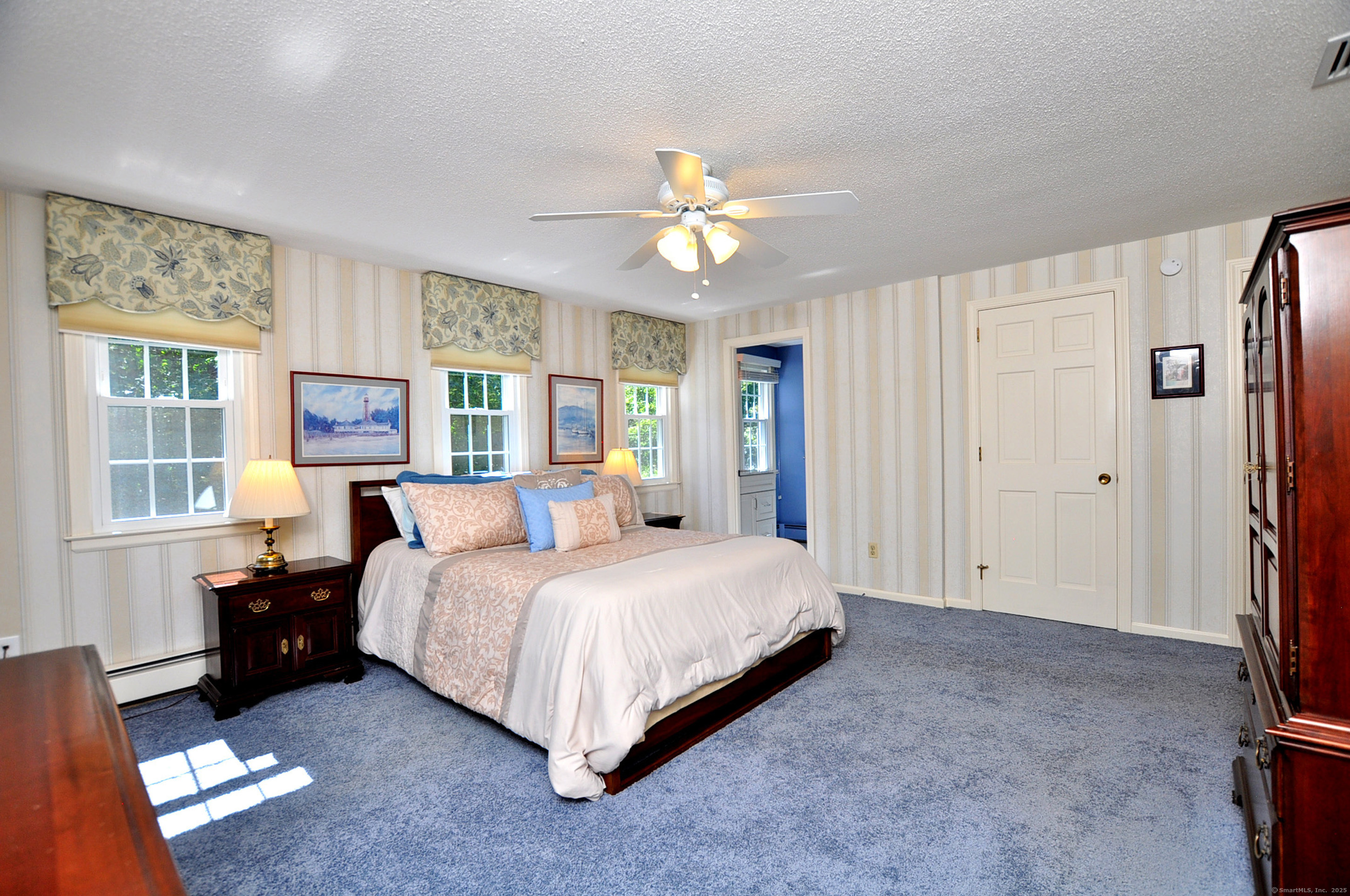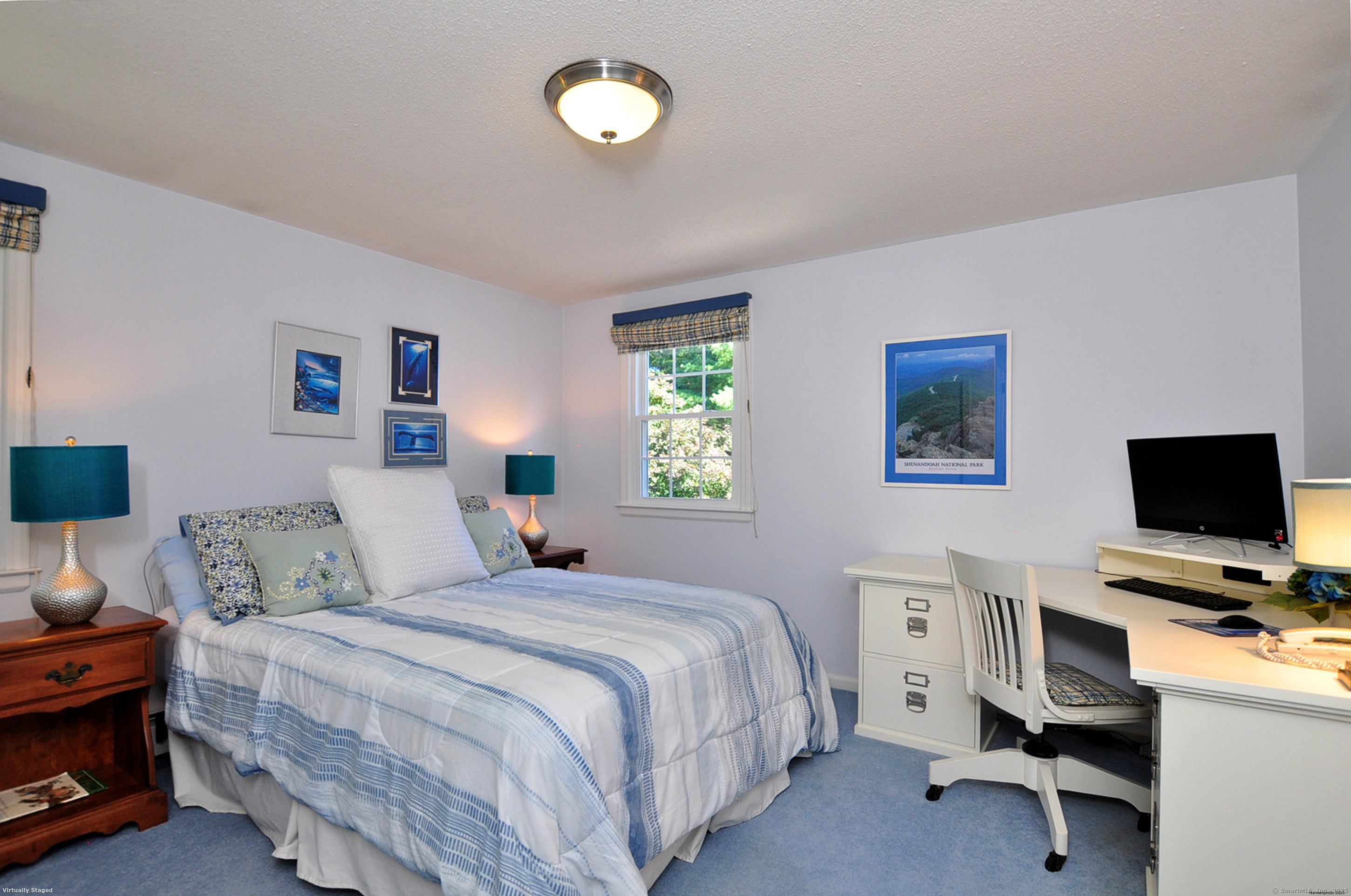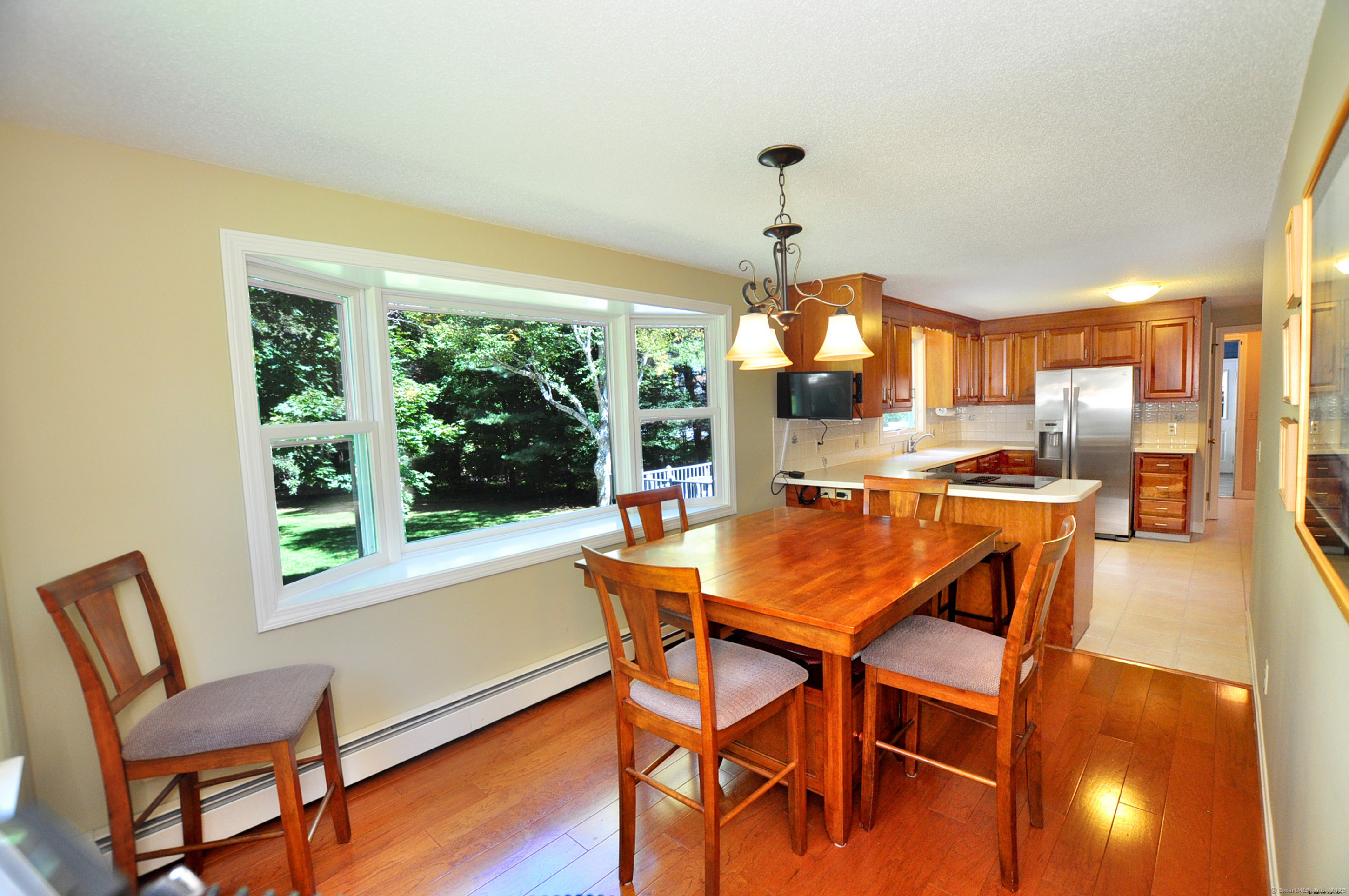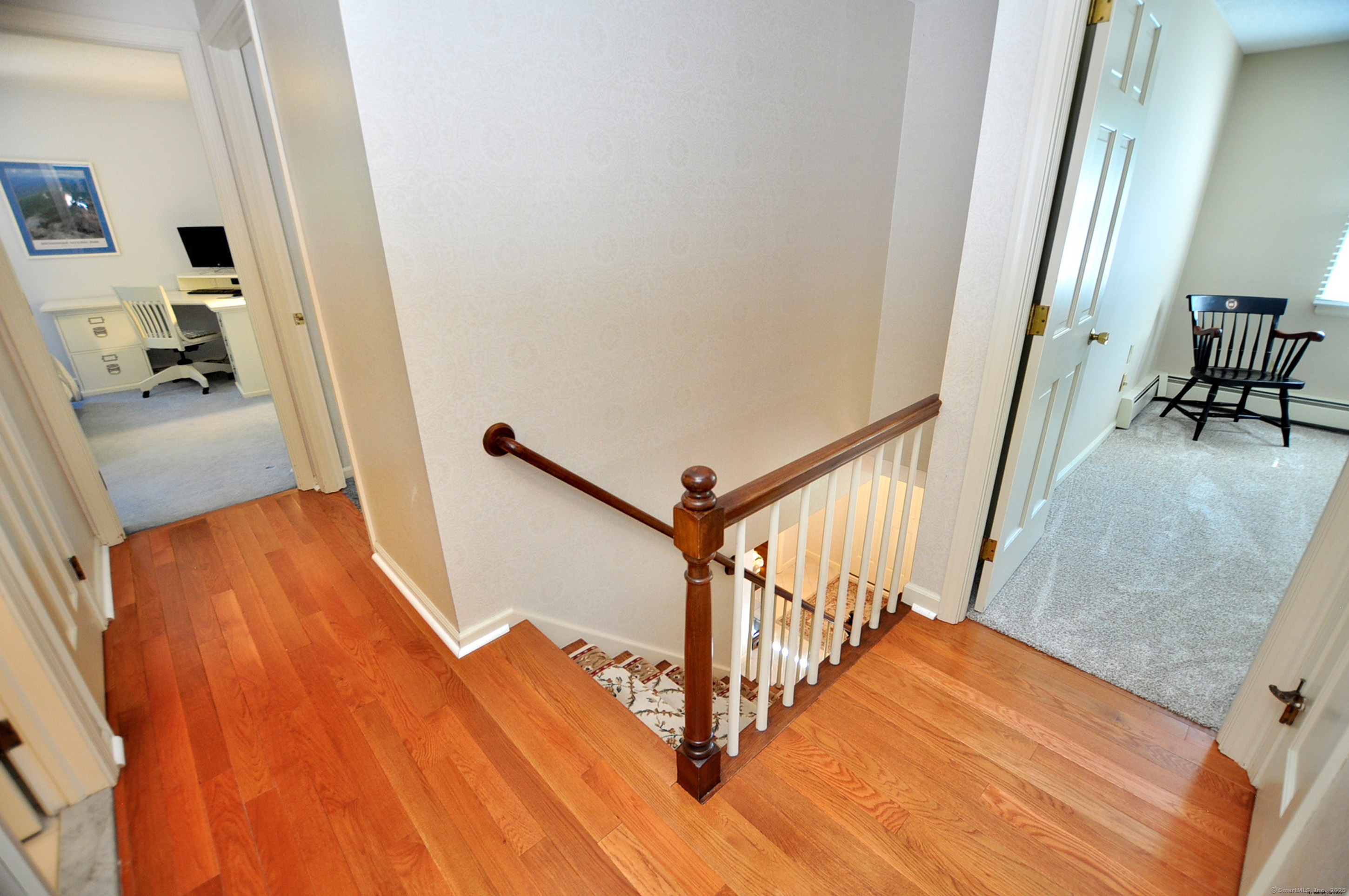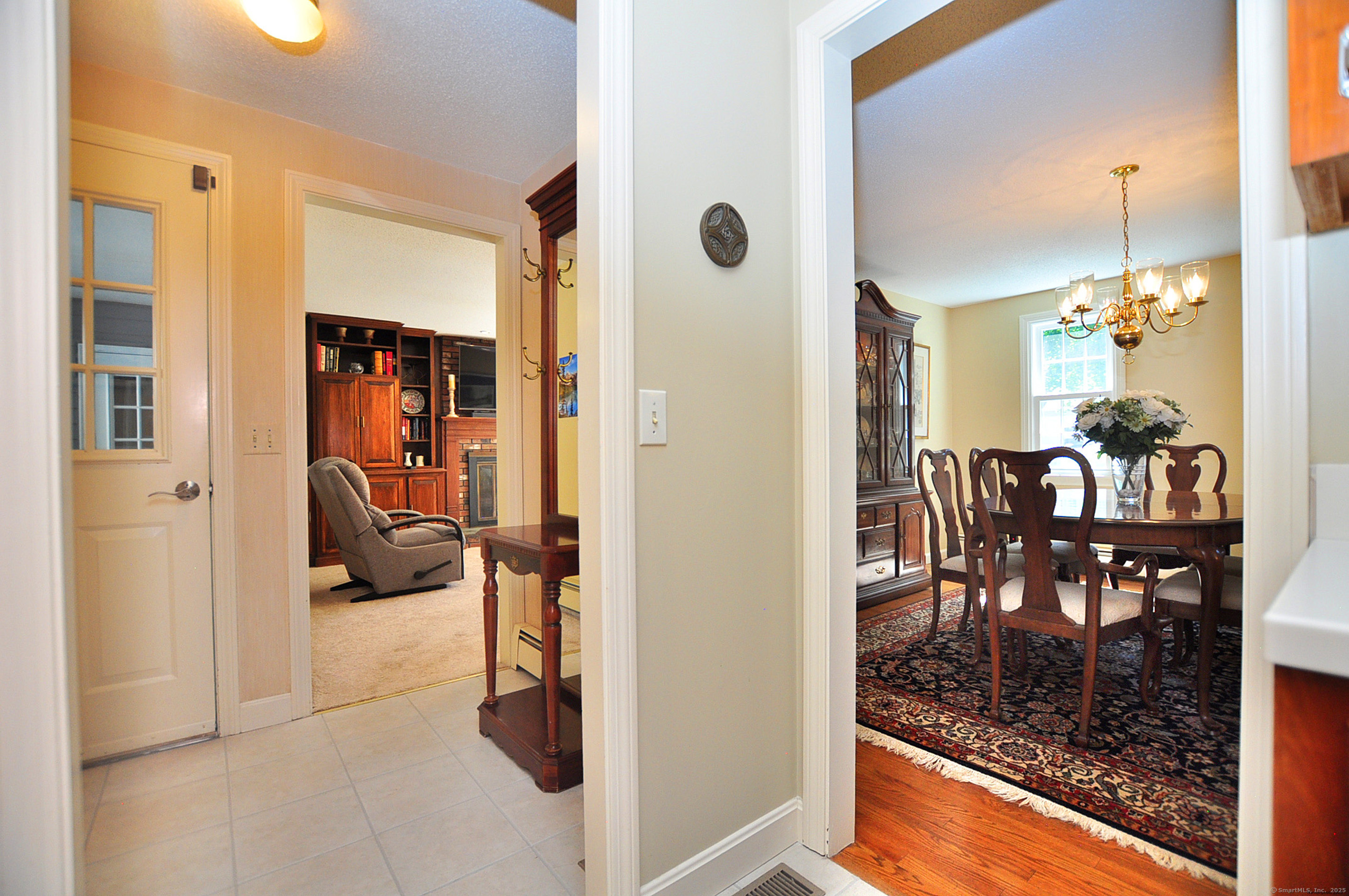 Nestled in a quiet yet convenient neighborhood of LaCava-built homes, this beautifully maintained 4 bedroom, 2 full & 2 half-bath Colonial blends timeless elegance with modern updates and recent big-ticket improvements. Enjoy peace of mind with a Generac whole-house generator, on-demand hot water, an irrigation system, a new roof (2024), windows (2023), air conditioning (2021), front door (2019), boiler (2022), and carpeting (2025). Step inside the main level to find beautiful hardwood floors, a large eat-in kitchen with SS appliances, a formal dining room perfect for entertaining, a spacious formal living room, and an updated half bath with laundry. The inviting family room boasts natural light, a cozy fireplace with custom built-ins, and is adjacent to a sunporch with access to a large two-tiered deck overlooking the spacious private back yard. Upstairs you'll find 4 generously sized bedrooms, including a master suite with two closets and a full bath. One of the four bedrooms features custom built-ins, ideal for an in-home office. A nicely updated full bath with tub/shower completes this level. The lower level adds 550+ SF of finished living space with full-size windows for natural light, a convenient kitchenette (with refrigerator, sink, counterspace, and cabinets), an updated half bath, and a large storage/workshop area. Additional features include a two-car garage with pull-down attic storage. This home has been meticulously cared for - just unpack and enjoy!