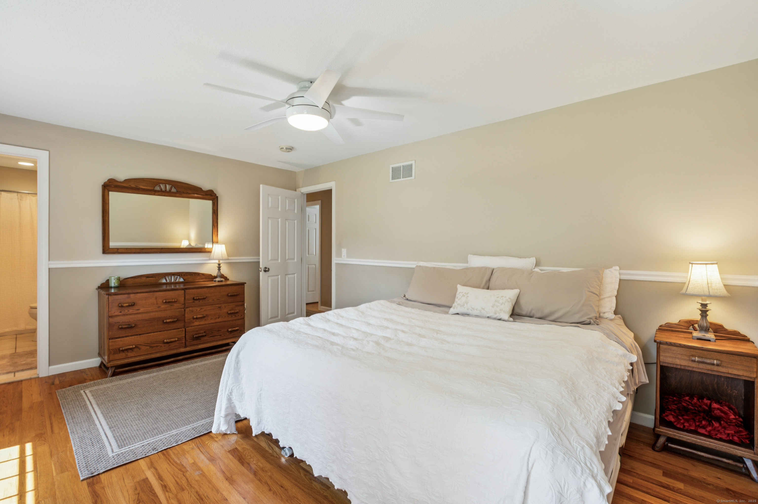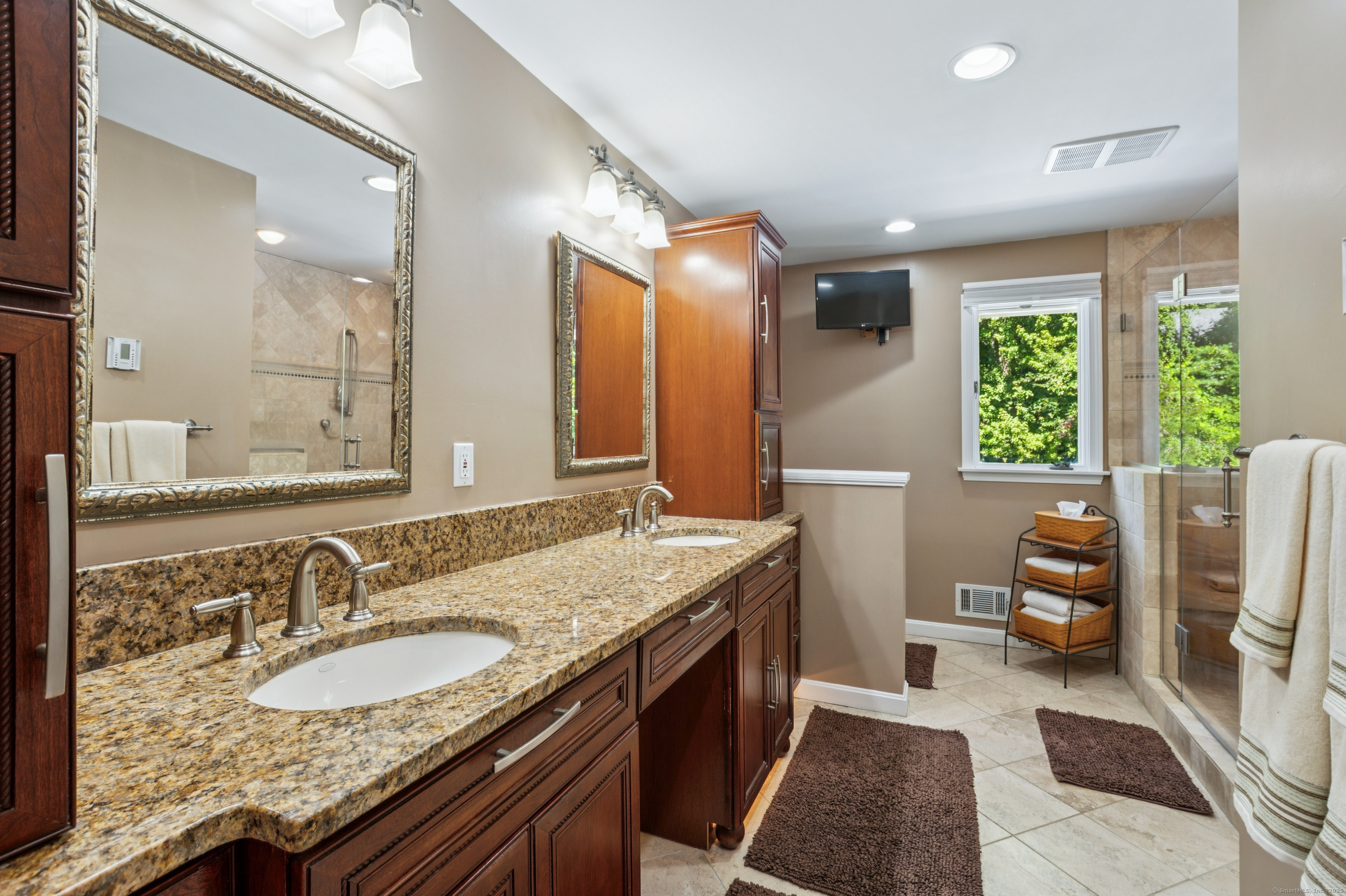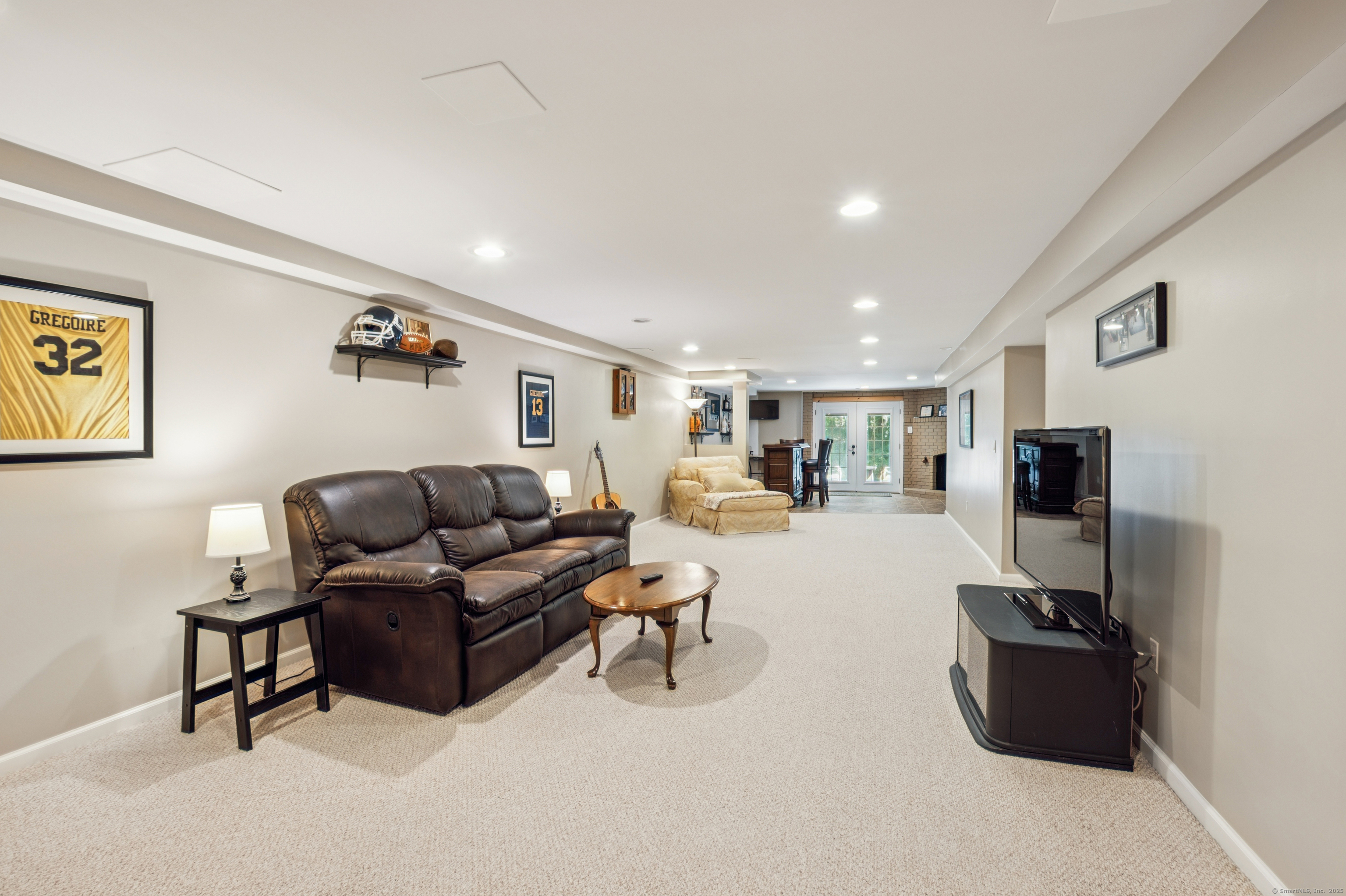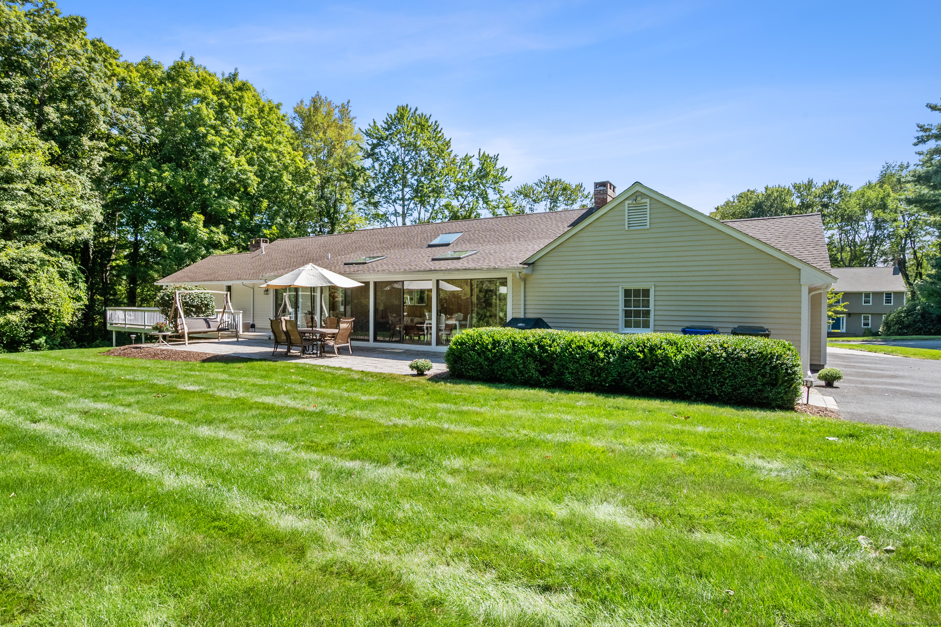 Offered! Rarely available Carrabello Ranch known for fine craftsmanship and superb design! Gracious yet comfortable, this home beckons family and friends to sit by the gas fireplace in the vaulted great room and enjoy the glow of the shiny wood floors and the sunny bay window. Dinner in the dining room enhances enjoyment of the fireplace as well. Cooking is a breeze in the updated, well- appointed kitchen boasting ivory cabinetry, quartz counters, a desk and lots of storage. It's so nice when everything has it's place. Relax in the spacious sunroom overlooking the dining room. It's got vaulted ceilings and skylights and overlooks the private, serene yard. The primary suite is a quiet retreat offering hardwood floors, a romantic fireplace and sliders to a large deck. The updated bath has custom cabinetry, double sinks and a heated floor. Two more spacious bedrooms with fans and hardwood floors and two full baths complete the main floor. Then there's the Lower Level Surprise! Enjoy the huge heated/cooled family room with fireplace, 2 bedrooms, a closet, full bath, and sliders to a stone patio. There's also lots of storage space! Location is high on everyone's list and this home is minutes away from shopping, restaurants, summer music and a short drive to Heublein Tower. Also don't forget that Simsbury has an award winning school system. This is a great home in a great neighborhood in a great town and it can be yours. *See list of special features in attachments.