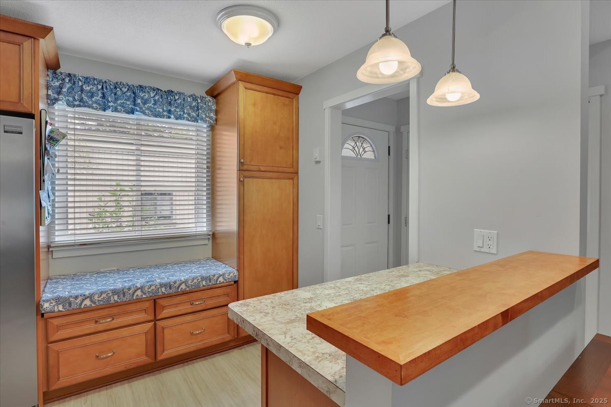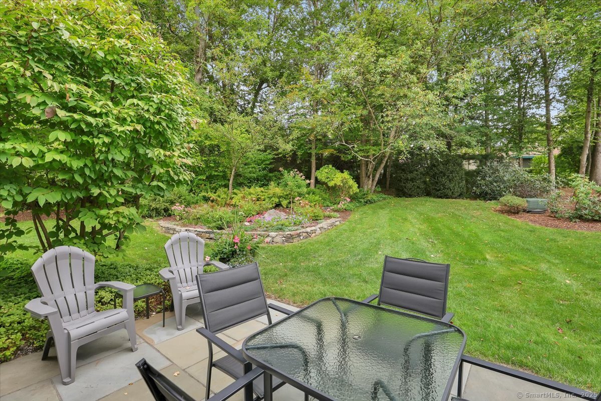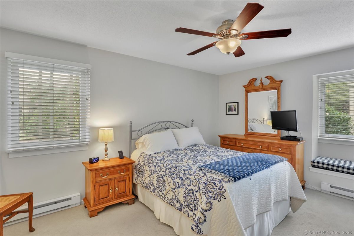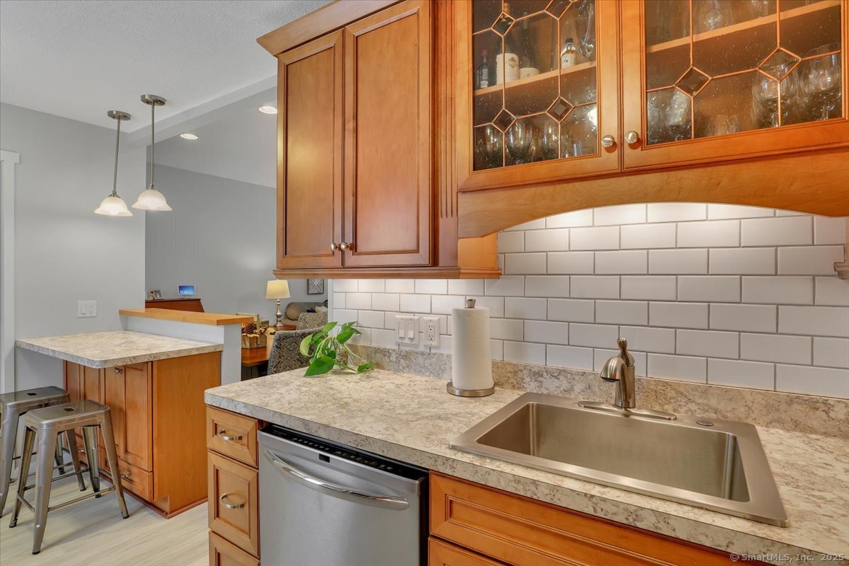 Desirable Winthrop Model Unit located in the Hill Top section of Heritage Village! A short walk to unit D & the 1st garage makes this unit worth a look! With an updated custom kitchen & plenty of storage, under cabinet lighting, breakfast bar with storage & SS appliances. A spacious living room with a Fplc, laminate flooring & a newer slider that opens to the patio. This beautiful patio has already been extended & has a convenient remote awning. Just off the patio you will see the stunning garden area! There are 2 generous sized bedrooms & a full bath. The primary bedroom offers a private full bath & a cozy window seat. These units will be painted next week & the parking area & roofs have already been done!