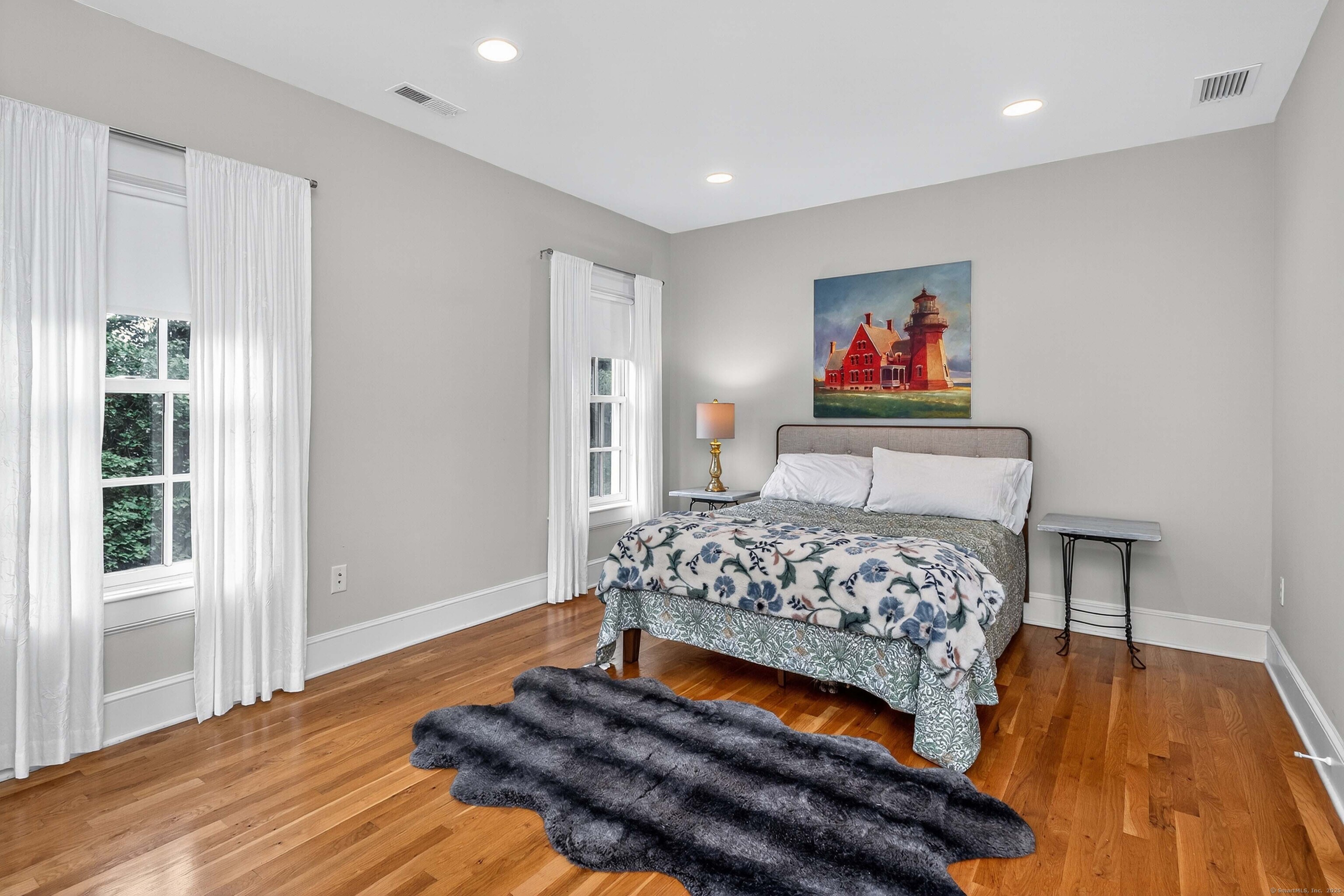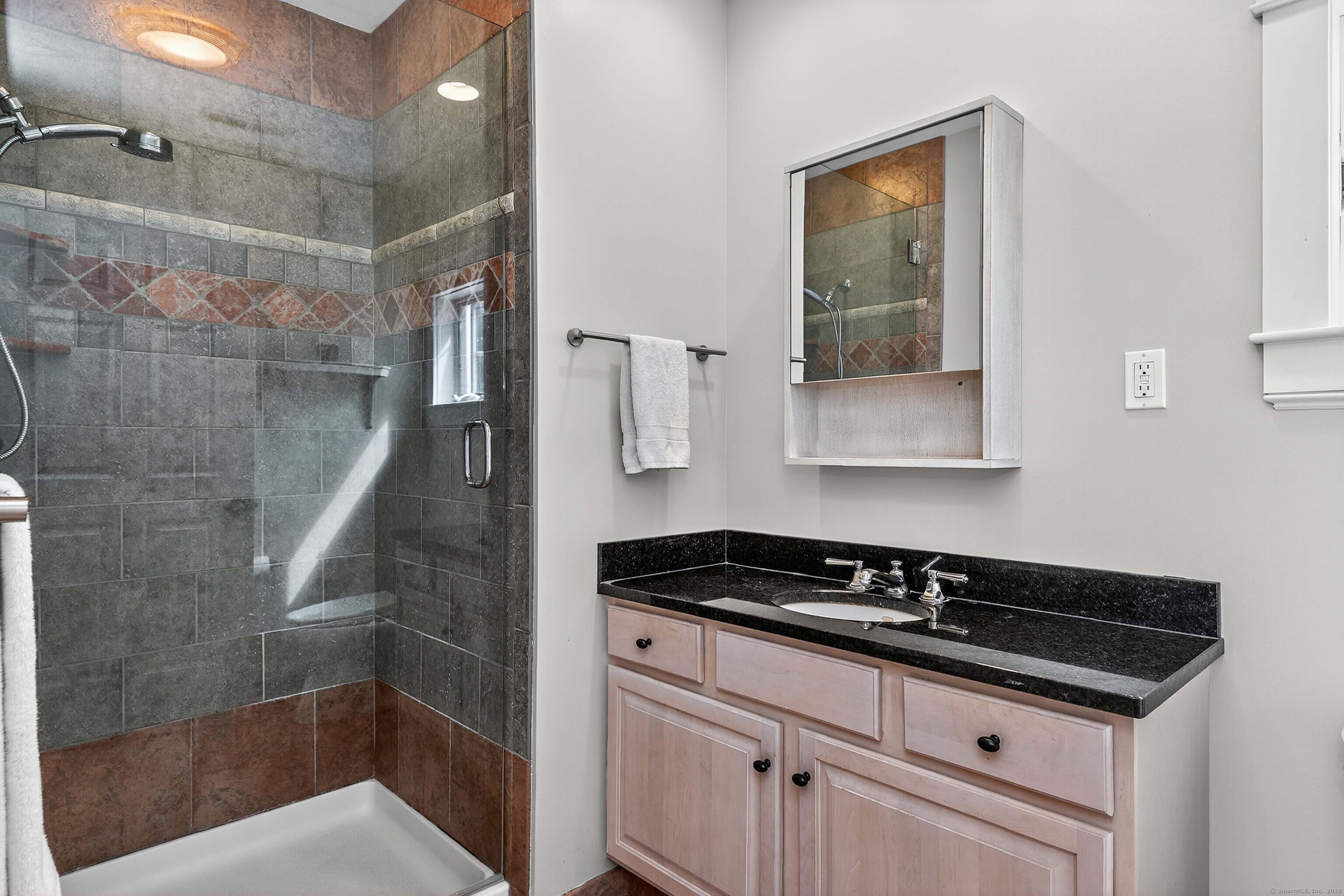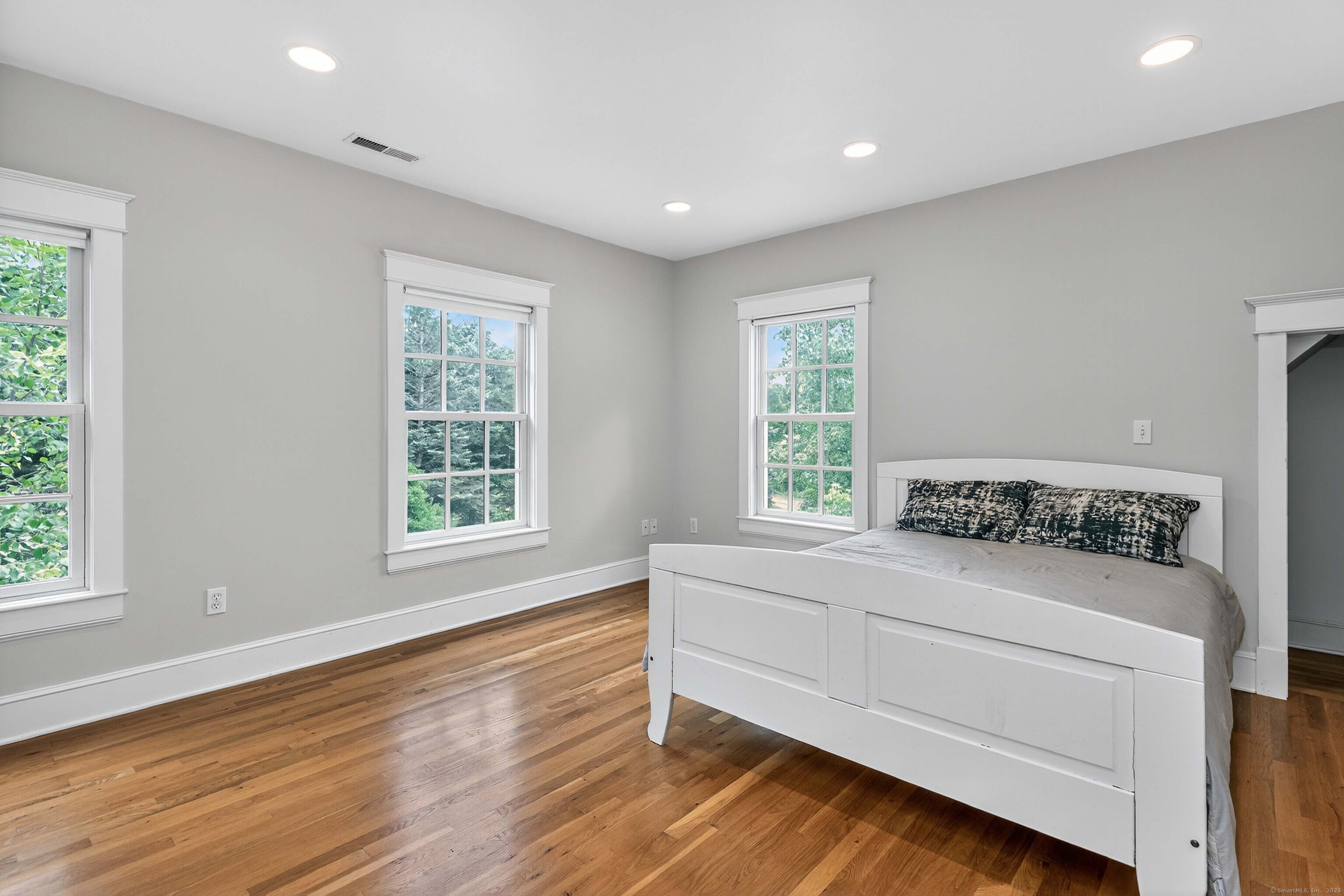 In the heart of historic Litchfield CT, this 2004 colonial sits on a private 1-acre flag lot a short walk to the Green. 4,065sqft with an open, light-filled layout, 9ft ceilings, and wide-plank white oak floors. The great room with fireplace connects to the 2023 kitchen with granite counters, GE Cafe appliances, a Viking wine fridge, and a Miele steam oven. A library with a 16.5ft cathedral ceiling has radiant heat. A powder room with brick courtyard tile, a laundry with granite-effect tile and large sink, and a mudroom with a half bath complete the main level. Upstairs, the primary suite has a tray ceiling, Italian-tiled bath with radiant heat, and plumbing for a spa tub. 2 additional en-suite bedrooms have custom-tiled baths (1 with spa tub). A 400sqft bonus room with window seats sits over the 3-car garage.The 1,600sqft walkout basement (8ft ceilings, historic windows) suits a gym, office, or apartment. Exterior features include a columned entry with granite steps, red brick walkways, 46 Woodwright windows with custom trim/shutters, a paved 24ft driveway with turnaround, and a 3-car garage with 10ft bays, workshop, and masonry floor. A private deck, hot tub, landscaped gardens, evergreens, and fieldstone walls create a quiet in-town setting.Systems: 4-zone geothermal on the 1st floor; oil furnace with AC upstairs; rubberized basement walls; 20-gpm well; city sewer; 240V outlets; insulated attic;Recent updates: GAF roof (Oct 2024), , fresh Benjamin Moore exterior paint.
