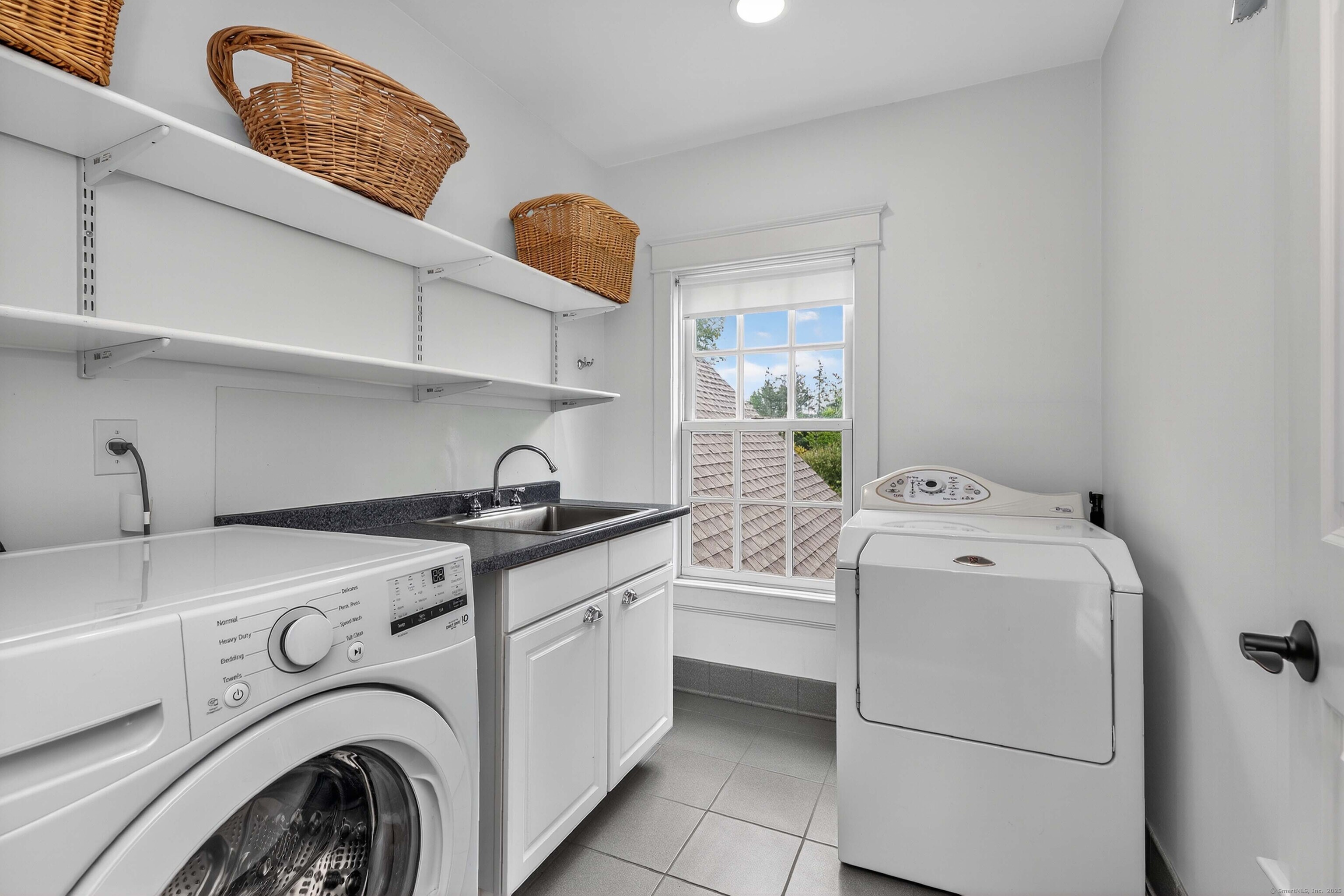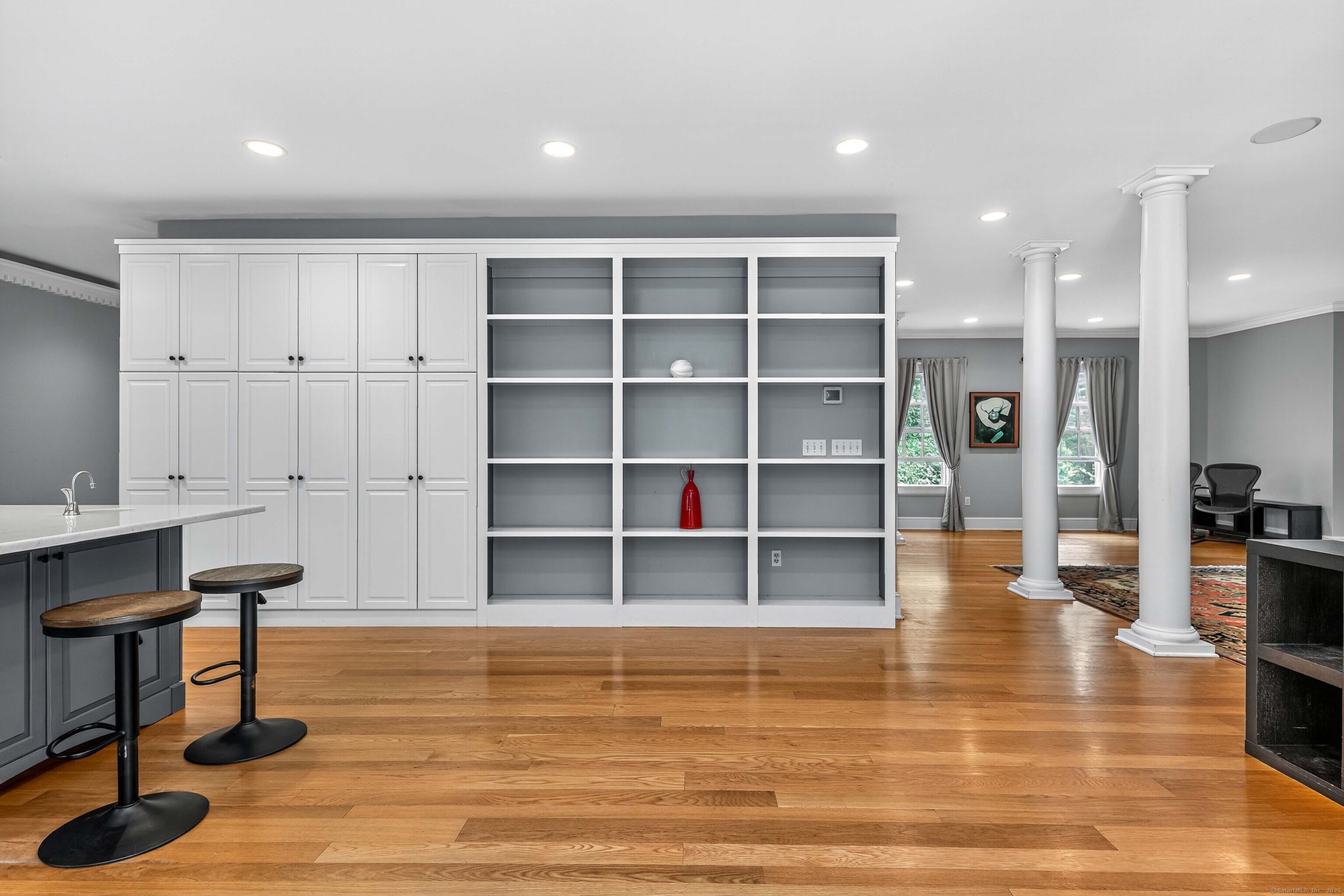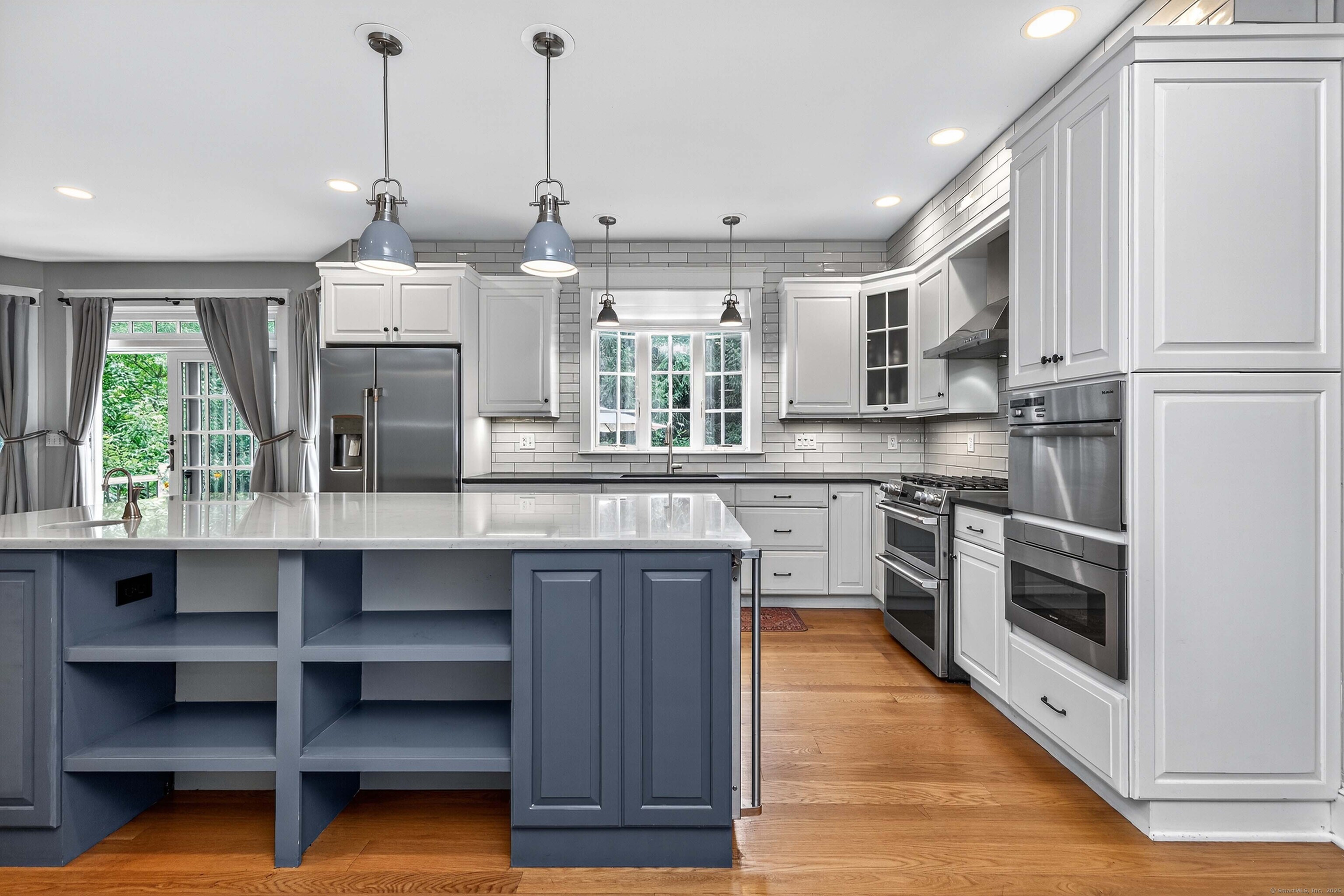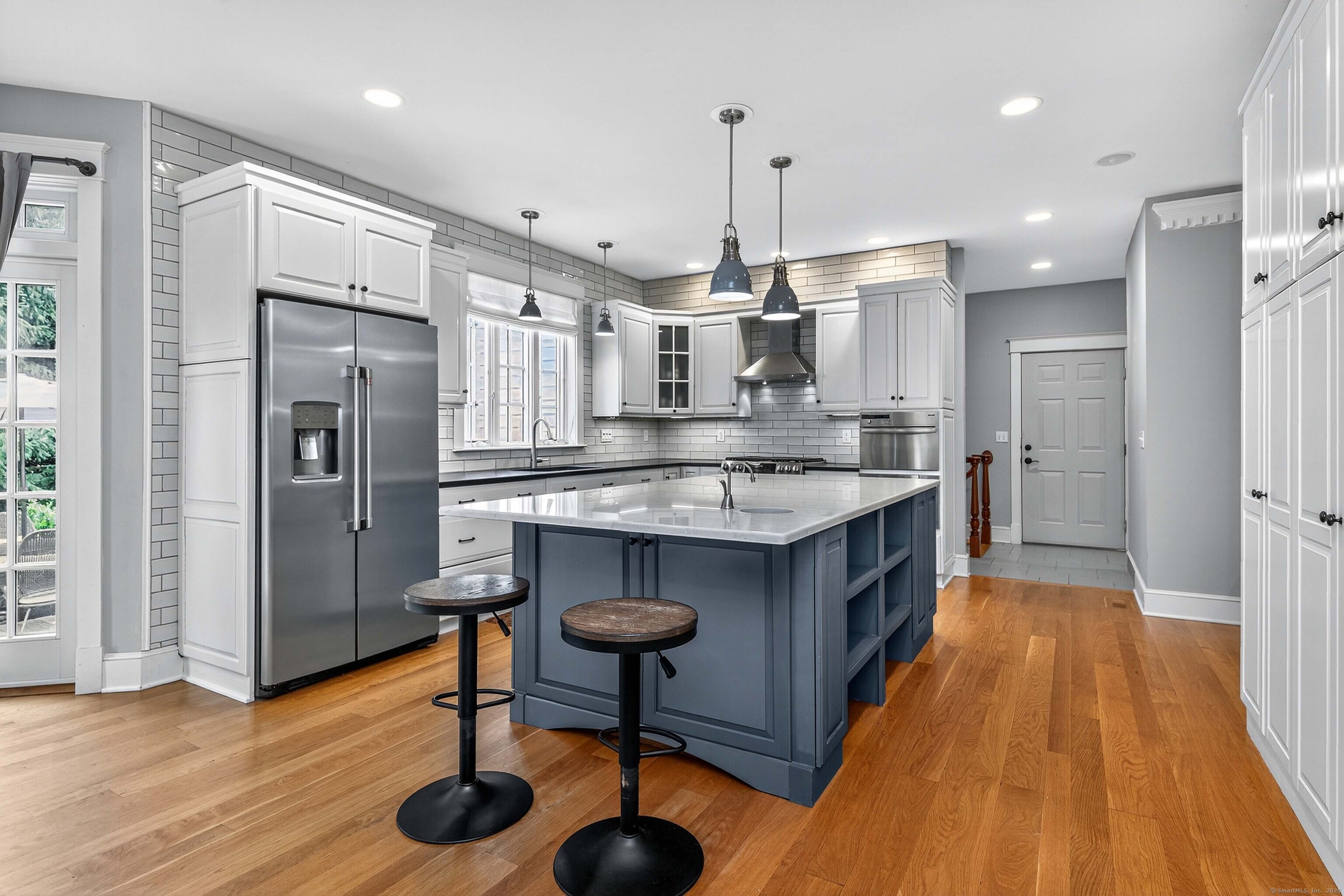 In the heart of historic Litchfield CT, this 2004 colonial sits on a private 1-acre flag lot a short walk to the Green. 4,065sqft with an open, light-filled layout, 9ft ceilings, and wide-plank white oak floors. The great room with fireplace connects to the 2023 kitchen with granite counters, GE Cafe appliances, a Viking wine fridge, and a Miele steam oven. A library with a 16.5ft cathedral ceiling has radiant heat. A powder room with brick courtyard tile, a laundry with granite-effect tile and large sink, and a mudroom with a half bath complete the main level. Upstairs, the primary suite has a tray ceiling, Italian-tiled bath with radiant heat, and plumbing for a spa tub. 2 additional en-suite bedrooms have custom-tiled baths (1 with spa tub). A 400sqft bonus room with window seats sits over the 3-car garage.The 1,600sqft walkout basement (8ft ceilings, historic windows) suits a gym, office, or apartment. Exterior features include a columned entry with granite steps, red brick walkways, 46 Woodwright windows with custom trim/shutters, a paved 24ft driveway with turnaround, and a 3-car garage with 10ft bays, workshop, and masonry floor. A private deck, hot tub, landscaped gardens, evergreens, and fieldstone walls create a quiet in-town setting.Systems: 4-zone geothermal on the 1st floor; oil furnace with AC upstairs; rubberized basement walls; 20-gpm well; city sewer; 240V outlets; insulated attic;Recent updates: GAF roof (Oct 2024), , fresh Benjamin Moore exterior paint.