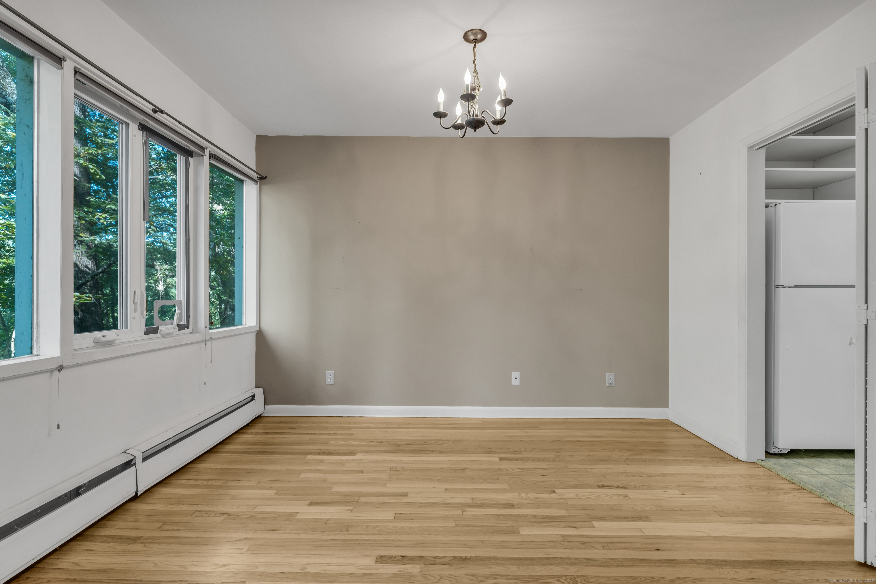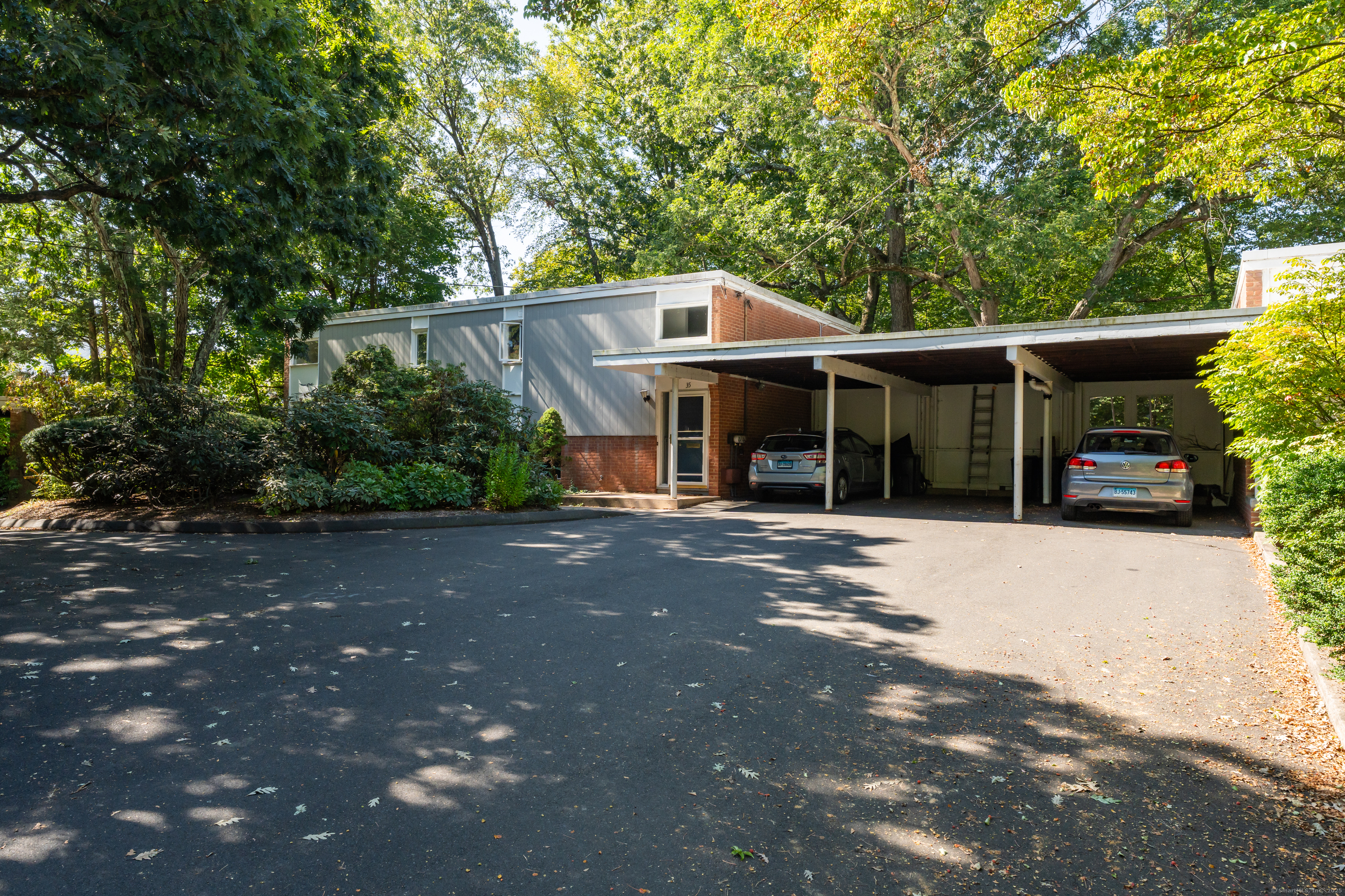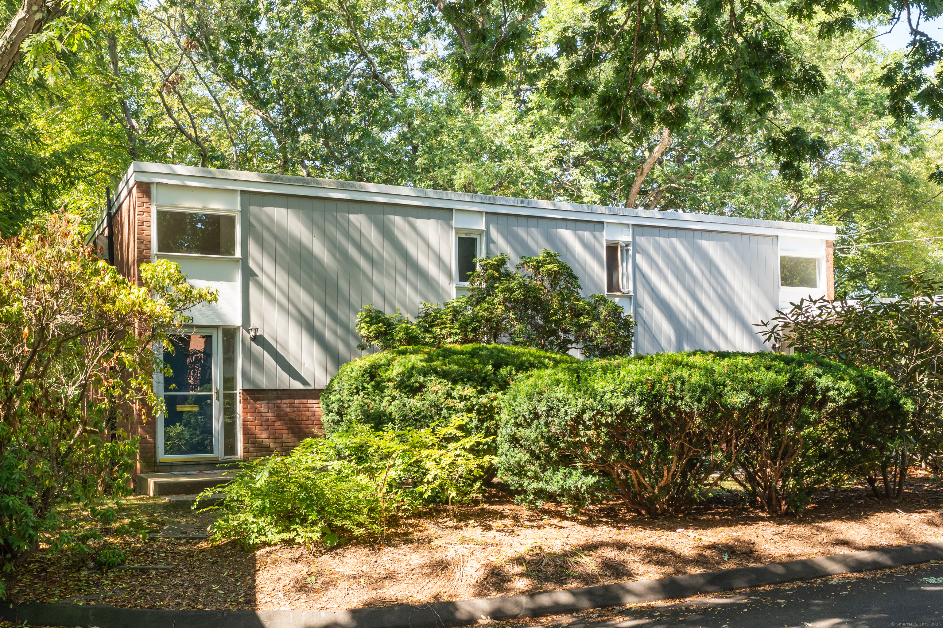 Rare opportunity to own a mid-century split-level condo in Hamden! There are only eighteen split-level townhouses in North Lake. Lovingly known as "New England Row Houses" or "Garden-Type Apartments", these condos were built in 1957 by Pedersen & Tilney, Architects. The brilliance of the architecture allows for the concept of bringing nature indoors to flourish. There is a wall of windows in the living room and dining room with tranquil views looking onto a pond. The upstairs includes a spacious primary bedroom and second bedroom, both with water views. Hardwood floors freshly refinished and windows have been replaced with updated thermopanes. The basement is finished with an additional full bathroom. There is also a space that was once used as a dark room. Other features include a carport, in-ground pool, newer roof, new electrical panel, and a patio space. Thoughtfully tucked away into the woods, yet you are 10 minutes from downtown New Haven, Yale, and just a short walk to shops in Whitneyville and Spring Glen. Bird watchers paradise! North Lake was featured in the Brussels World's Fair in 1958 as one of the best examples of apartment building architecture in New England as well as Architectural Record (1959), and Architectural Forum (1961).