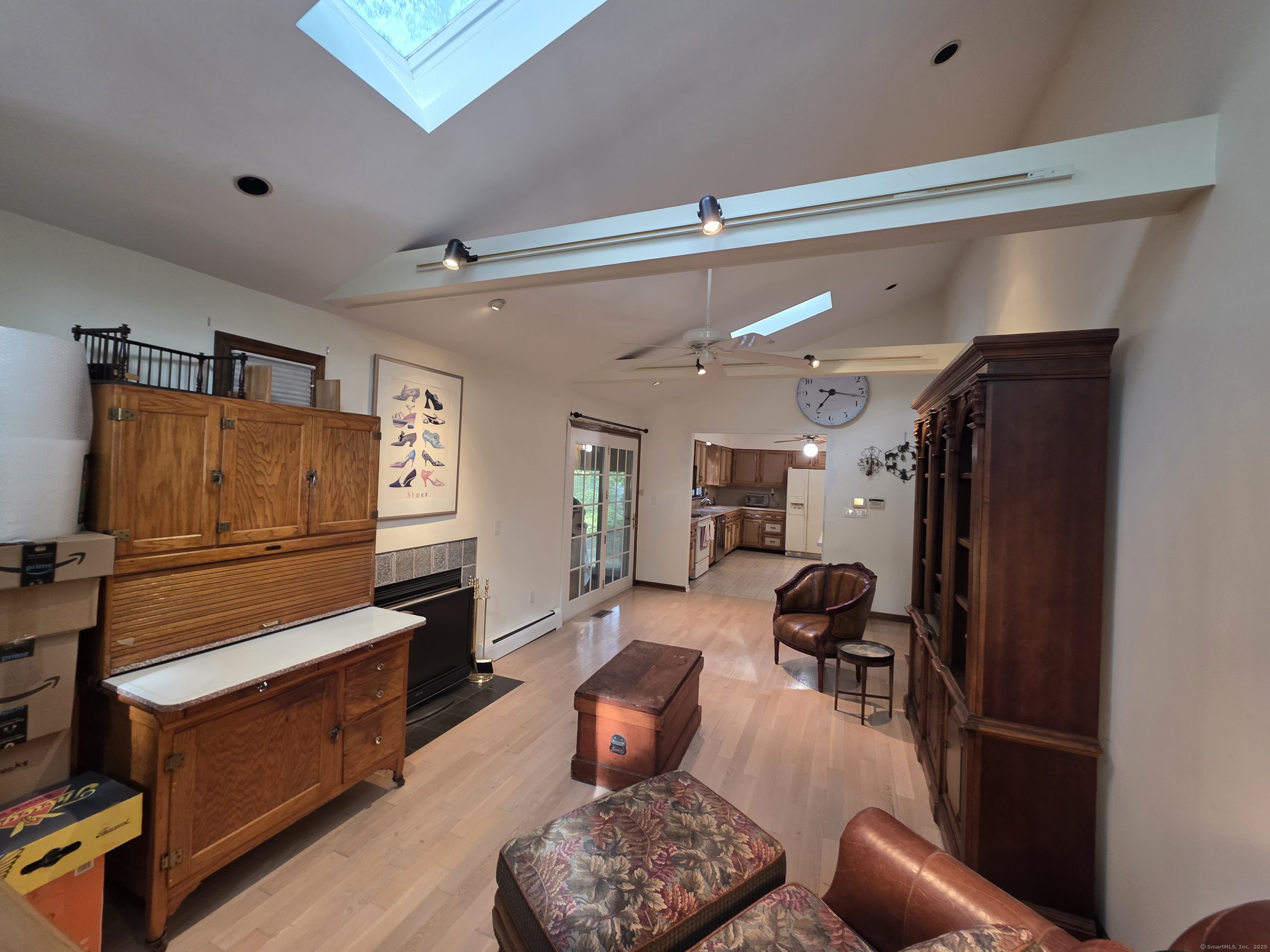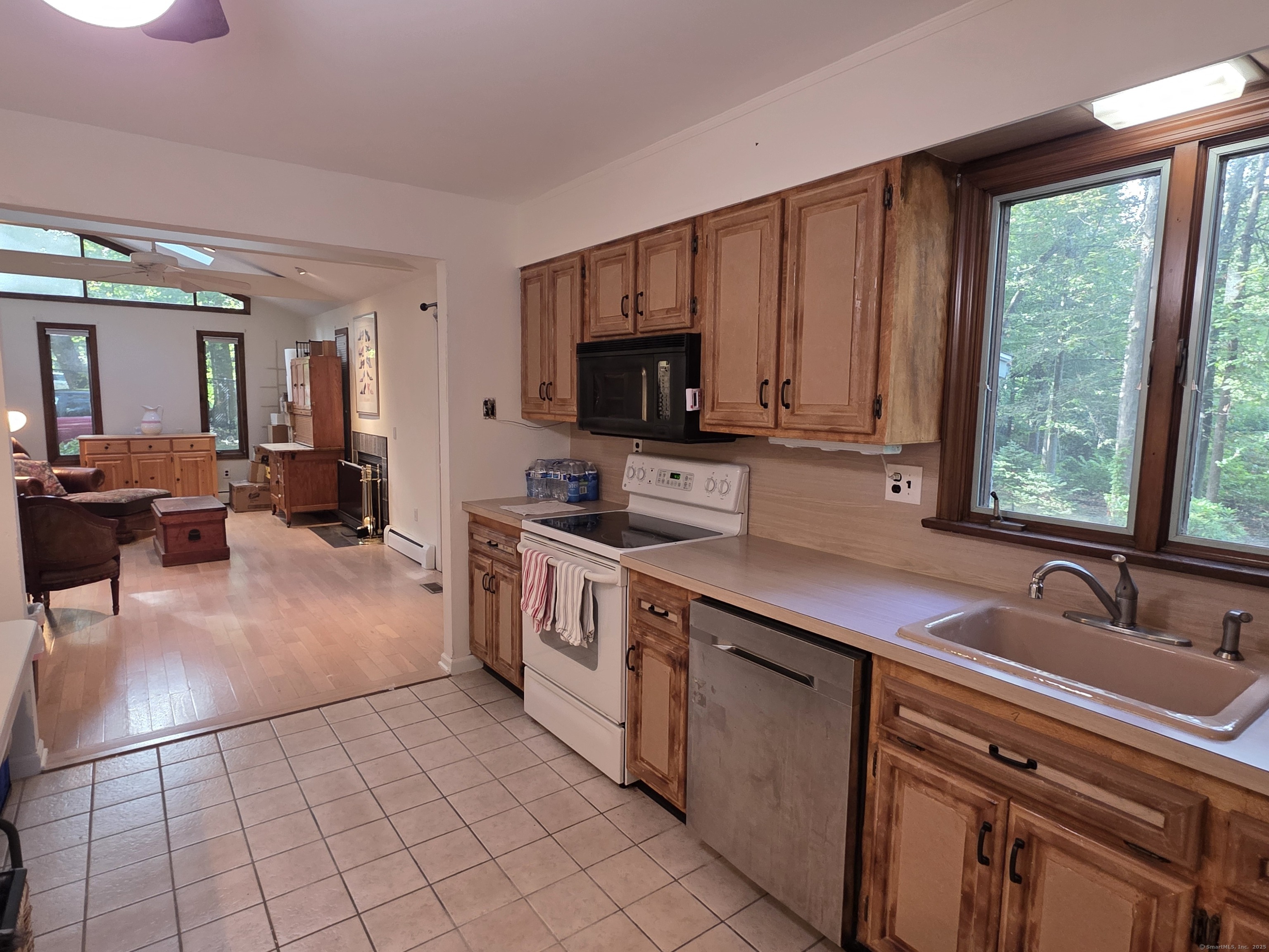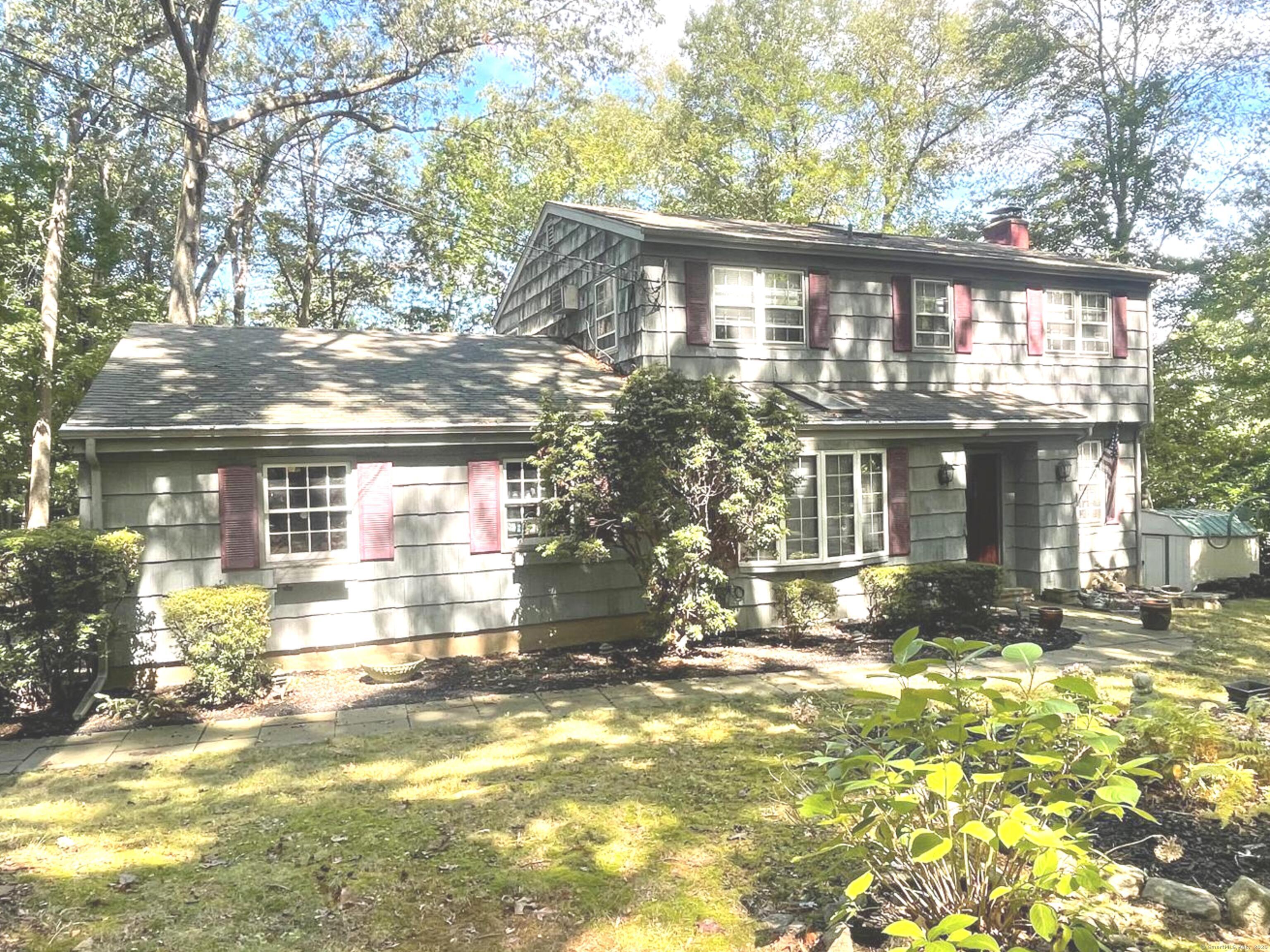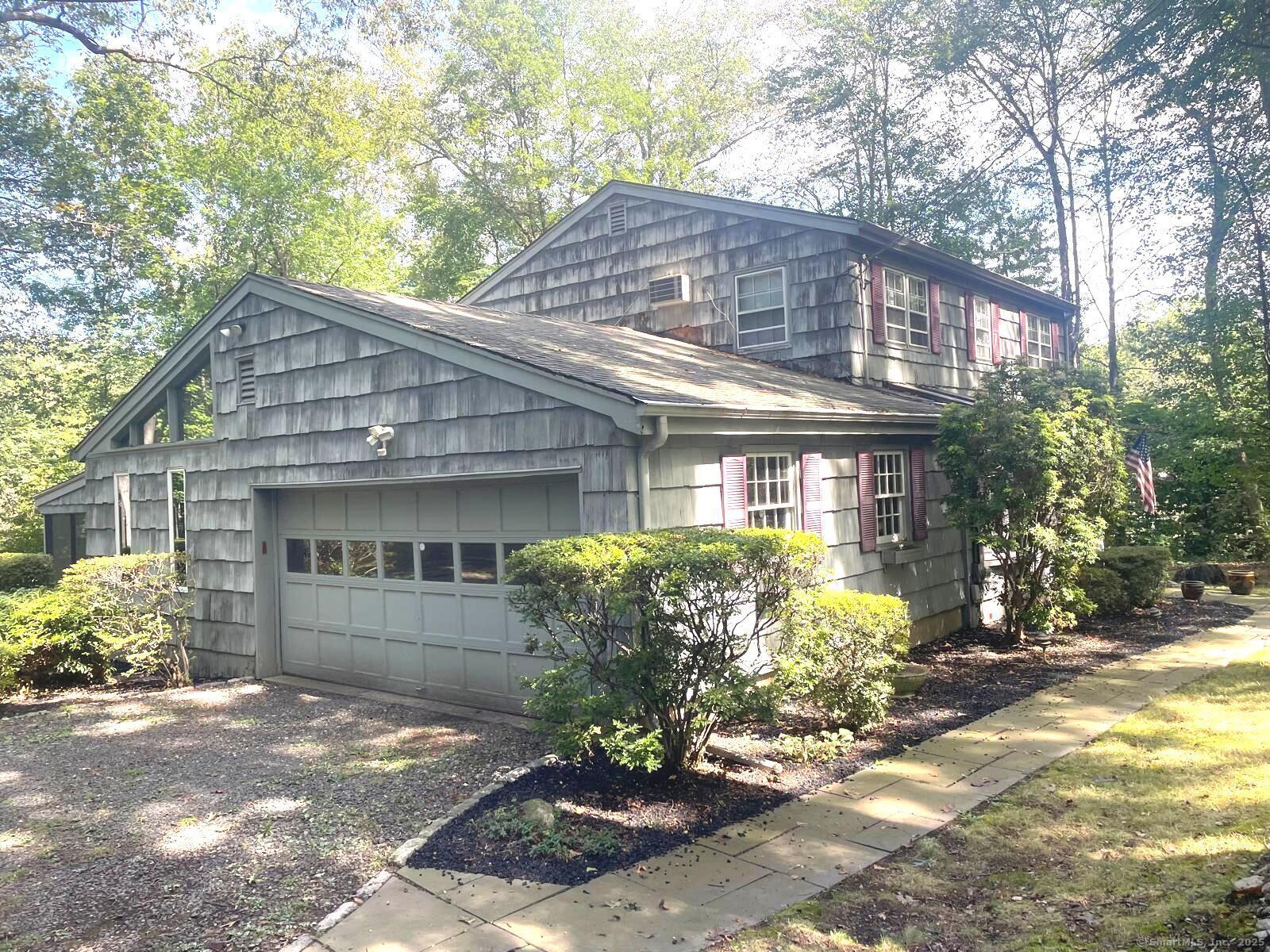 Tucked away in highly sought-after Norwalk-Westport line location, this lovely Colonial sits on .89 private acres and offers both comfort and convenience. Designed with entertaining in mind, the home features a spacious front-to-back living room with hardwood floors and two cozy fireplaces, plus an eat-in kitchen with tile flooring and abundant cabinet space that opens seamlessly to the dining room and family room. The family room's vaulted ceiling, hardwood floors, and second fireplace create a warm and inviting atmosphere. A wonderful three-season porch overlooks the expansive backyard, perfect for relaxing and enjoying the peaceful setting. Upstairs, the primary suite boasts a large closet and full bath. Three additional bedrooms, all with hardwood floors, share a full hall bath. Hardwood floors are also present under the upstairs carpeting, per homeowner. Additional features include a pull-down attic with ample storage, a full unfinished basement, and a two-car garage. With its secluded yet convenient setting, this home offers the best of both worlds: walk to Norwalk High School and area shopping, while enjoying easy access to I-95, the Merritt Parkway, and Metro North. Just an hour to NYC.
