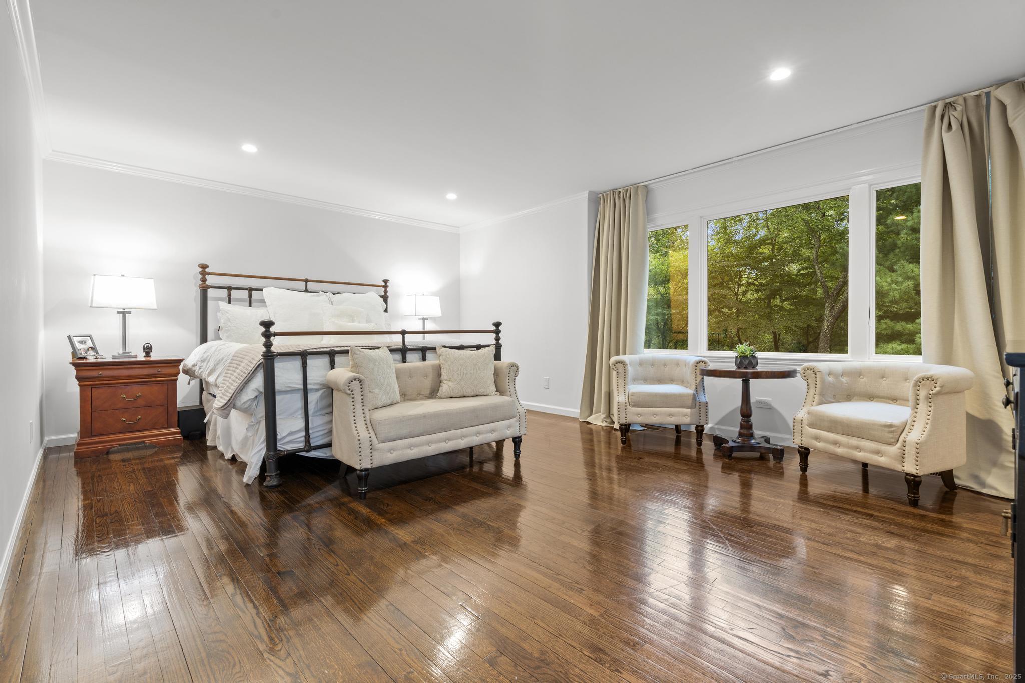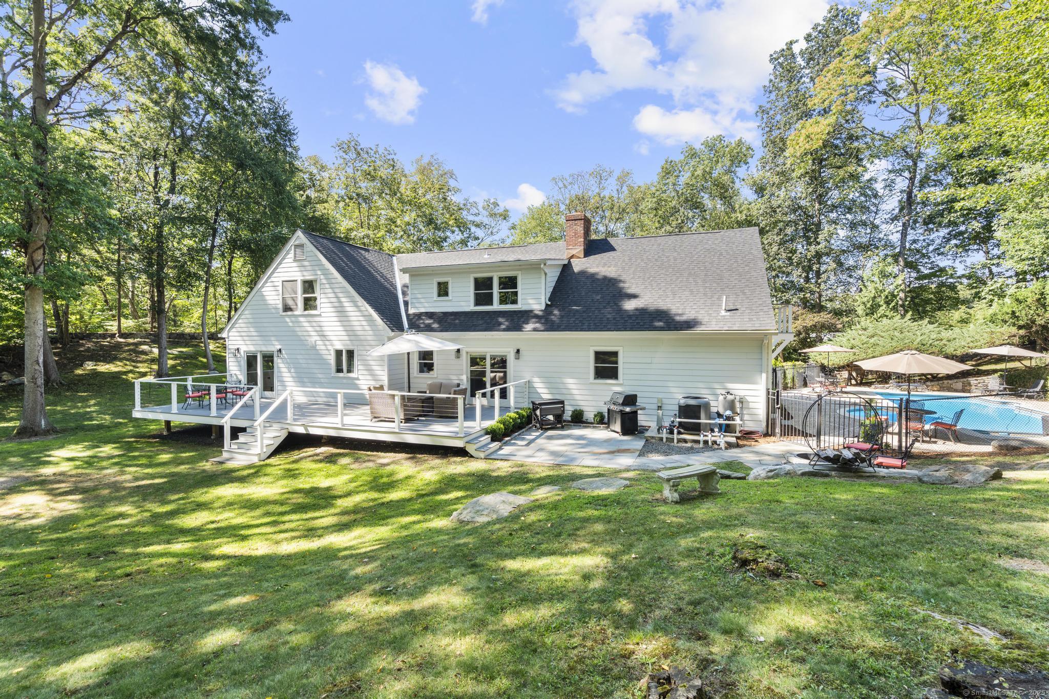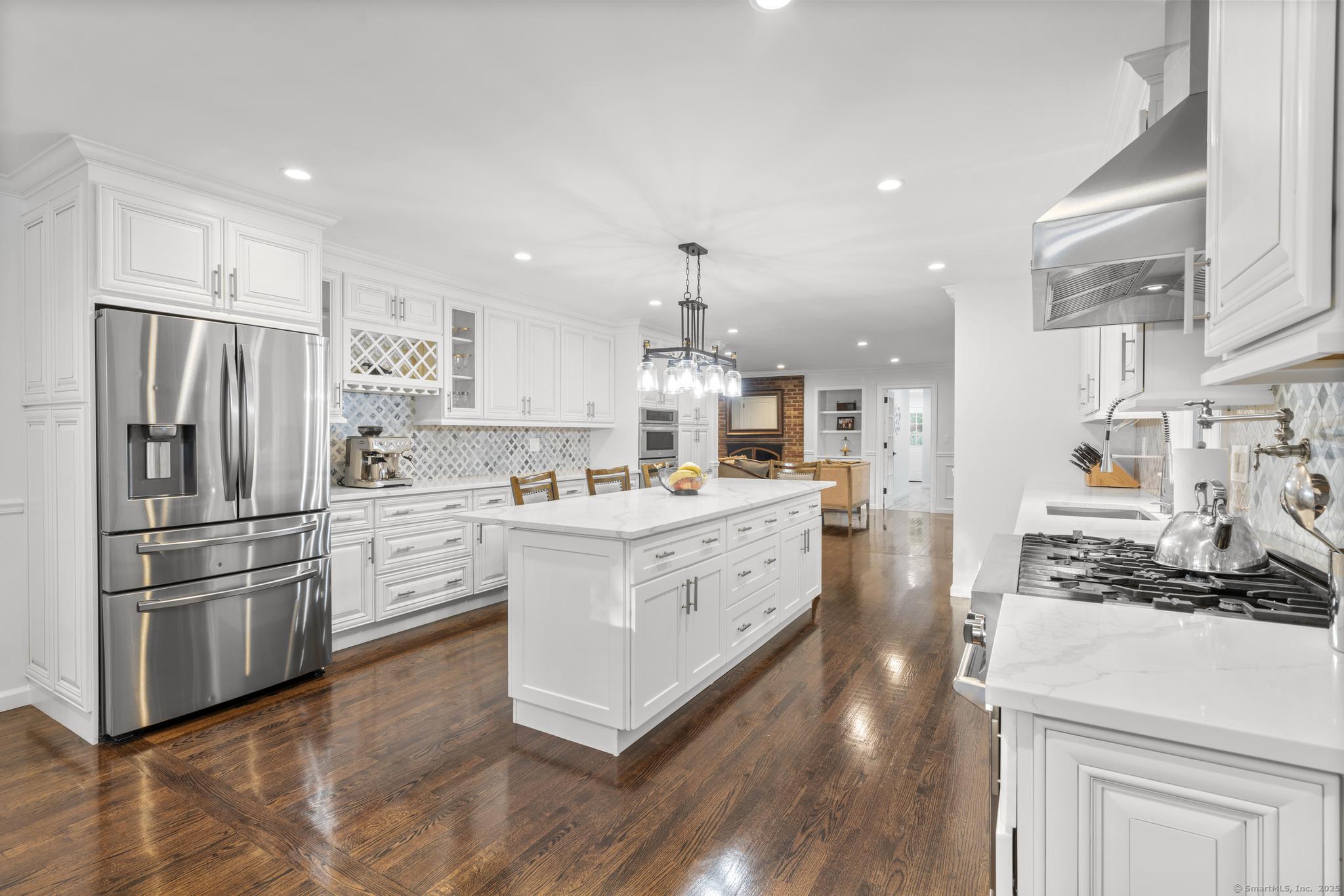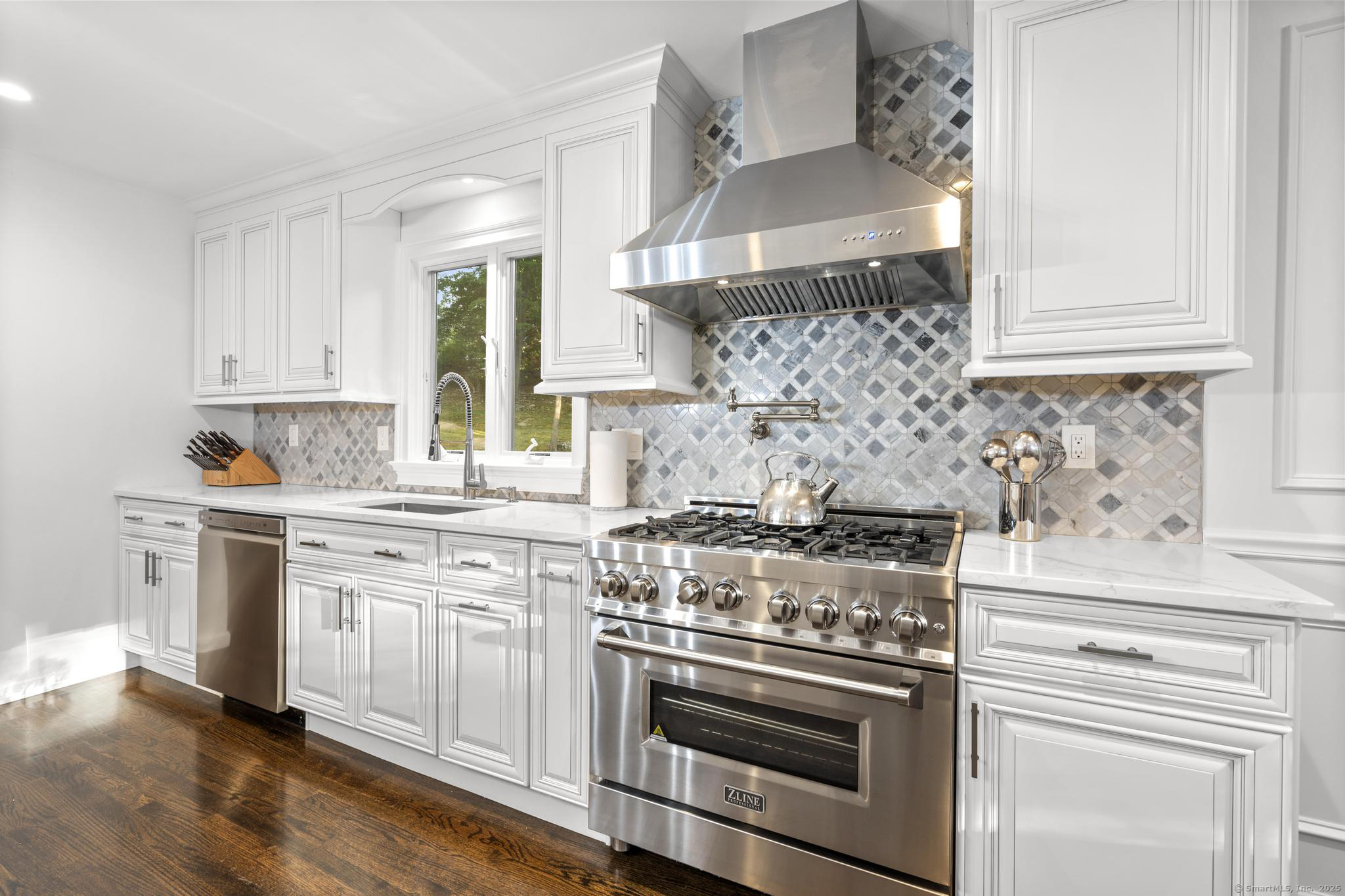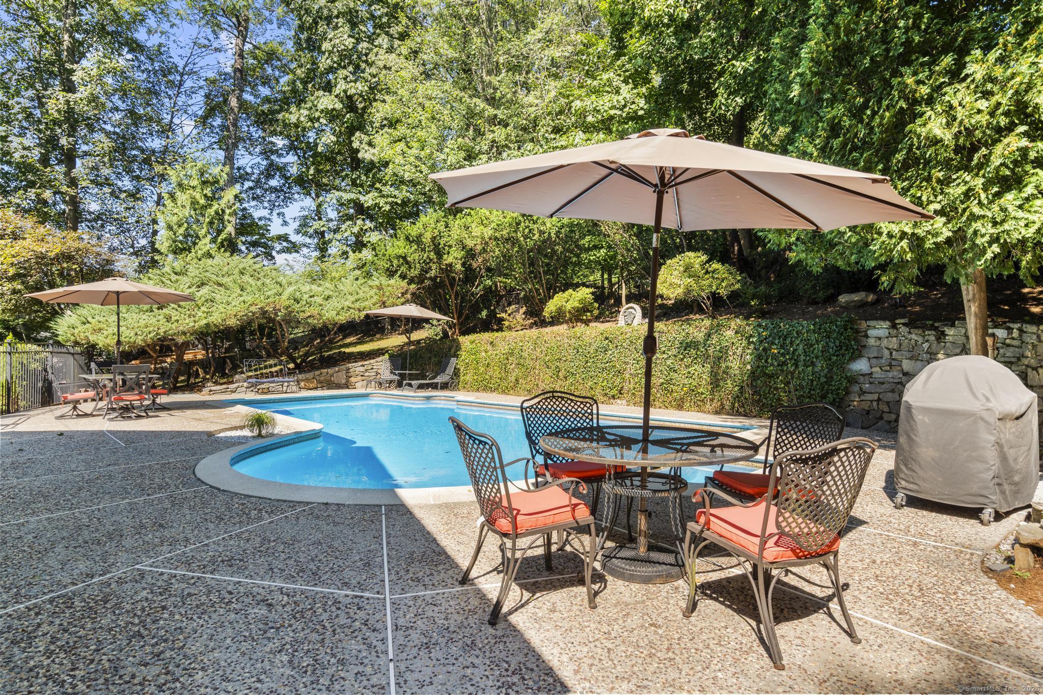 Welcome to this exceptional 5-bedroom, 5.5-bathroom residence in Stamford's highly coveted Westover neighborhood, thoughtfully and completely renovated to offer the perfect blend of modern luxury and timeless elegance. Nestled on a private, manicured lot, the property features beautifully lit stone columns, walls and a granite walkway and landing that set the tone for this spacious family retreat. Inside, you're greeted by a dramatic curved staircase with detailed millwork, leading to a large formal living room, dining room and a stunning open-concept kitchen featuring a 9-foot quartz island, 6-burner gas stove, pantry and top-tier appliances. The kitchen flows seamlessly into a warm and inviting family room with a wood-burning fireplace and sliders to the outside, followed by a mudroom and full bathroom. Unique to this home is the generous first-floor primary suite, complete with walk-in closet, a spa-inspired bathroom featuring radiant heated floors, dual vanities and an oversized shower. A large home office with custom built-ins and half bathroom complete the main level. Upstairs, you'll find four spacious ensuite bedrooms, as well as a media room with soaring cathedral ceilings and a private balcony overlooking the pool. The recently finished basement includes a fully equipped home gym, expansive recreation area and a custom laundry room with built-in counter and laundry sink. The interior has been freshly painted with custom millwork.