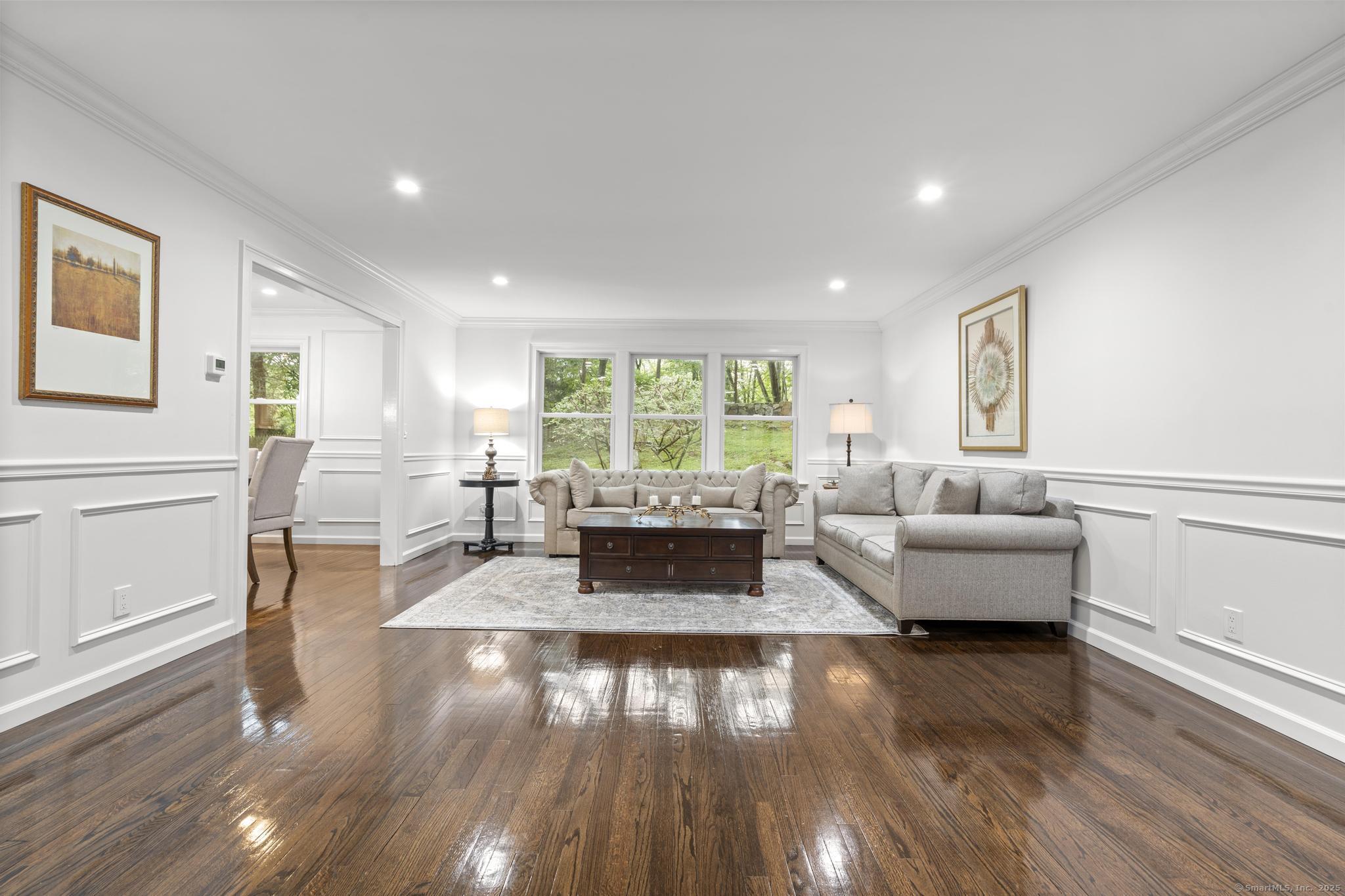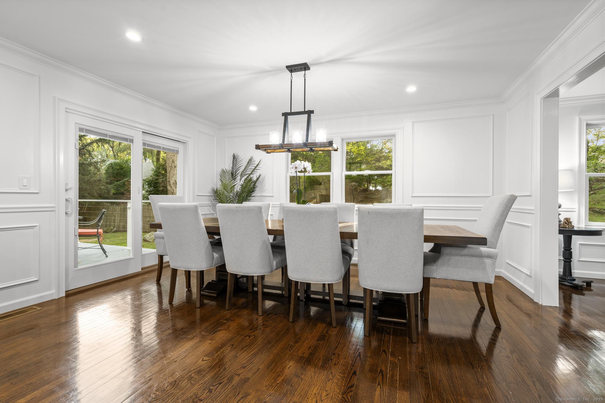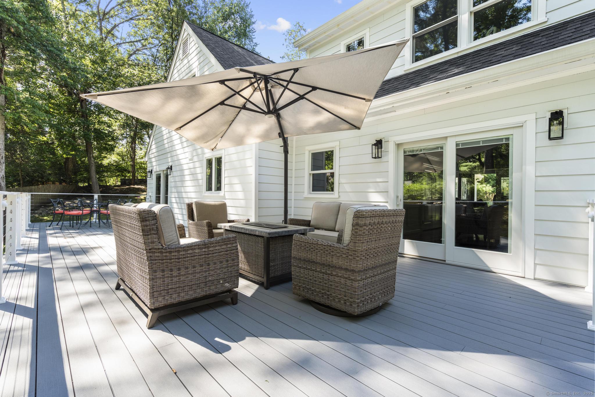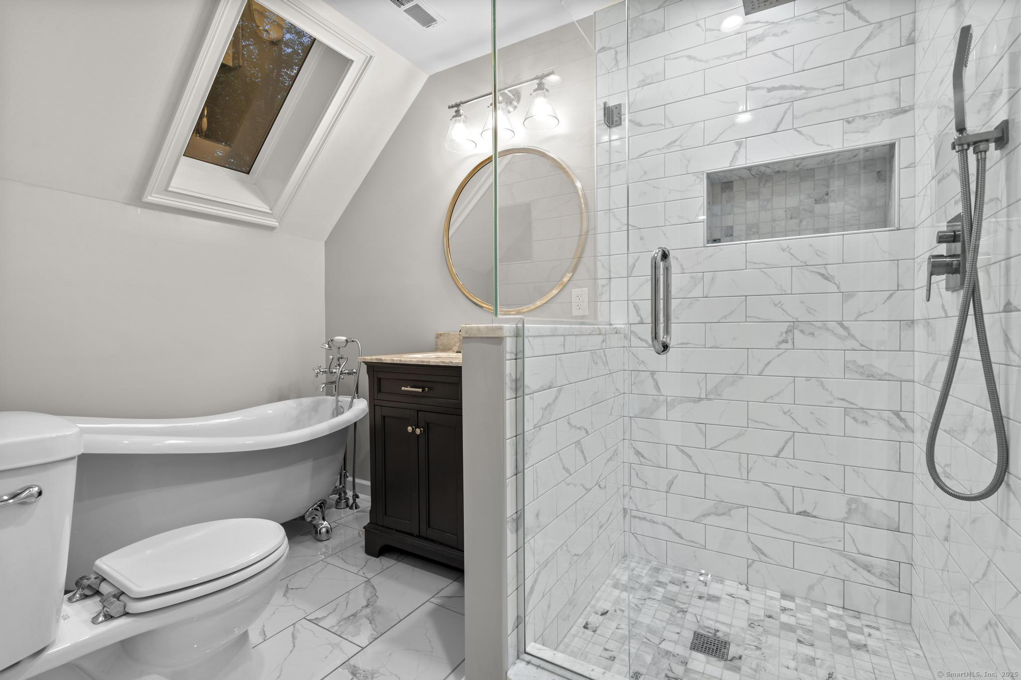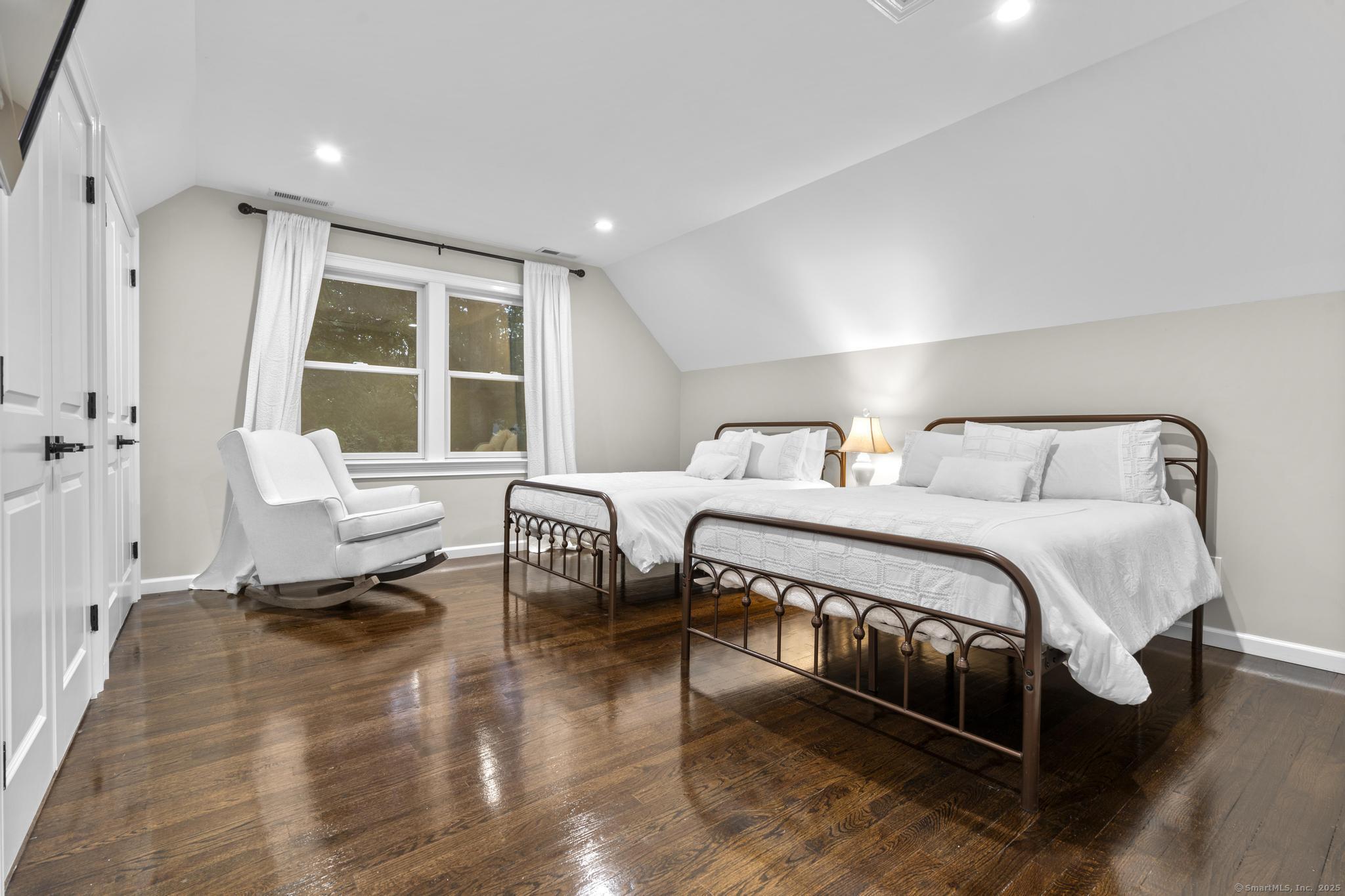 Welcome to this exceptional 5-bedroom, 5.5-bathroom residence in Stamford's highly coveted Westover neighborhood, thoughtfully and completely renovated to offer the perfect blend of modern luxury and timeless elegance. Nestled on a private, manicured lot, the property features beautifully lit stone columns, walls and a granite walkway and landing that set the tone for this spacious family retreat. Inside, you're greeted by a dramatic curved staircase with detailed millwork, leading to a large formal living room, dining room and a stunning open-concept kitchen featuring a 9-foot quartz island, 6-burner gas stove, pantry and top-tier appliances. The kitchen flows seamlessly into a warm and inviting family room with a wood-burning fireplace and sliders to the outside, followed by a mudroom and full bathroom. Unique to this home is the generous first-floor primary suite, complete with walk-in closet, a spa-inspired bathroom featuring radiant heated floors, dual vanities and an oversized shower. A large home office with custom built-ins and half bathroom complete the main level. Upstairs, you'll find four spacious ensuite bedrooms, as well as a media room with soaring cathedral ceilings and a private balcony overlooking the pool. The recently finished basement includes a fully equipped home gym, expansive recreation area and a custom laundry room with built-in counter and laundry sink. The interior has been freshly painted with custom millwork.