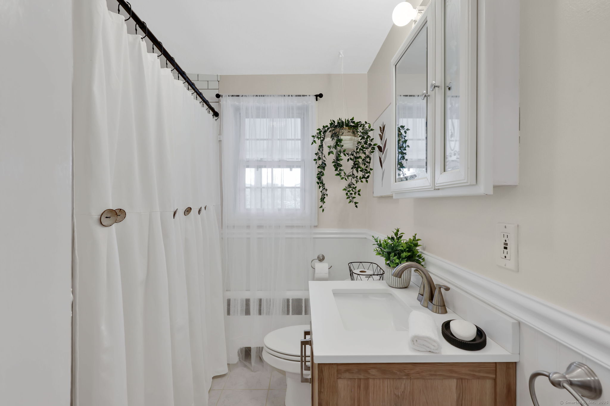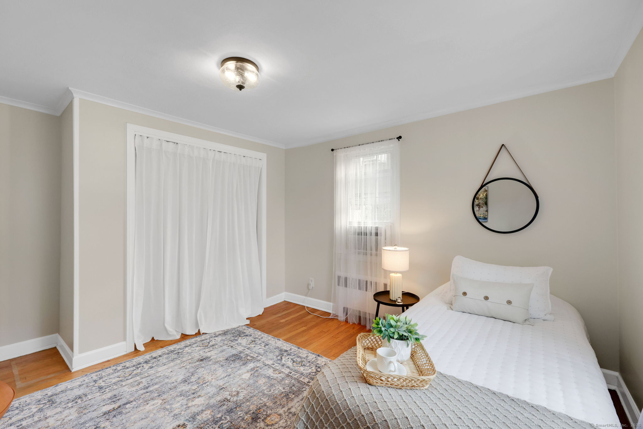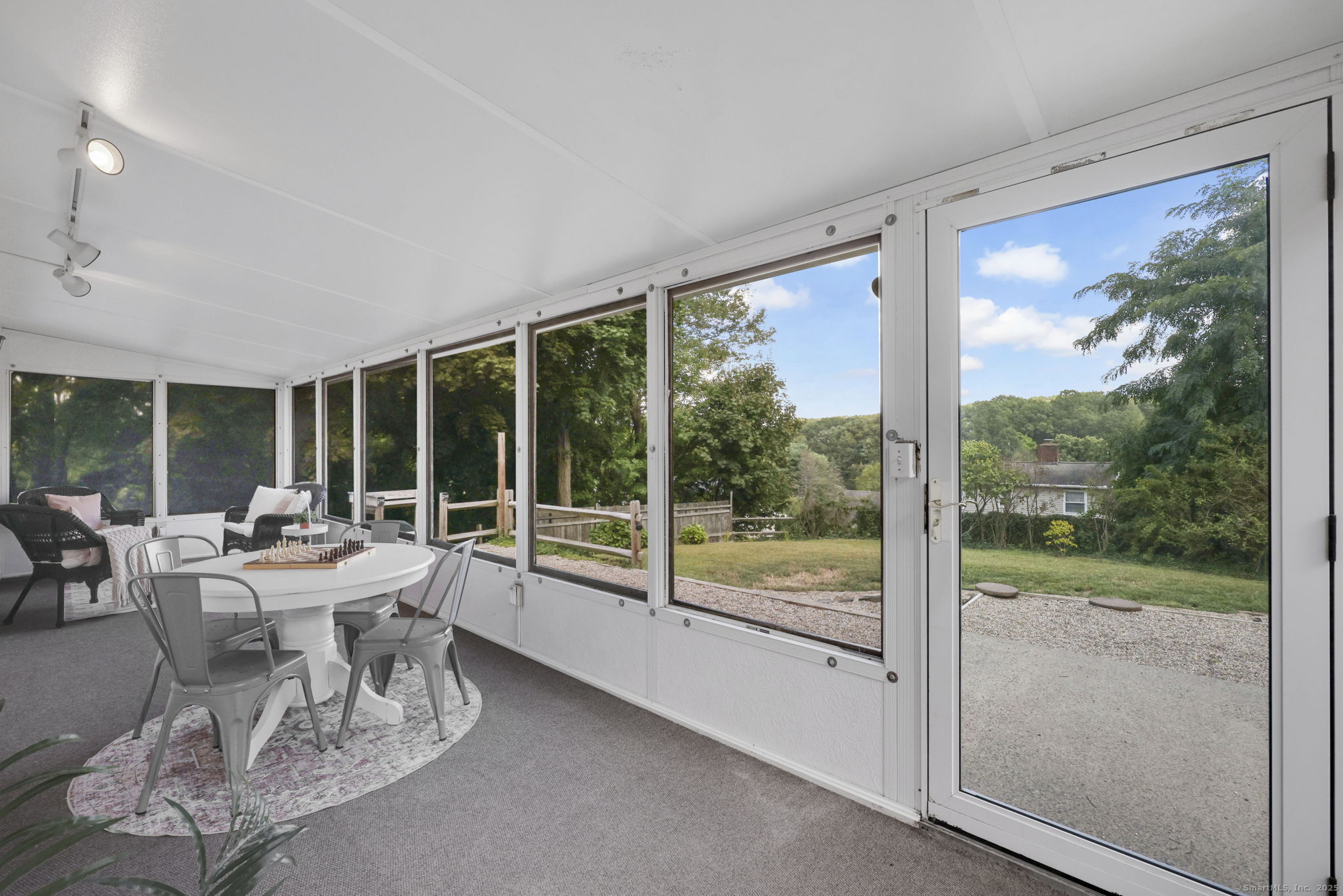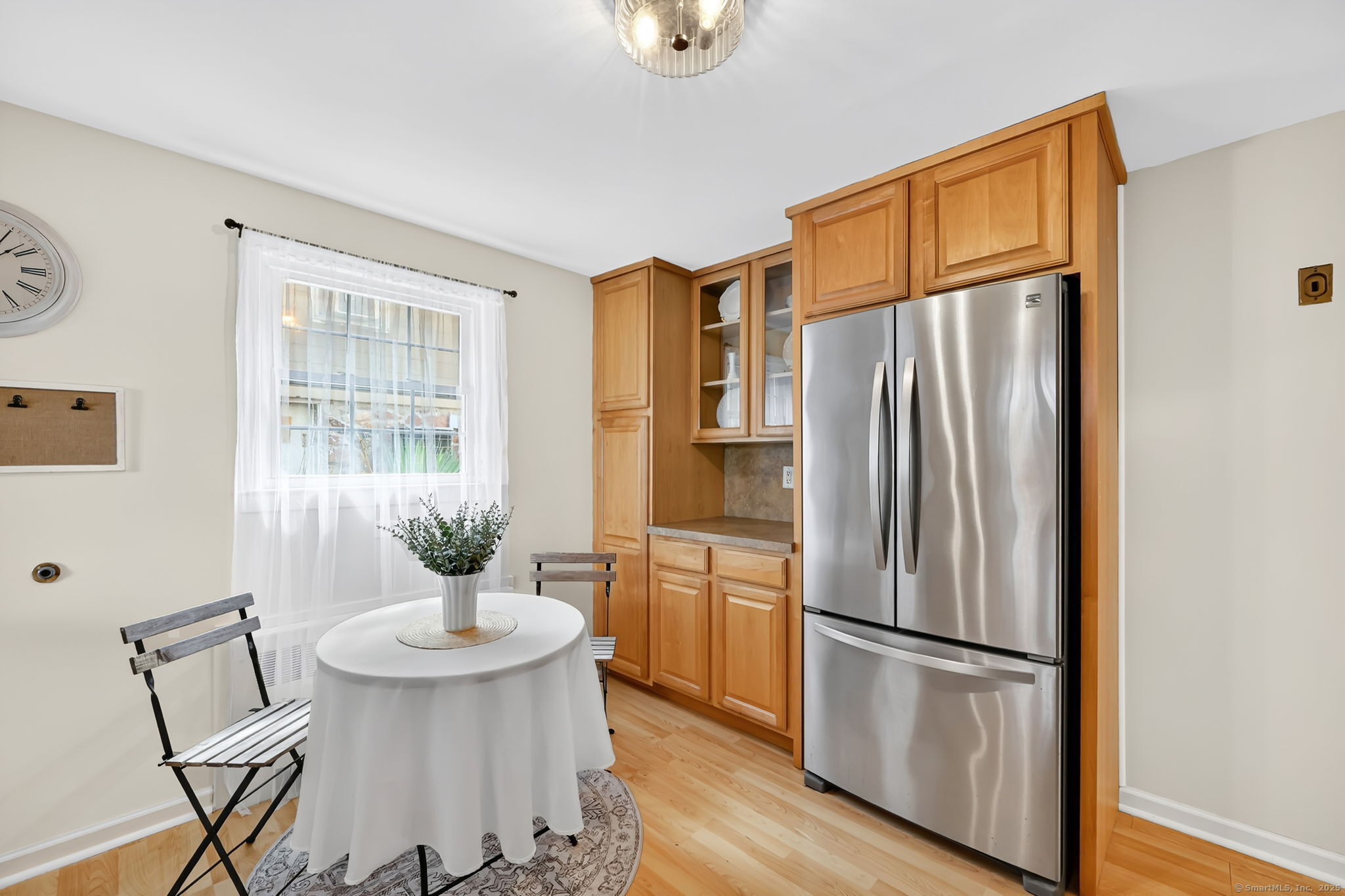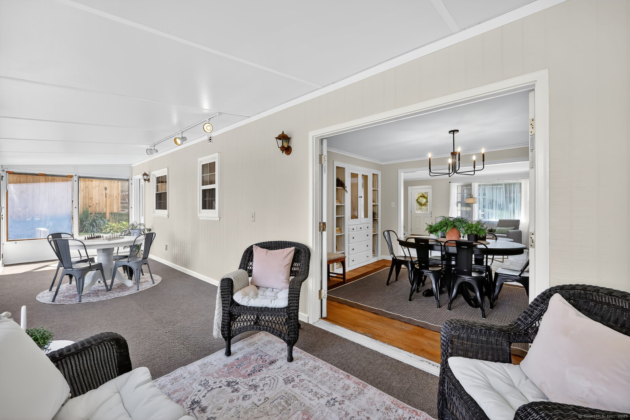 Welcome home to this beautifully maintained 3-bedroom, 2-bath Cape in a sought-after Bristol neighborhood! The sun-filled living room greets you with warmth and charm, flowing seamlessly into the dining room for everyday meals or memorable gatherings. Built-ins throughout add character and function. French doors lead to a cheerful sunroom, perfect for morning coffee, reading, or evening conversation. The updated kitchen offers wood cabinetry, stainless steel appliances, and ample storage. A convenient first-floor bedroom and full bath complete the main level. Upstairs you'll find two spacious bedrooms and another stylishly updated bath. Step outside to your private, fenced backyard oasis with a patio, mature trees, and room for gardening, play, or summer entertaining. The attached garage with basement entry provides storage and workshop potential. Energy-saving solar panels, gleaming hardwood floors, fresh paint, and vinyl windows make this home move-in ready!