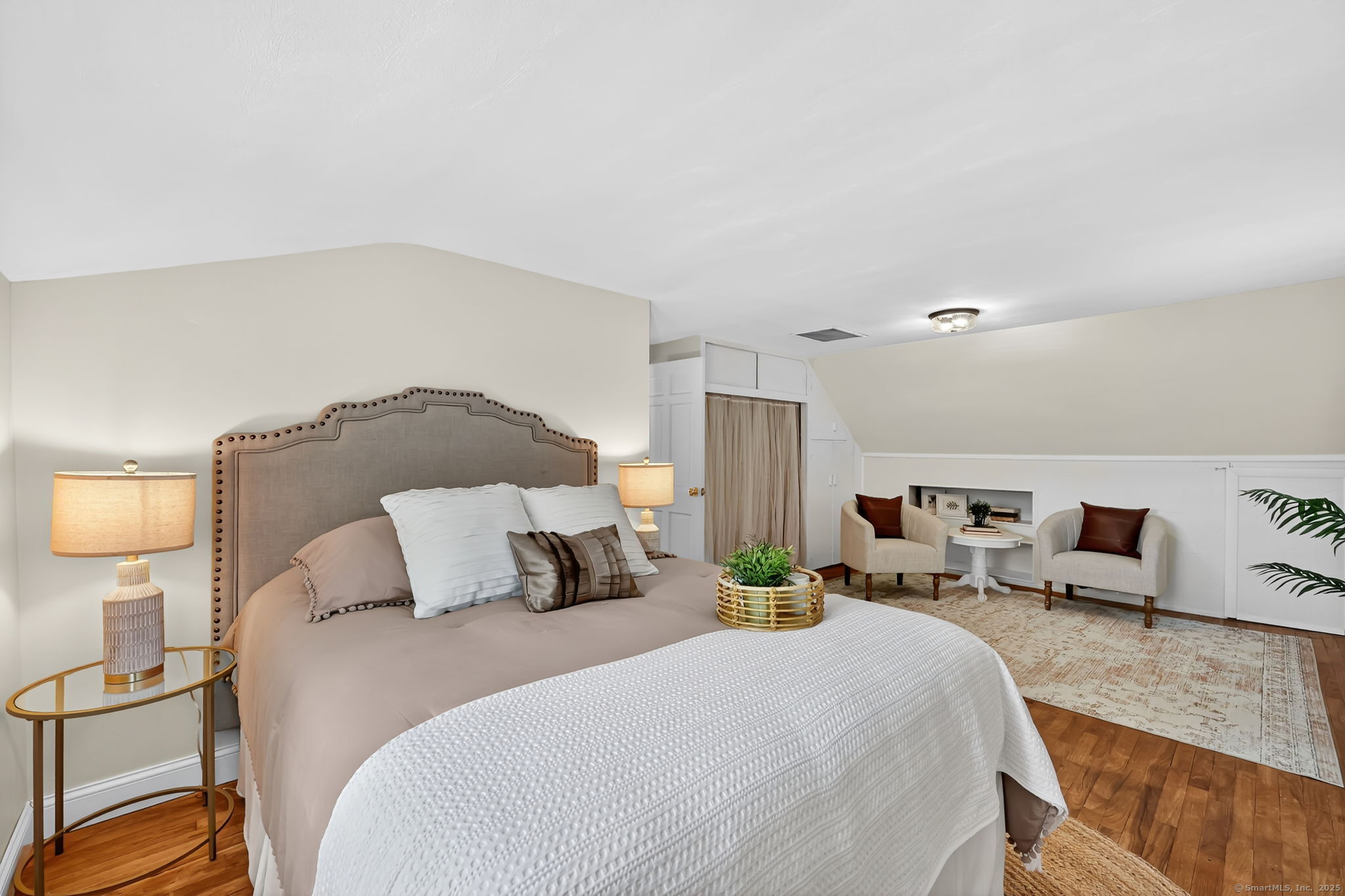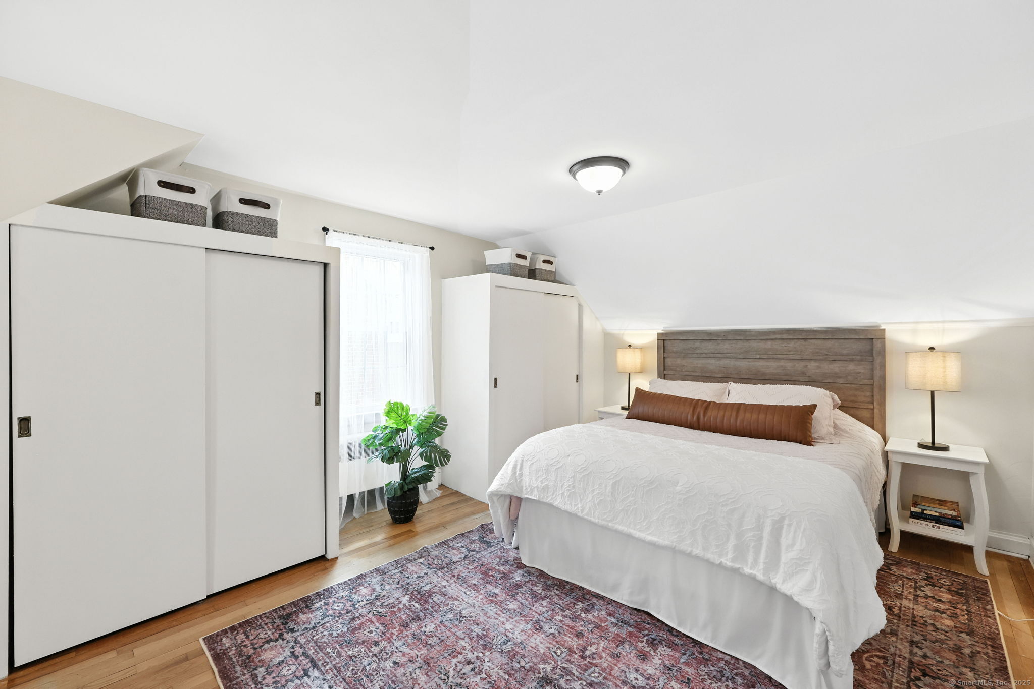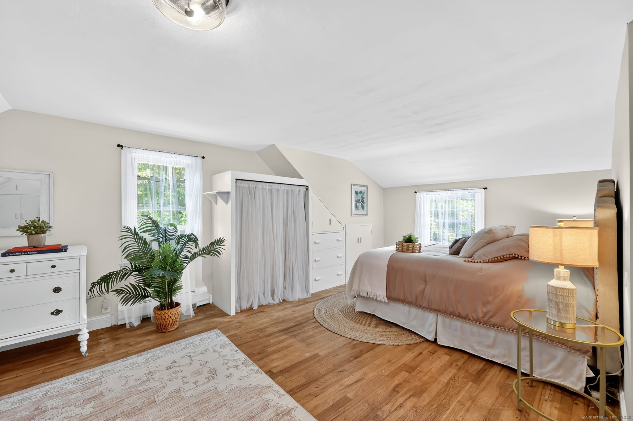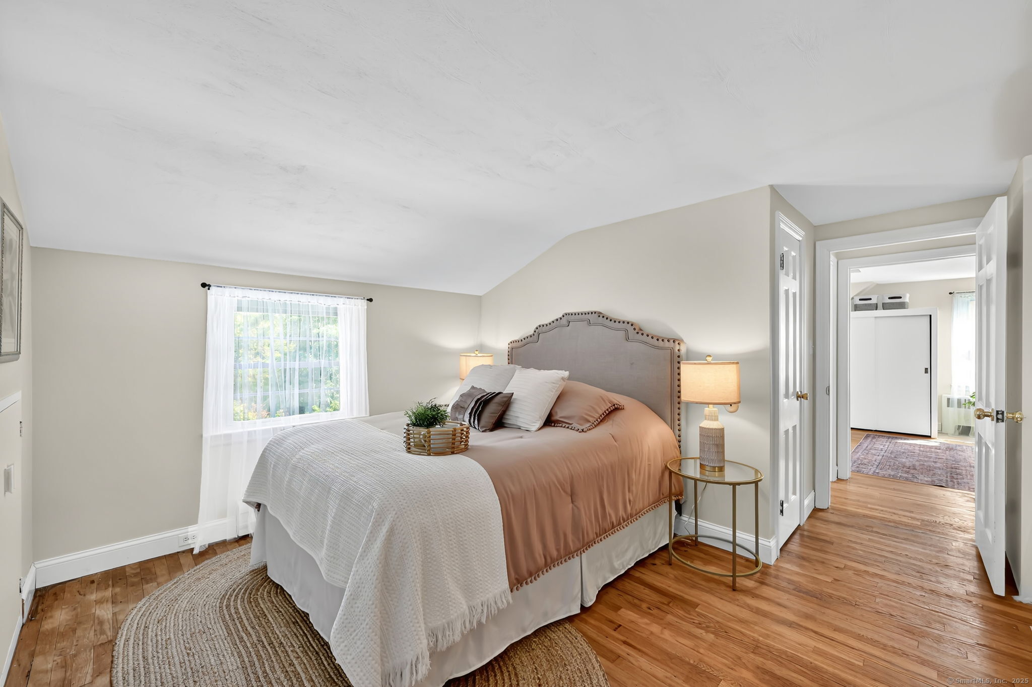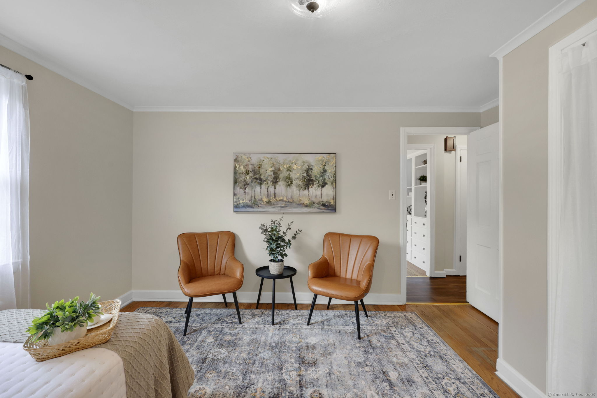 Welcome home to this beautifully maintained 3-bedroom, 2-bath Cape in a sought-after Bristol neighborhood! The sun-filled living room greets you with warmth and charm, flowing seamlessly into the dining room for everyday meals or memorable gatherings. Built-ins throughout add character and function. French doors lead to a cheerful sunroom, perfect for morning coffee, reading, or evening conversation. The updated kitchen offers wood cabinetry, stainless steel appliances, and ample storage. A convenient first-floor bedroom and full bath complete the main level. Upstairs you'll find two spacious bedrooms and another stylishly updated bath. Step outside to your private, fenced backyard oasis with a patio, mature trees, and room for gardening, play, or summer entertaining. The attached garage with basement entry provides storage and workshop potential. Energy-saving solar panels, gleaming hardwood floors, fresh paint, and vinyl windows make this home move-in ready!