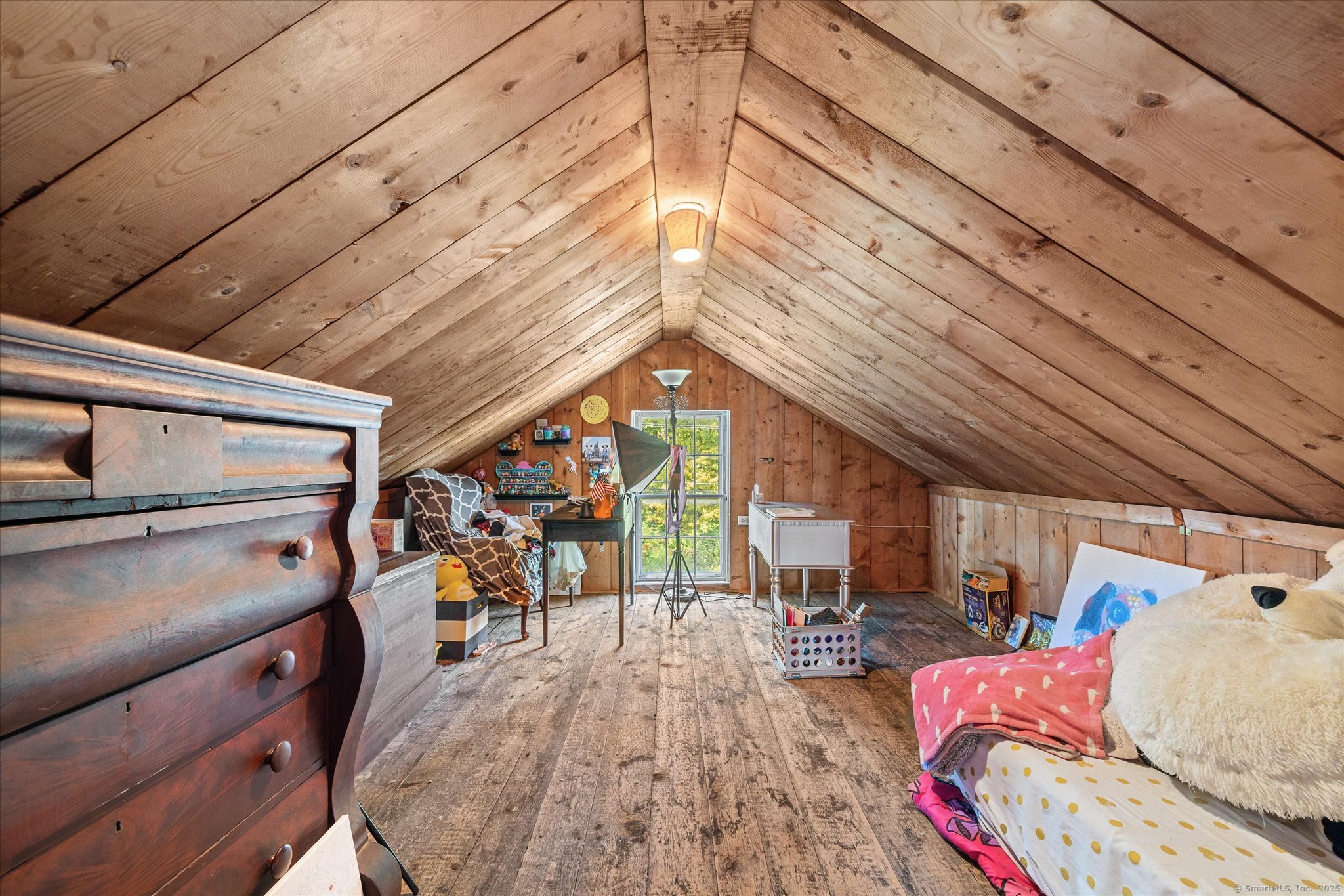 Step back in time with this one-of-a-kind 1830 Greek Revival farmhouse, offering 2,150 sq ft of character and charm on a picturesque 0.90-acre lot surrounded by farm land. Just down the hill from historic Woodstock Hill and the Academy, this setting is as scenic as it is convenient. Inside, wide plank floors and distinctive windows frame beautiful country views, while the front entry showcases its original door with full exterior shutters, a hallmark of Greek Revival style. The living room centers on a classic fireplace, and along the upstairs landing a wall of built-in bookshelves creates a welcoming library space. Three bedrooms are located on the second floor, with an additional first-floor room currently serving as a fourth bedroom. The primary includes a walk-in closet and bath with a clawfoot tub. The walk-up attic offers potential for an office, playroom, or studio. The kitchen features a custom layout paired with quality appliances (Sub-Zero fridge & Thor cooktop) and the warmth of a wood stove. Updates include new Trex decking and a newly finished three-season room off the dining room. Historic touches, such as unique wallcoverings and original details, remain intact, blending history, artistry, and the timeless charm of living in Woodstock, CT.