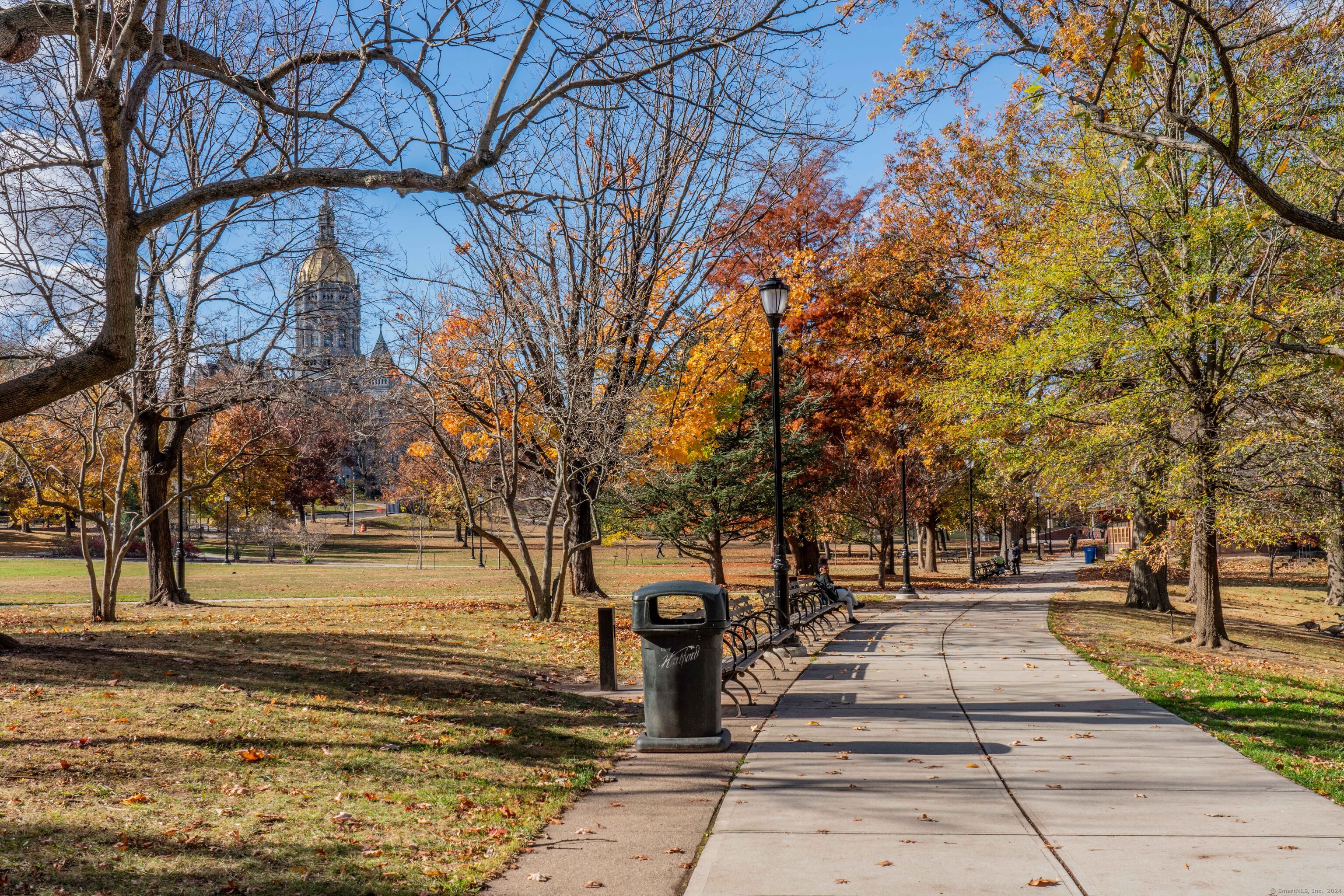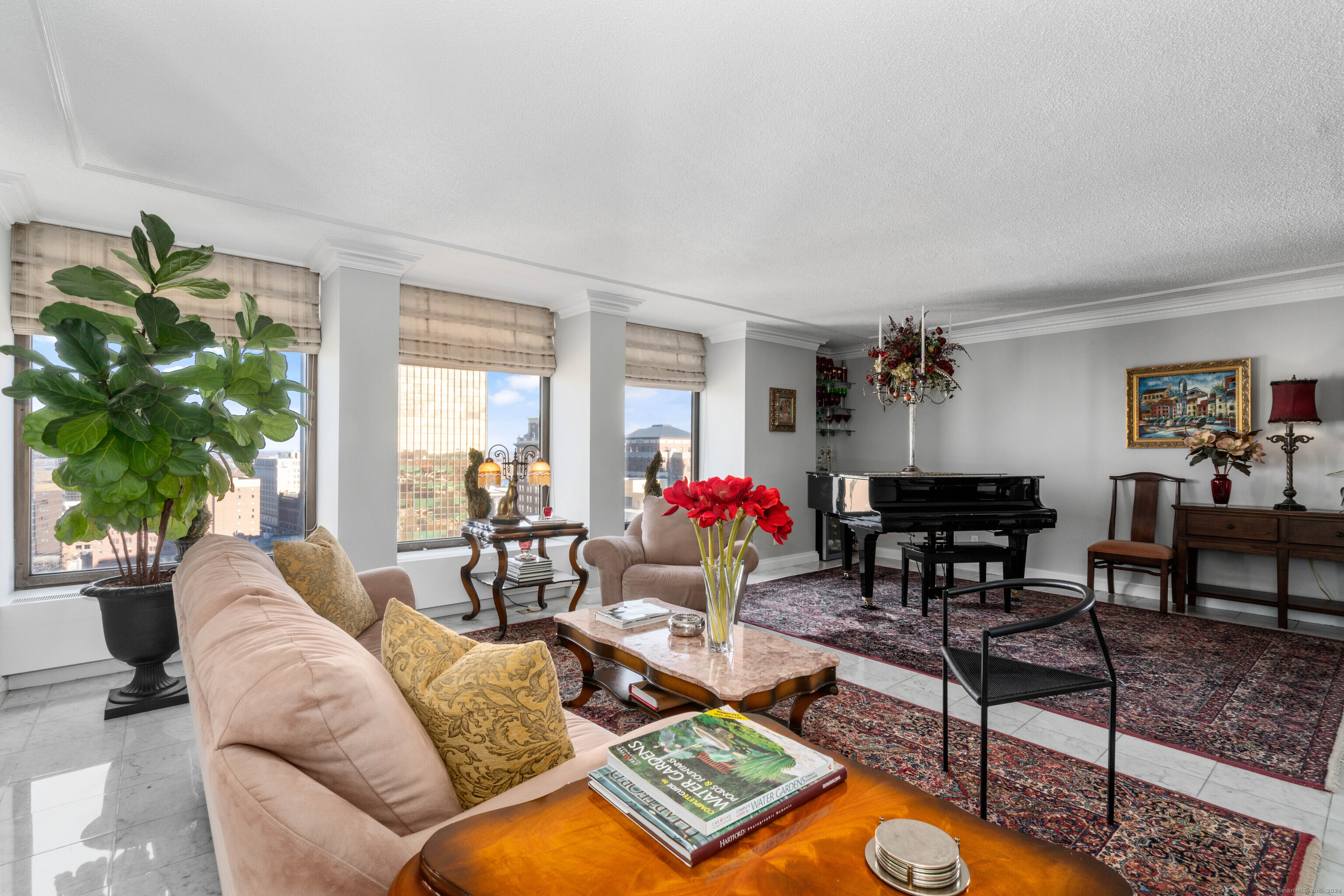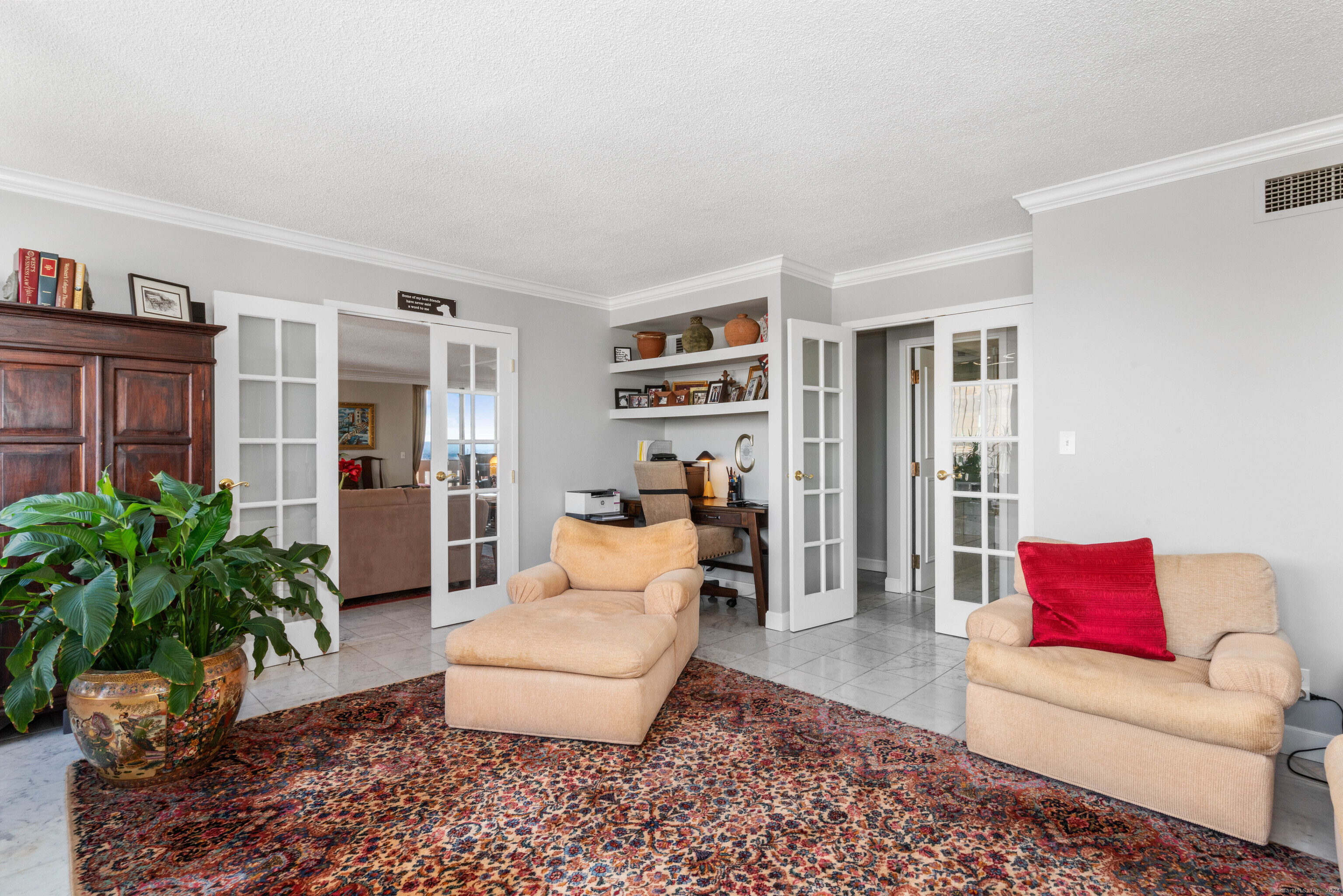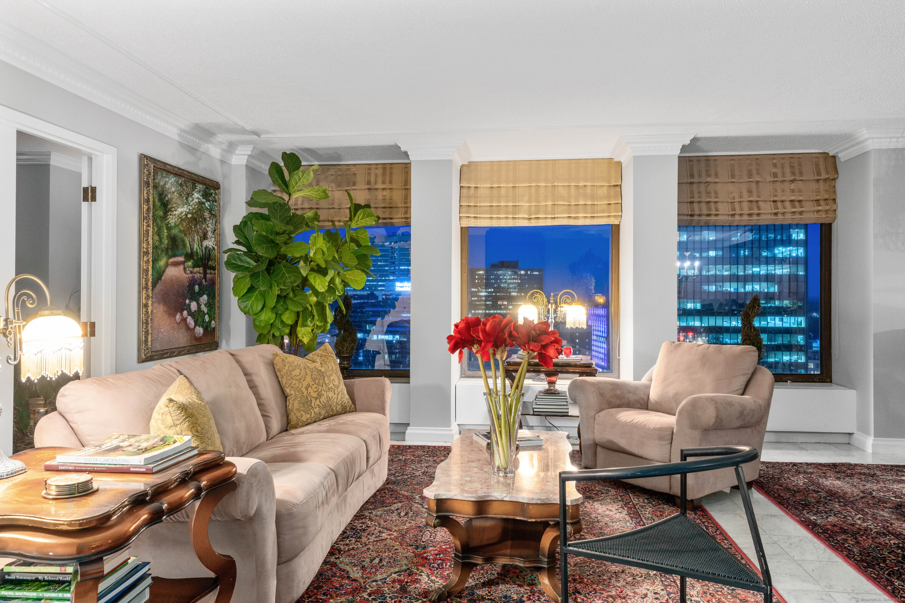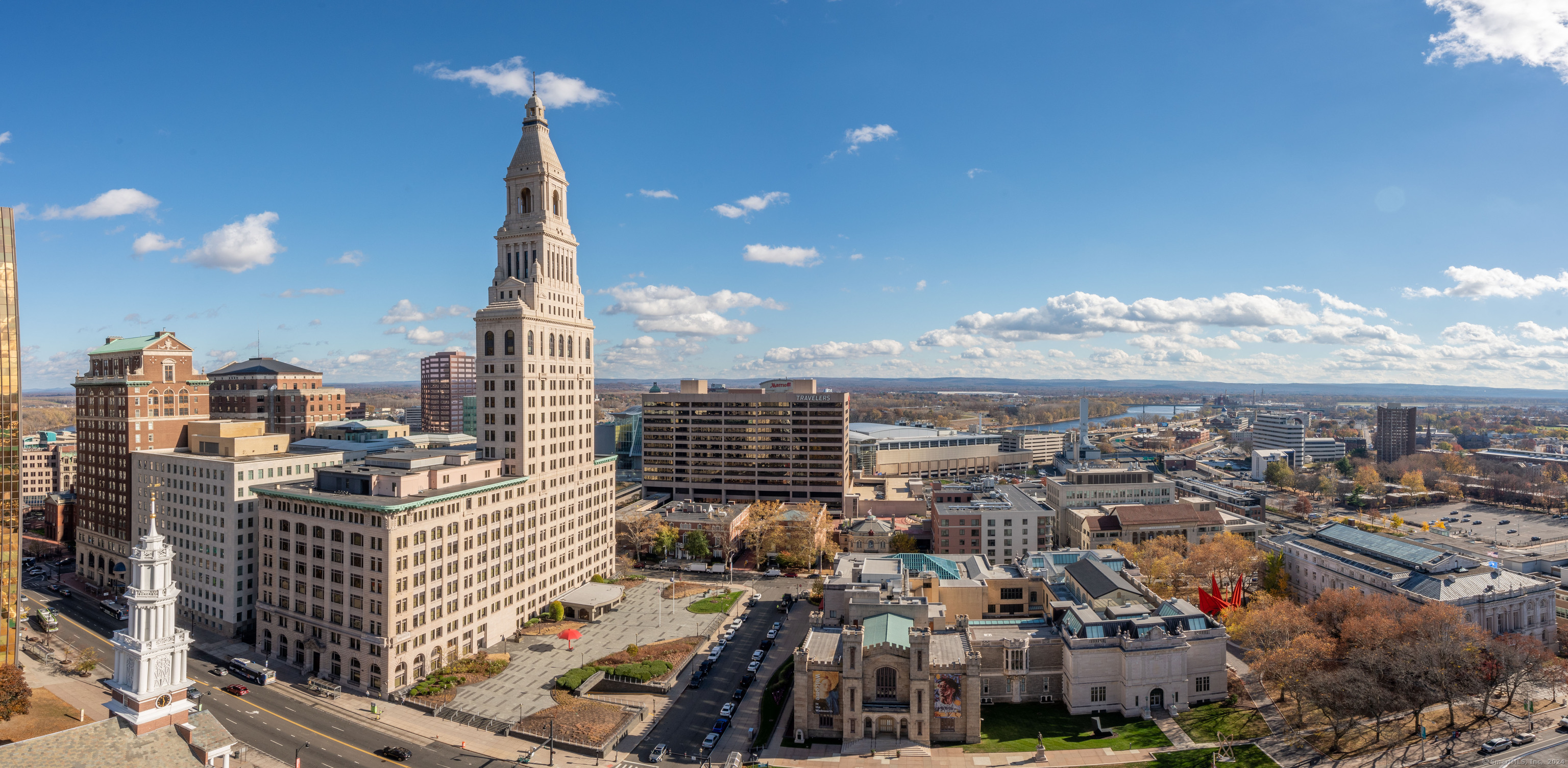 Experience the pinnacle of downtown living in this stunning 24th-floor condo at the renowned Bushnell Tower, designed by architect I.M. Pei. Enjoy breathtaking views of downtown Hartford and the Connecticut River from expansive windows that flood the open floor plan with natural light. The spacious living room, featuring a full wall of windows, seamlessly flows into the dining area, creating an inviting space for relaxation and entertainment. Step out onto your private balcony overlooking the Wadsworth Atheneum and Traveler's Tower-a perfect spot to enjoy your morning coffee or unwind in the evening. The kitchen impresses with custom cabinetry, granite countertops, and a built-in bar with a wine refrigerator. French doors from the living room open to a cozy den with built-ins, ideal for a home office or media room, can also be used as third bedroom. The generous primary suite features a luxurious retreat with a private bath, marble steam shower, in-unit washer/dryer, and a spacious walk-in closet. A second bedroom and an additional full bath with double sinks complete the layout. This condo also has four-zone heating, a convenient two-car tandem garage (#143), a storage unit, and 24-hour concierge service. Enjoy Bushnell Park, wonderful restaurants and several theaters. Make this exceptional property your home and embrace urban luxury at its finest.