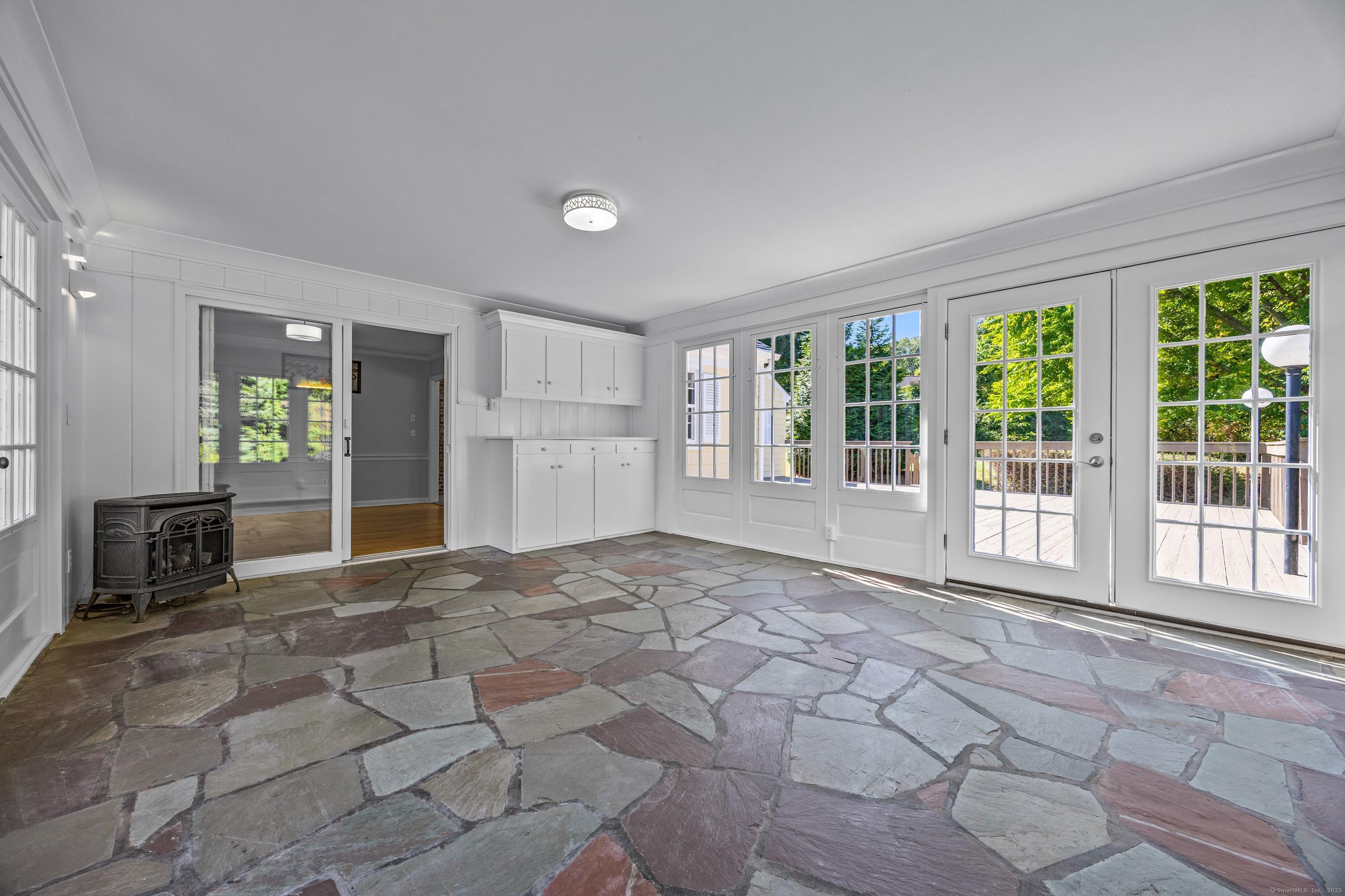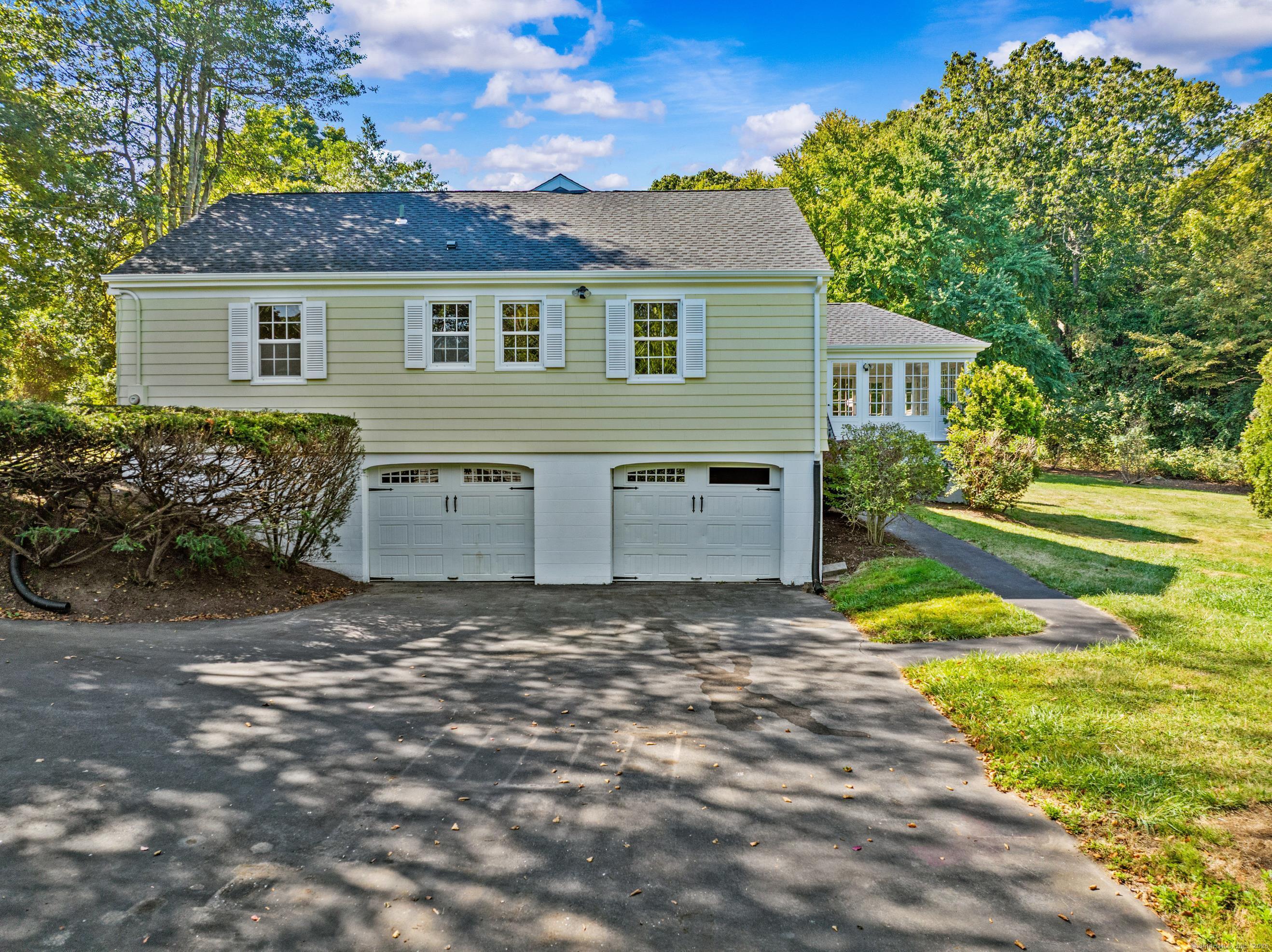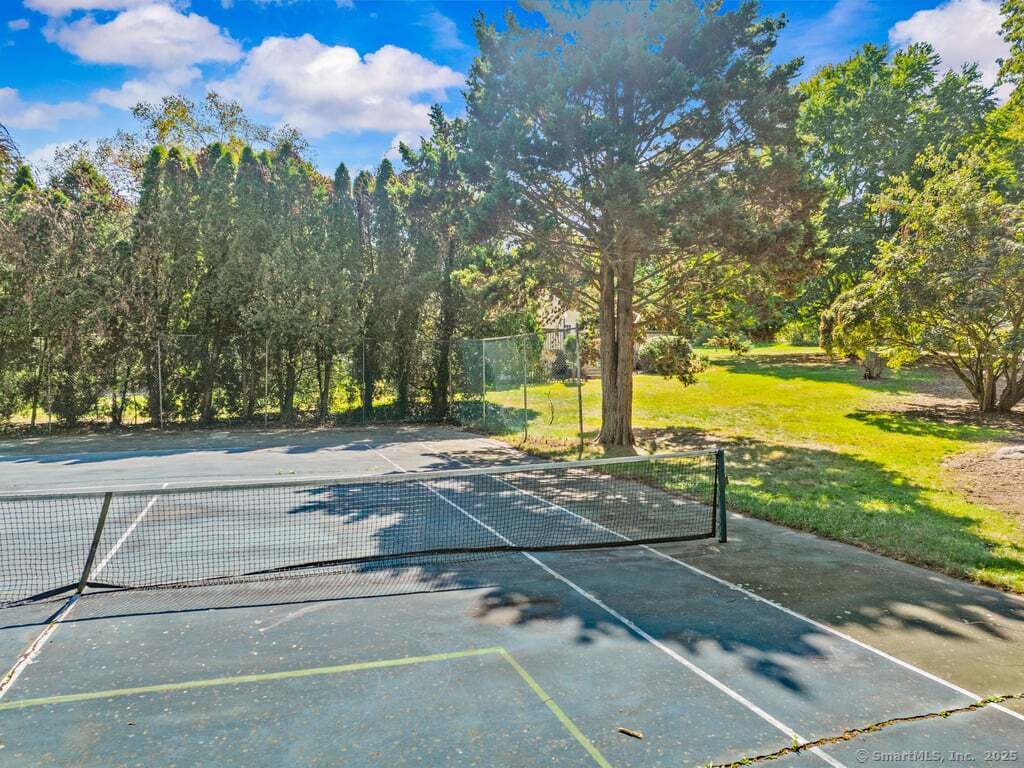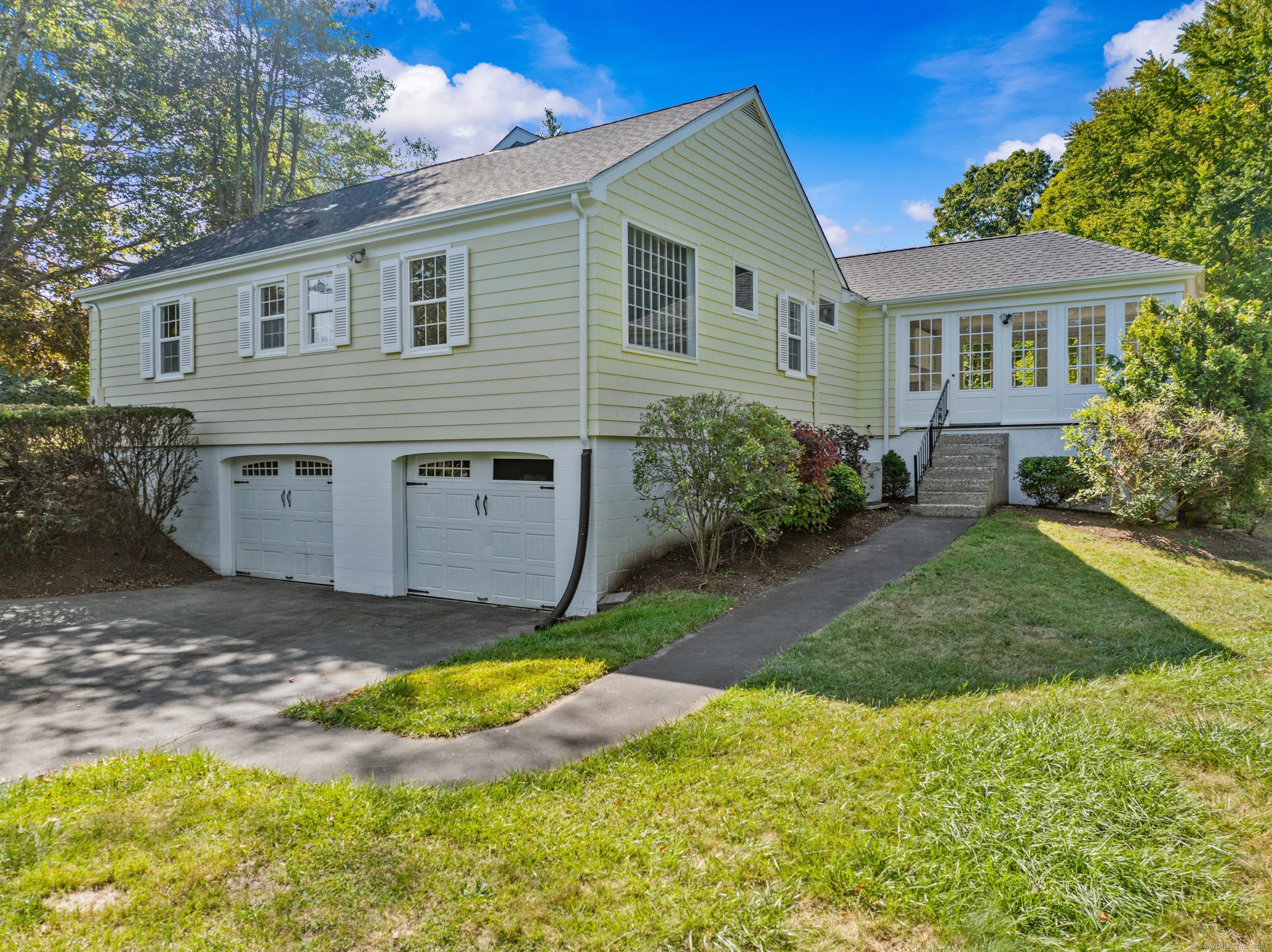 On a quiet cul de sac, sits this 2300 sf one floor custom home with an additional 300 sf three season sun room (with propane stove) in a lush, very private setting. This gracious home is situated on over an acre of private mature landscaped grounds, including a tennis court (needs some work), offering privacy while still part of a cul de sac neighborhood. Freshly painted inside and out, with refinished hardwood floors, top of the line newer furnace and recent new roof make this move in ready. Originally four bedrooms, two bedrooms were combined to create a spacious, master suite with a redone master bath, two walk in closets and one cedar closet, two built in chests of drawers and recessed indirect lighting---a true retreat. A total of three bedrooms, all generous sized, (one with a ceiling fan) and two and a half baths. On the lower level there is an oversized two car garage with storage to complete this home. Finally, there are three off-street parking spaces in addition to the two car garage.