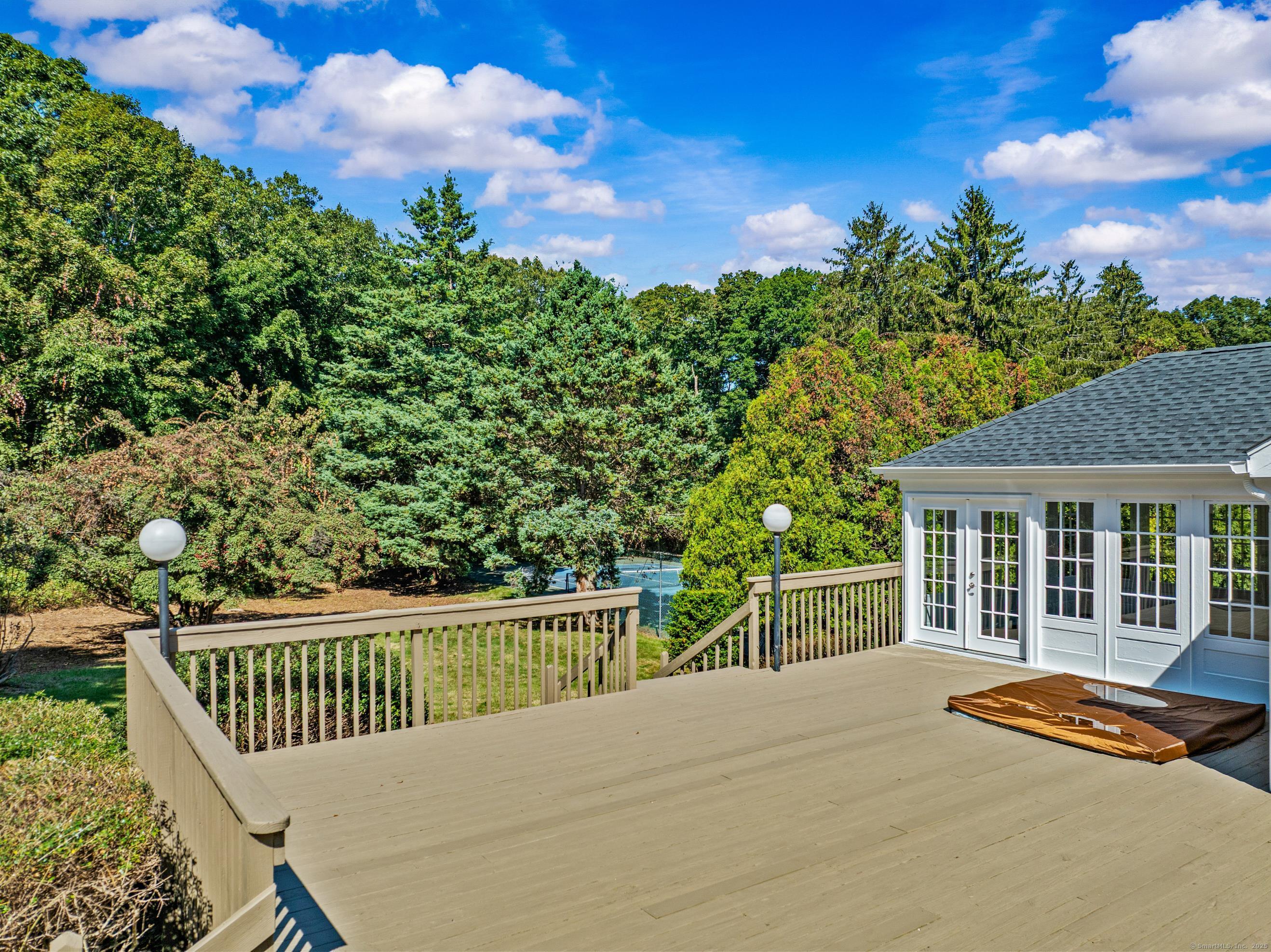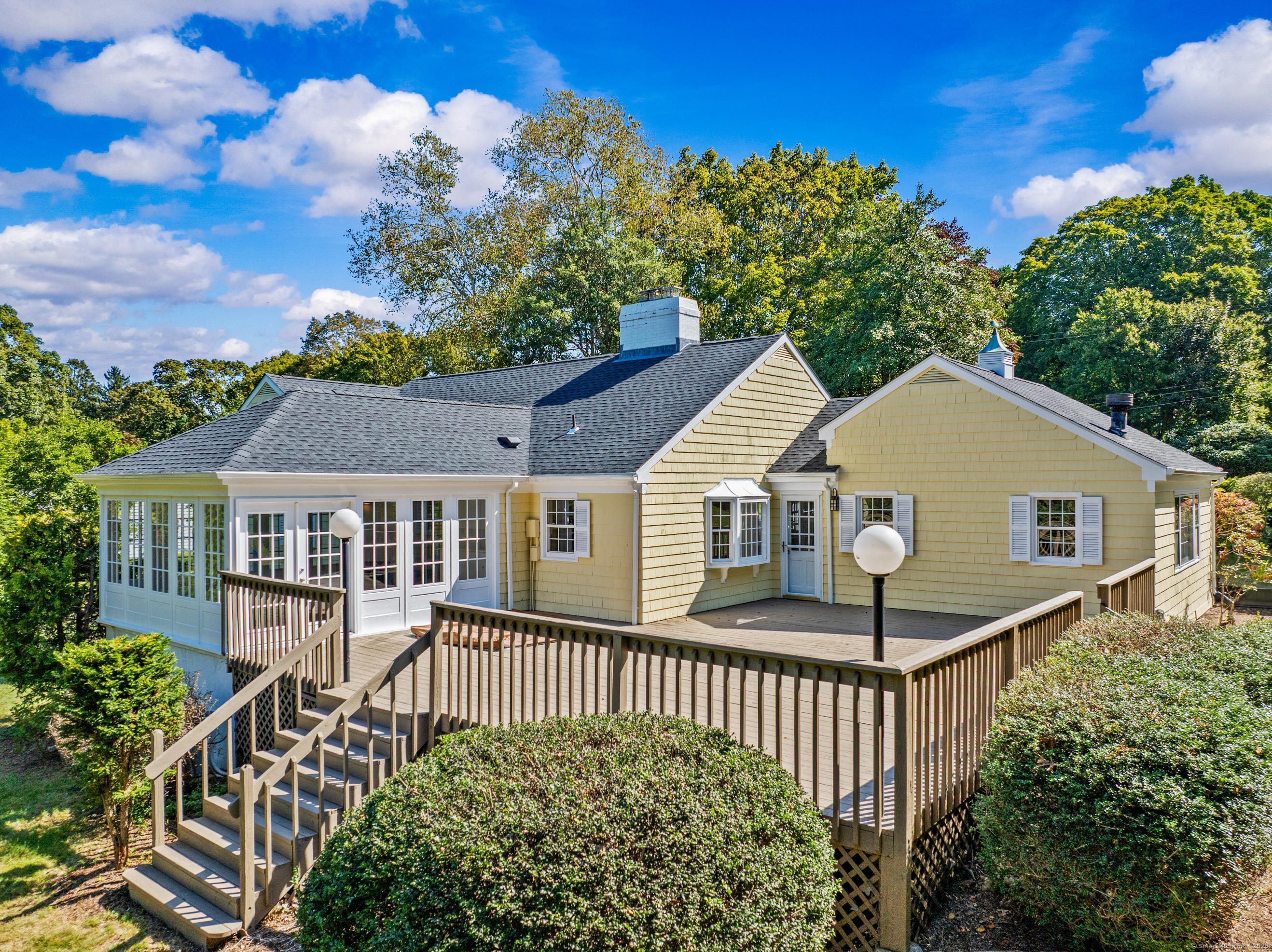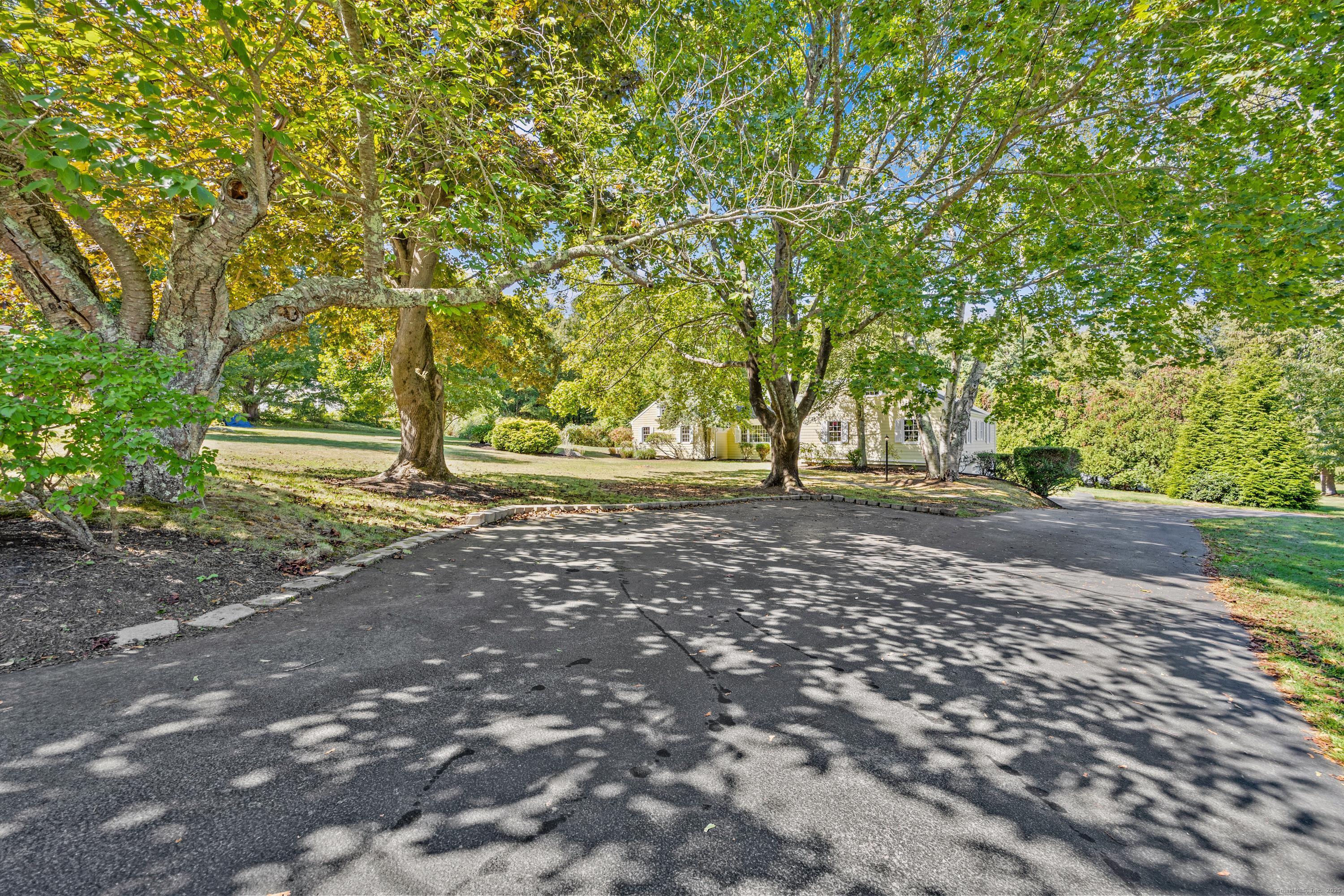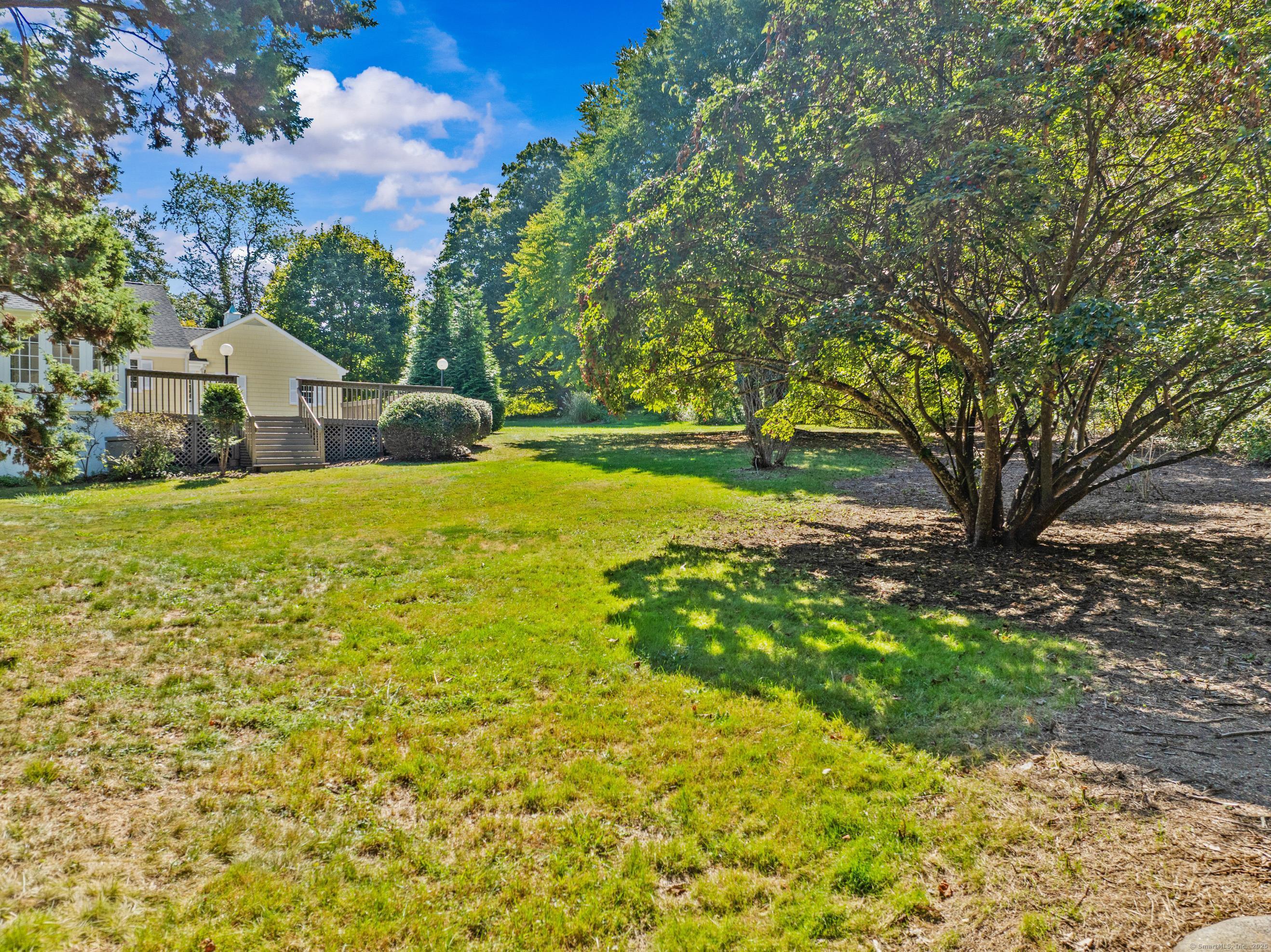 On a quiet cul de sac, sits this 2300 sf one floor custom home with an additional 300 sf three season sun room (with propane stove) in a lush, very private setting. This gracious home is situated on over an acre of private mature landscaped grounds, including a tennis court (needs some work), offering privacy while still part of a cul de sac neighborhood. Freshly painted inside and out, with refinished hardwood floors, top of the line newer furnace and recent new roof make this move in ready. Originally four bedrooms, two bedrooms were combined to create a spacious, master suite with a redone master bath, two walk in closets and one cedar closet, two built in chests of drawers and recessed indirect lighting---a true retreat. A total of three bedrooms, all generous sized, (one with a ceiling fan) and two and a half baths. On the lower level there is an oversized two car garage with storage to complete this home. Finally, there are three off-street parking spaces in addition to the two car garage.