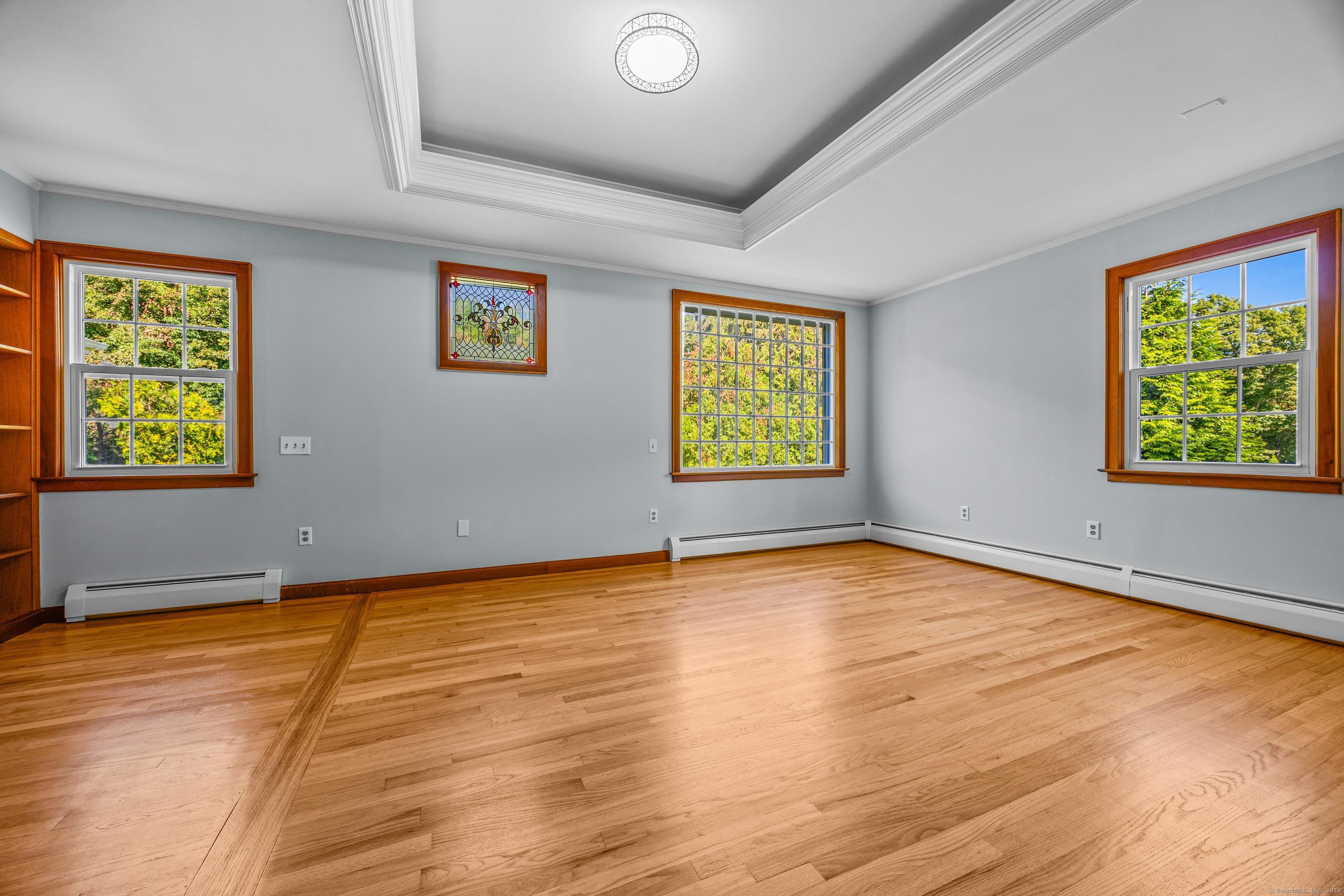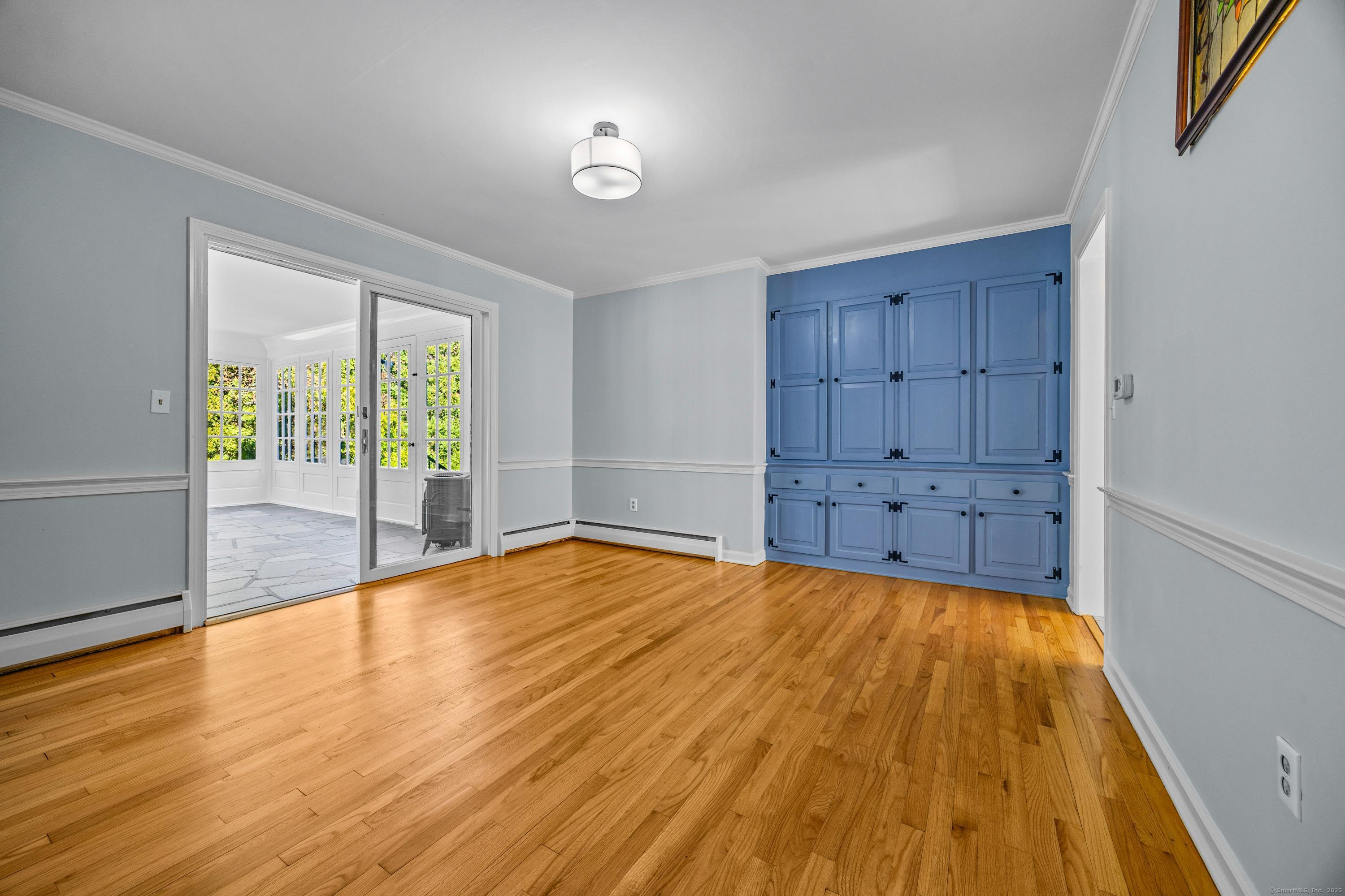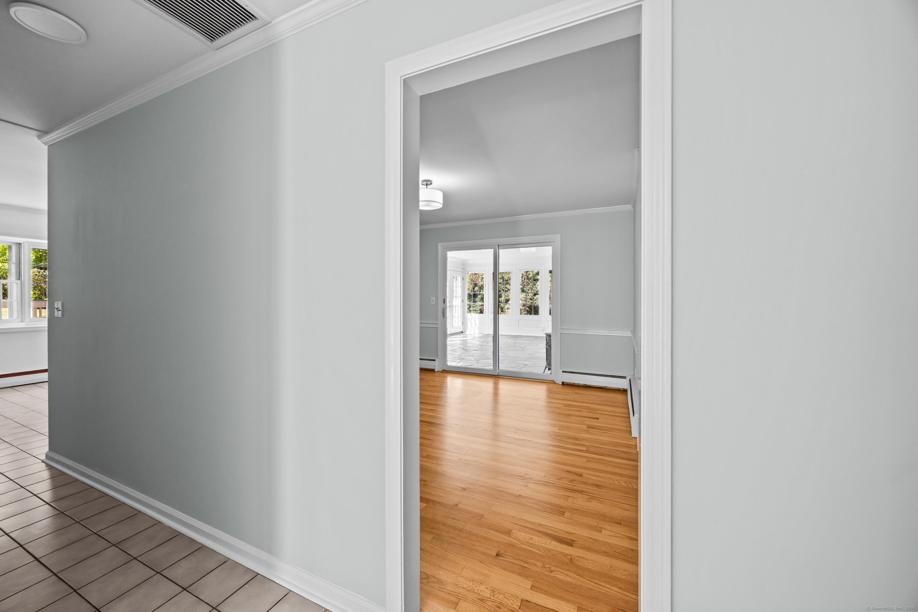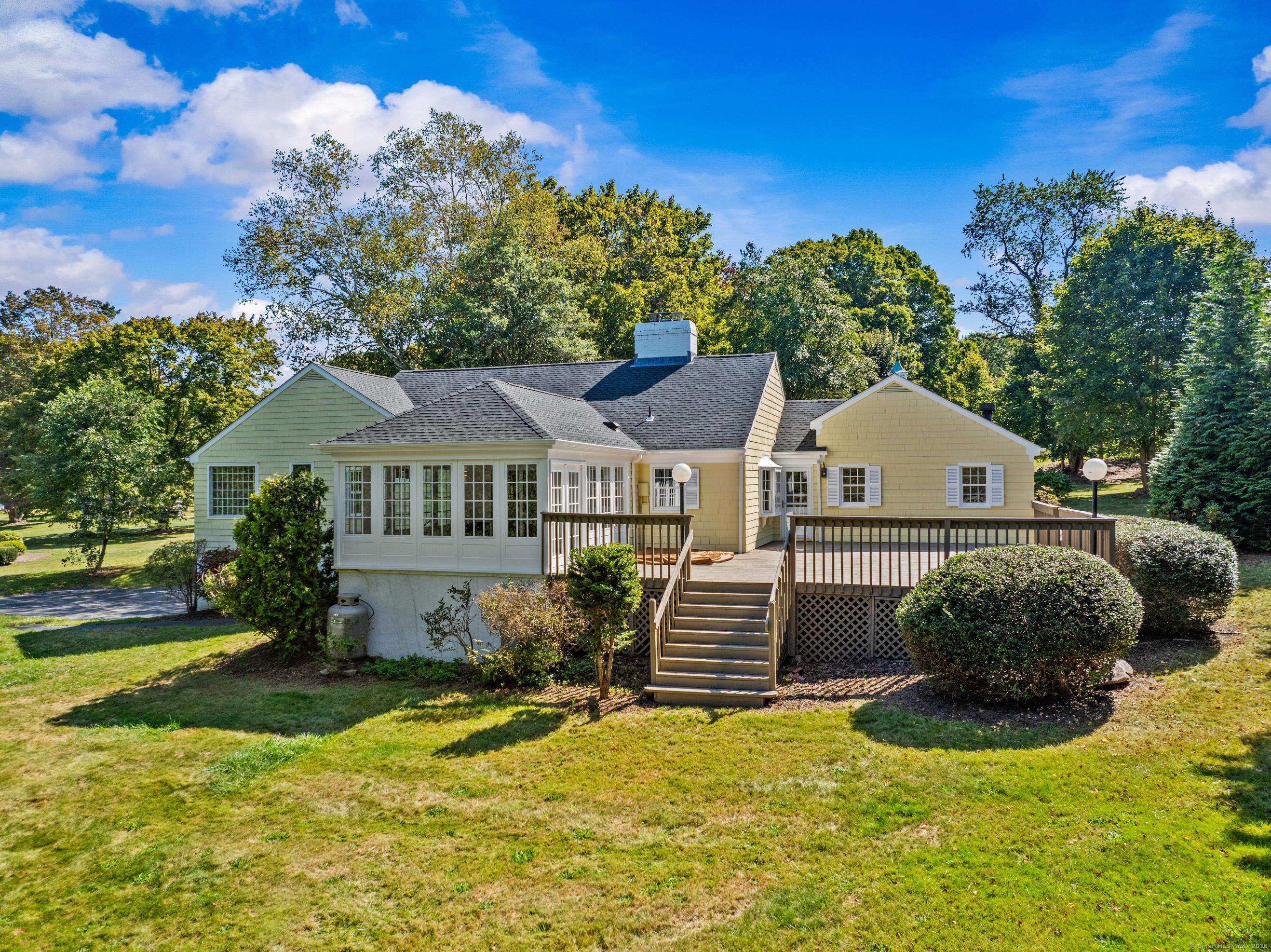 On a quiet cul de sac, sits this 2300 sf one floor custom home with an additional 300 sf three season sun room (with propane stove) in a lush, very private setting. This gracious home is situated on over an acre of private mature landscaped grounds, including a tennis court (needs some work), offering privacy while still part of a cul de sac neighborhood. Freshly painted inside and out, with refinished hardwood floors, top of the line newer furnace and recent new roof make this move in ready. Originally four bedrooms, two bedrooms were combined to create a spacious, master suite with a redone master bath, two walk in closets and one cedar closet, two built in chests of drawers and recessed indirect lighting---a true retreat. A total of three bedrooms, all generous sized, (one with a ceiling fan) and two and a half baths. On the lower level there is an oversized two car garage with storage to complete this home. Finally, there are three off-street parking spaces in addition to the two car garage.