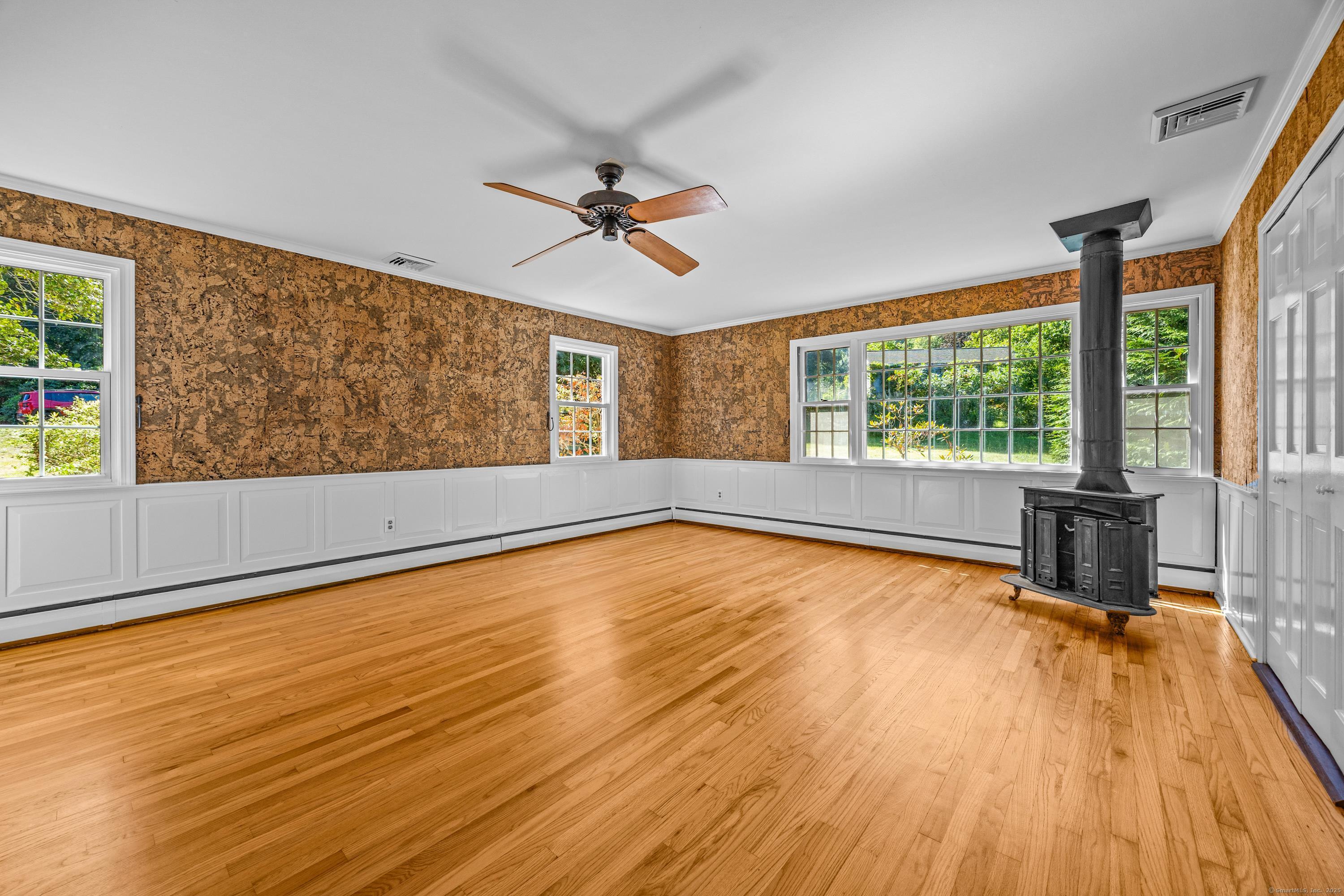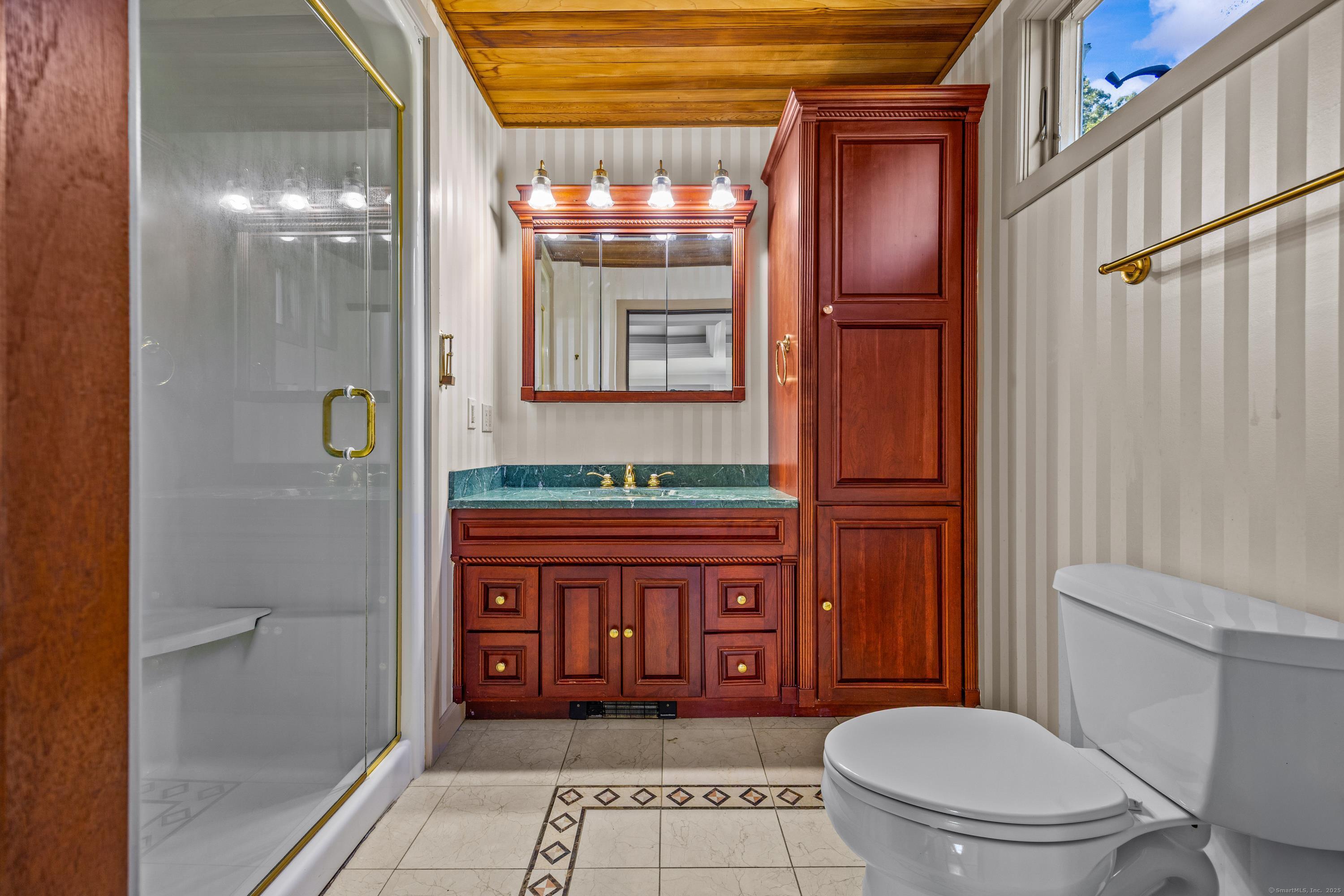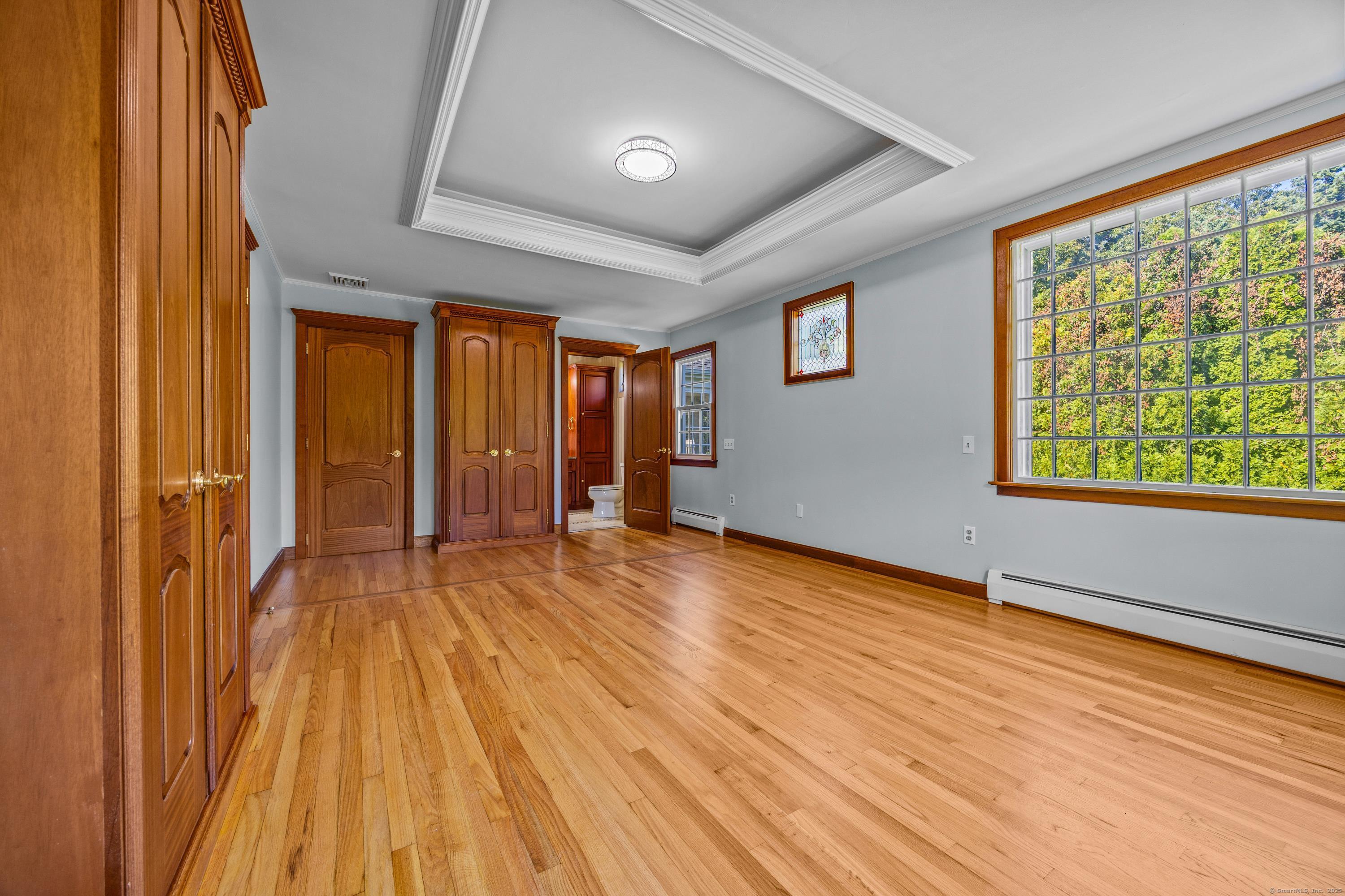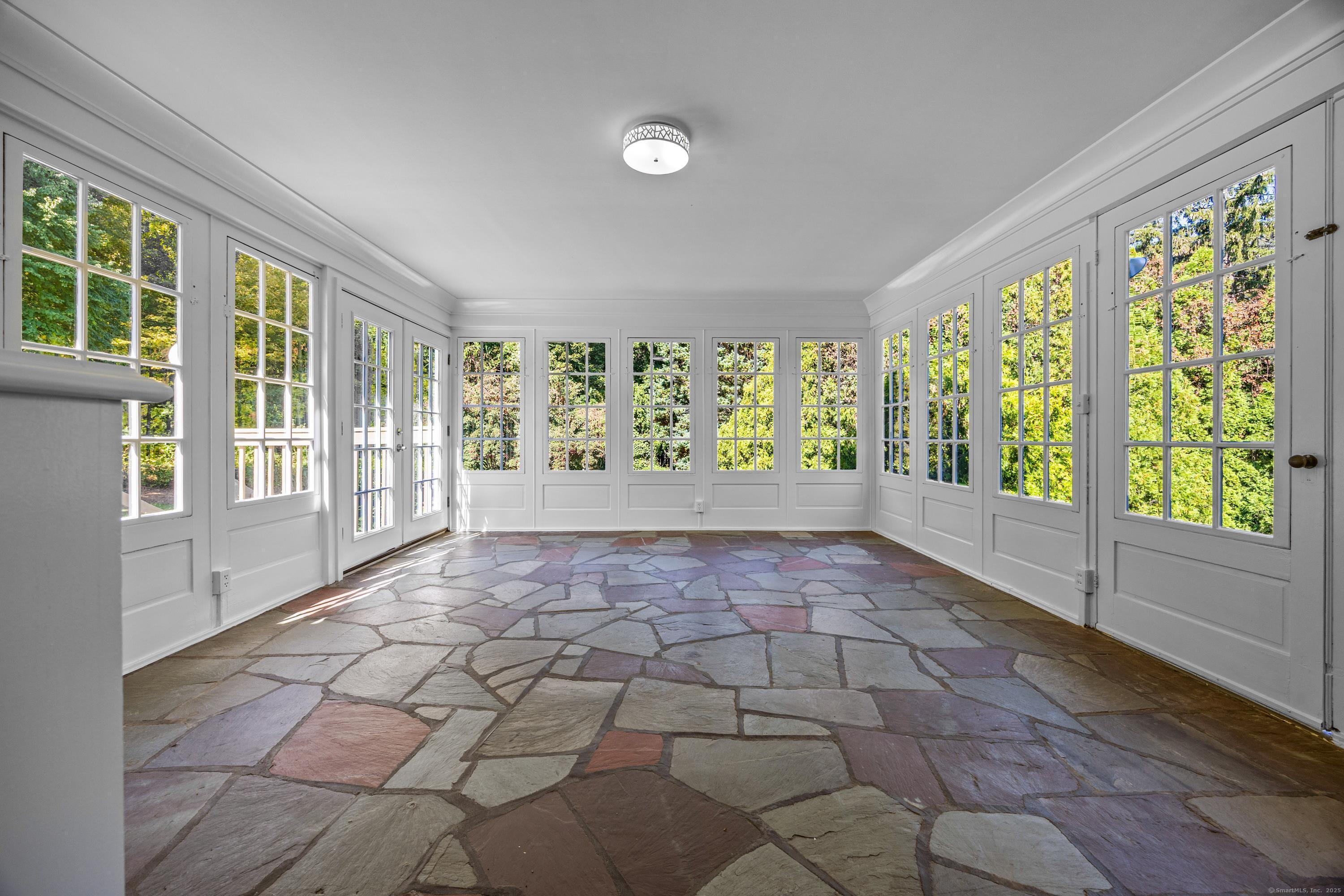 On a quiet cul de sac, sits this 2300 sf one floor custom home with an additional 300 sf three season sun room (with propane stove) in a lush, very private setting. This gracious home is situated on over an acre of private mature landscaped grounds, including a tennis court (needs some work), offering privacy while still part of a cul de sac neighborhood. Freshly painted inside and out, with refinished hardwood floors, top of the line newer furnace and recent new roof make this move in ready. Originally four bedrooms, two bedrooms were combined to create a spacious, master suite with a redone master bath, two walk in closets and one cedar closet, two built in chests of drawers and recessed indirect lighting---a true retreat. A total of three bedrooms, all generous sized, (one with a ceiling fan) and two and a half baths. On the lower level there is an oversized two car garage with storage to complete this home. Finally, there are three off-street parking spaces in addition to the two car garage.